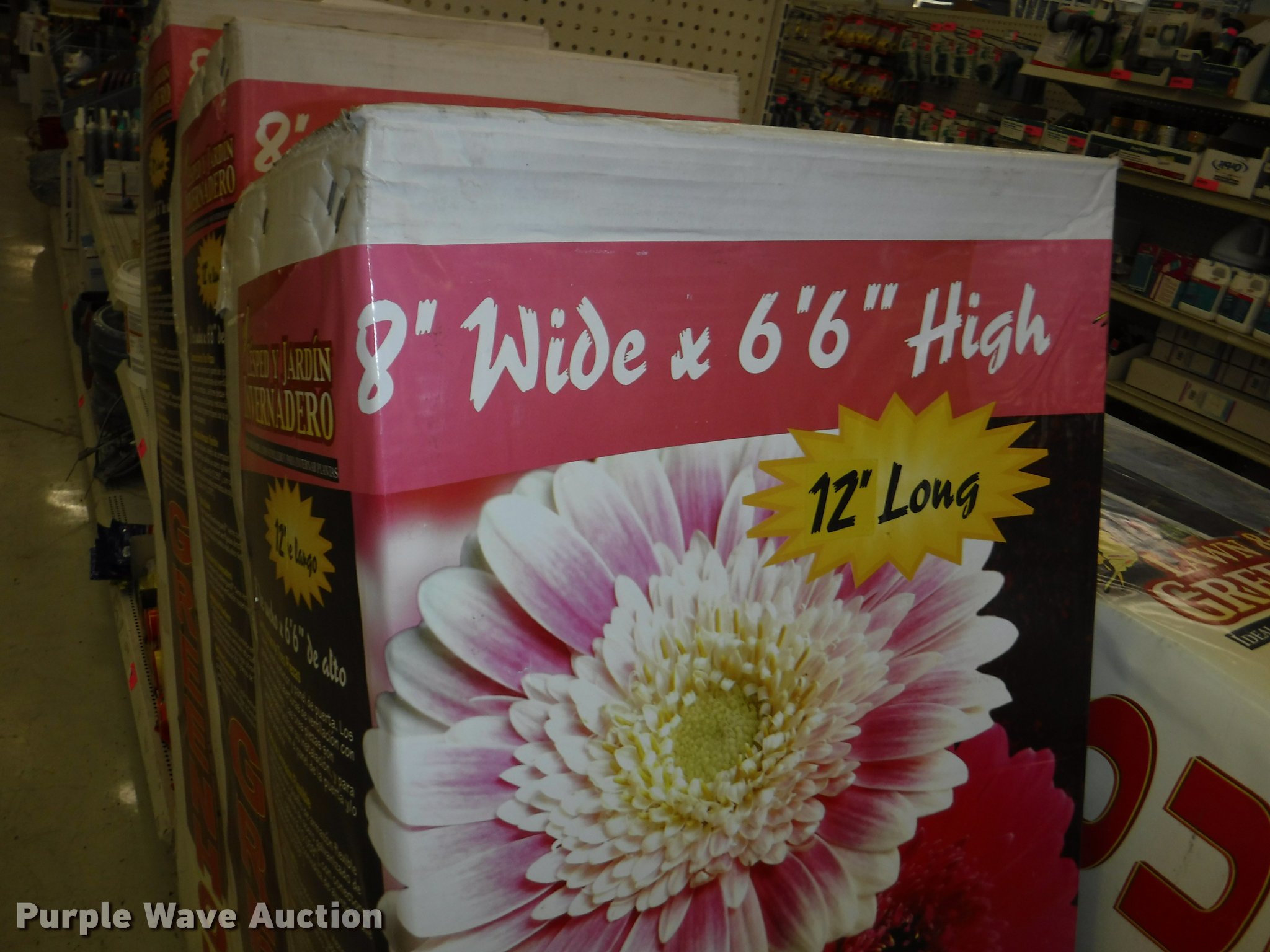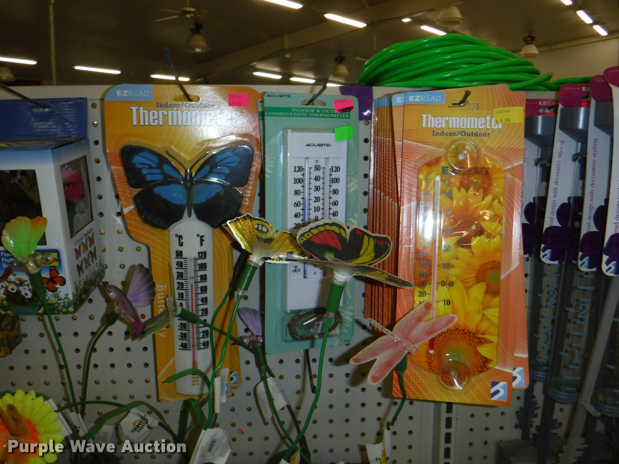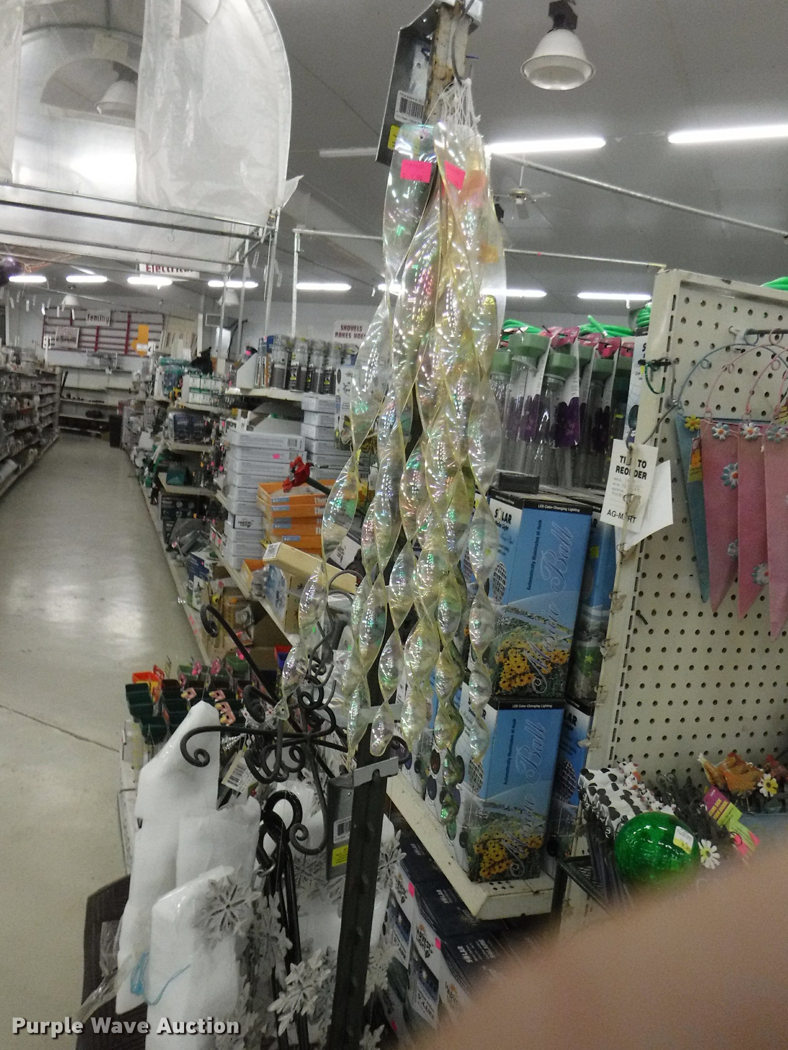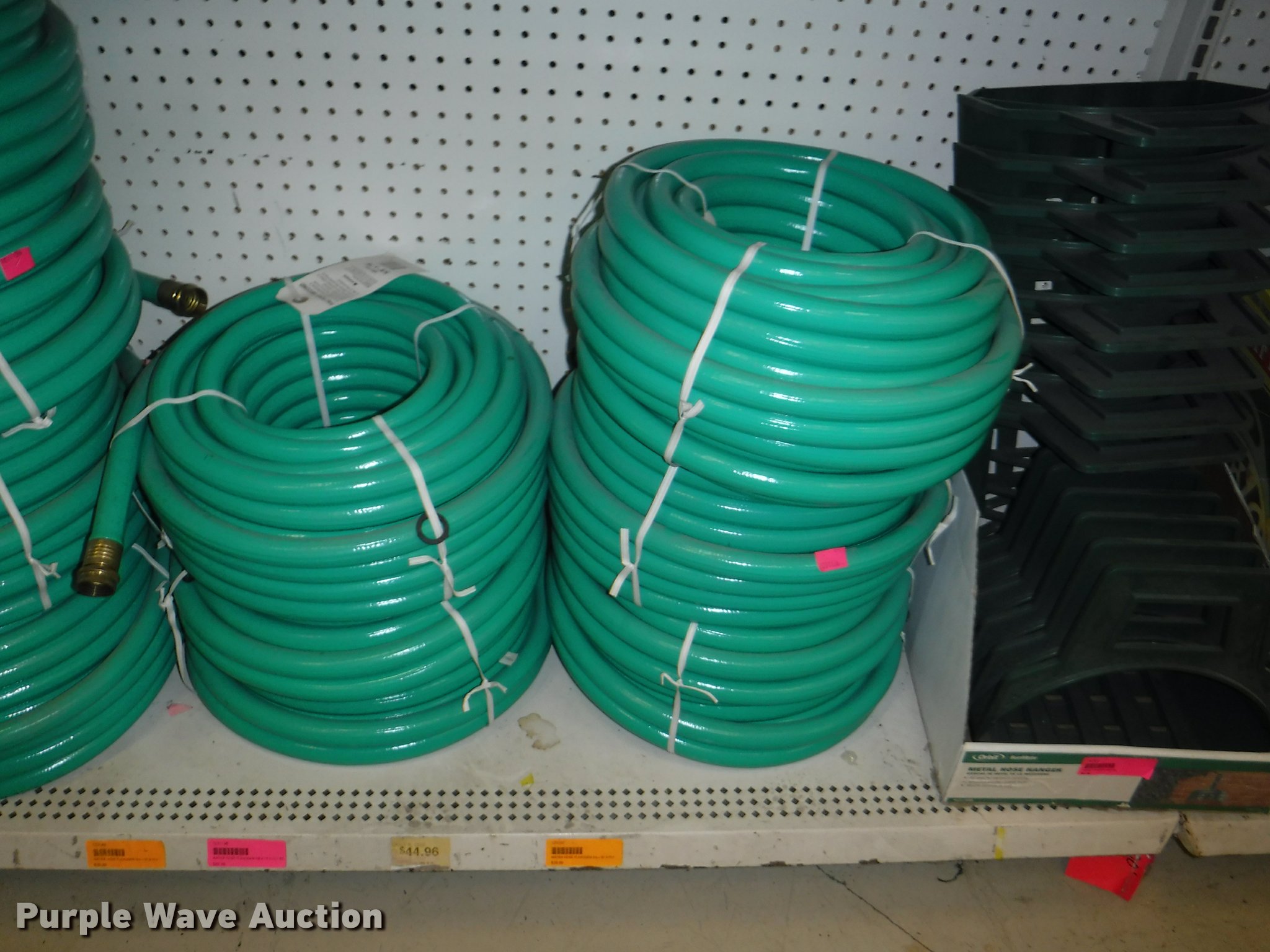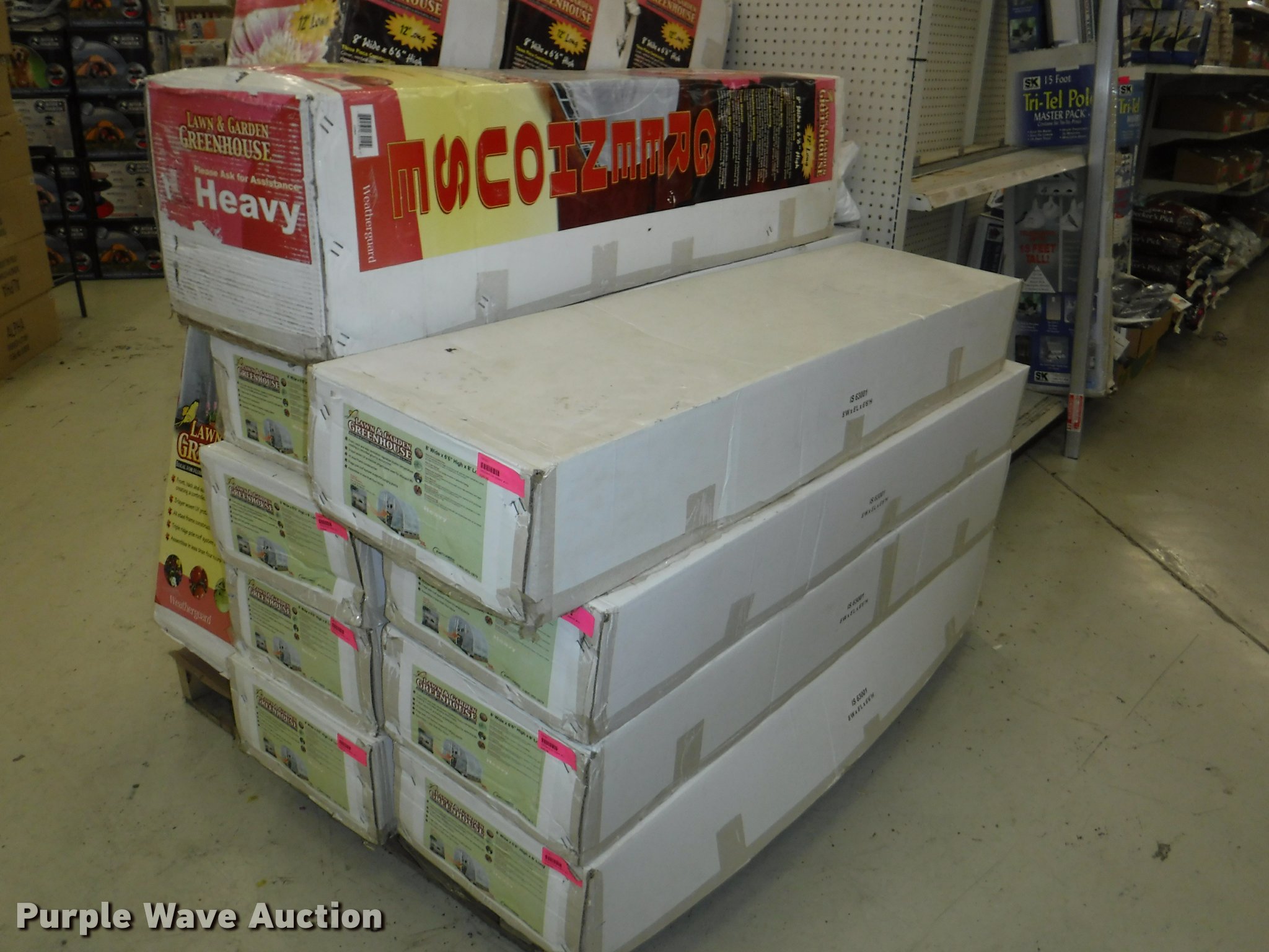 Purple Wave is selling a used Lawn and Garden in Missouri. This item is a Lawn and garden accessories with the following: Solar stake globes and lights, Door mats, Rain gauges, Thermometers, Wind chimes, Irrigation parts, Hose couplers and connectors, Sprinklers, Hose wands, Trash grabbers, 50' hose sets, Hose hangers, (25) water hoses, Pond filter, Greenhouse, Needs to be disassembled, Pond chemicals, (16) greenhouses in boxes, One display model