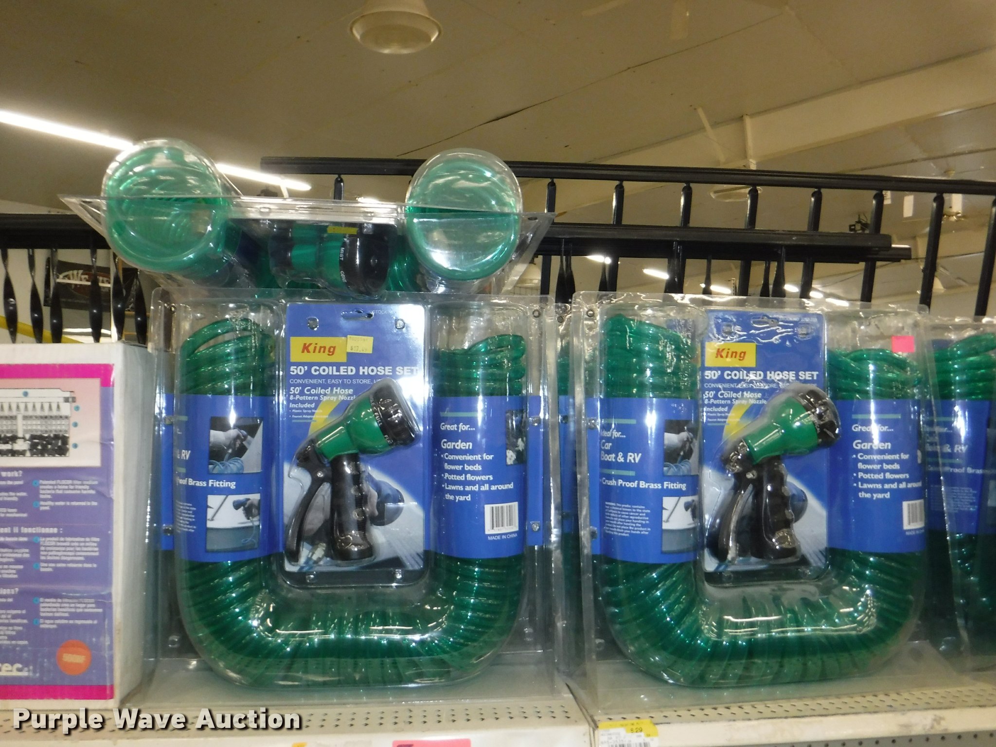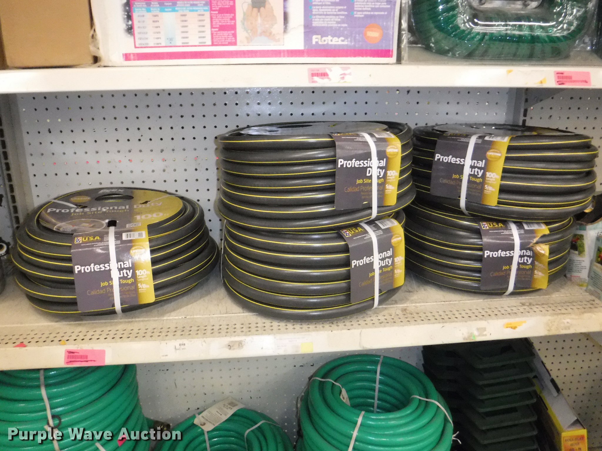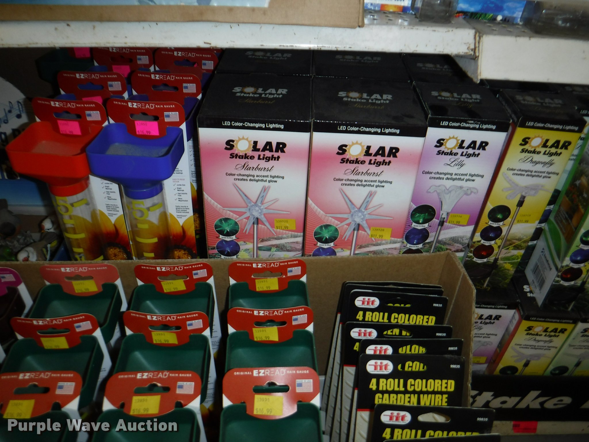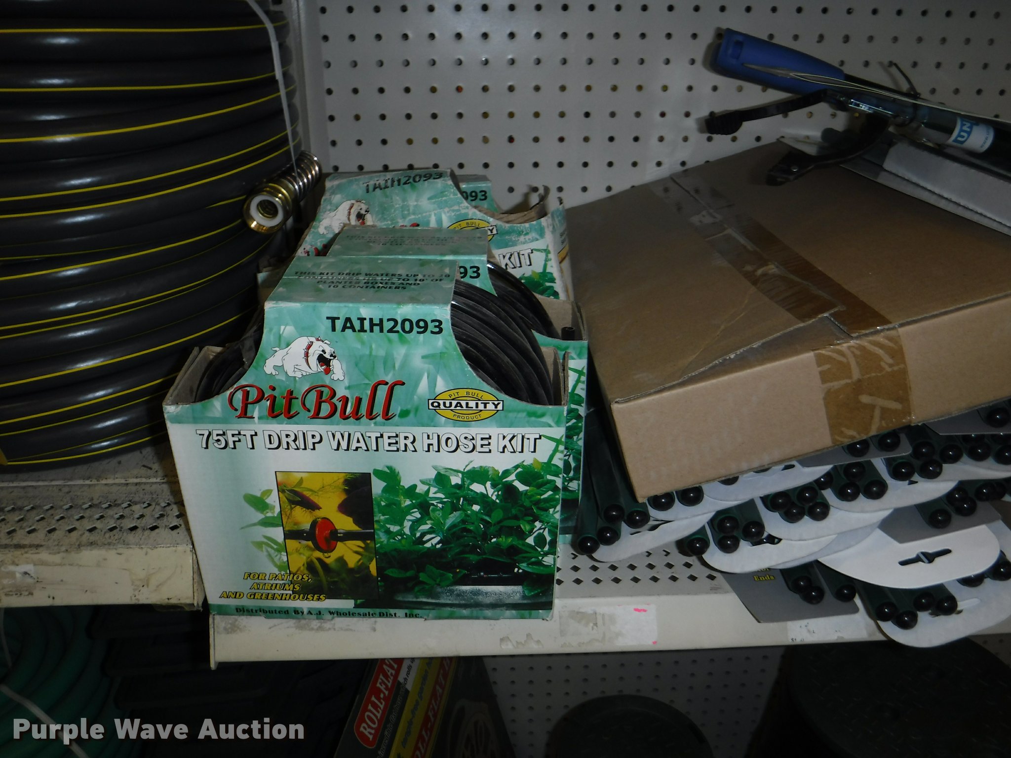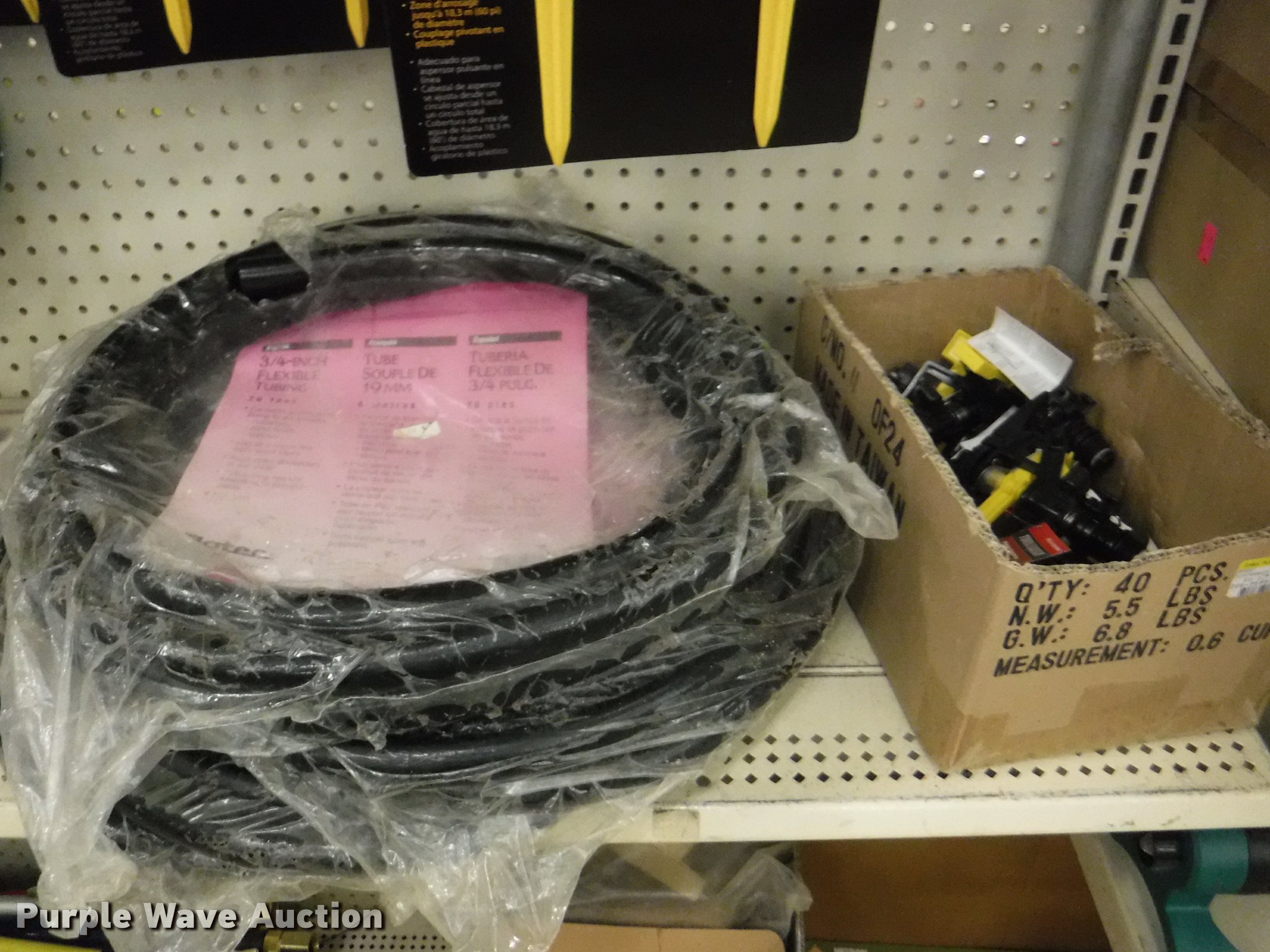 Purple Wave is selling a used Lawn and Garden in Missouri. This item is a Lawn and garden accessories with the following: Solar stake globes and lights, Door mats, Rain gauges, Thermometers, Wind chimes, Irrigation parts, Hose couplers and connectors, Sprinklers, Hose wands, Trash grabbers, 50' hose sets, Hose hangers, (25) water hoses, Pond filter, Greenhouse, Needs to be disassembled, Pond chemicals, (16) greenhouses in boxes, One display model