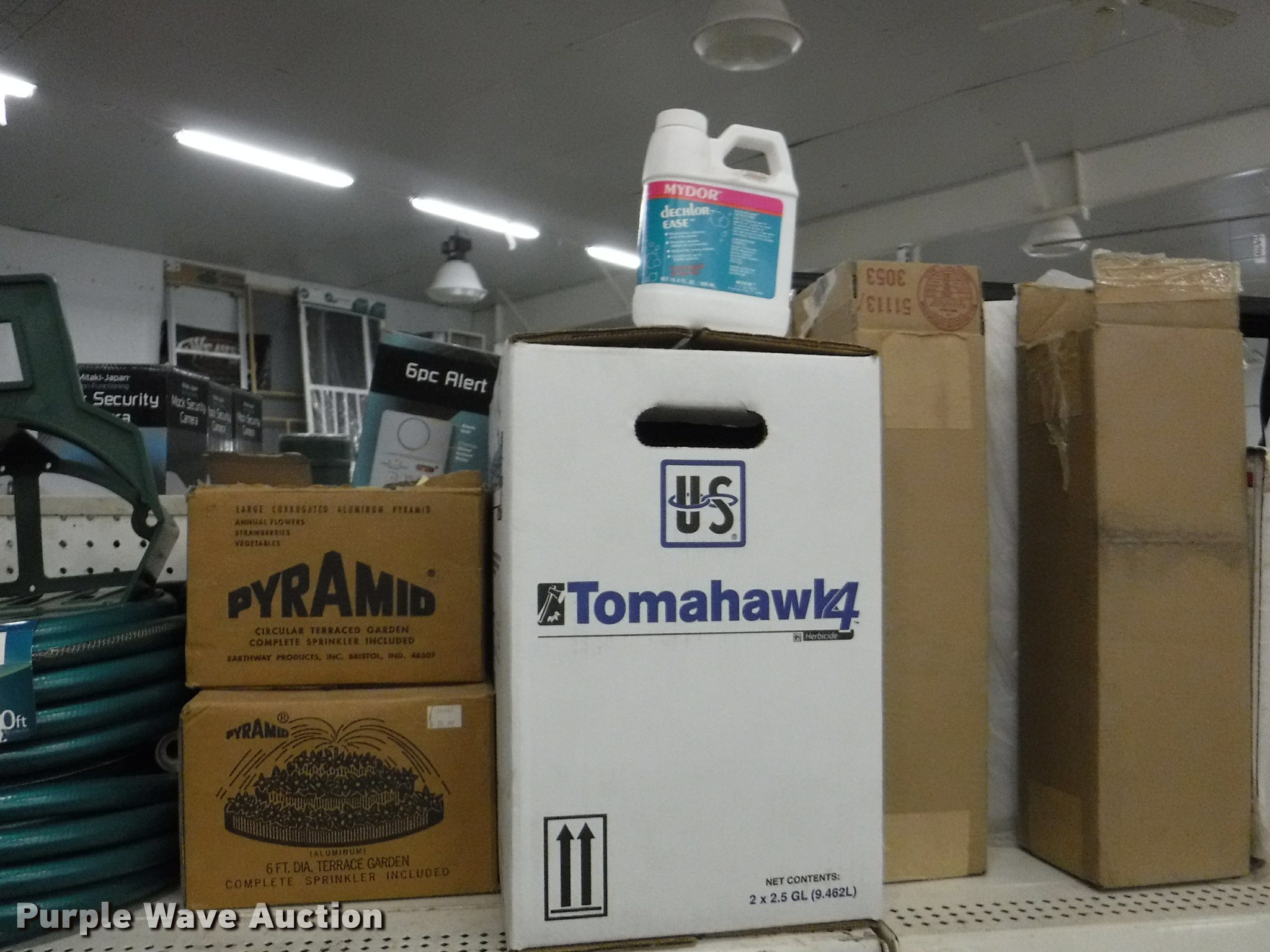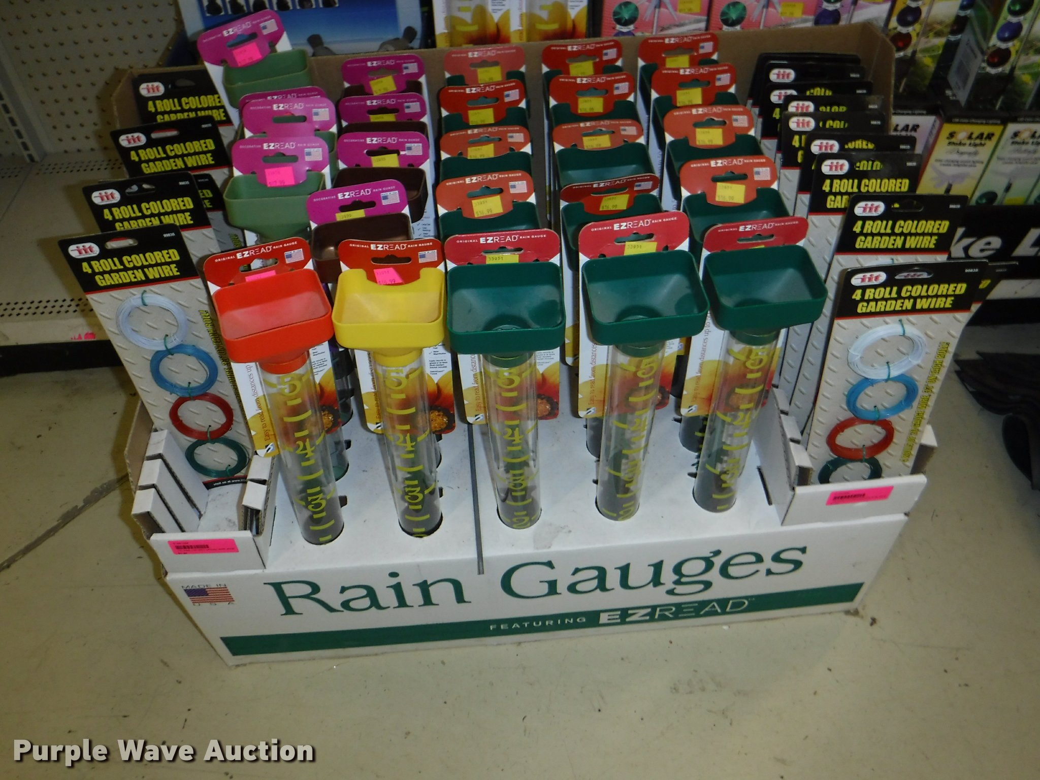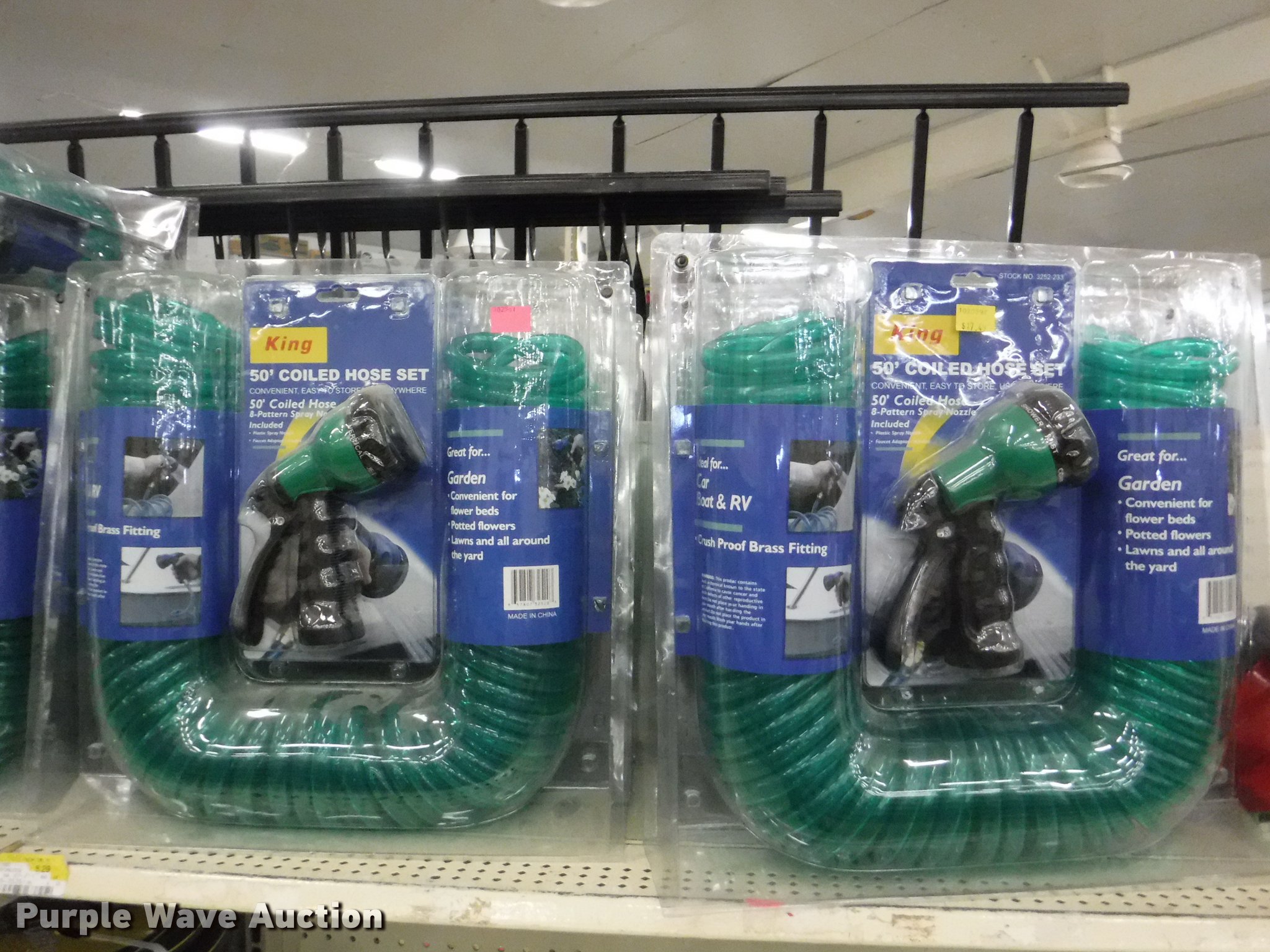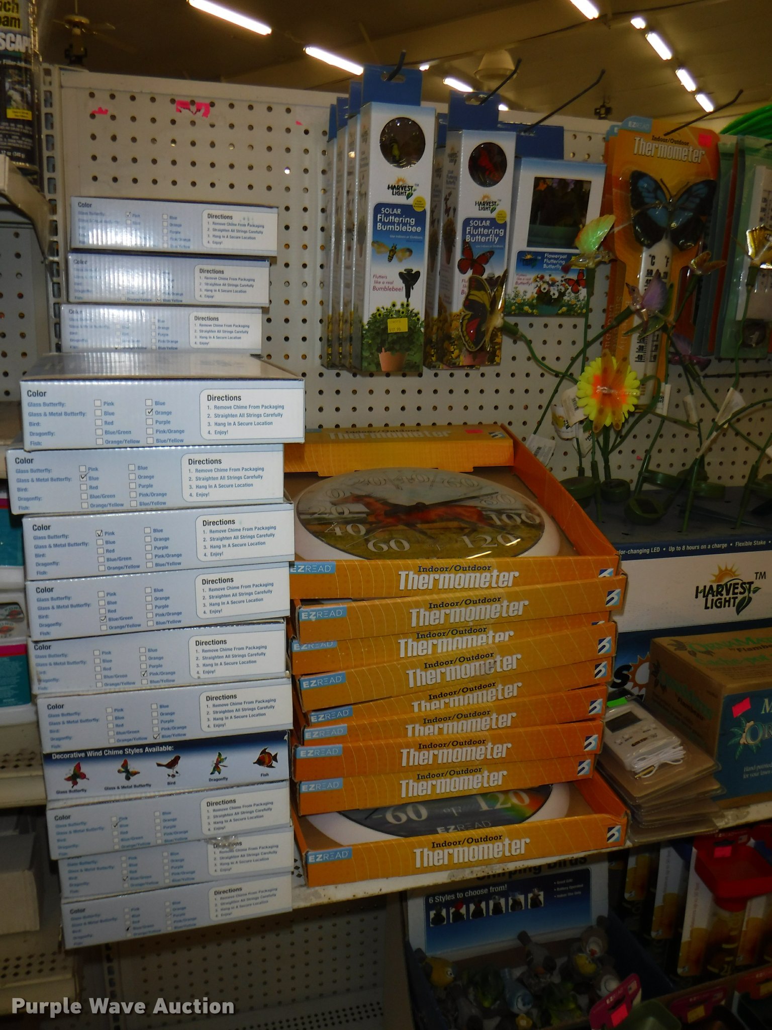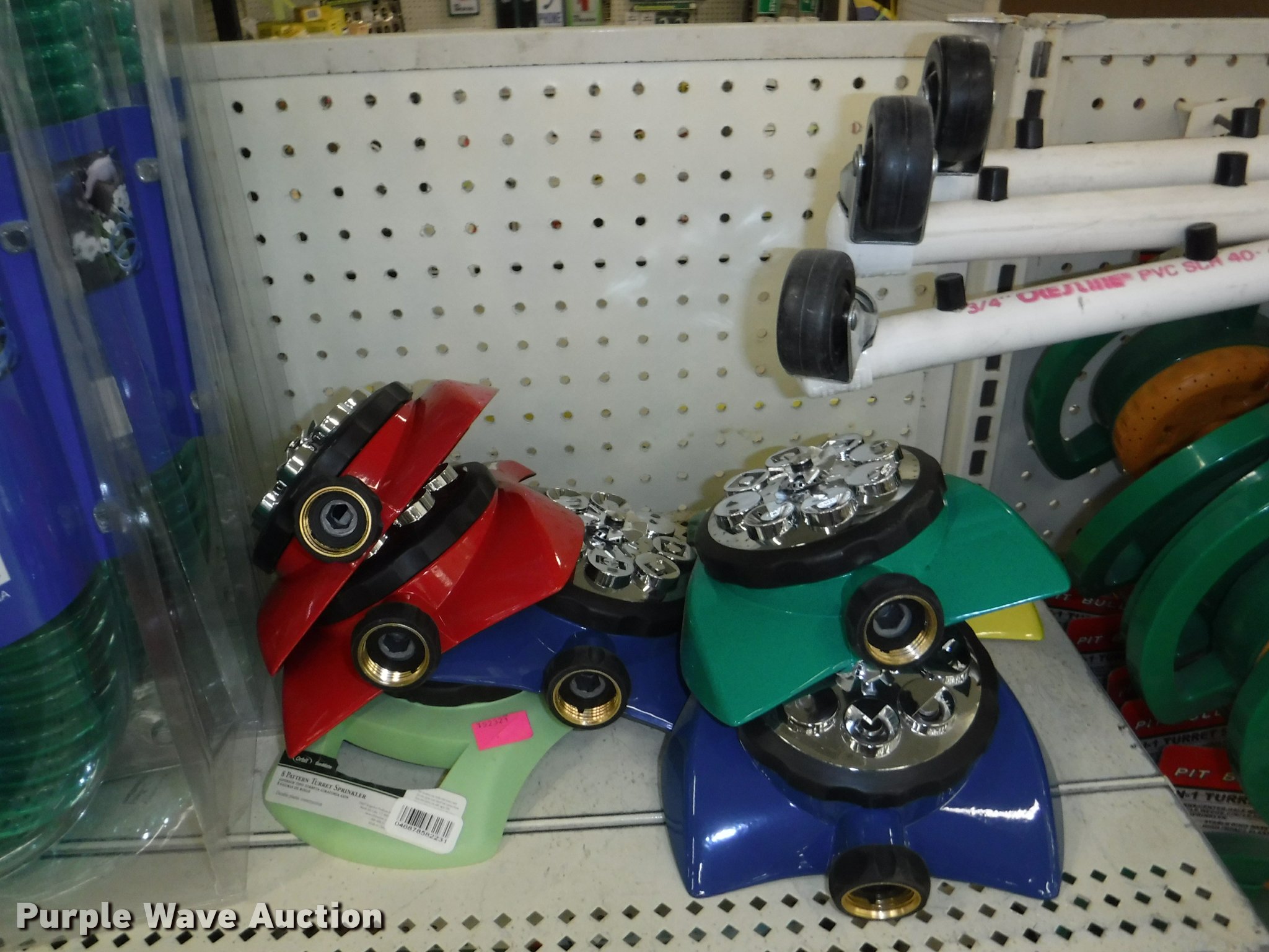 Purple Wave is selling a used Lawn and Garden in Missouri. This item is a Lawn and garden accessories with the following: Solar stake globes and lights, Door mats, Rain gauges, Thermometers, Wind chimes, Irrigation parts, Hose couplers and connectors, Sprinklers, Hose wands, Trash grabbers, 50' hose sets, Hose hangers, (25) water hoses, Pond filter, Greenhouse, Needs to be disassembled, Pond chemicals, (16) greenhouses in boxes, One display model