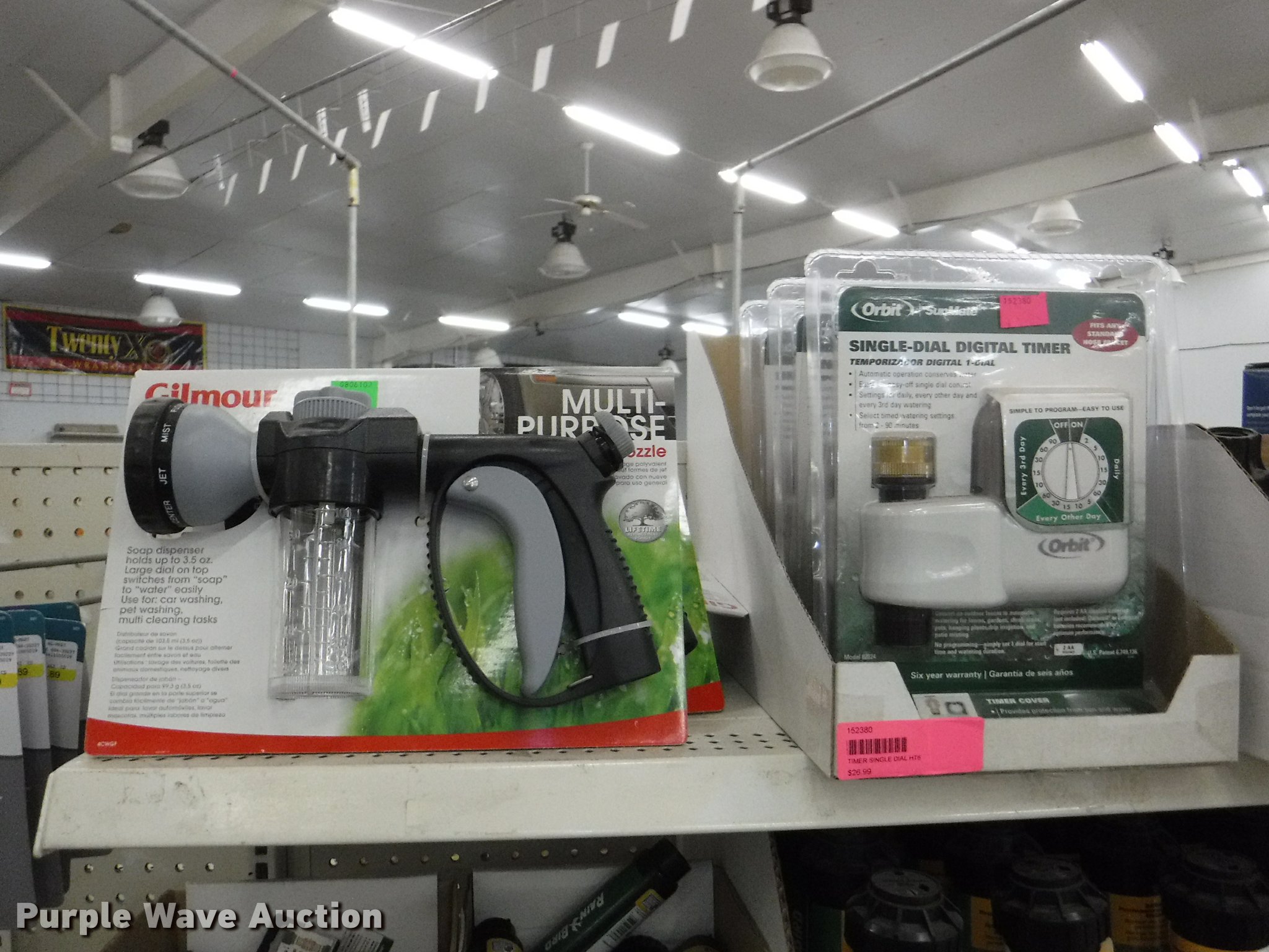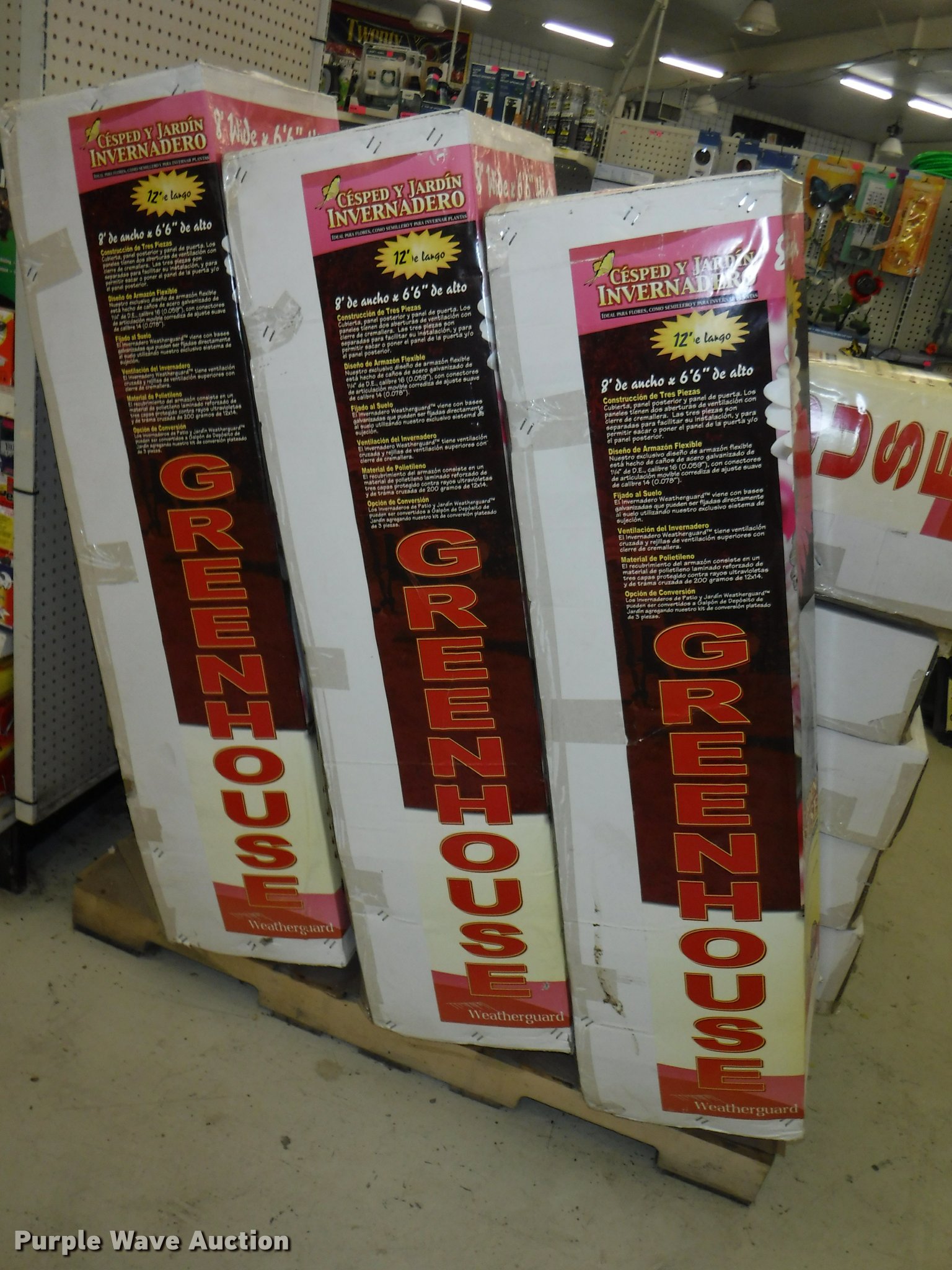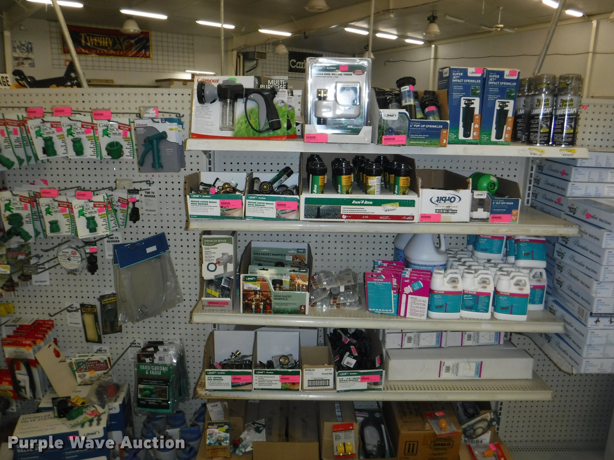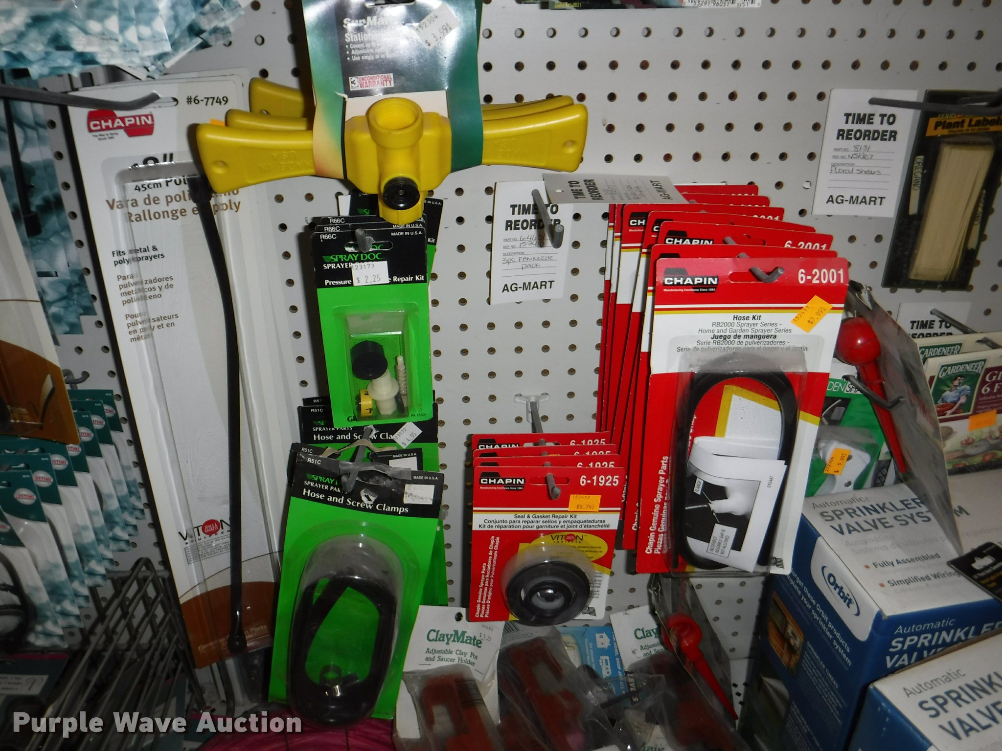 Purple Wave is selling a used Lawn and Garden in Missouri. This item is a Lawn and garden accessories with the following: Solar stake globes and lights, Door mats, Rain gauges, Thermometers, Wind chimes, Irrigation parts, Hose couplers and connectors, Sprinklers, Hose wands, Trash grabbers, 50' hose sets, Hose hangers, (25) water hoses, Pond filter, Greenhouse, Needs to be disassembled, Pond chemicals, (16) greenhouses in boxes, One display model