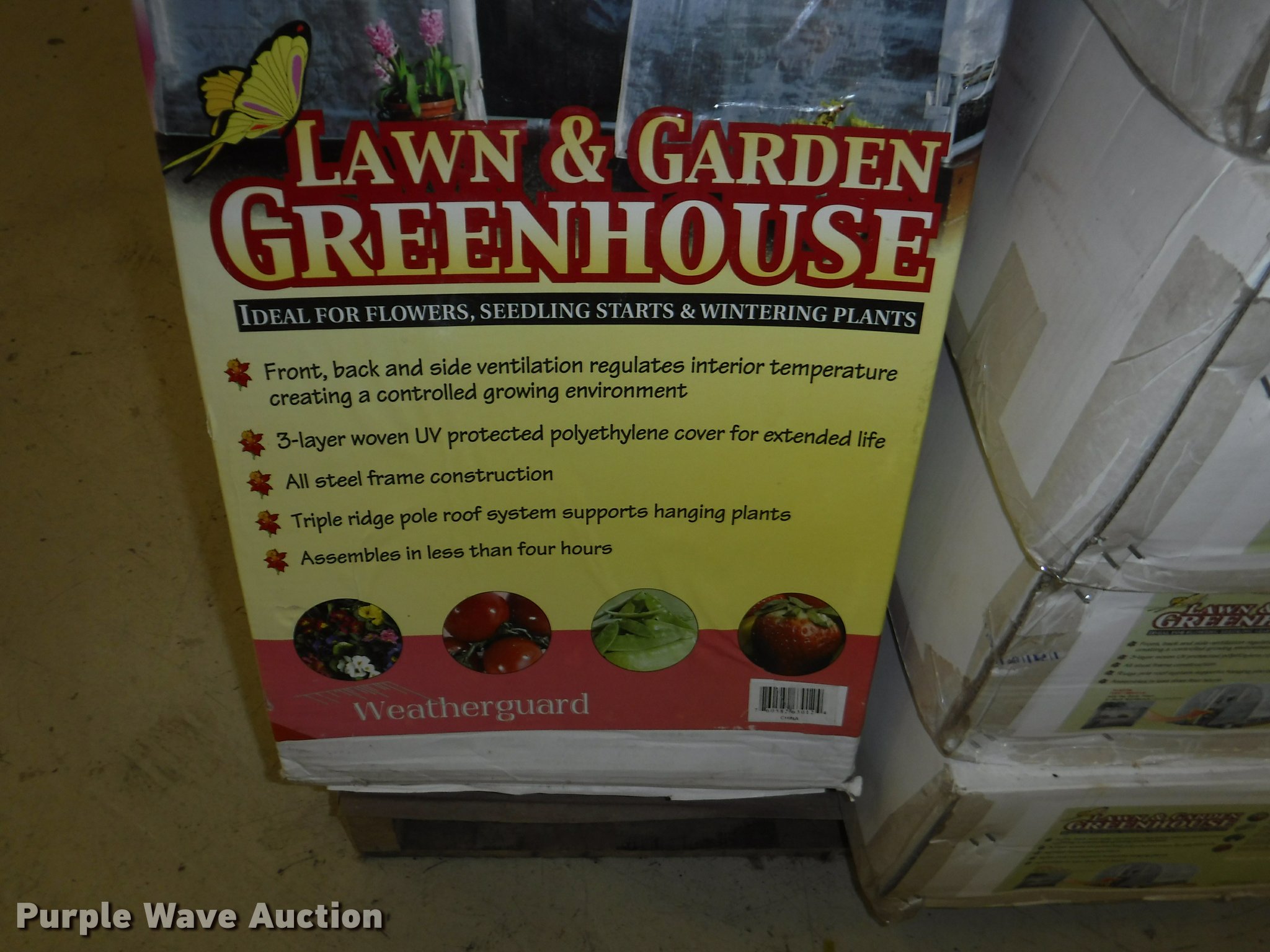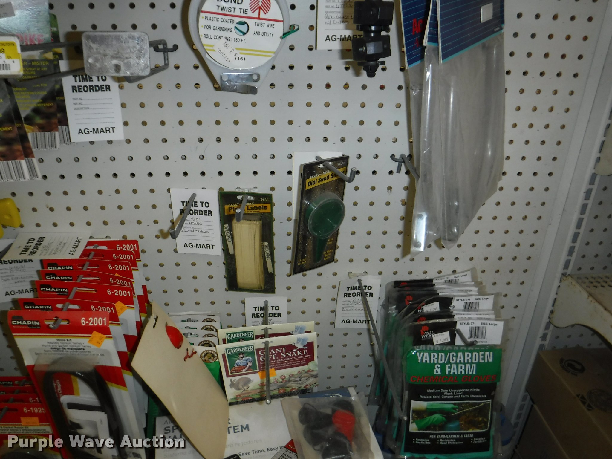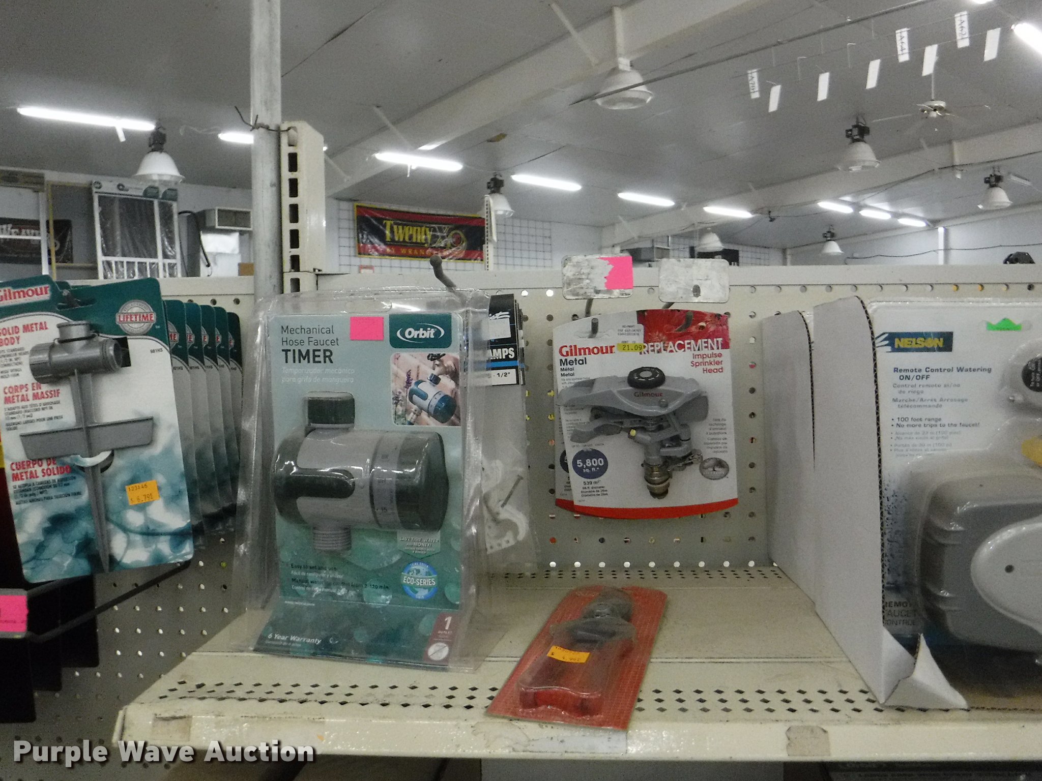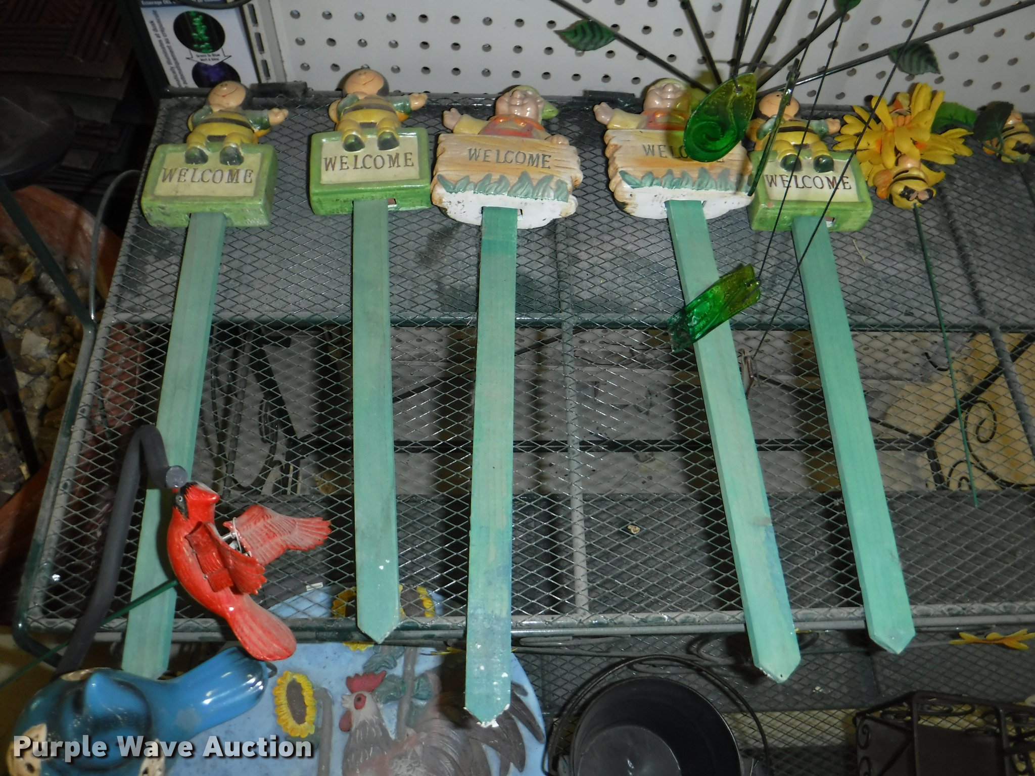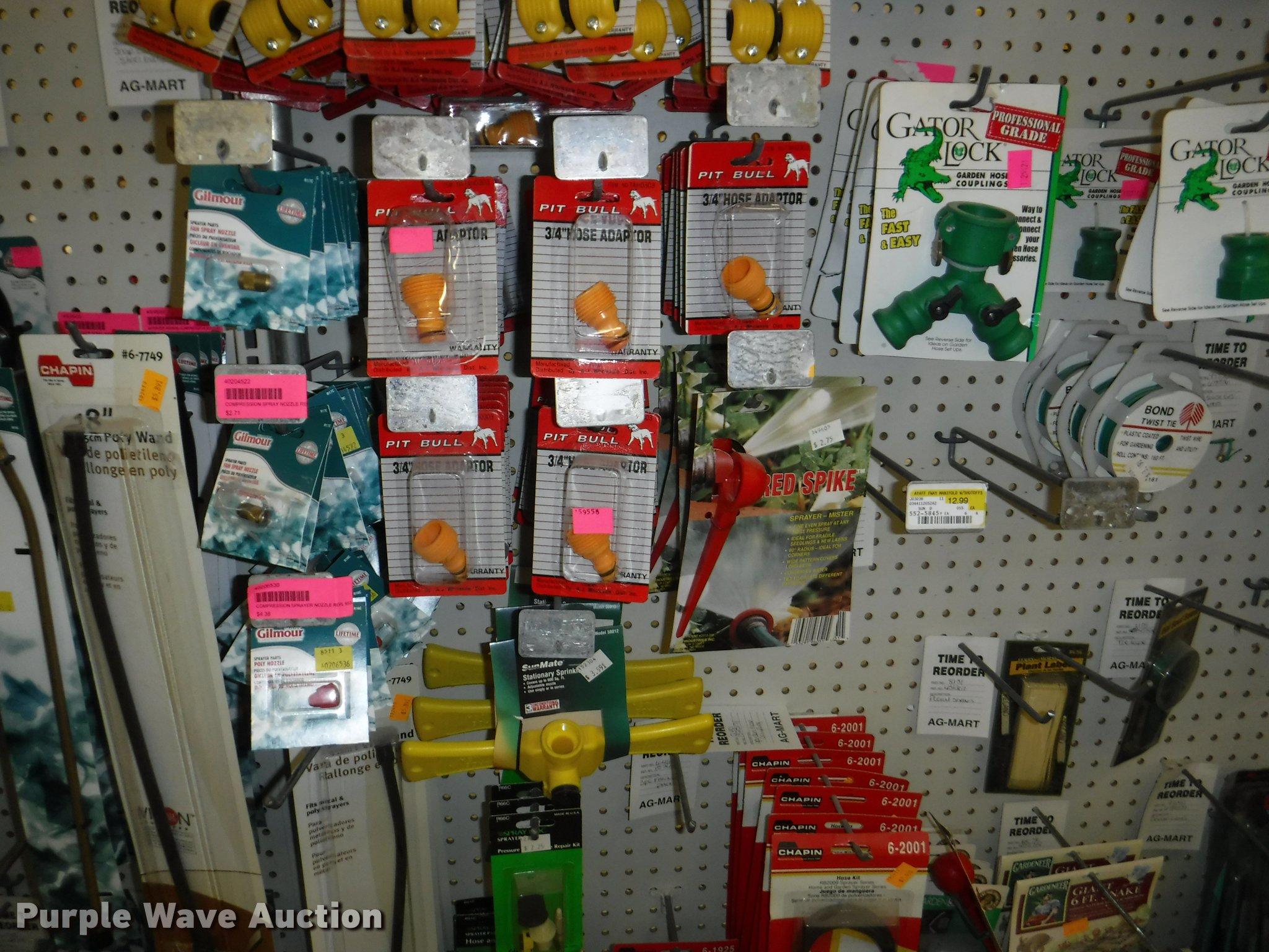Purple Wave is selling a used Lawn and Garden in Missouri. This item is a Lawn and garden accessories with the following: Solar stake globes and lights, Door mats, Rain gauges, Thermometers, Wind chimes, Irrigation parts, Hose couplers and connectors, Sprinklers, Hose wands, Trash grabbers, 50' hose sets, Hose hangers, (25) water hoses, Pond filter, Greenhouse, Needs to be disassembled, Pond chemicals, (16) greenhouses in boxes, One display model