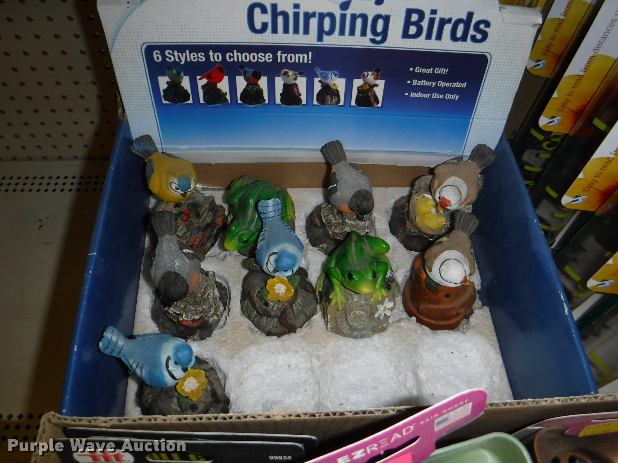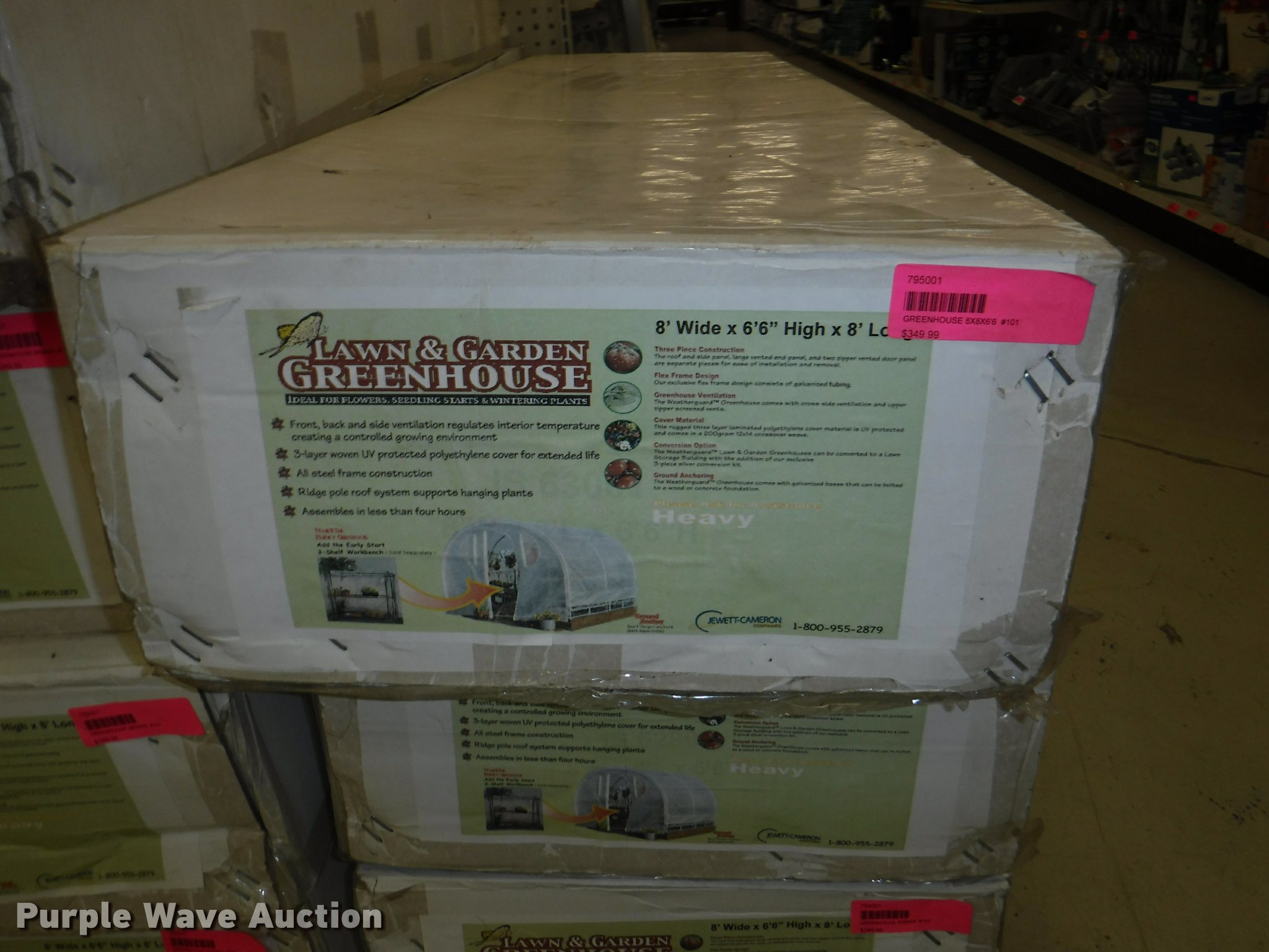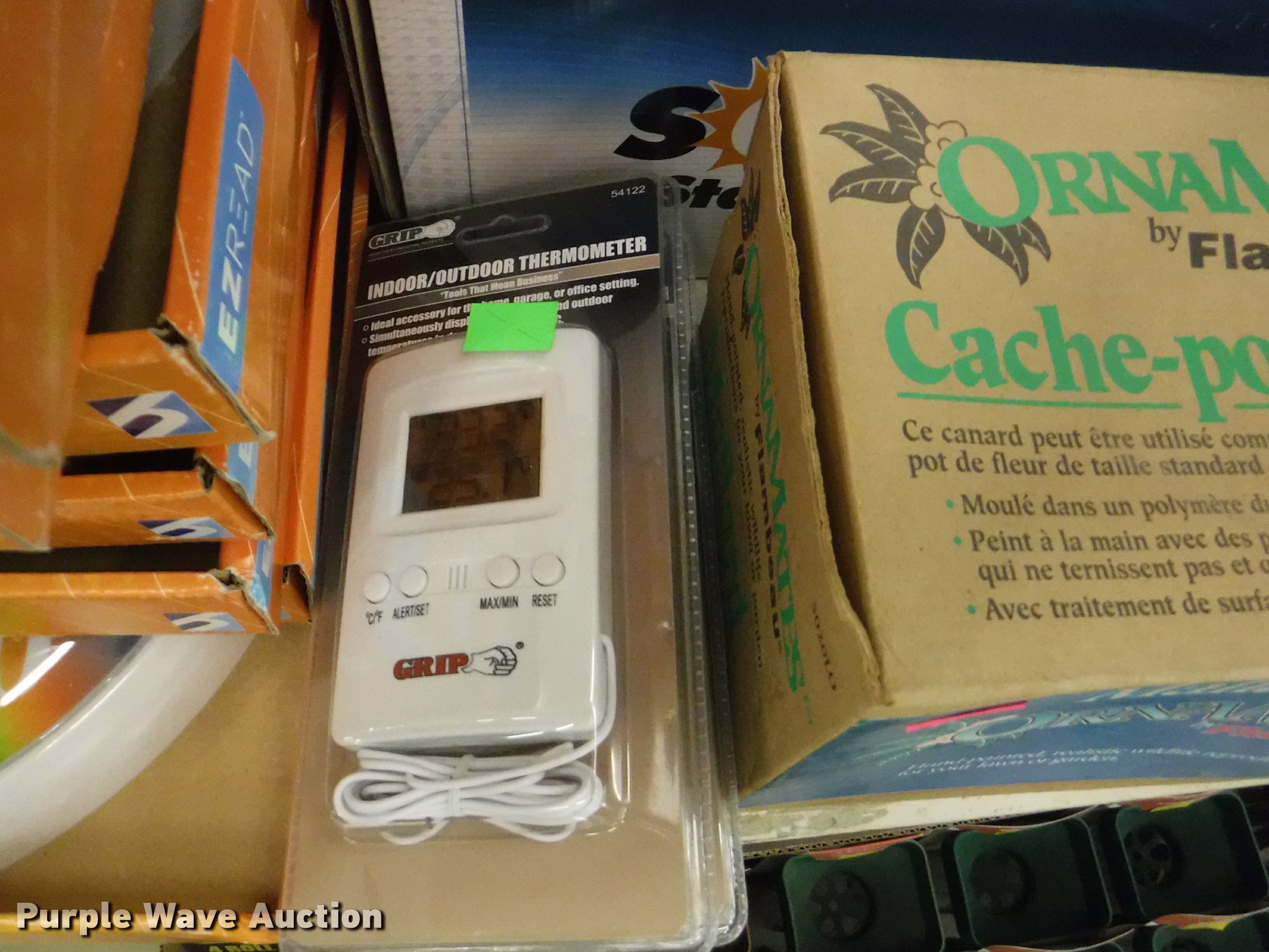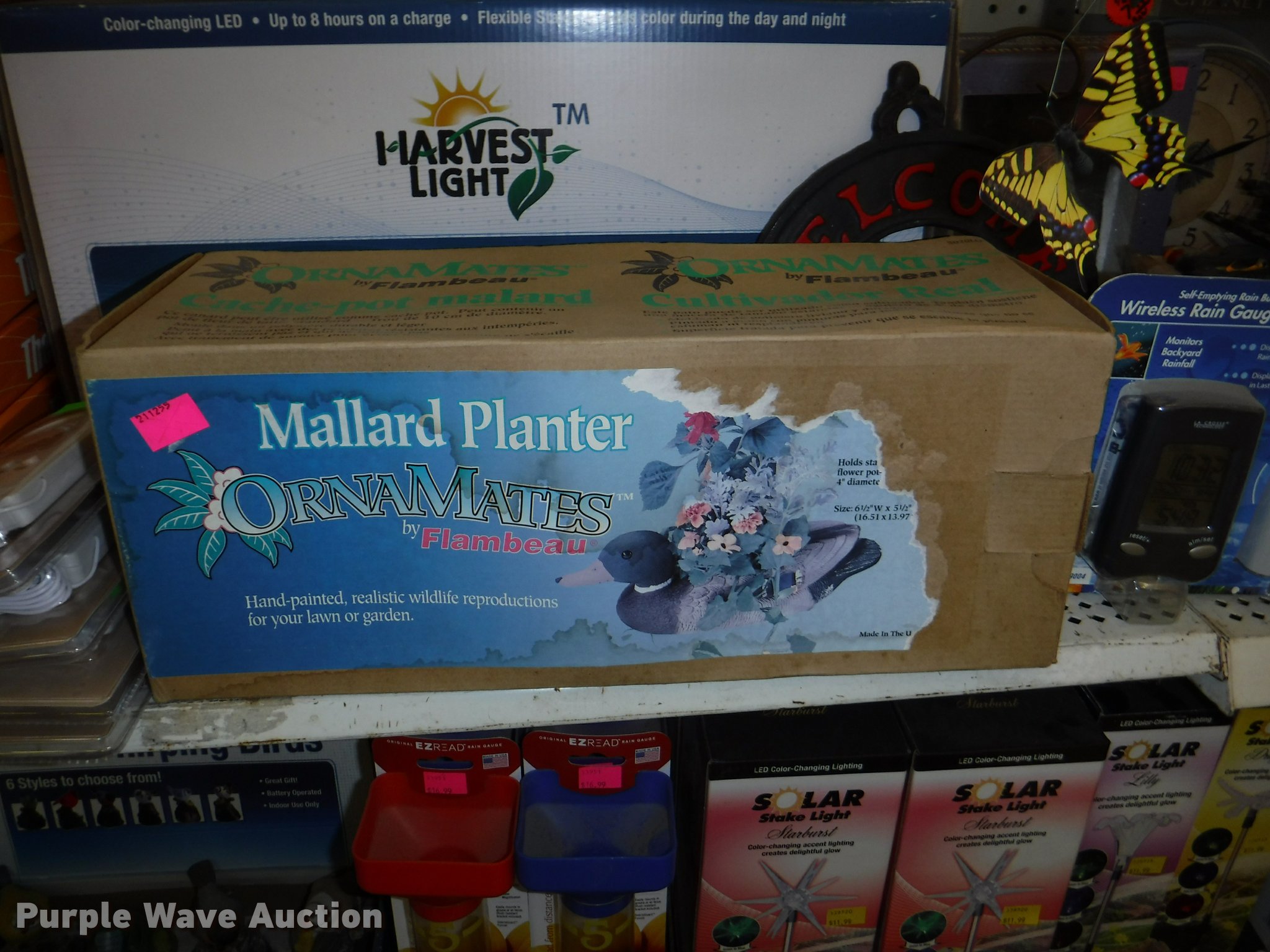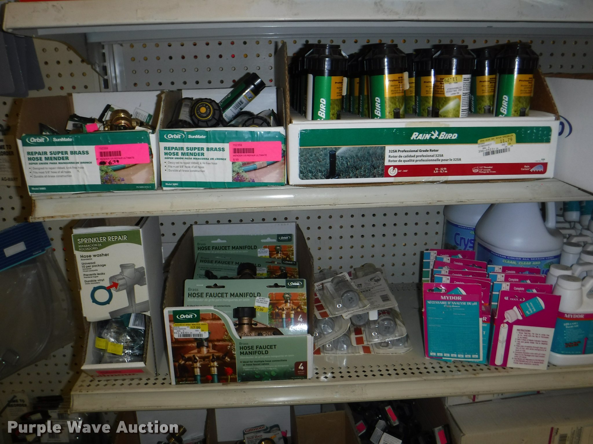 Purple Wave is selling a used Lawn and Garden in Missouri. This item is a Lawn and garden accessories with the following: Solar stake globes and lights, Door mats, Rain gauges, Thermometers, Wind chimes, Irrigation parts, Hose couplers and connectors, Sprinklers, Hose wands, Trash grabbers, 50' hose sets, Hose hangers, (25) water hoses, Pond filter, Greenhouse, Needs to be disassembled, Pond chemicals, (16) greenhouses in boxes, One display model