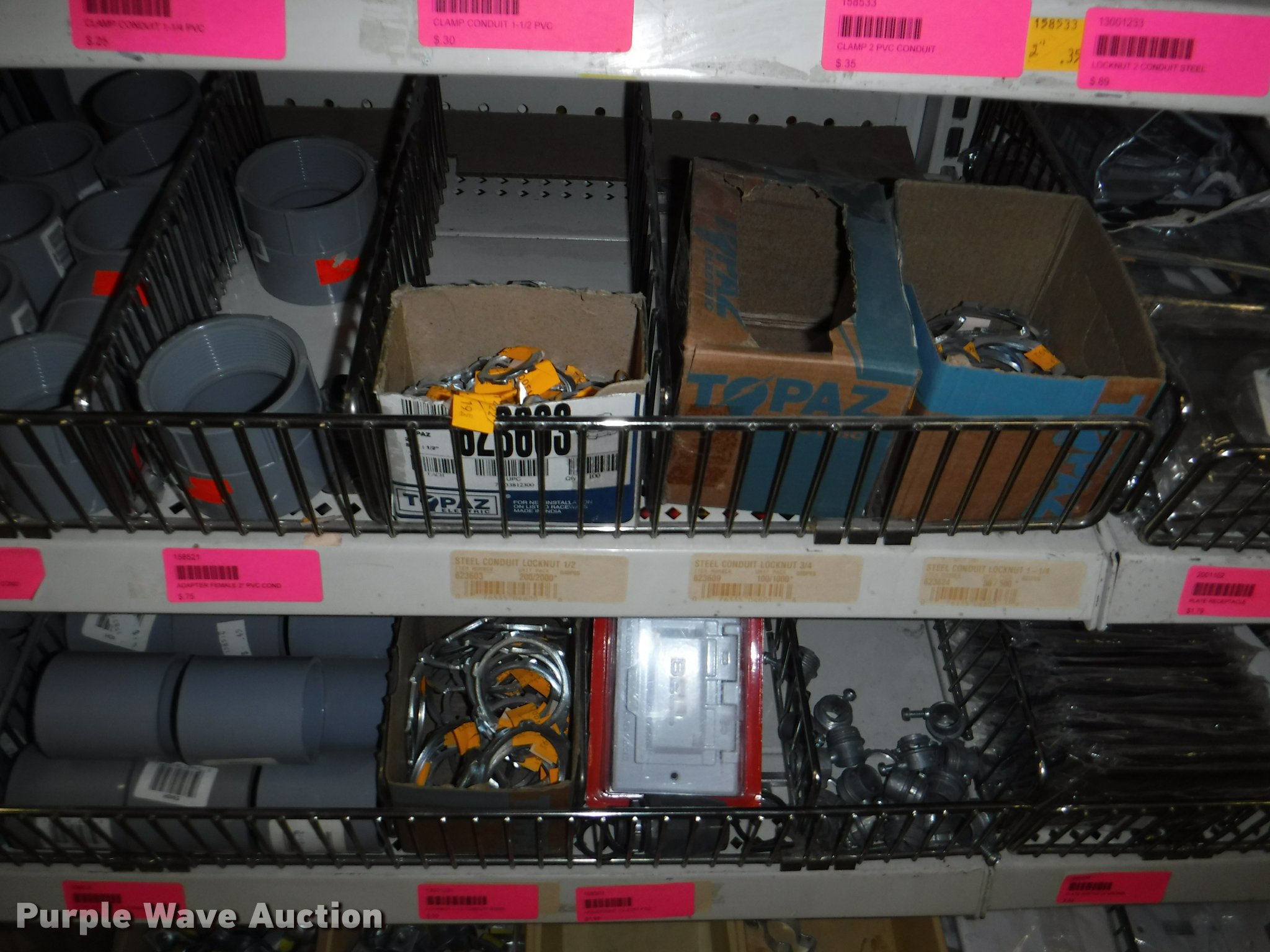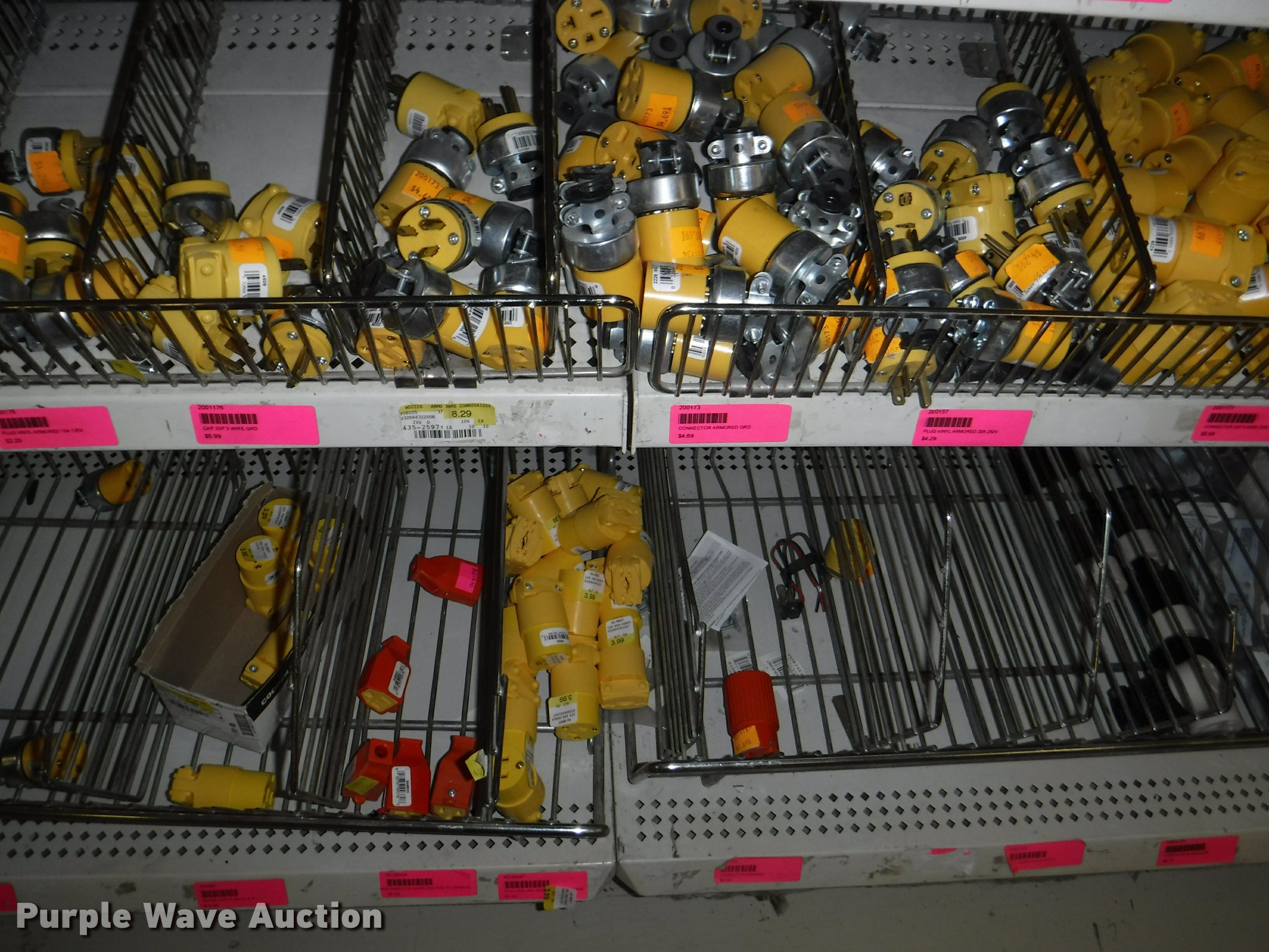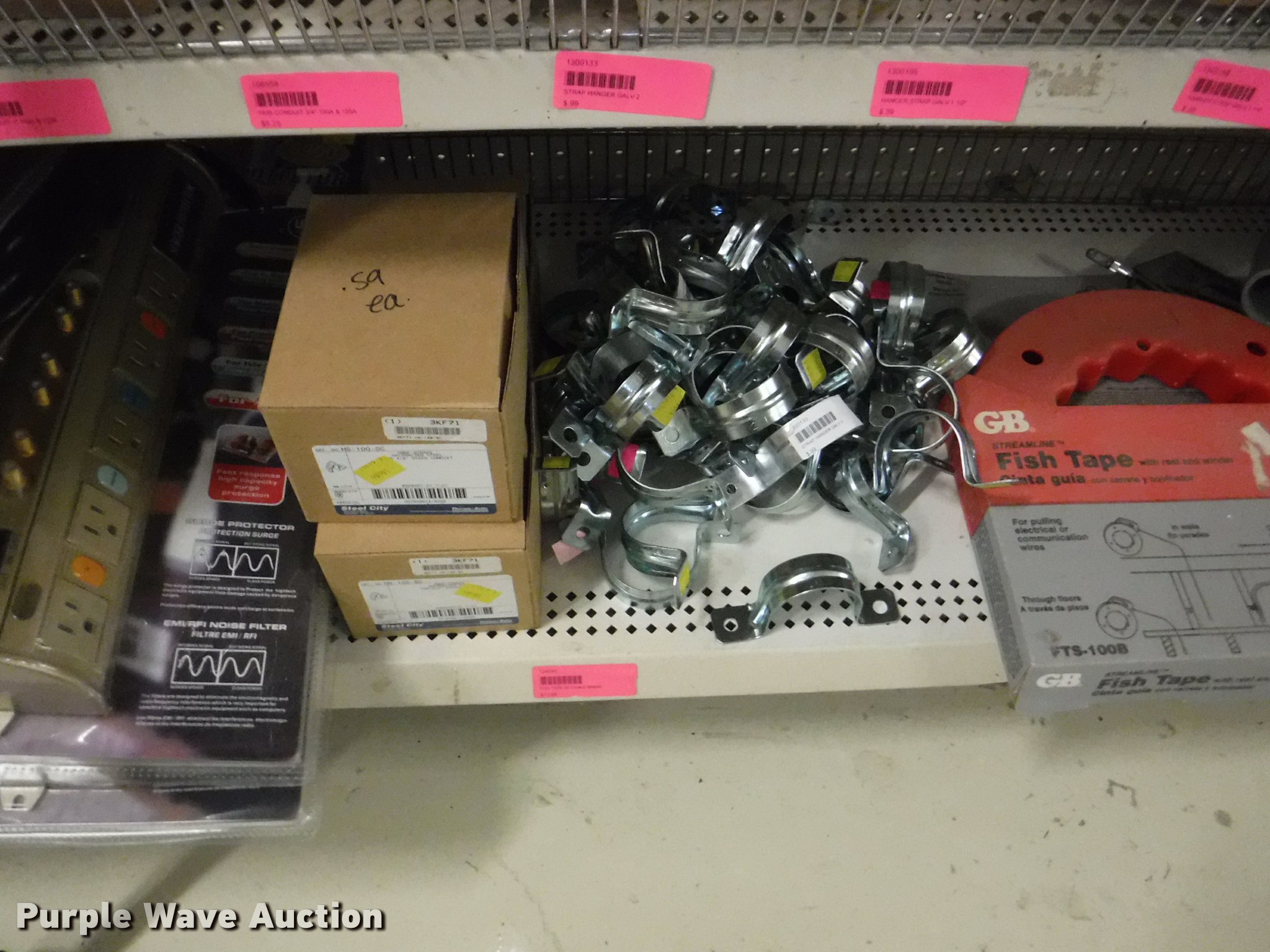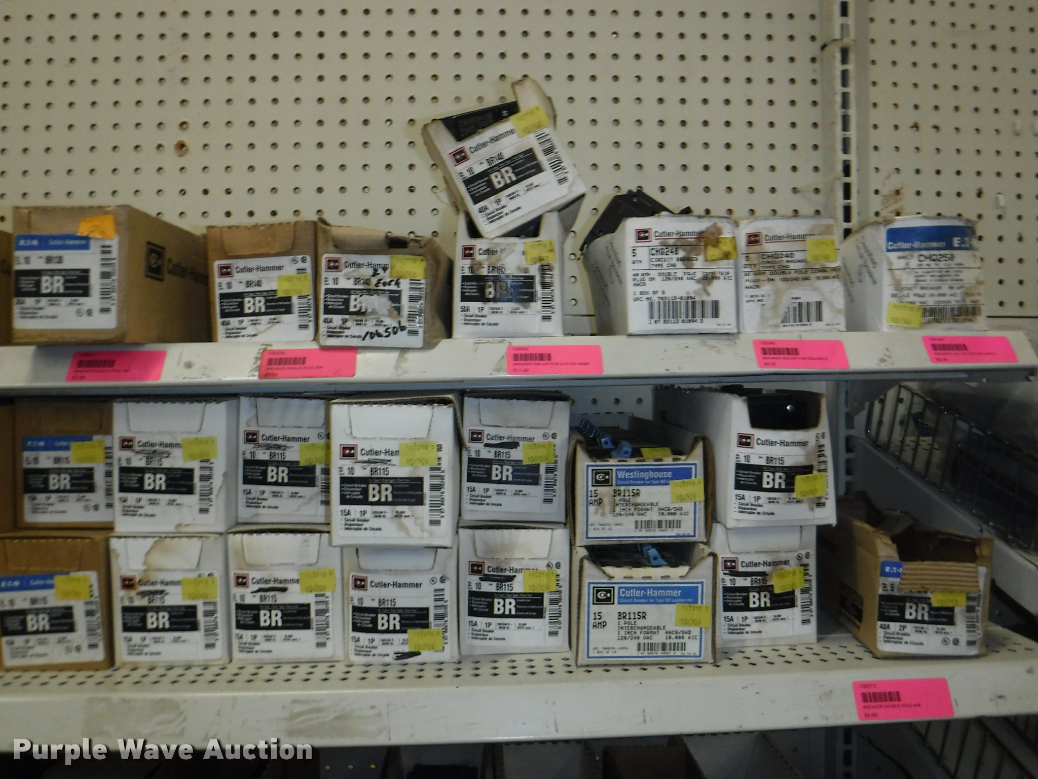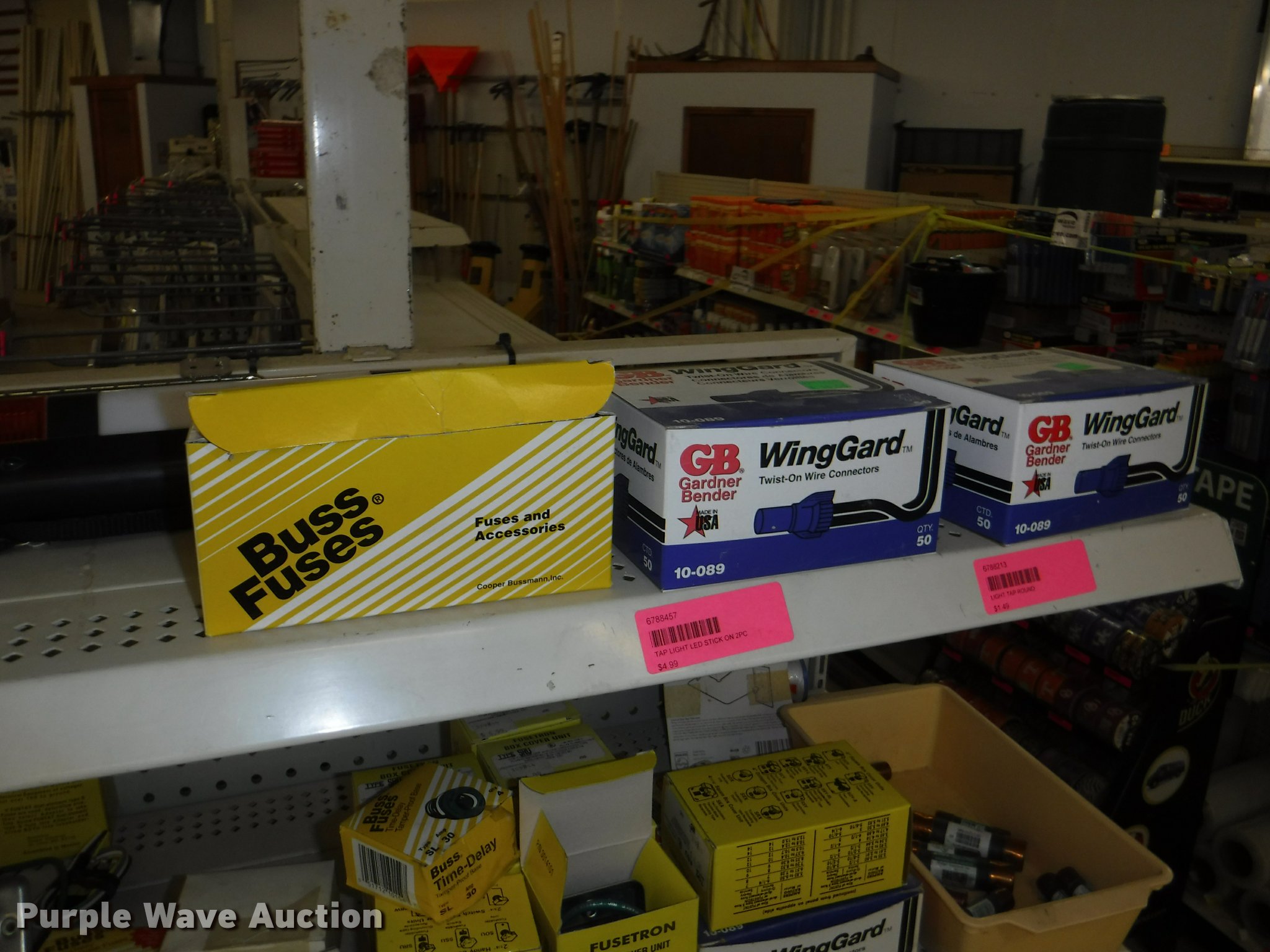 Purple Wave is selling a used Building Materials in Missouri. This item is a Electrical supplies with the following: Wiring with display rack, (8) breaker boxes, Electrical tape, Circuit breakers, Brackets, Conduit and adapters, Fish tape, Cable snakes, Night lights, Outlet/switch covers, Outlet sealers, Plug ends, Light bulb sockets, Dimmers/switches, Fuses, Crimping sets, Wire connectors and more