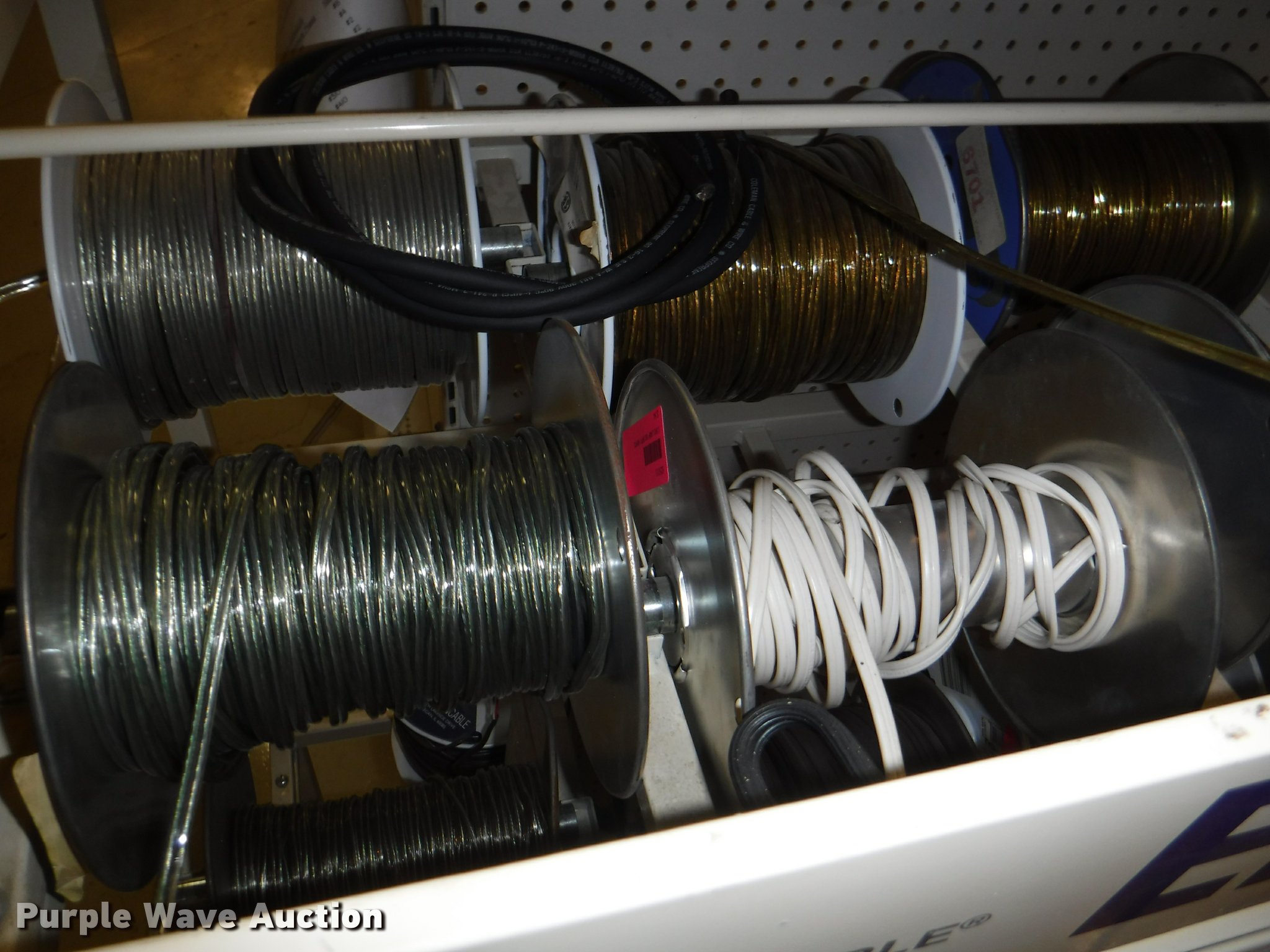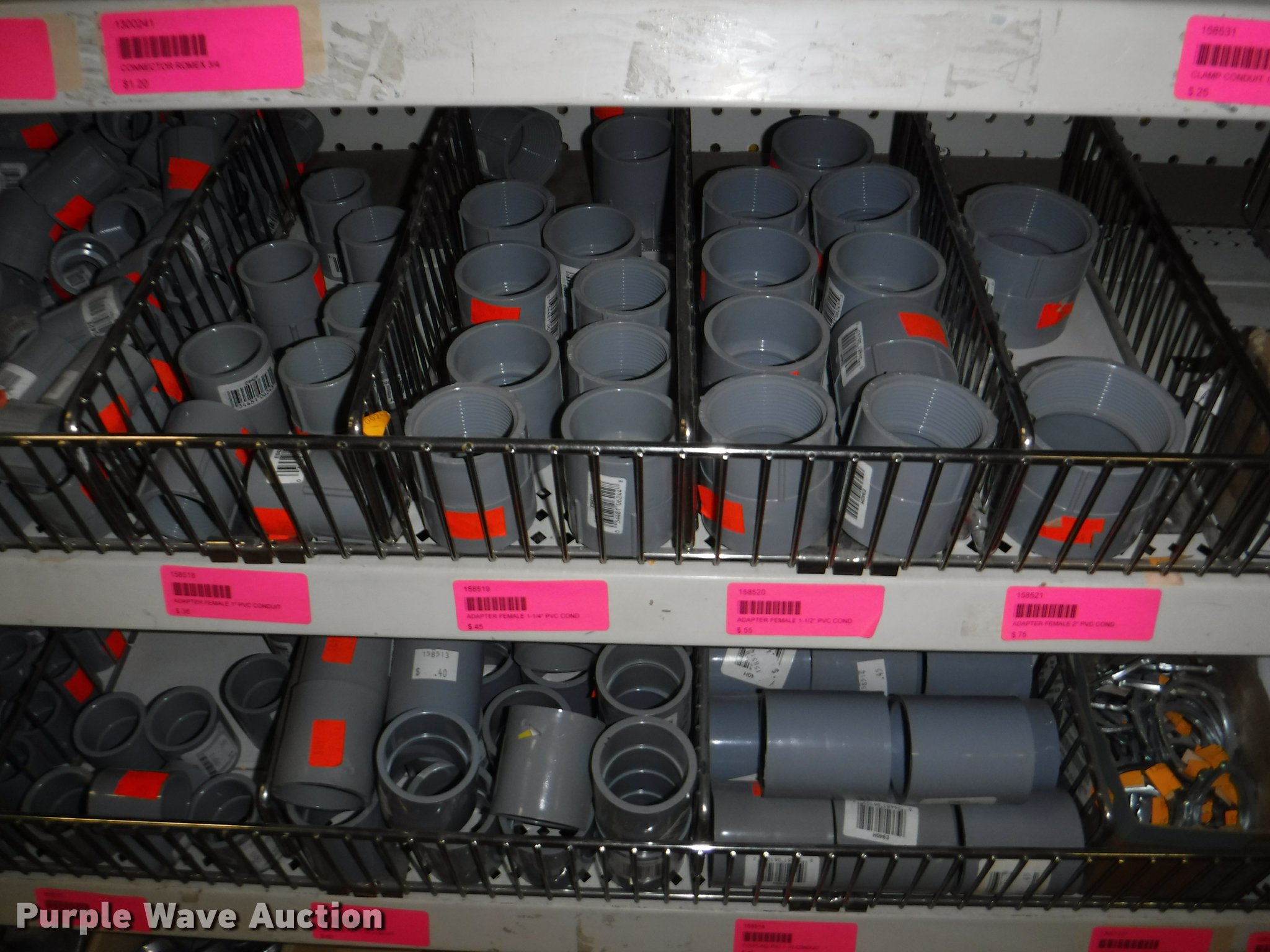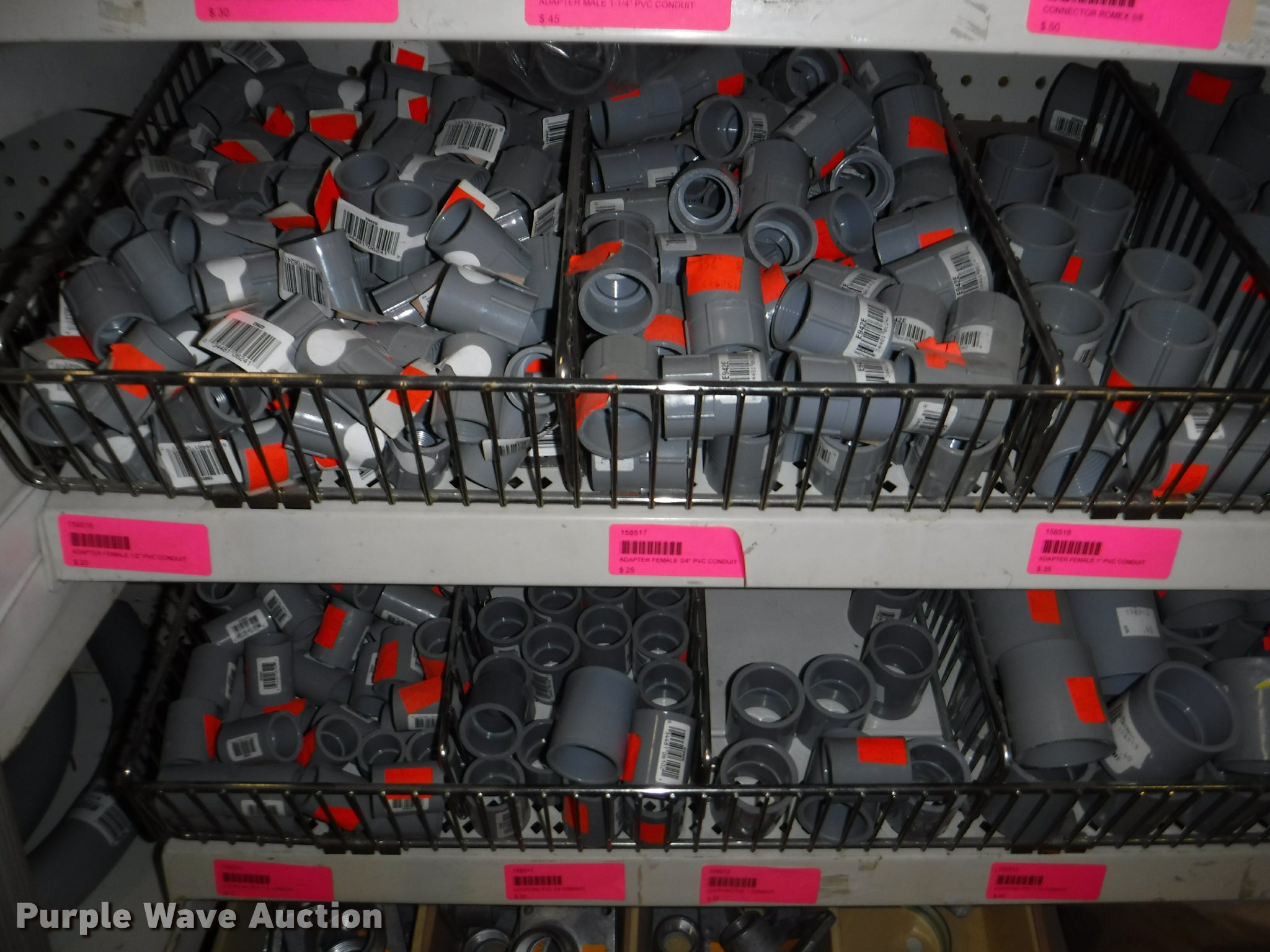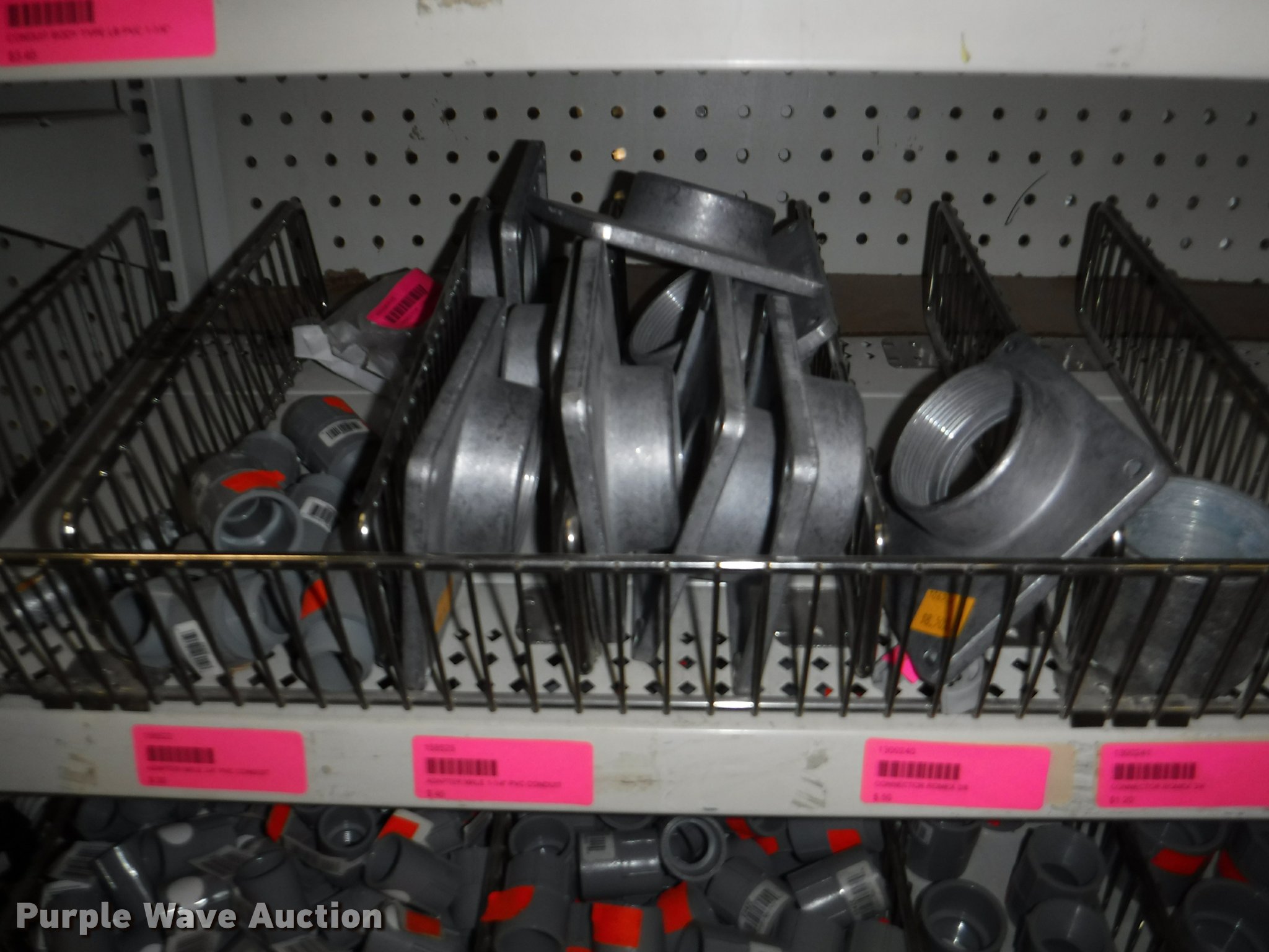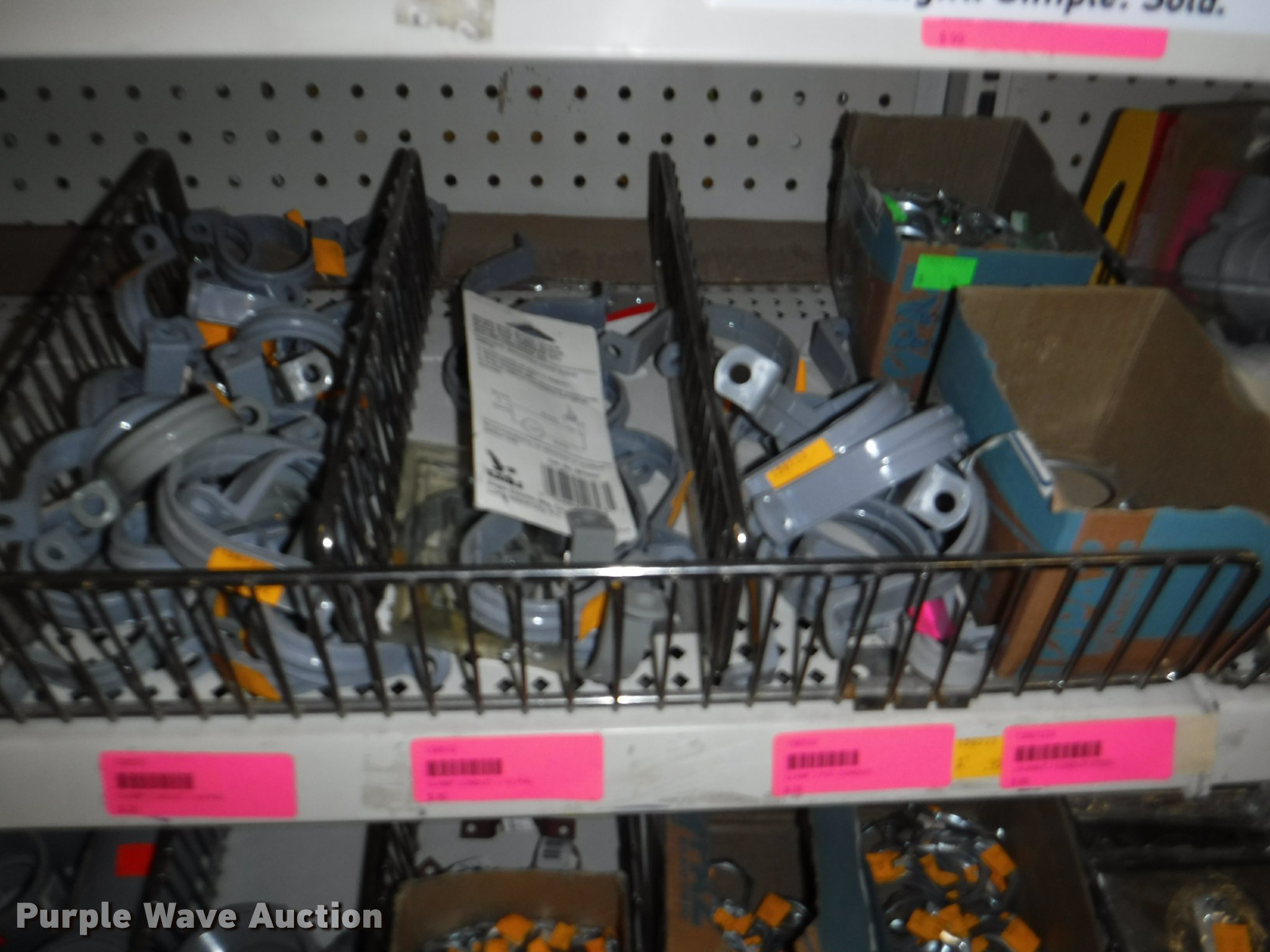 Purple Wave is selling a used Building Materials in Missouri. This item is a Electrical supplies with the following: Wiring with display rack, (8) breaker boxes, Electrical tape, Circuit breakers, Brackets, Conduit and adapters, Fish tape, Cable snakes, Night lights, Outlet/switch covers, Outlet sealers, Plug ends, Light bulb sockets, Dimmers/switches, Fuses, Crimping sets, Wire connectors and more