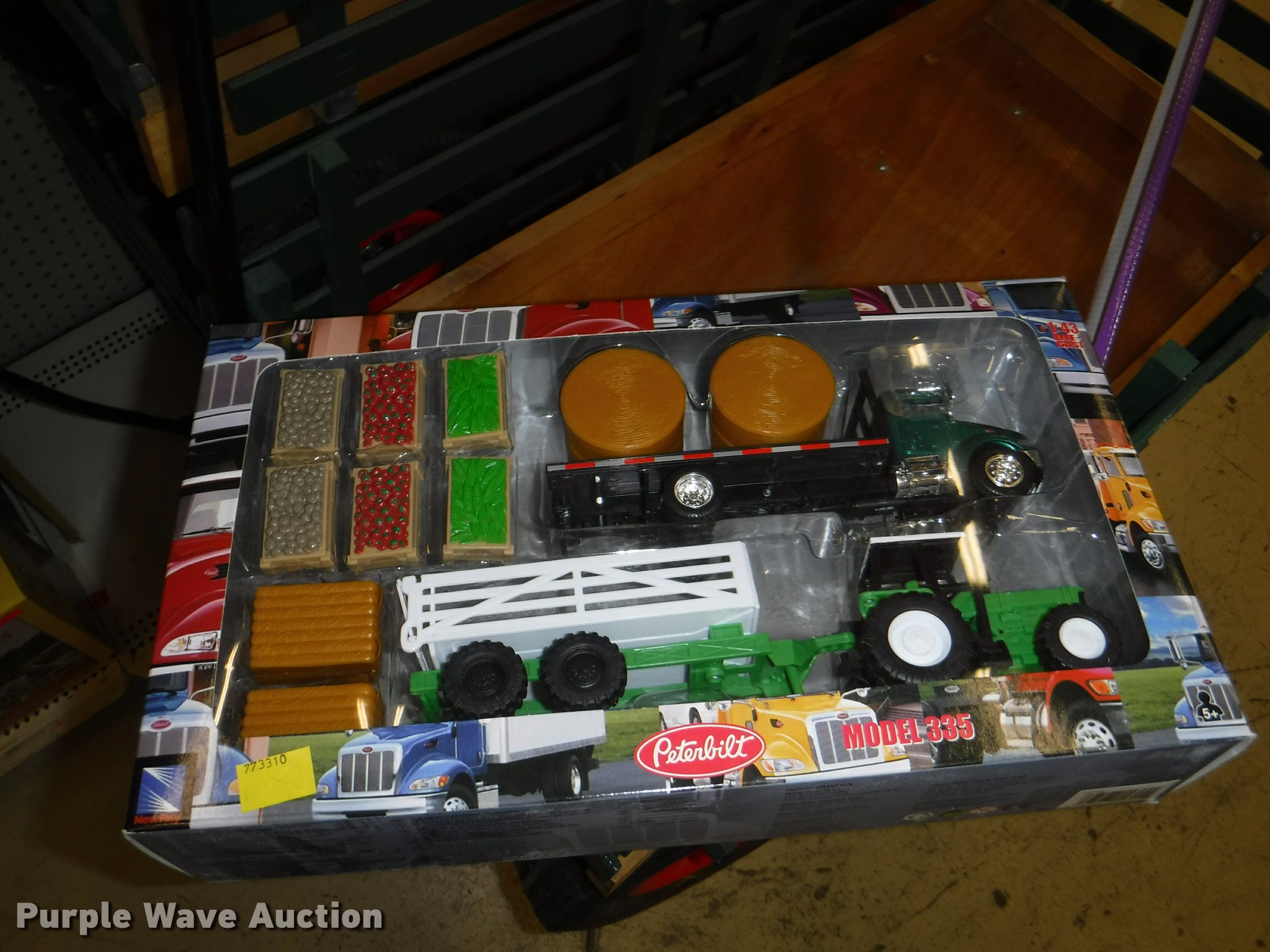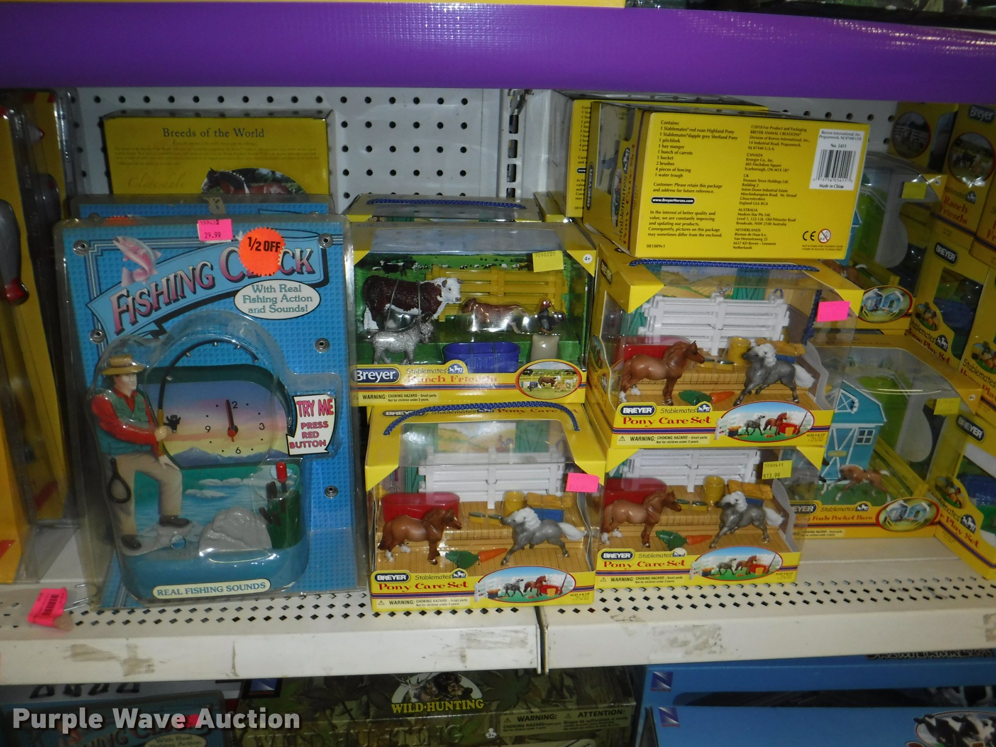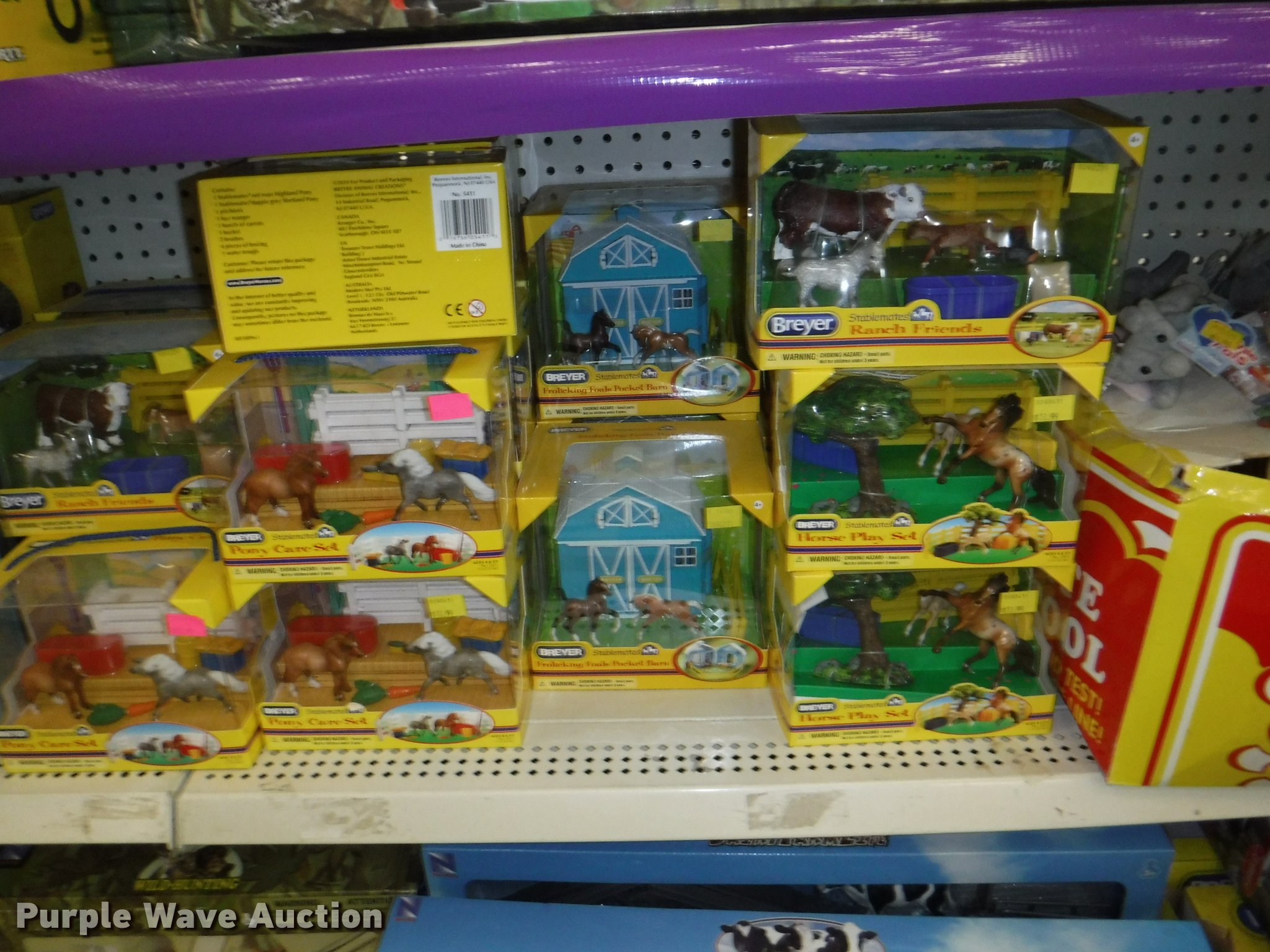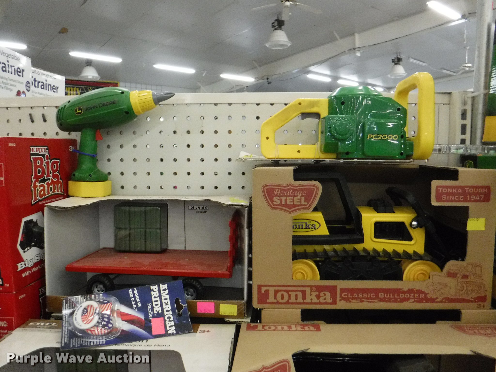 Purple Wave is selling a used All Other Household Items in Missouri. This item is a Children's toys and books with the following: (5) wood wagons, Barnyard figurines, Sidewalk chalk, Ert 1 tractors, trucks, and farm implements, Sport fishing clocks, Sea Palace play sets, Peterbilt 387 car, Police force models, Kites, RC Micro racing motorcycles, Ring caps, John Deere tractor with trailer, 12V, Ages 3 to 7 years old, Piggy banks, (2) Winchester Action Sound BB guns, Coloring books with rack