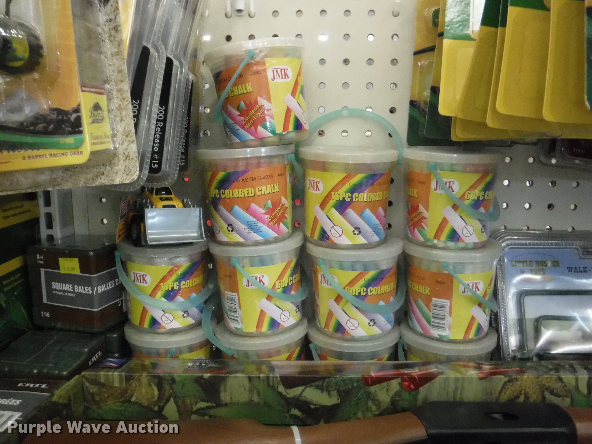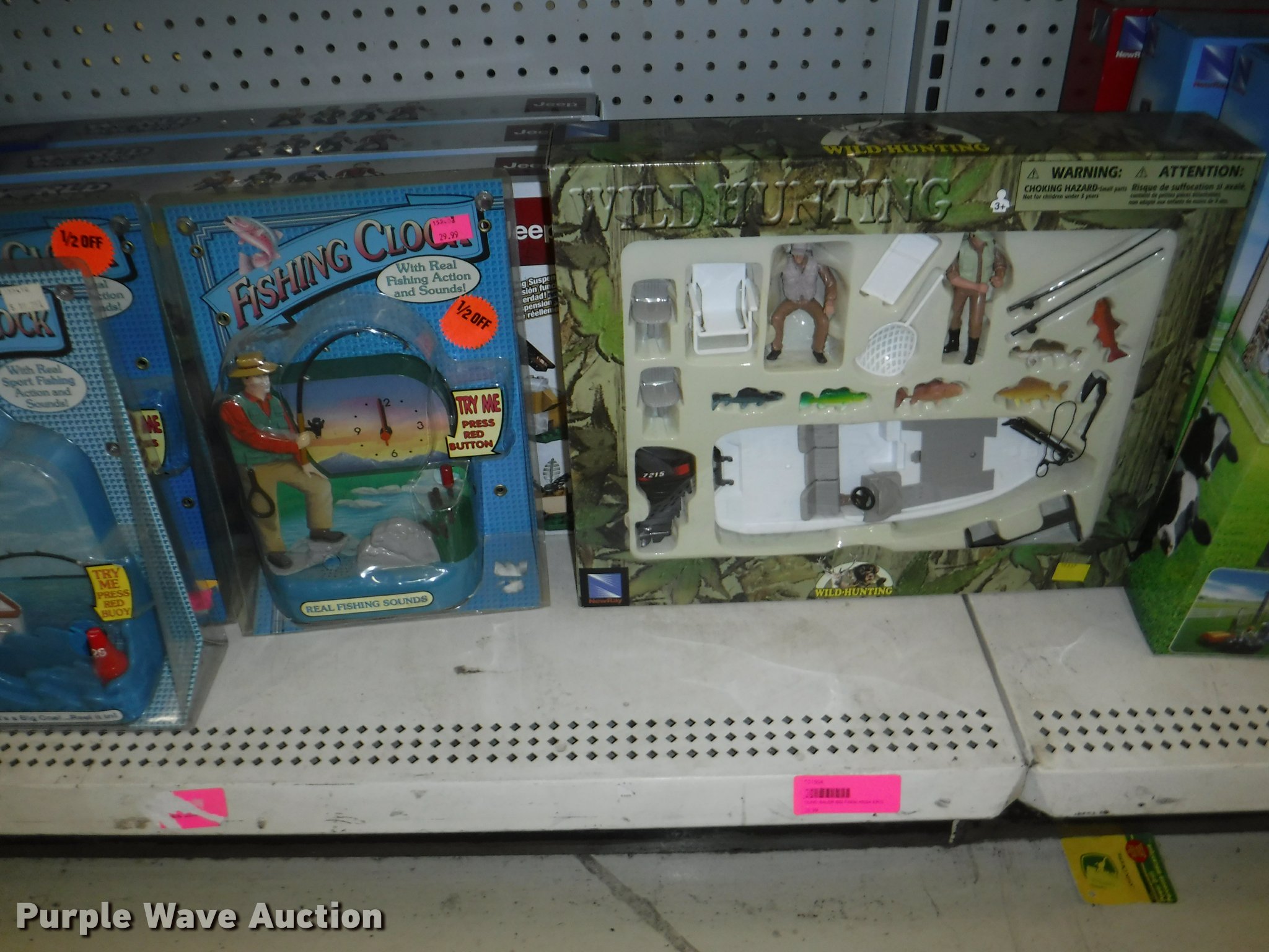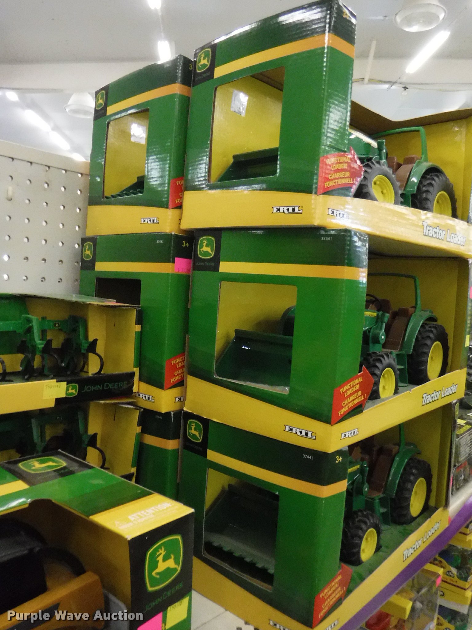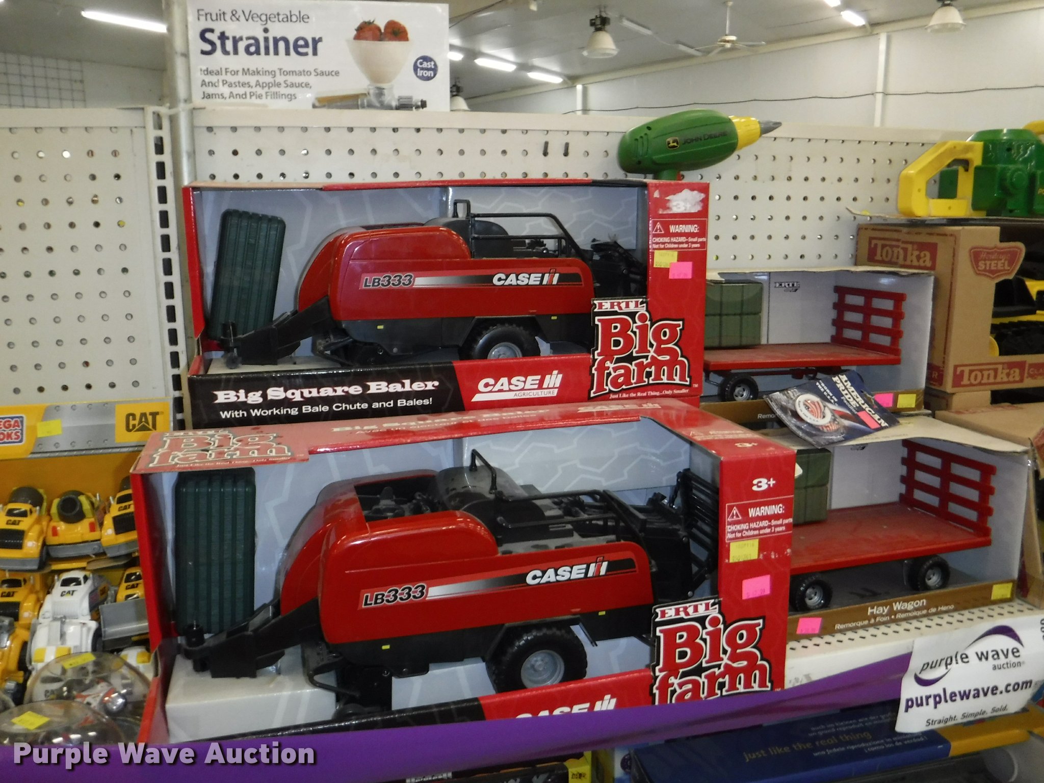 Purple Wave is selling a used All Other Household Items in Missouri. This item is a Children's toys and books with the following: (5) wood wagons, Barnyard figurines, Sidewalk chalk, Ert 1 tractors, trucks, and farm implements, Sport fishing clocks, Sea Palace play sets, Peterbilt 387 car, Police force models, Kites, RC Micro racing motorcycles, Ring caps, John Deere tractor with trailer, 12V, Ages 3 to 7 years old, Piggy banks, (2) Winchester Action Sound BB guns, Coloring books with rack