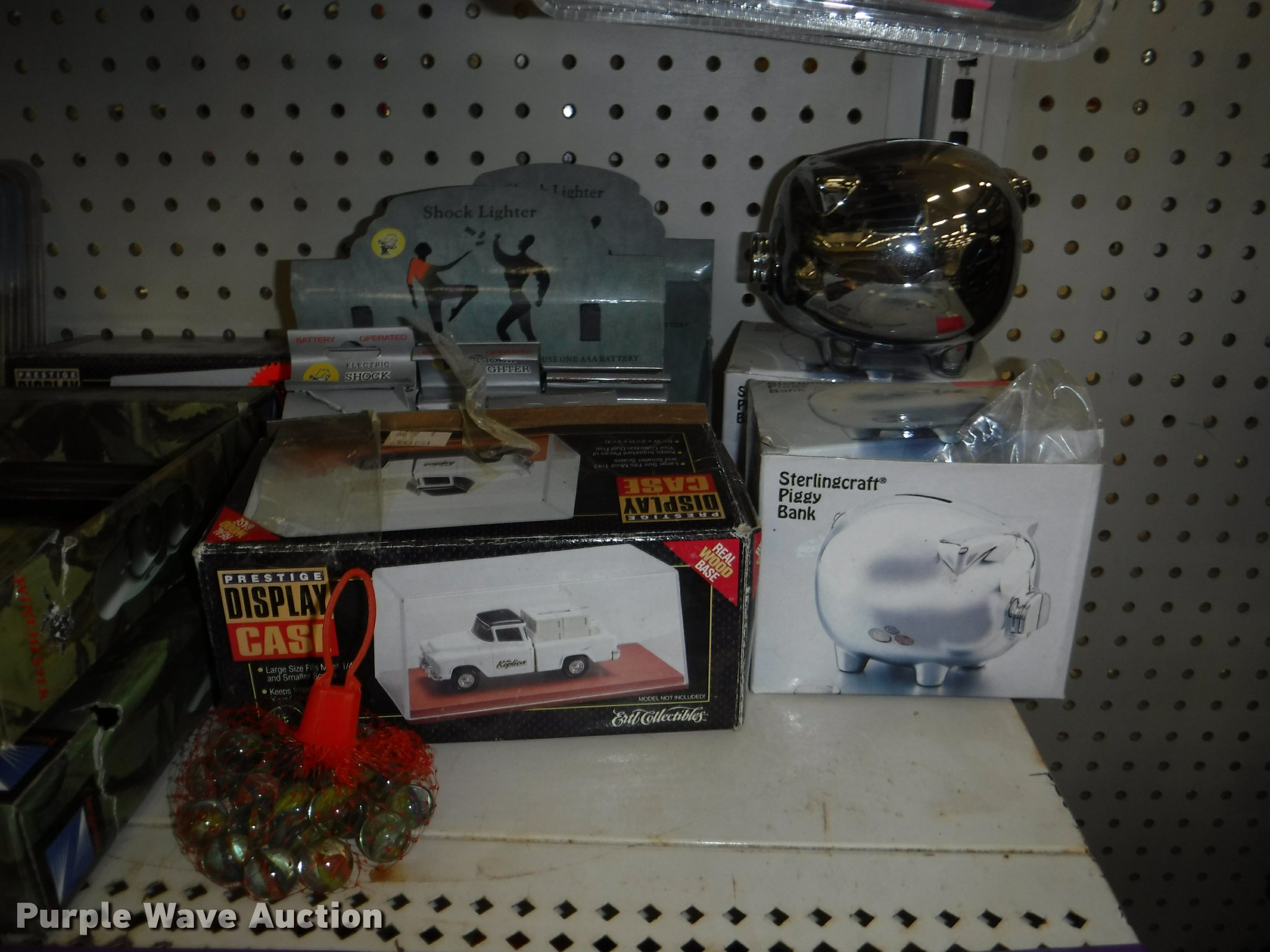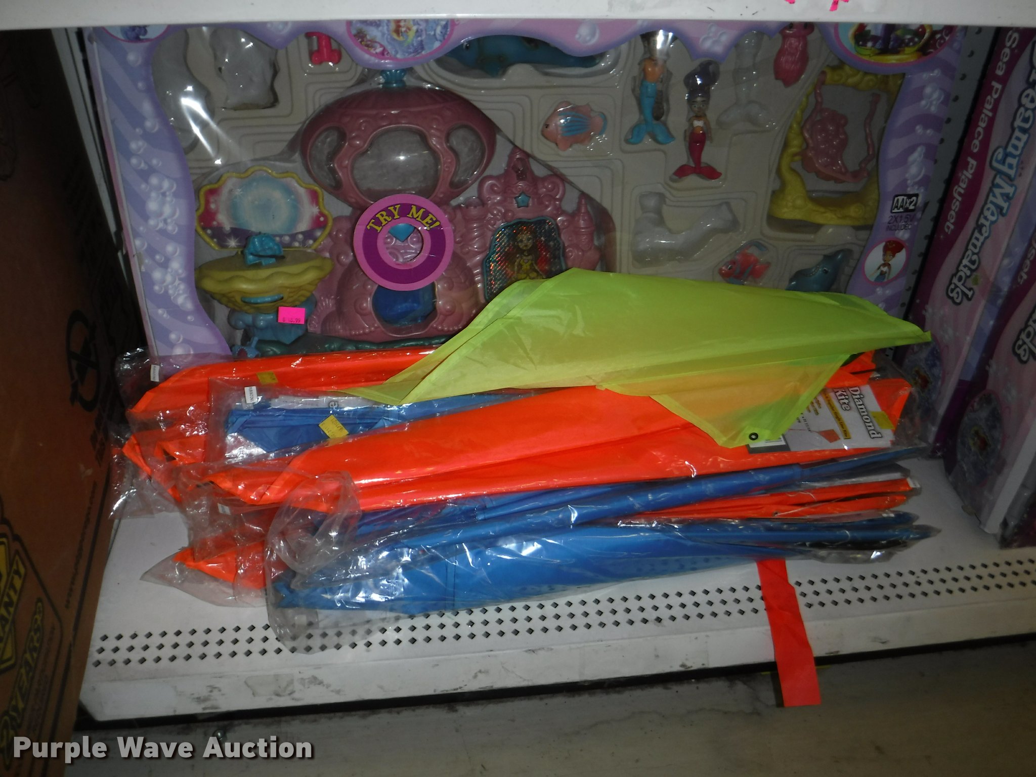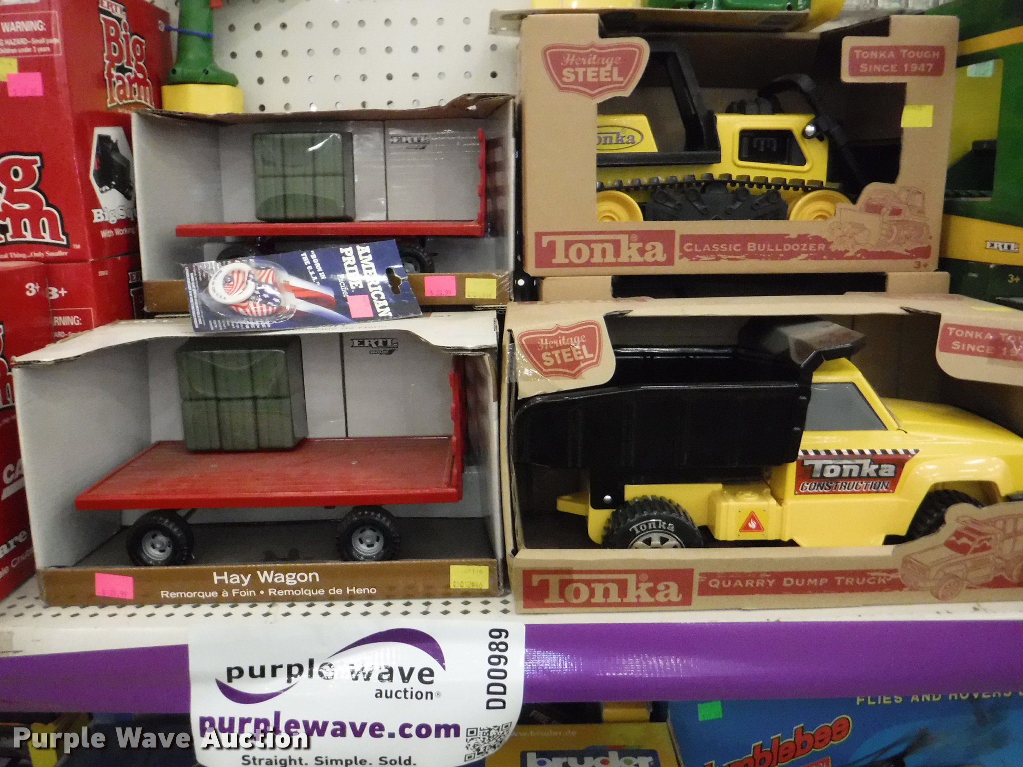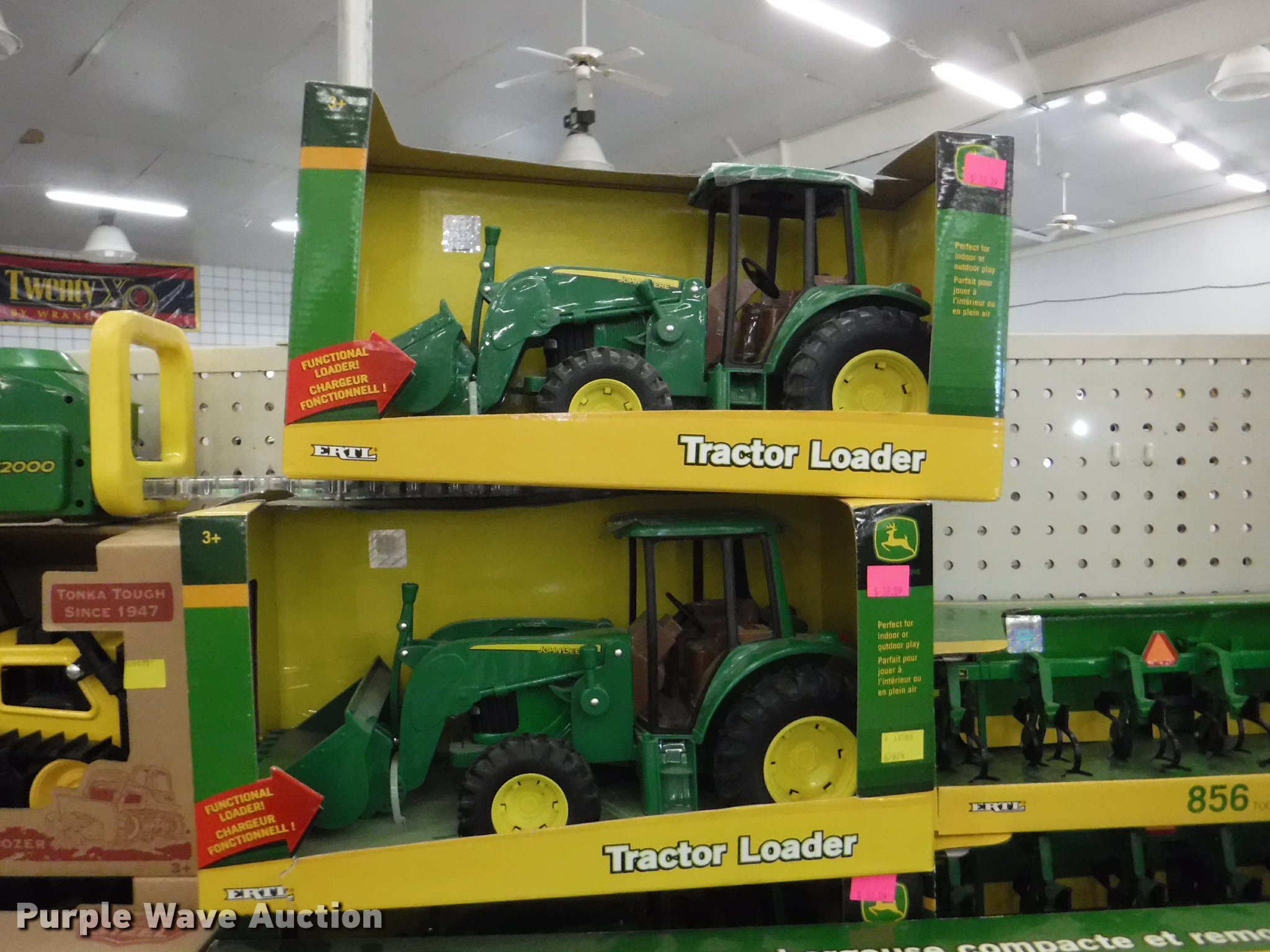 Purple Wave is selling a used All Other Household Items in Missouri. This item is a Children's toys and books with the following: (5) wood wagons, Barnyard figurines, Sidewalk chalk, Ert 1 tractors, trucks, and farm implements, Sport fishing clocks, Sea Palace play sets, Peterbilt 387 car, Police force models, Kites, RC Micro racing motorcycles, Ring caps, John Deere tractor with trailer, 12V, Ages 3 to 7 years old, Piggy banks, (2) Winchester Action Sound BB guns, Coloring books with rack