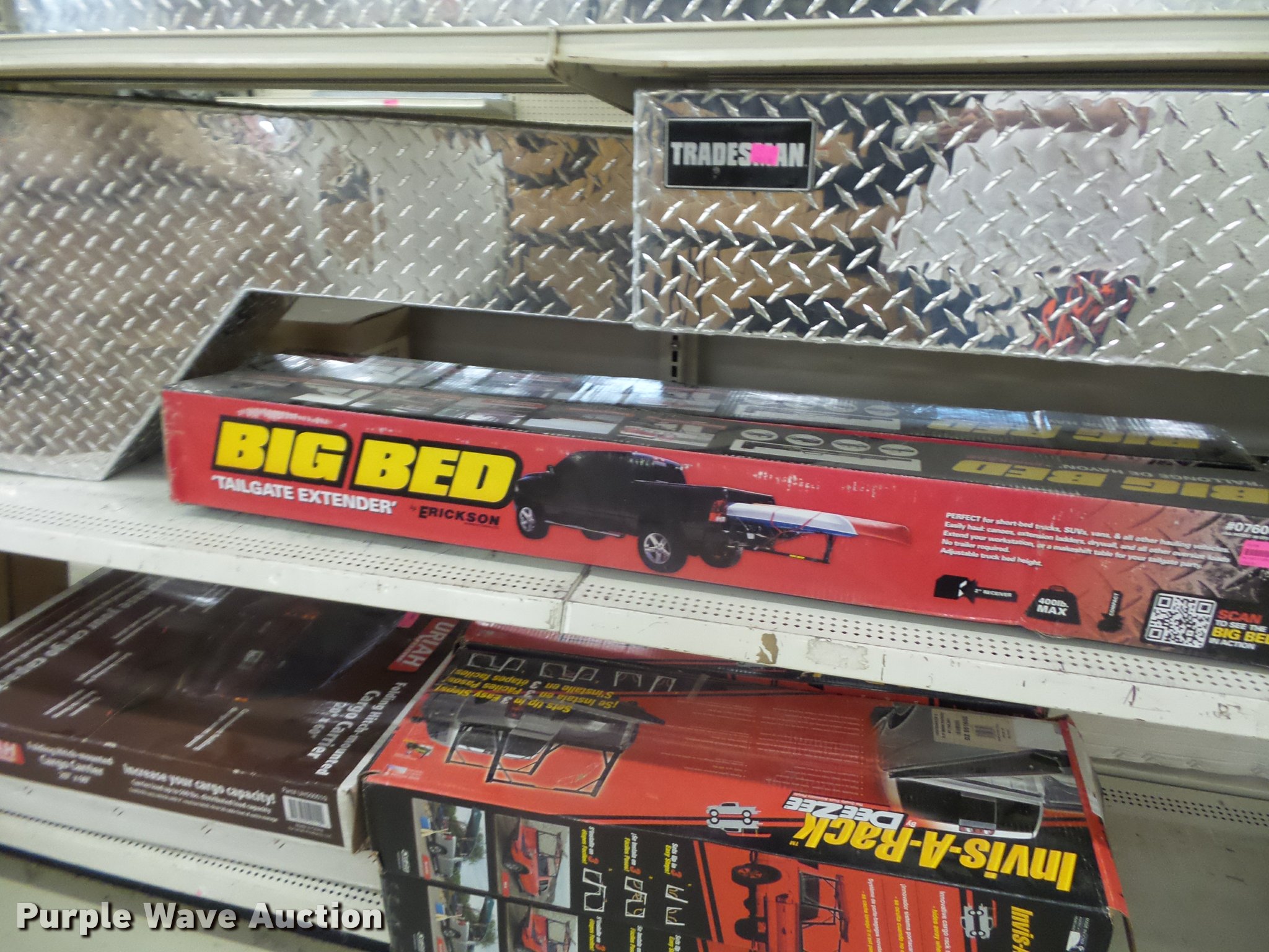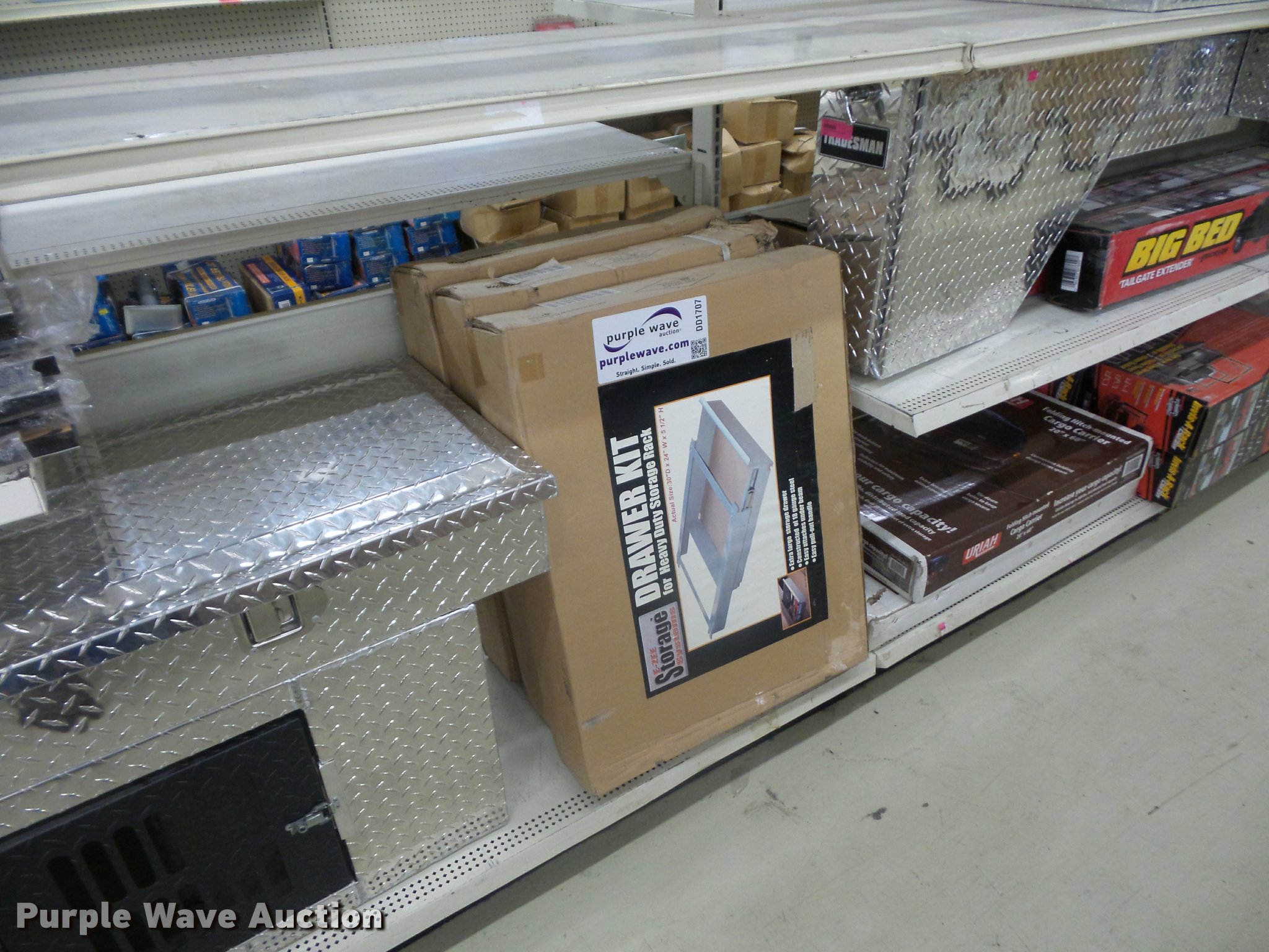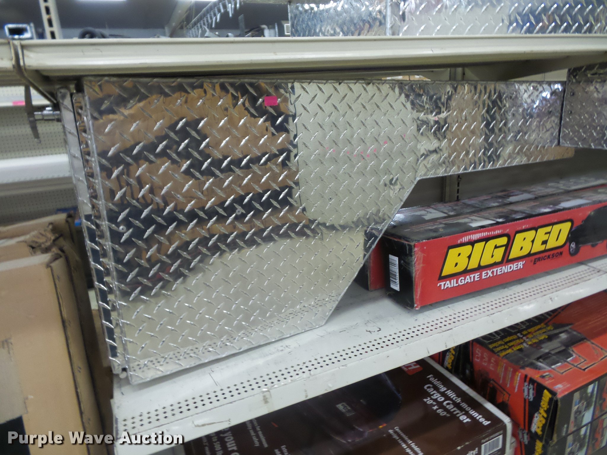 Purple Wave is selling a used Automotive Parts or Acces. in Missouri. This item is a Automotive accessories with the following: Running boards, Toolboxes, Dog box/toolbox, Drawer kits, Cargo haulers, Tailgate extender, Hitch baskets, Gorilla tailgate lift, One side only