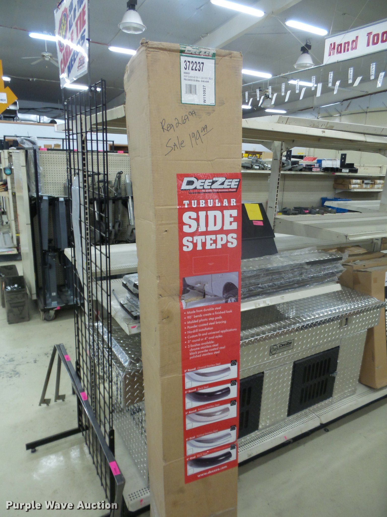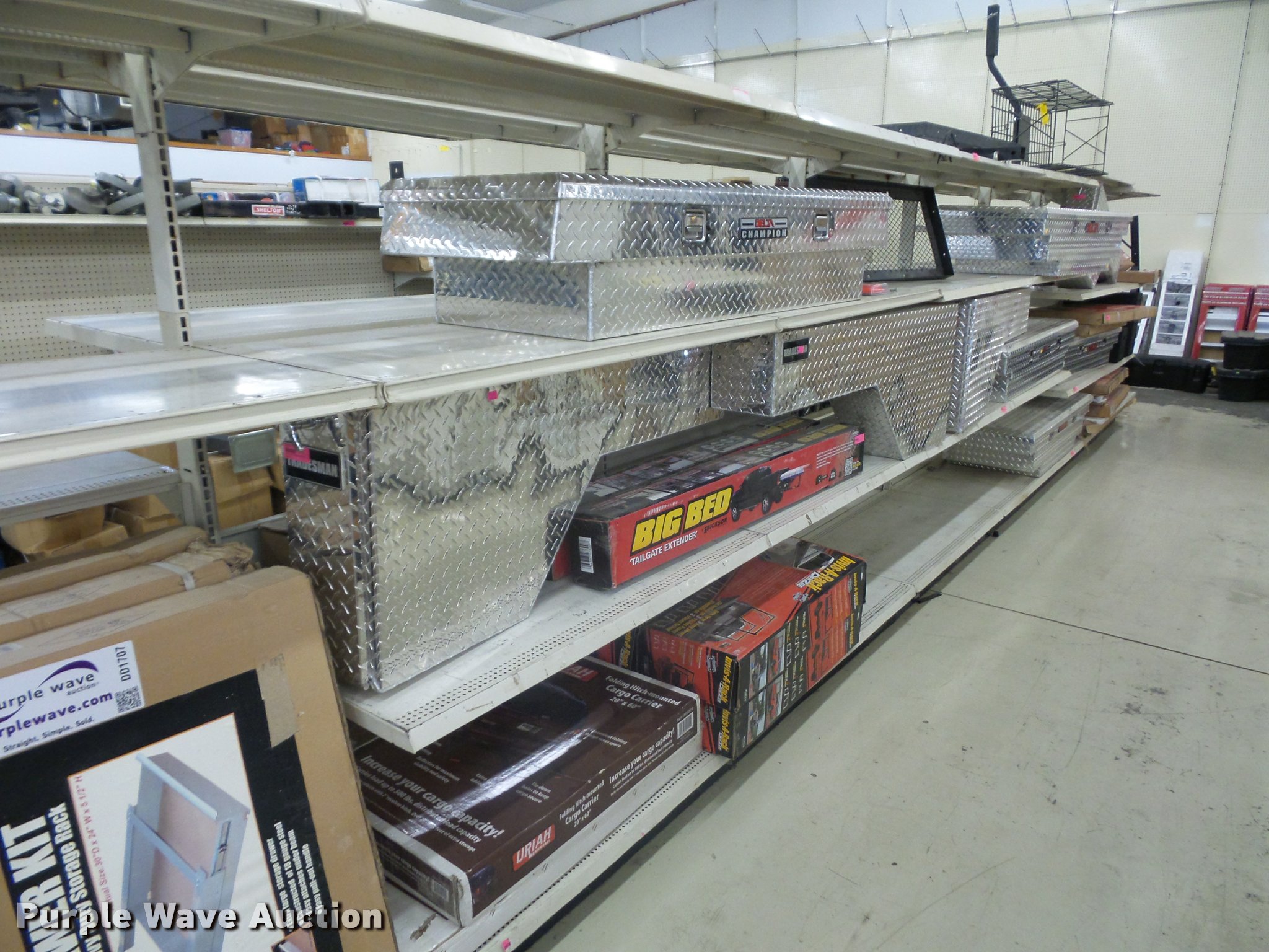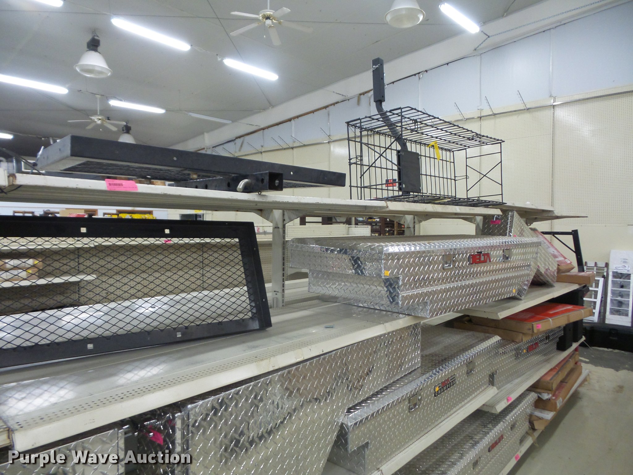 Purple Wave is selling a used Automotive Parts or Acces. in Missouri. This item is a Automotive accessories with the following: Running boards, Toolboxes, Dog box/toolbox, Drawer kits, Cargo haulers, Tailgate extender, Hitch baskets, Gorilla tailgate lift, One side only