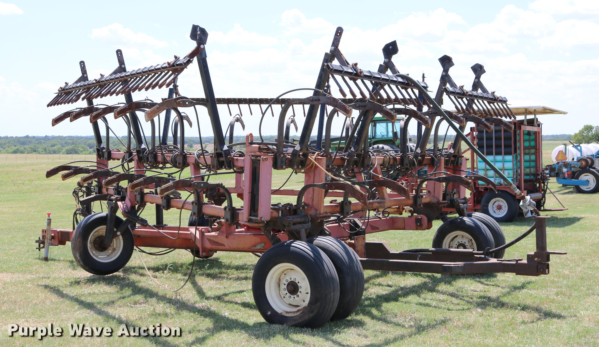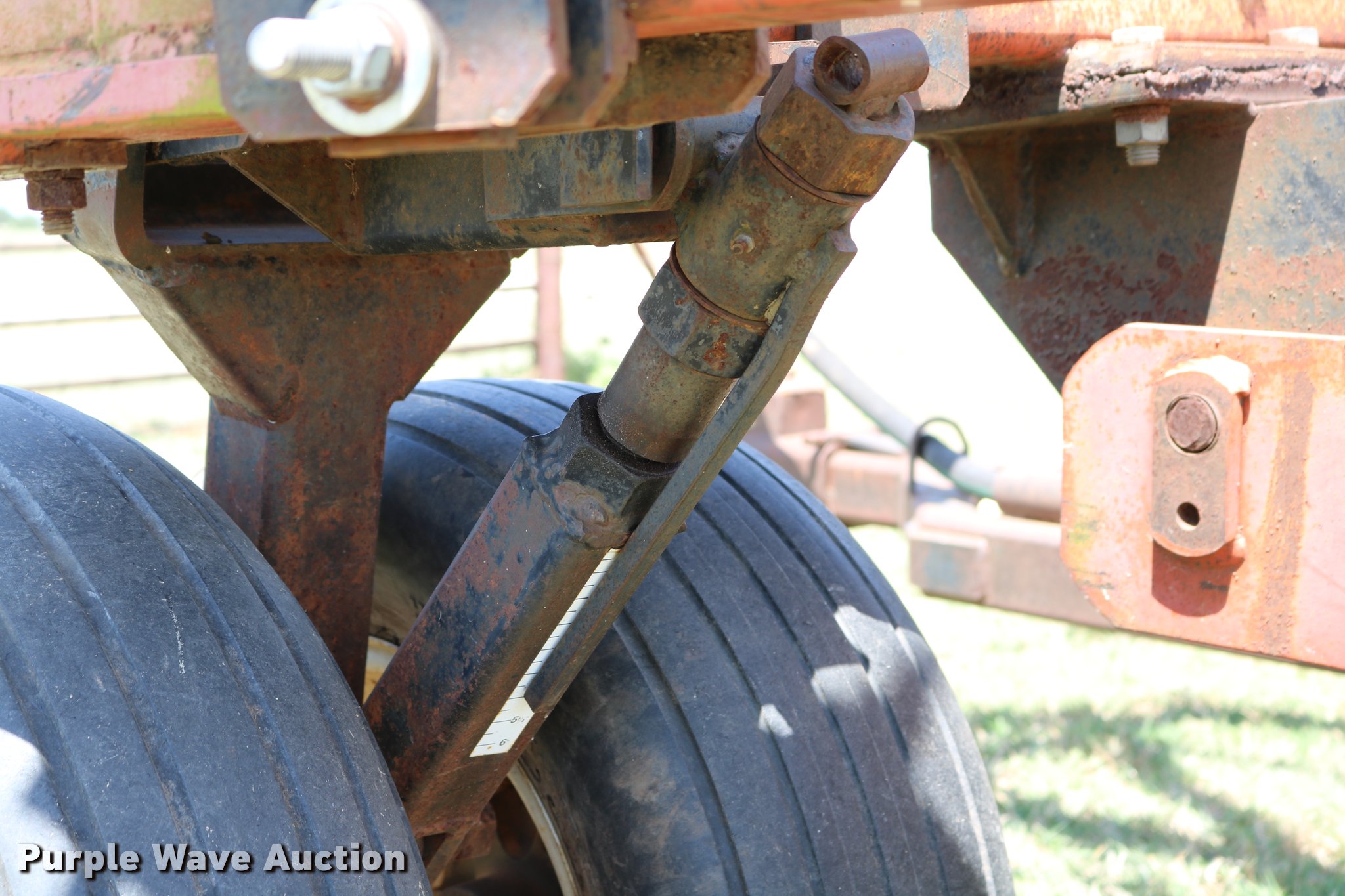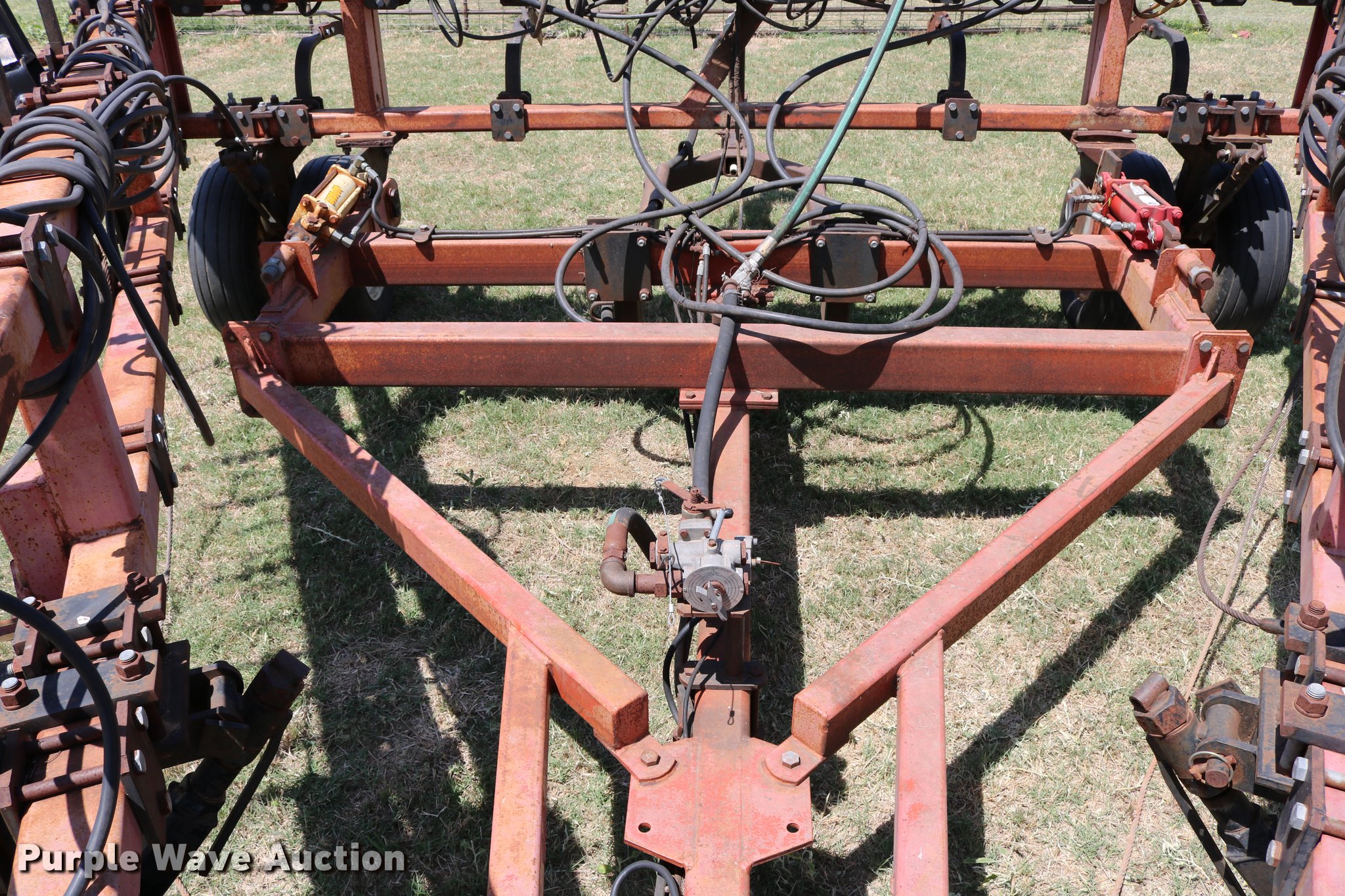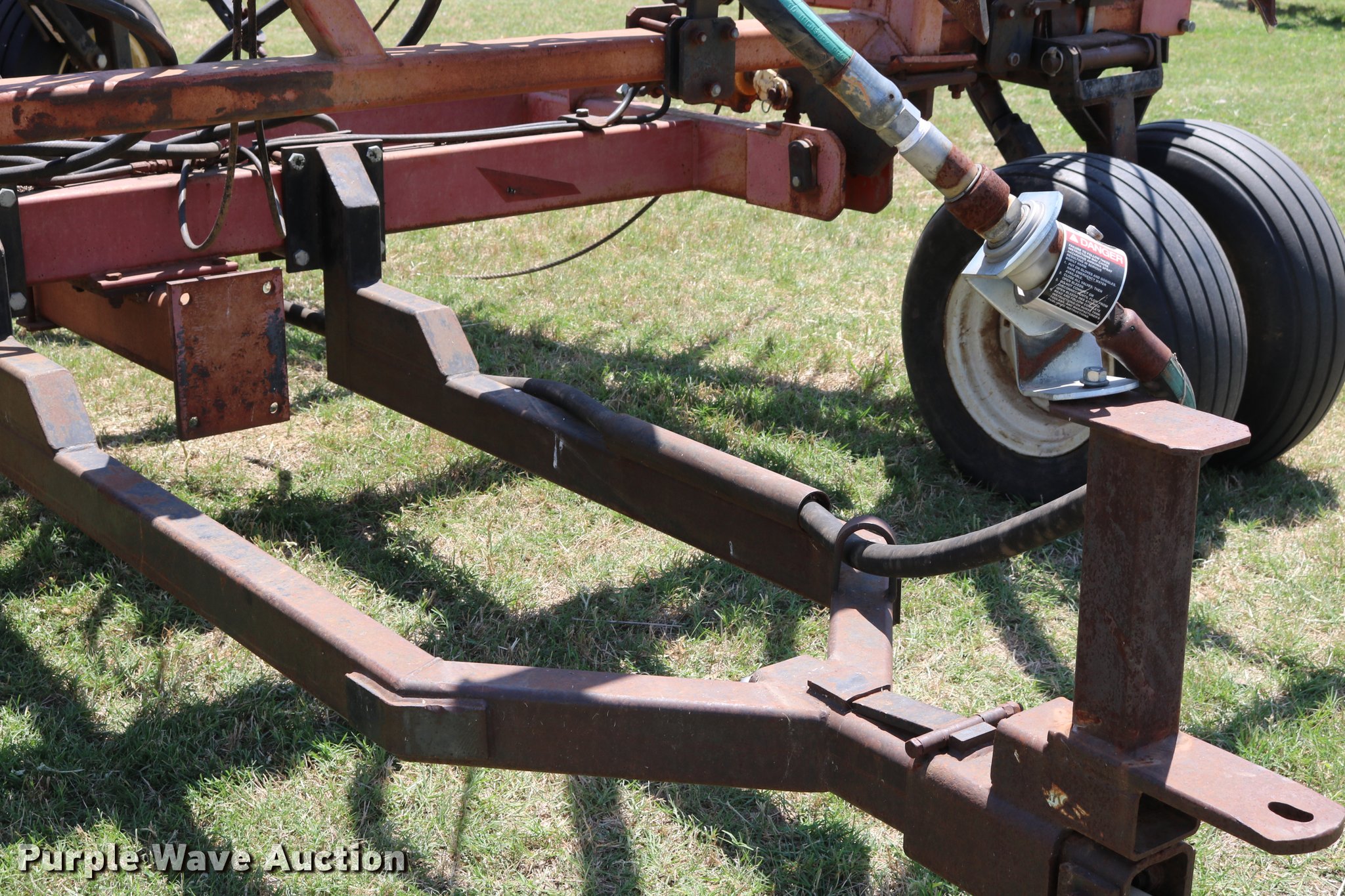 Purple Wave is selling a used Applicator Pull Type in Oklahoma. This item is a Wako anhydrous applicator with the following: 38.25'W, Single bar harrow, Hydraulic lift and fold, Hard surfaced shanks and harrows, Pin hitch, Rear hitch with anhydrous hose, Single manual jack stand, 11L-15 tires