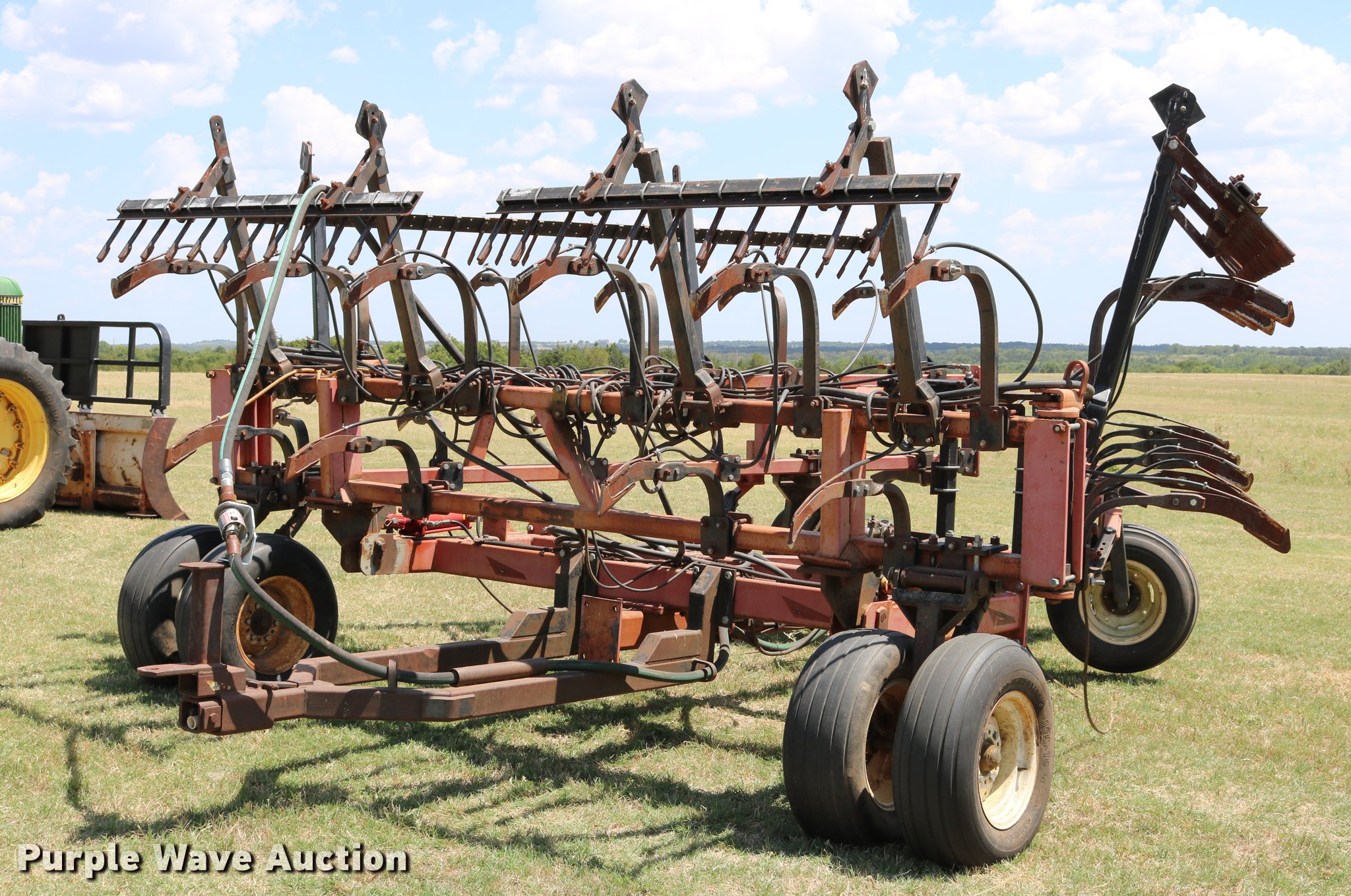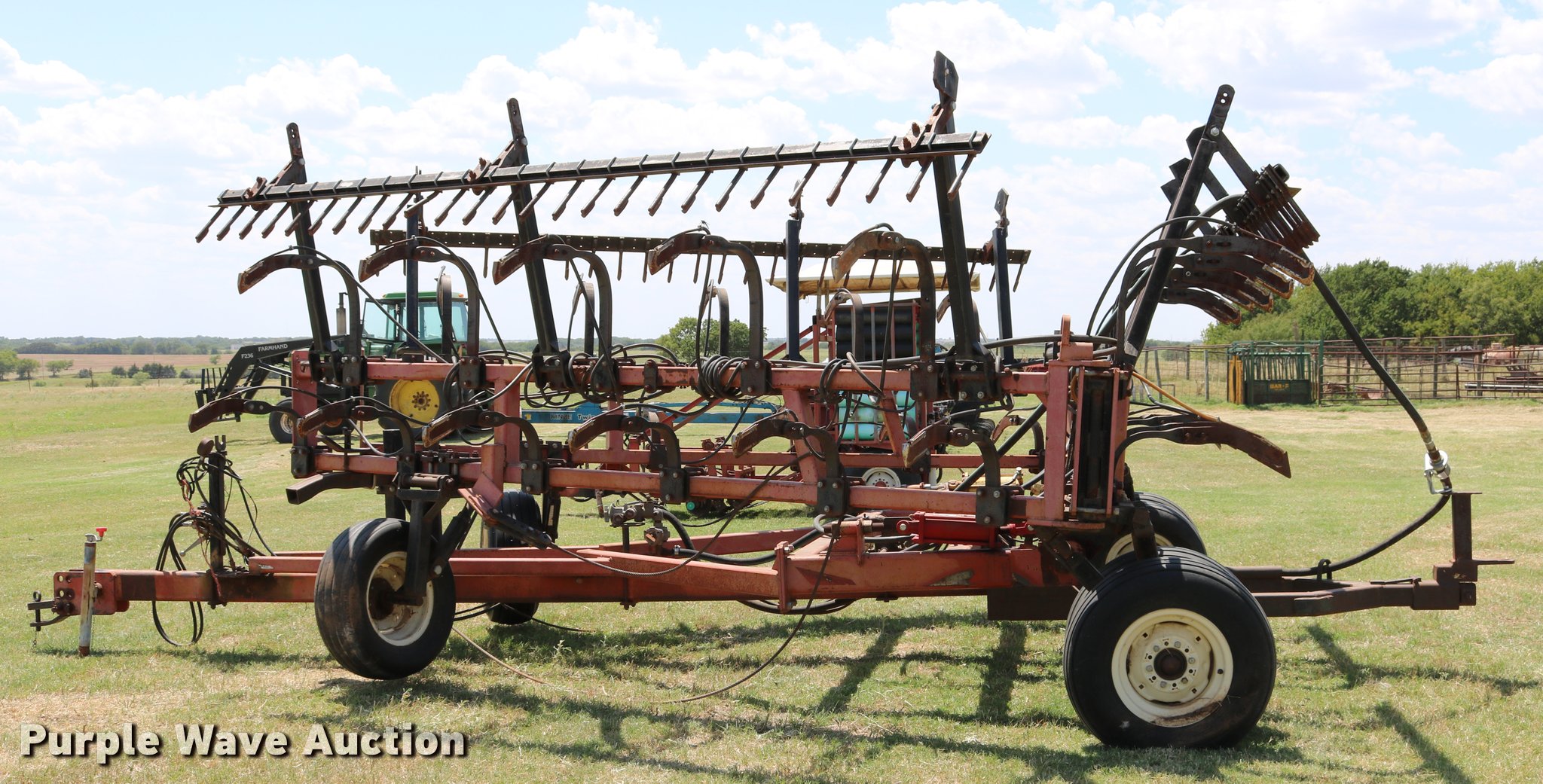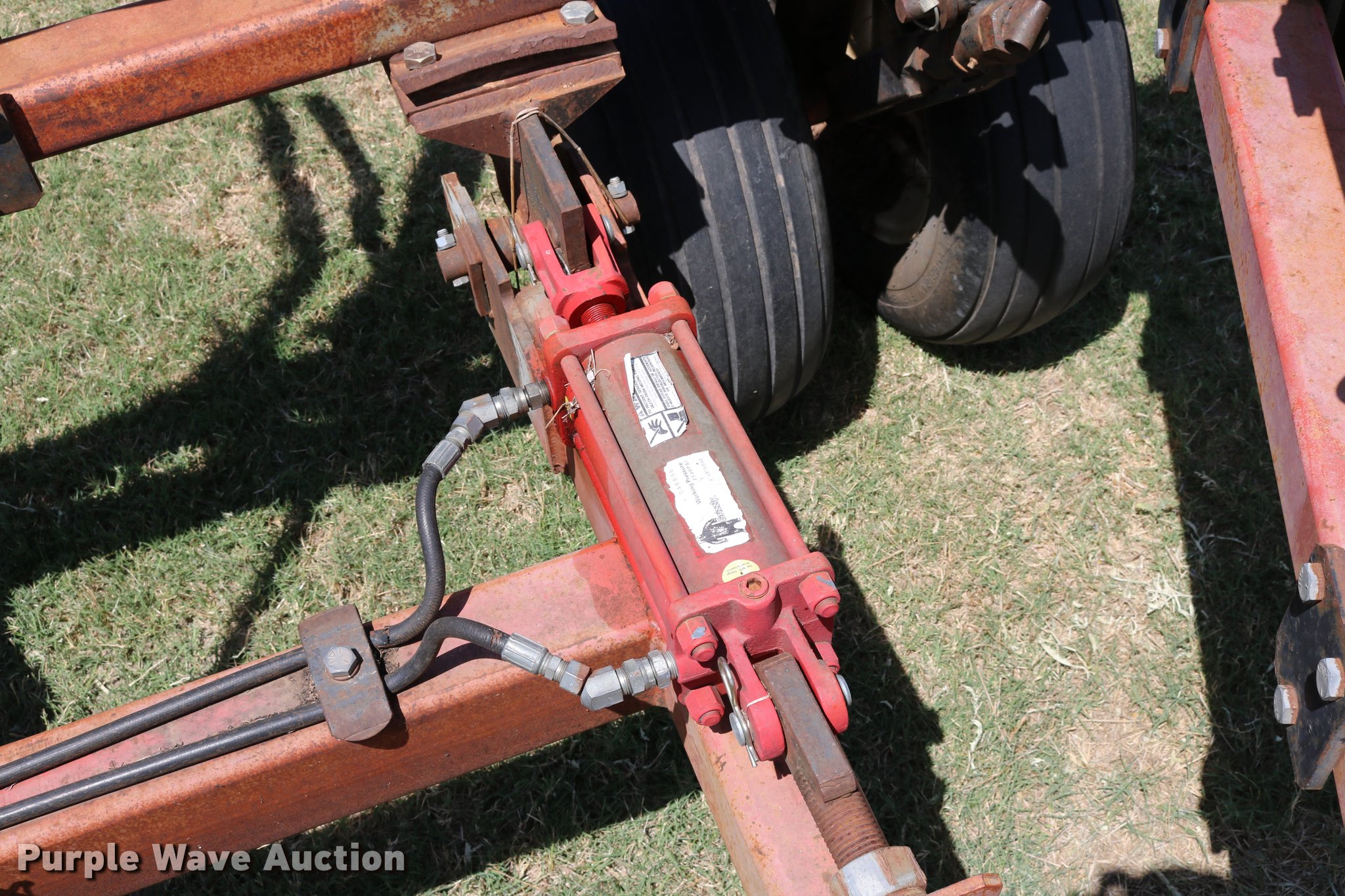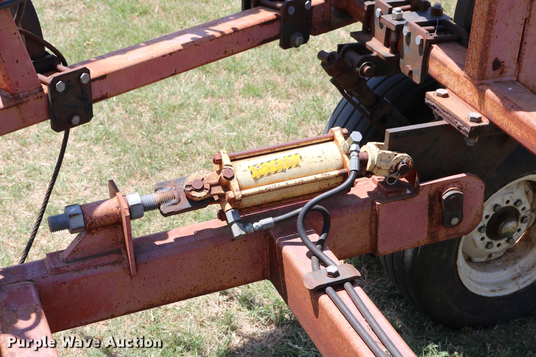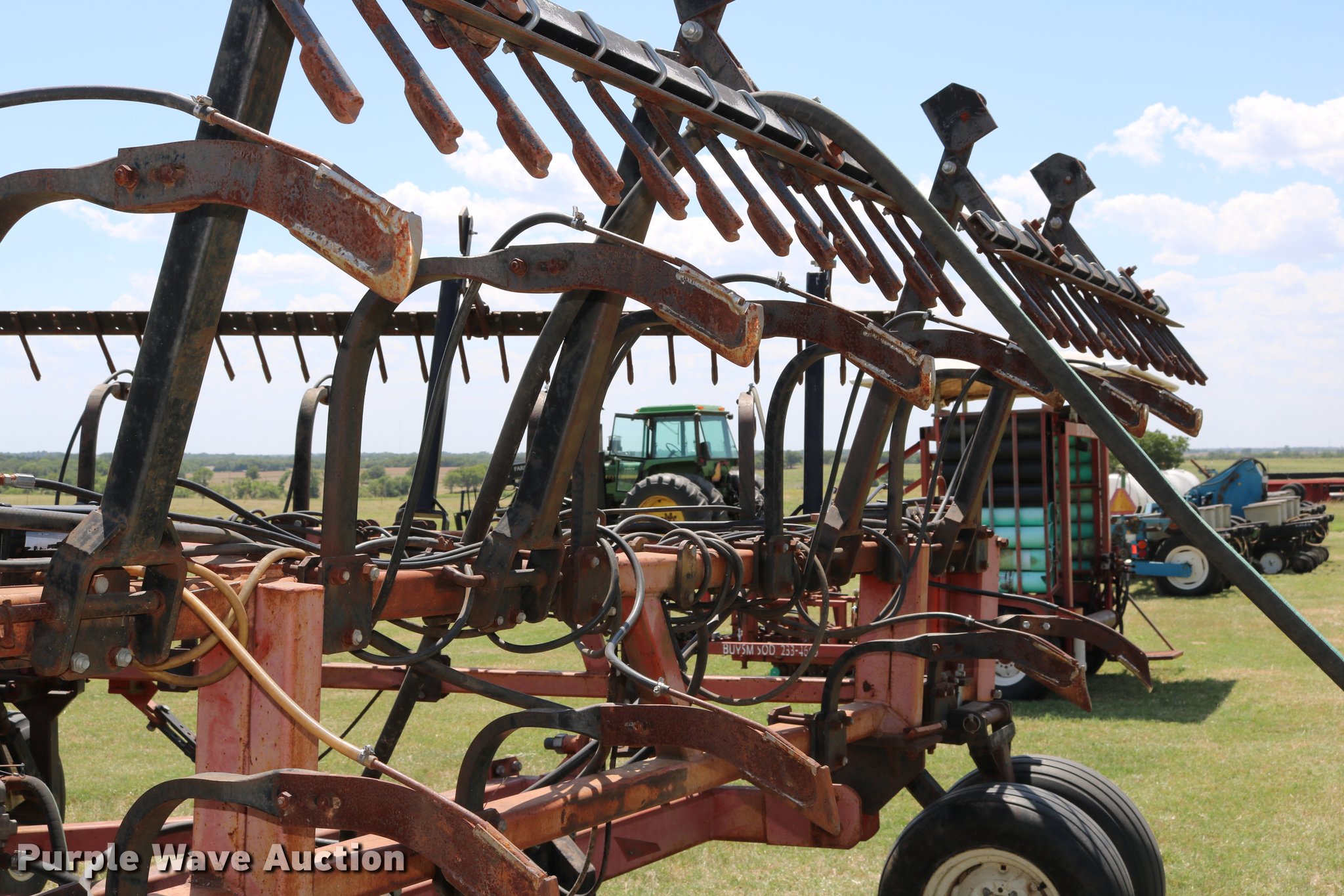 Purple Wave is selling a used Applicator Pull Type in Oklahoma. This item is a Wako anhydrous applicator with the following: 38.25'W, Single bar harrow, Hydraulic lift and fold, Hard surfaced shanks and harrows, Pin hitch, Rear hitch with anhydrous hose, Single manual jack stand, 11L-15 tires
