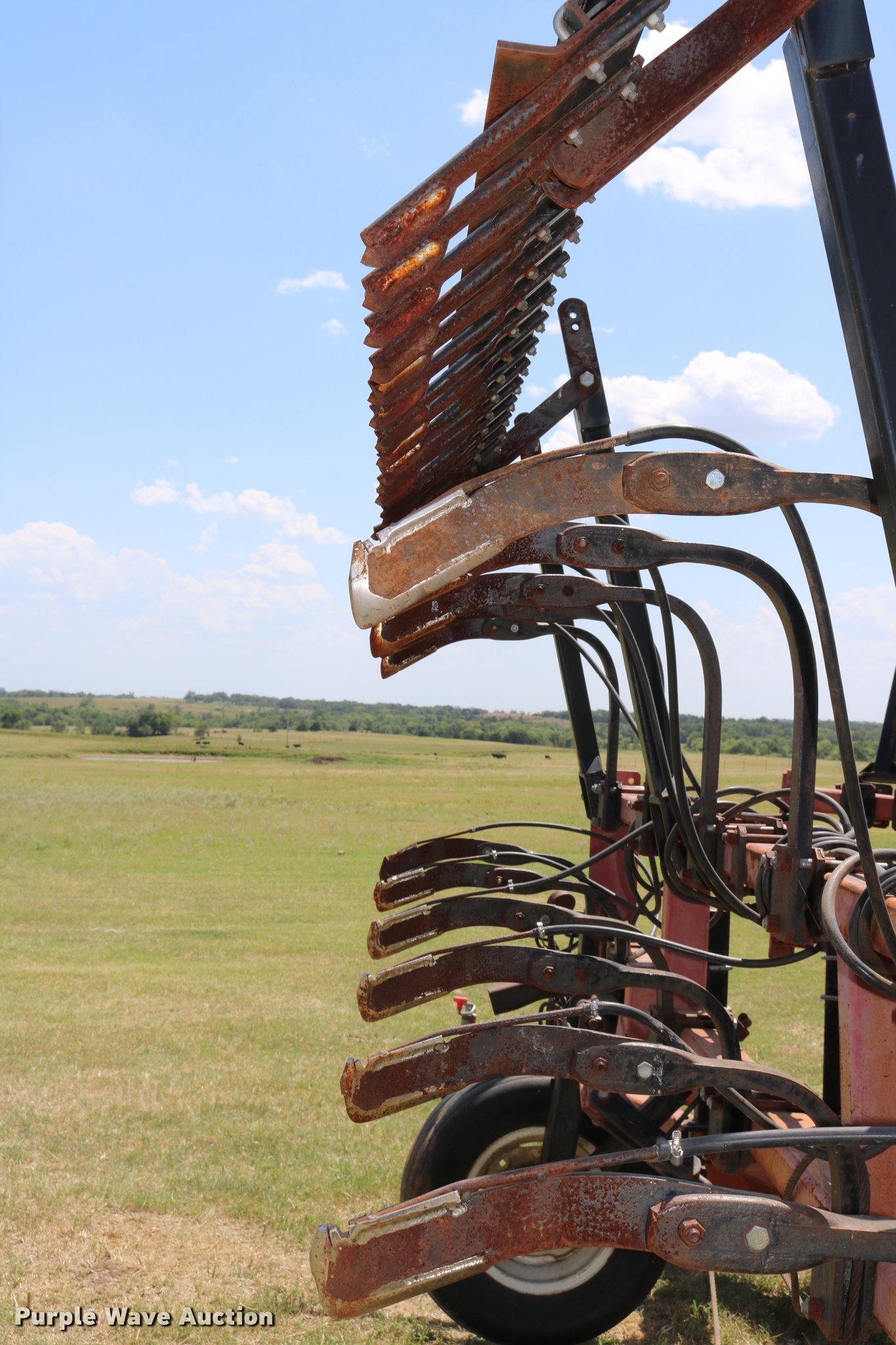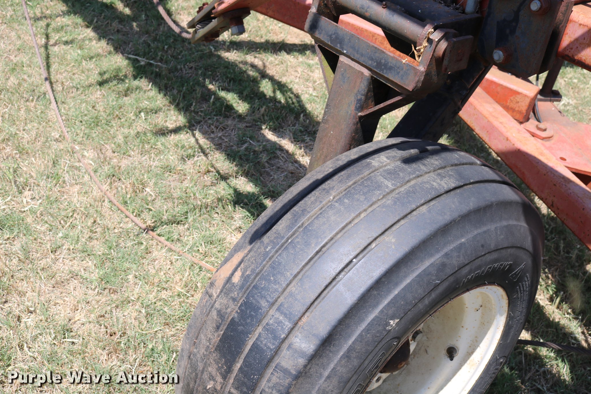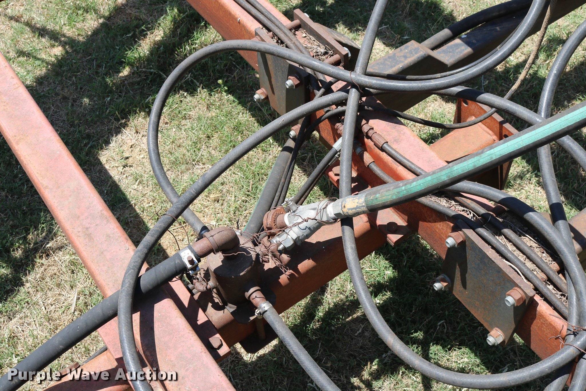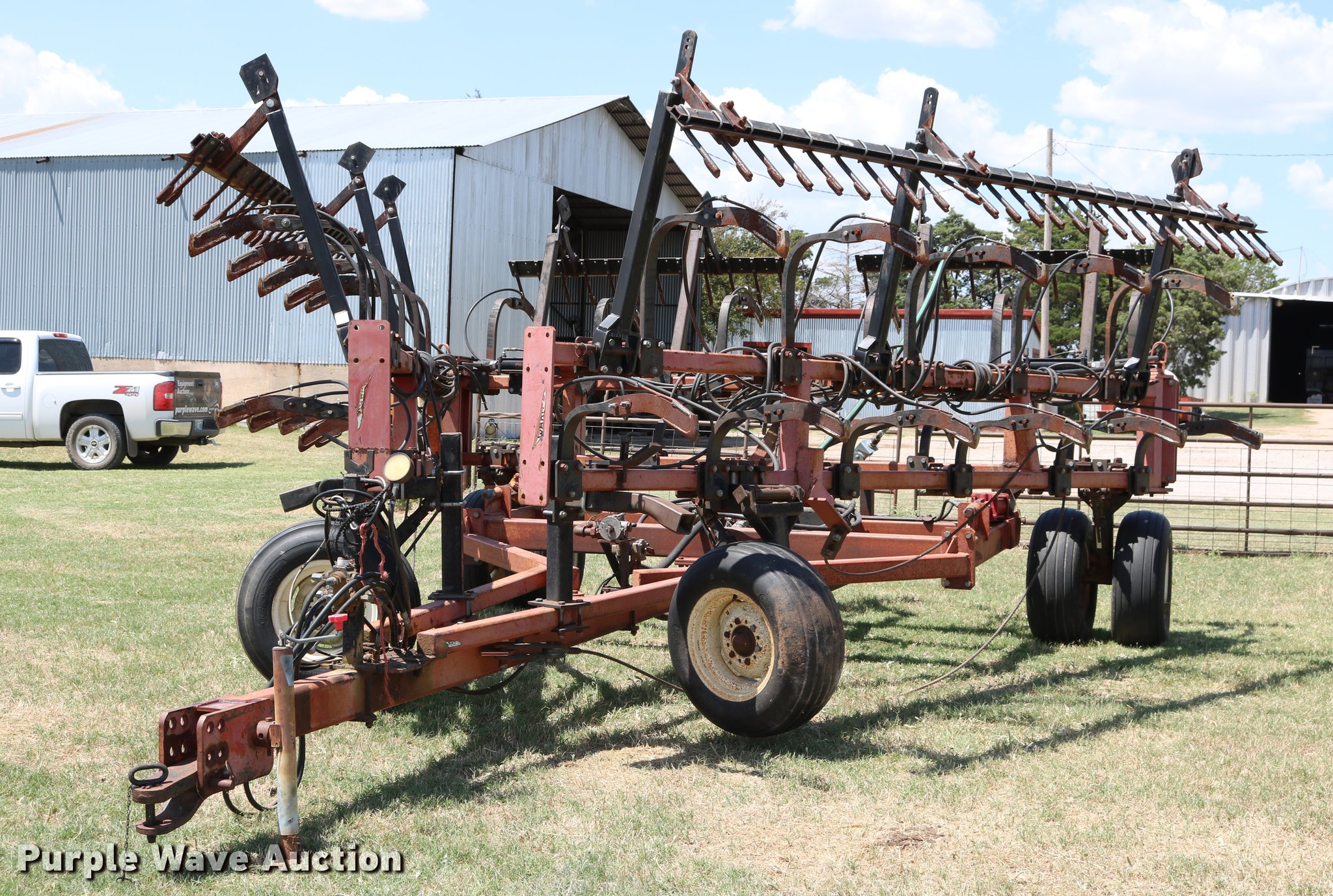 Purple Wave is selling a used Applicator Pull Type in Oklahoma. This item is a Wako anhydrous applicator with the following: 38.25'W, Single bar harrow, Hydraulic lift and fold, Hard surfaced shanks and harrows, Pin hitch, Rear hitch with anhydrous hose, Single manual jack stand, 11L-15 tires
