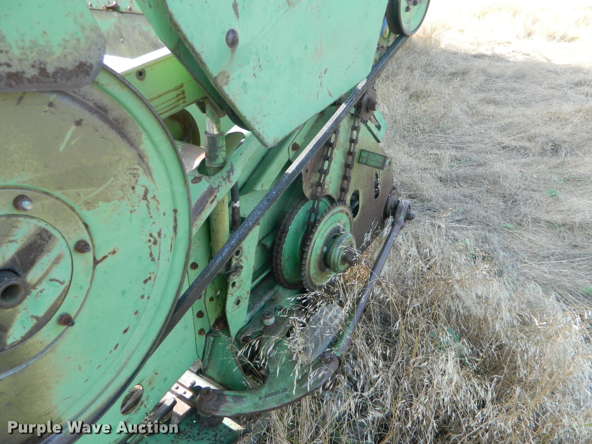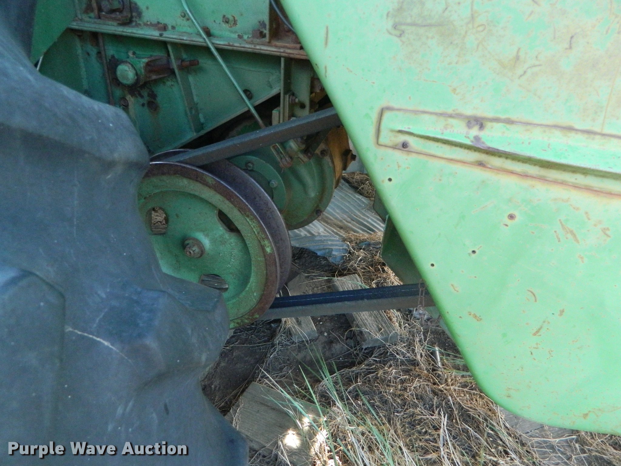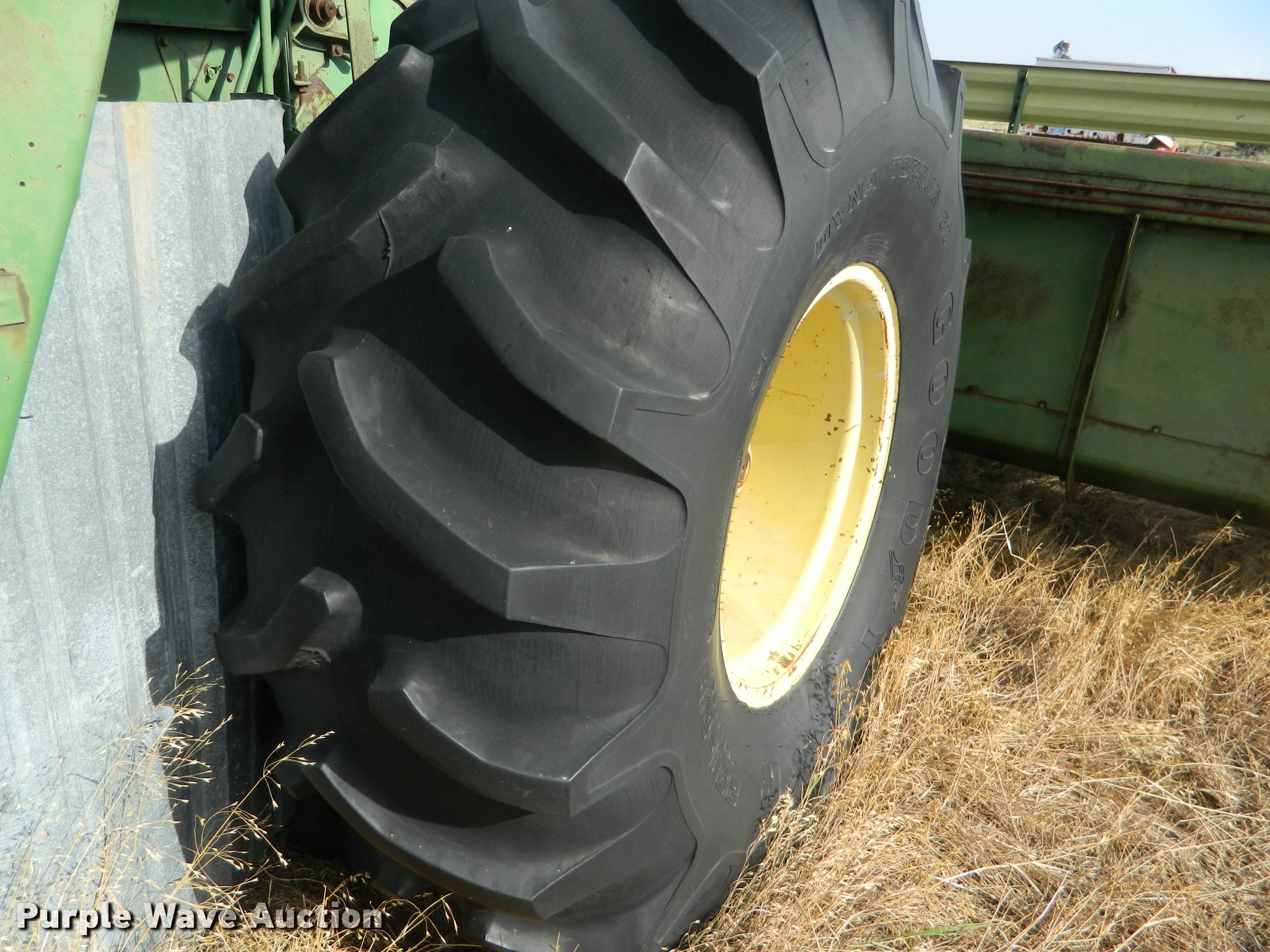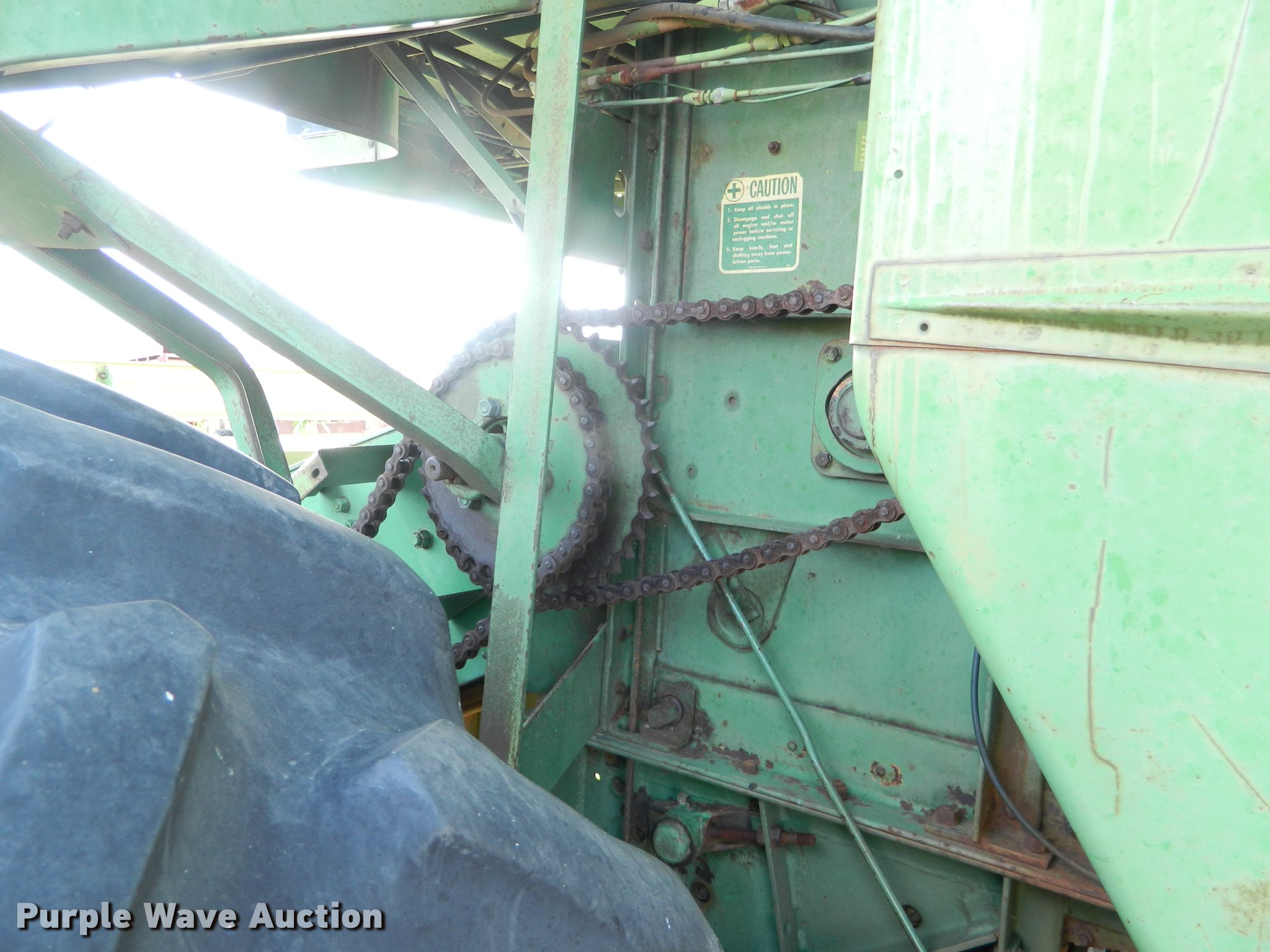 Purple Wave is selling a used Combine in Kansas. This item is a John Deere 105 combine with the following: 3,620 engine hours on meter, John Deere six cylinder gas engine, Manual transmission, 4F-1R gears, Suspension seat, Water cooler, Chaff spreader, John Deere rigid head, 20'W, Bat reel, Hydraulic reel height control, Serial 178119H, 23.1-26 front tires, 11L-16 rear tires, Non-operational unit, parts may be missing, Serial E010512682
