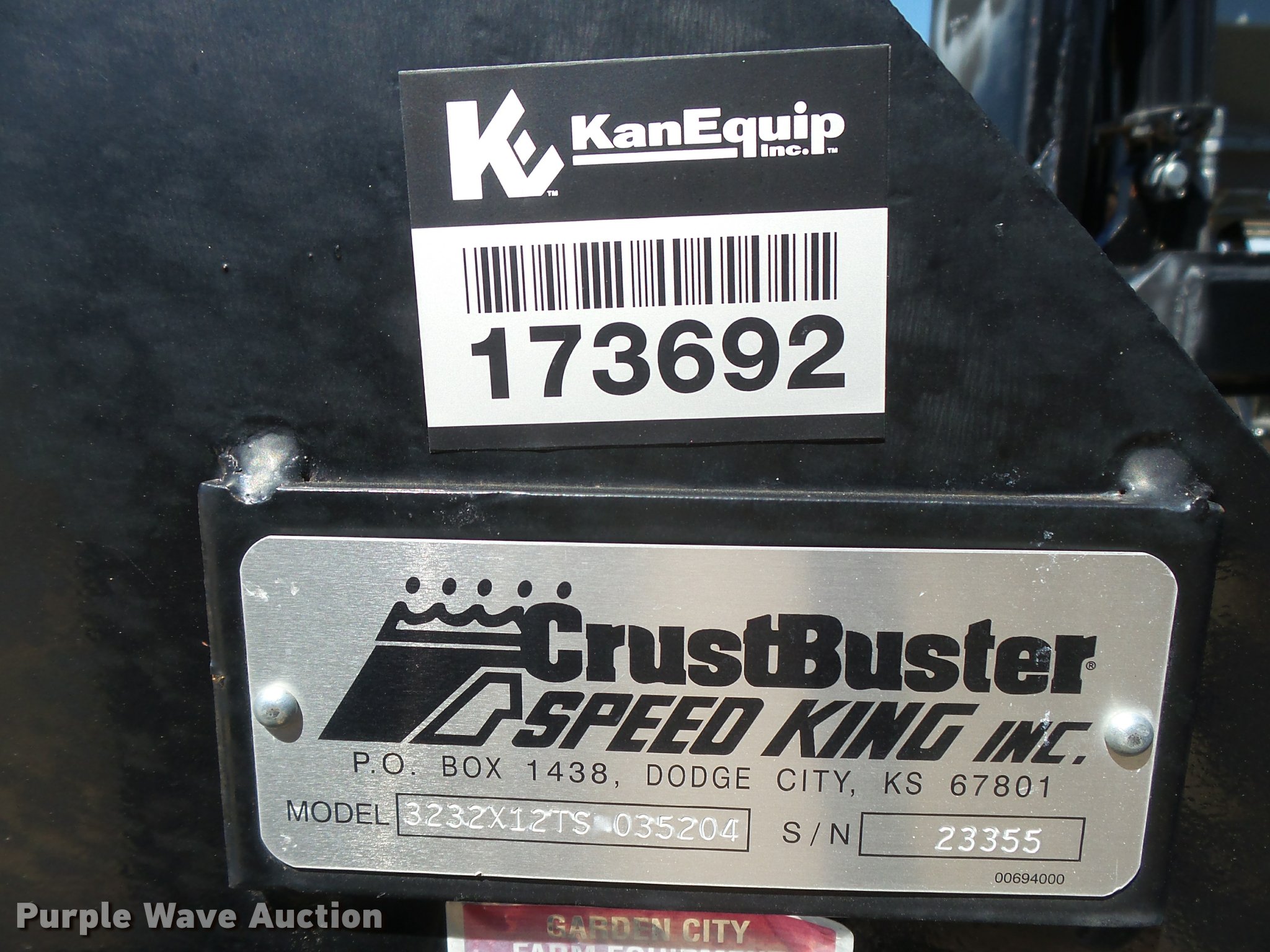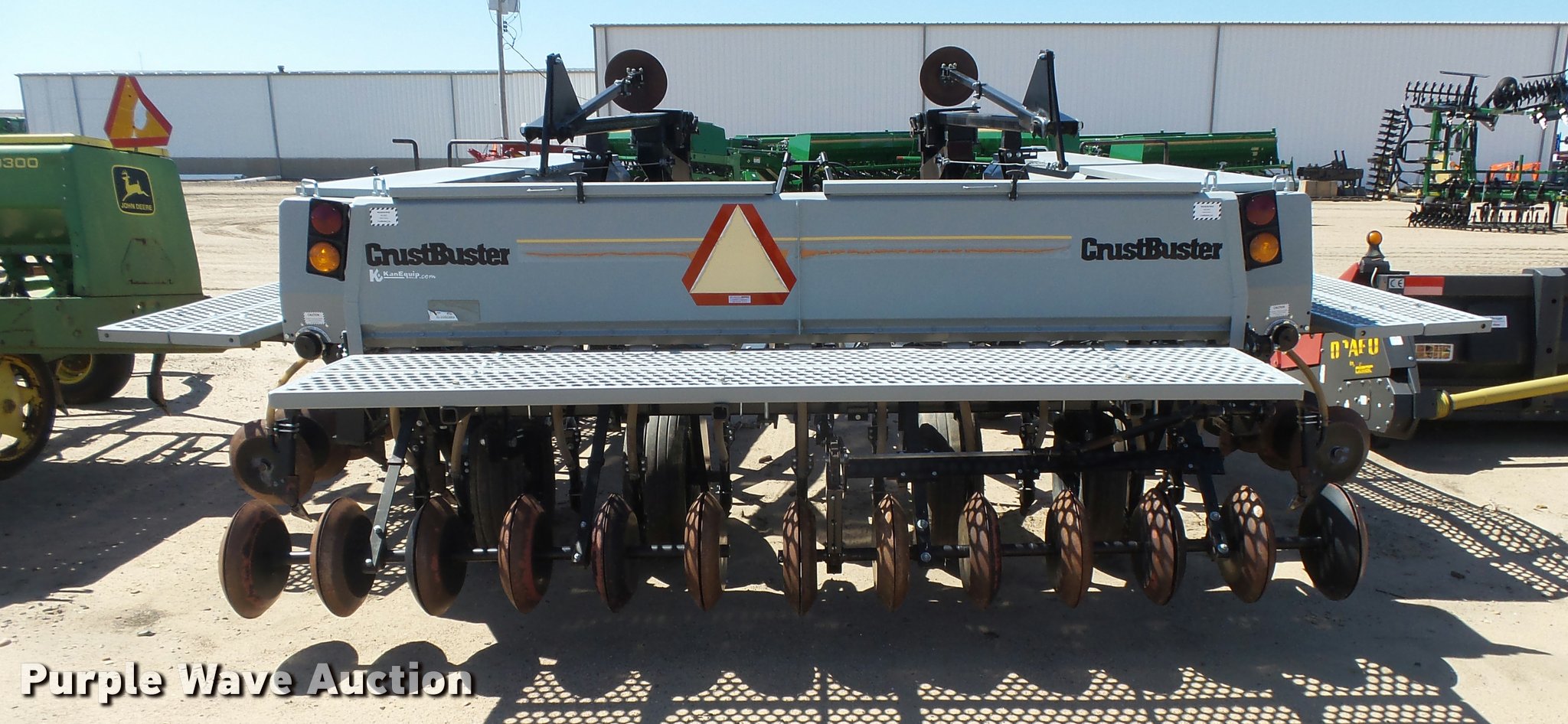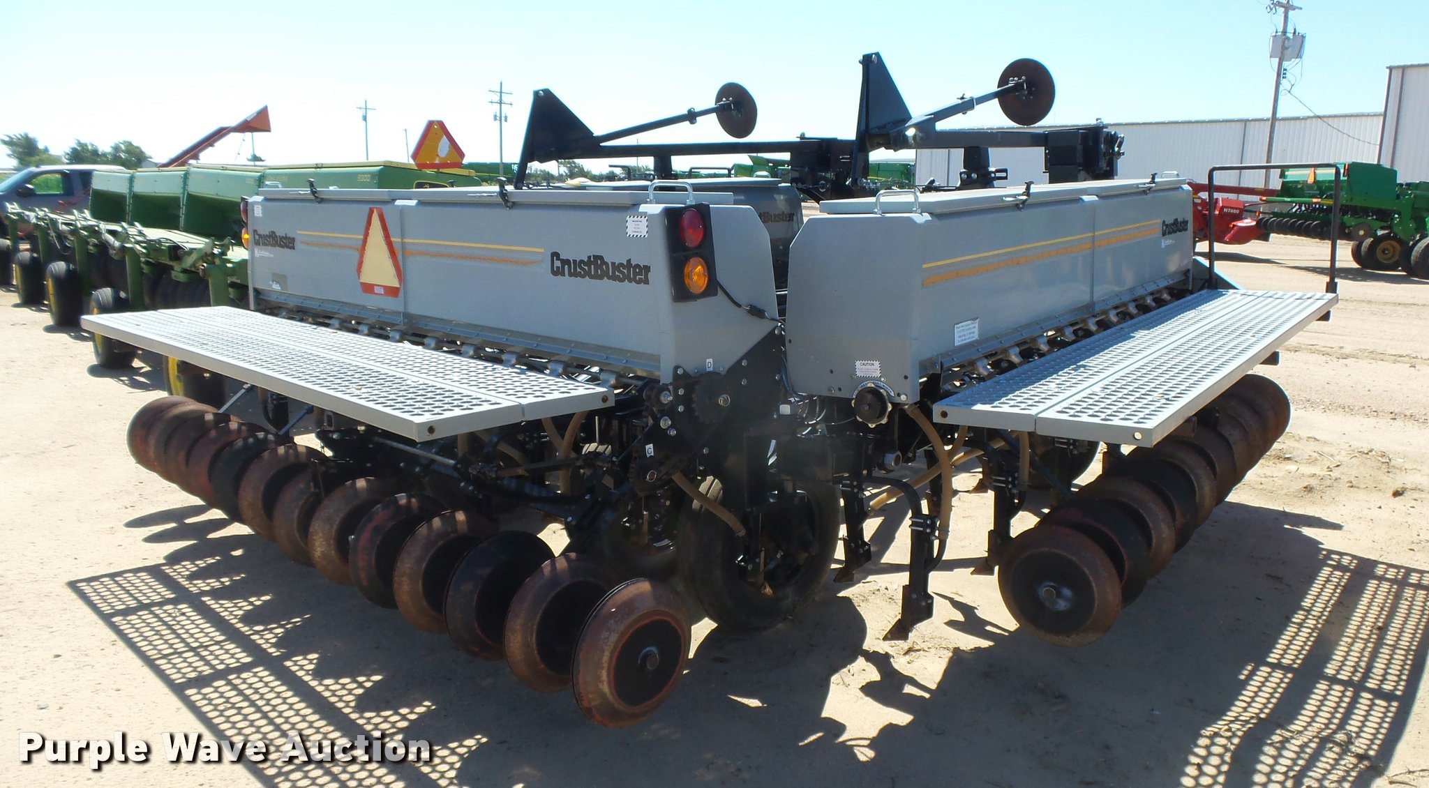 Purple Wave is selling a used Grain Drill or Seeder in Kansas. This item is a 2012 CrustBuster 3232 hoe grain drill with the following: 12" row spacing, Marker arms, Hydraulic front fold, Bulk fill system, (3) boxes, Ground meter drive, Single steel closing system, Seven pin transport lights, Pin hitch, (4) 9.5L-15 transport tires, (2) 9.5L-15 drive/outside tires, Serial 23355, Unit# 173692