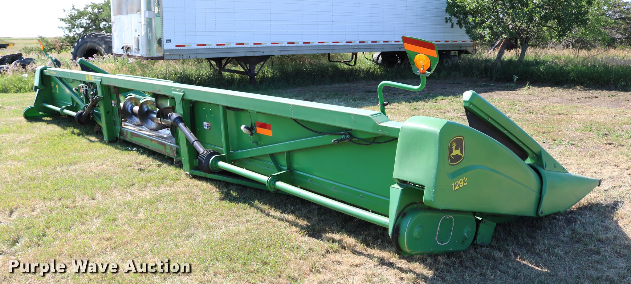 Purple Wave is selling a used Corn or Row Head in South Dakota. This item is a 2003 John Deere 1293 corn head with the following: 12 rows, 30" row spacing, 1000 PTO, Single point coupler, Hydraulic deck plates, Calmer chopping rollers, Dual drivelines, Serial H01293X700870