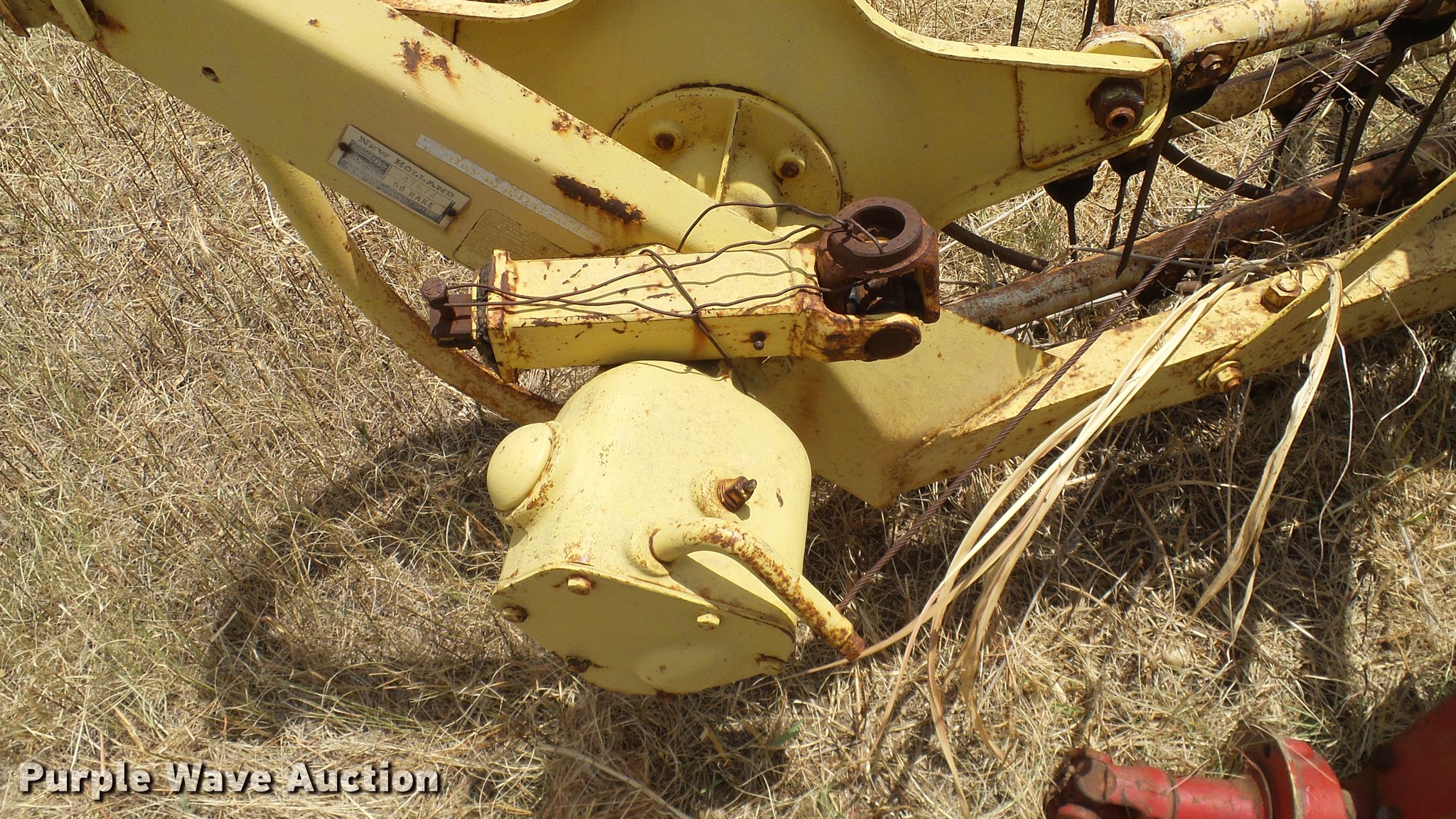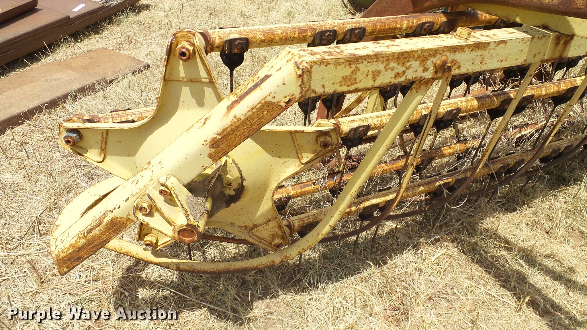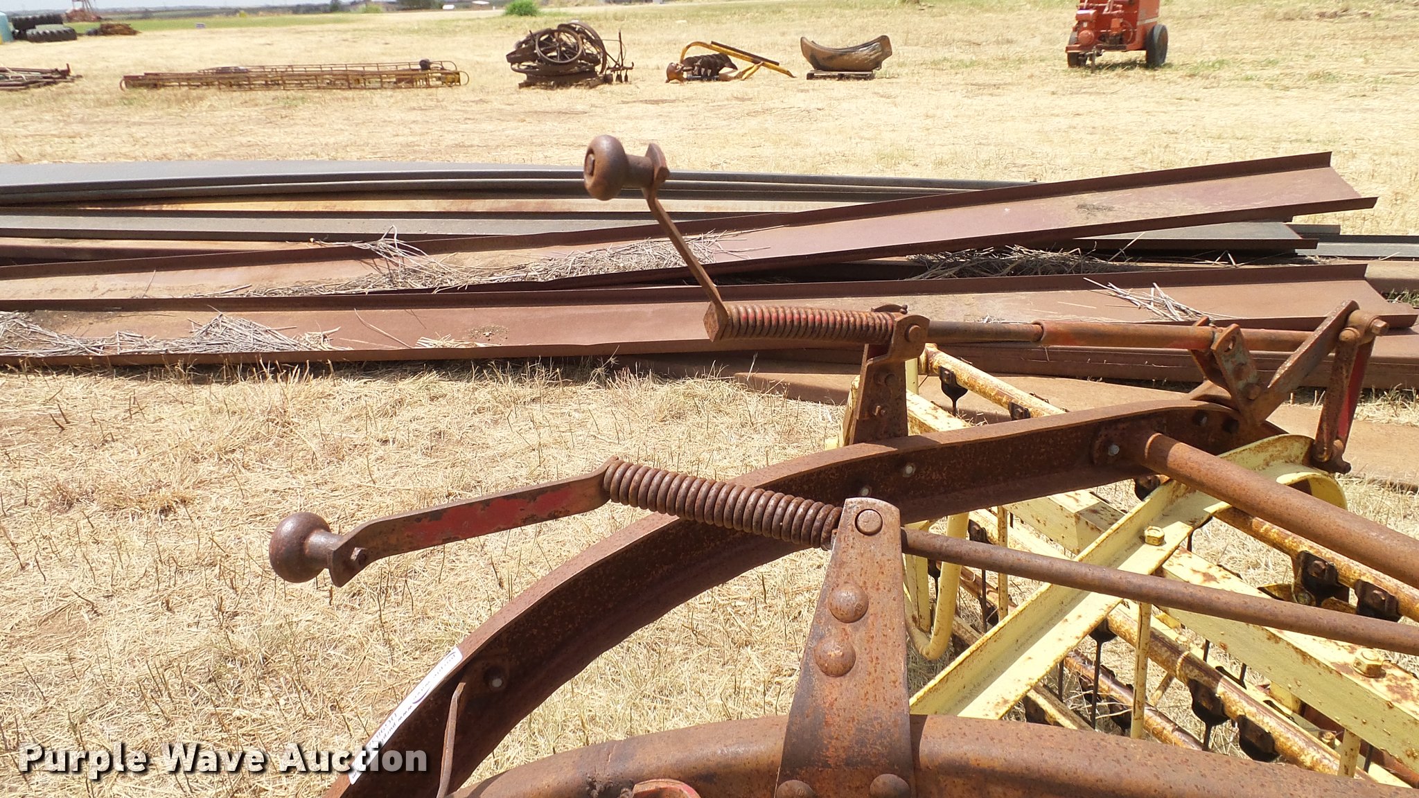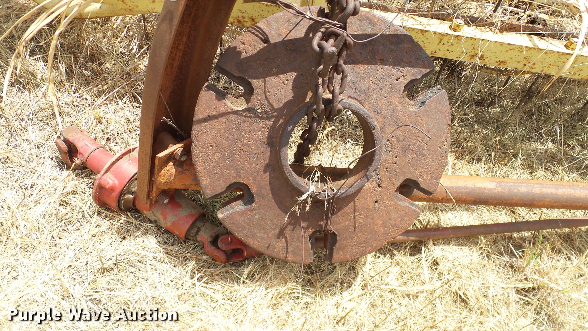 Purple Wave is selling a used Hay Rake in Oklahoma. This item is a New Holland 56 hay rake with the following: 10'W, Manual adjustment, Ground driven, Pin hitch, Four bolt hubs, No wheels or tires, Serial 47674