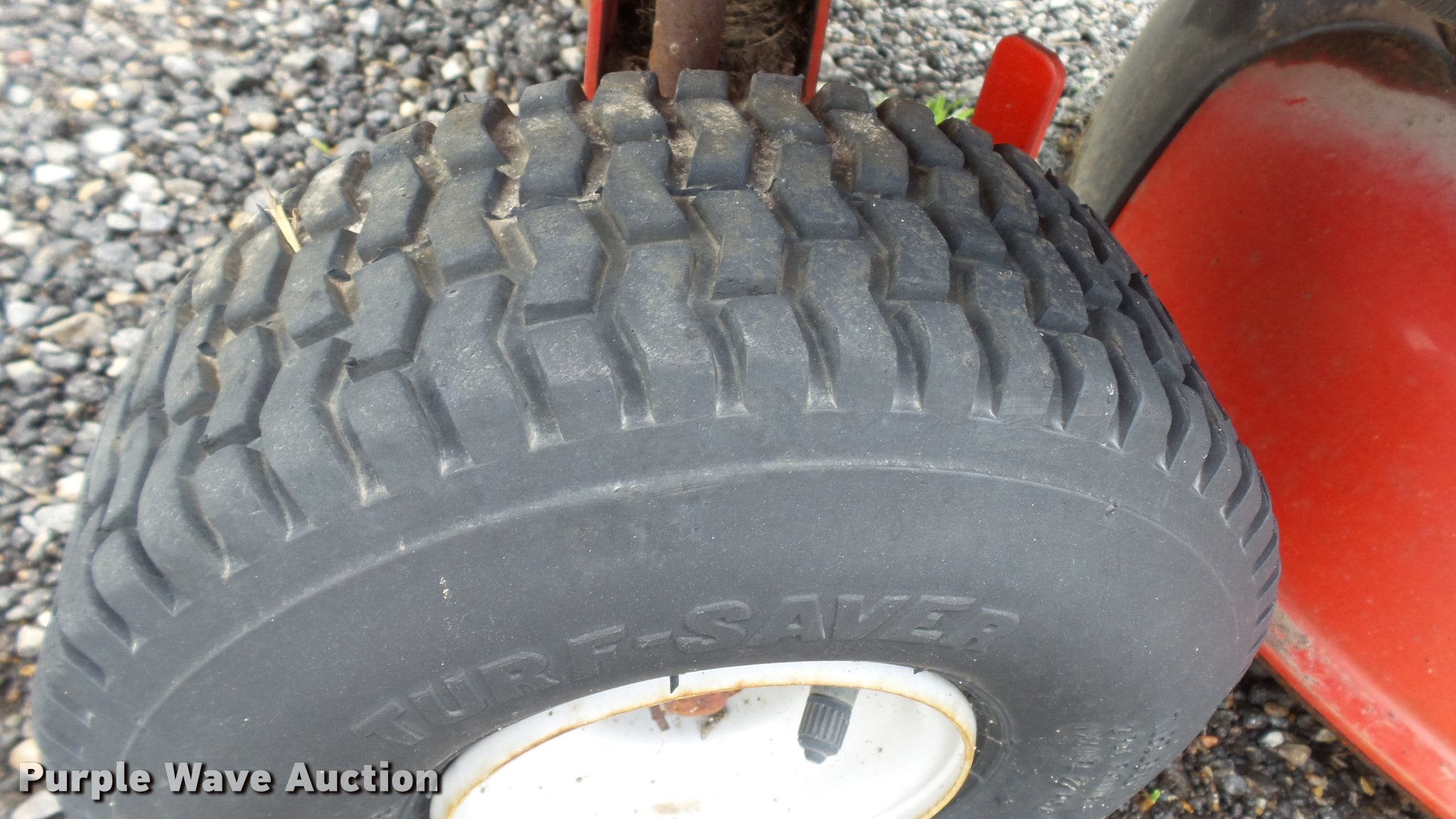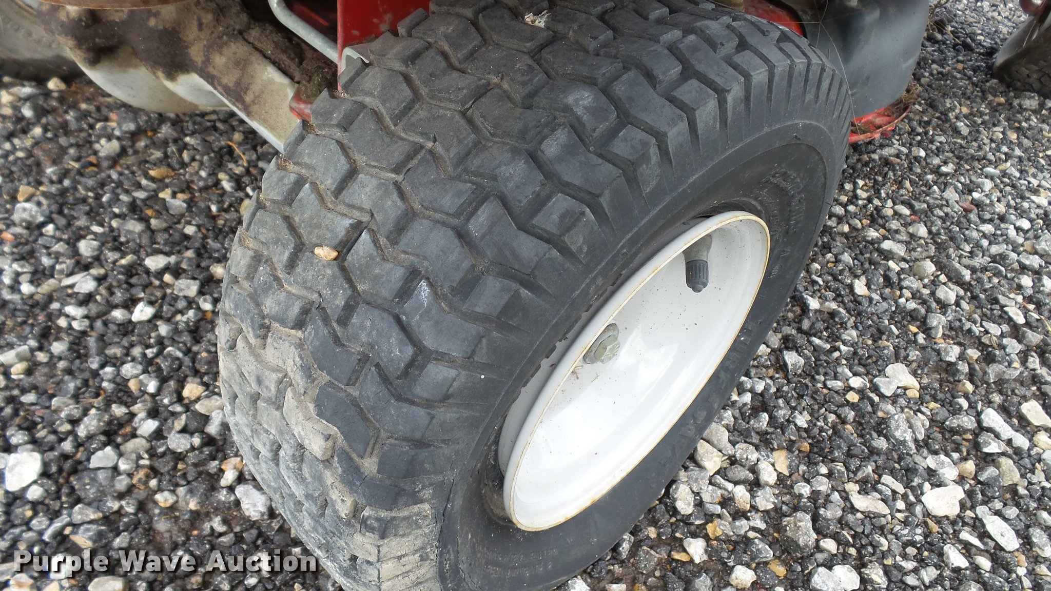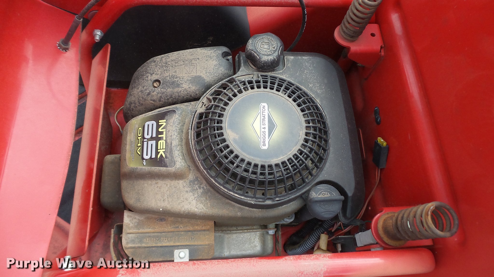 Purple Wave is selling a used Lawn Mower in Kansas. This item is a Yard Machines LUV Bug lawn mower with the following: 23.5" cut, Briggs & Stratton Intek single cylinder gas engine, 6.5 HP, Serial 275078, Hydrostatic transmission, Turf Saver 11x4.00-4 front tires, Carlisle 13x5.00-6 rear tires, Flat tire, One tire off bead, No key, Dead battery, Unknown operating condition, Serial 1B254I10074