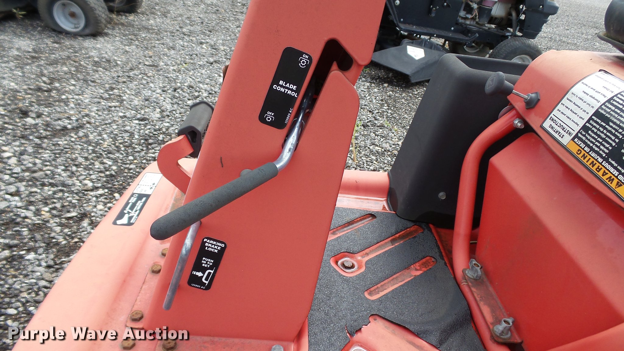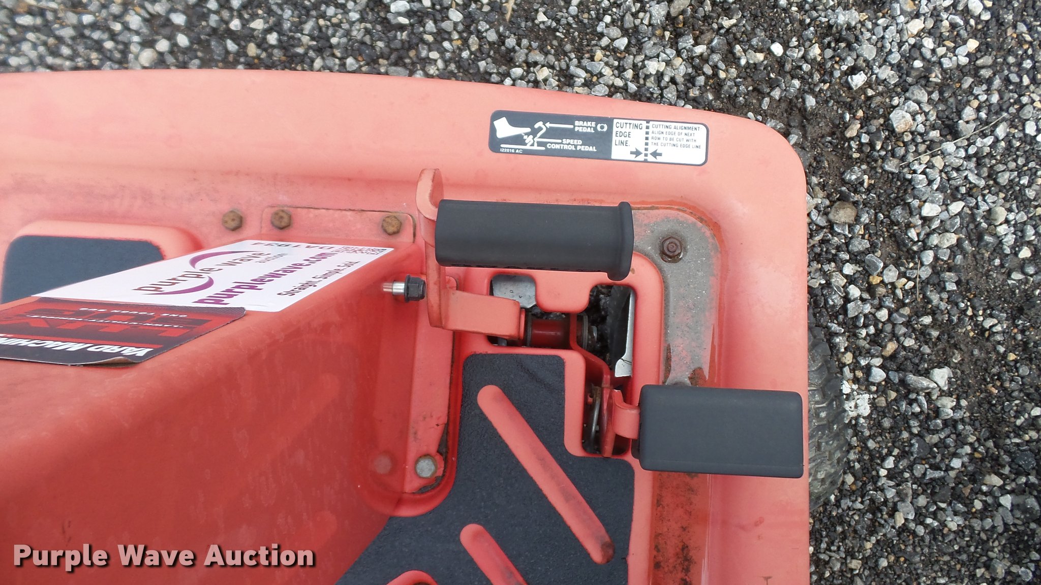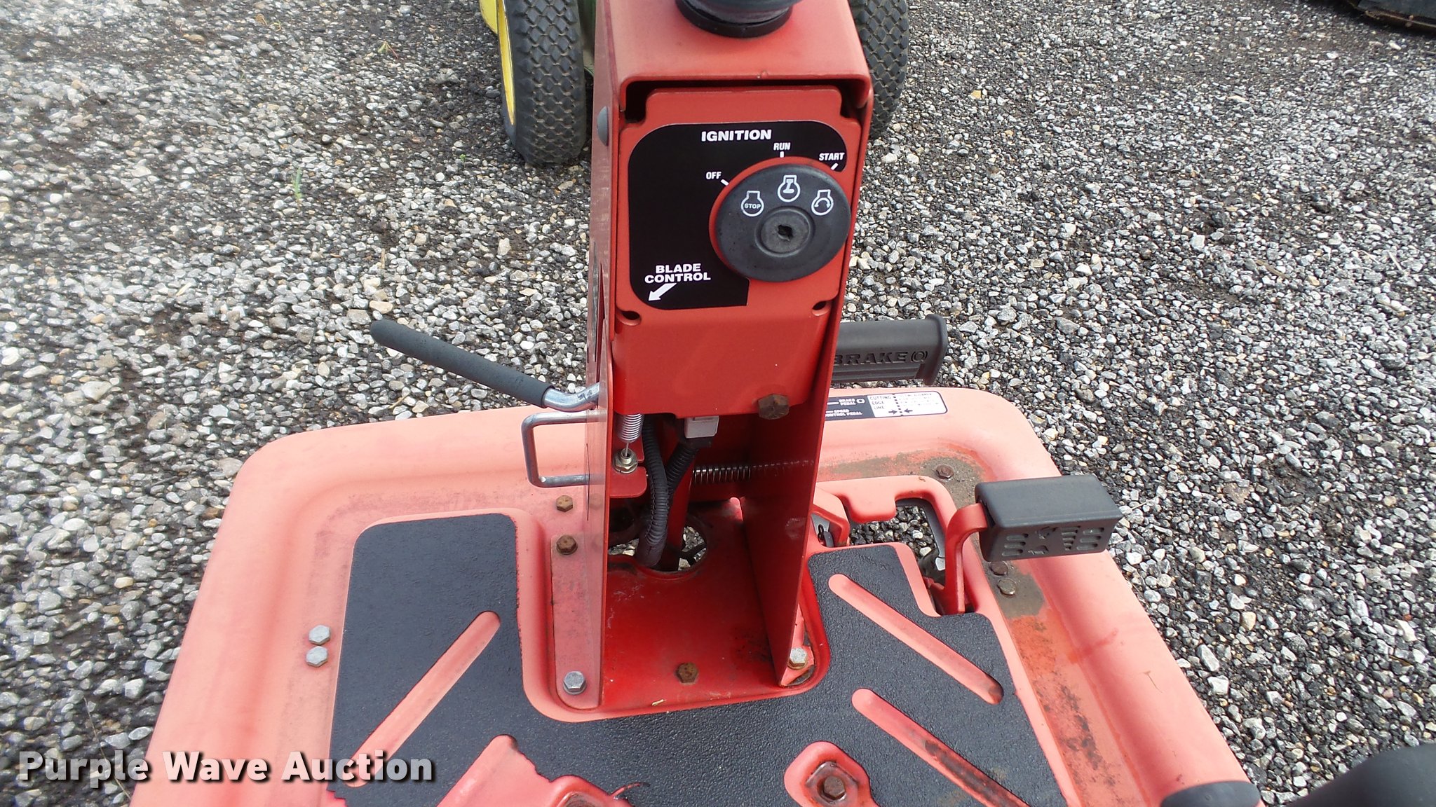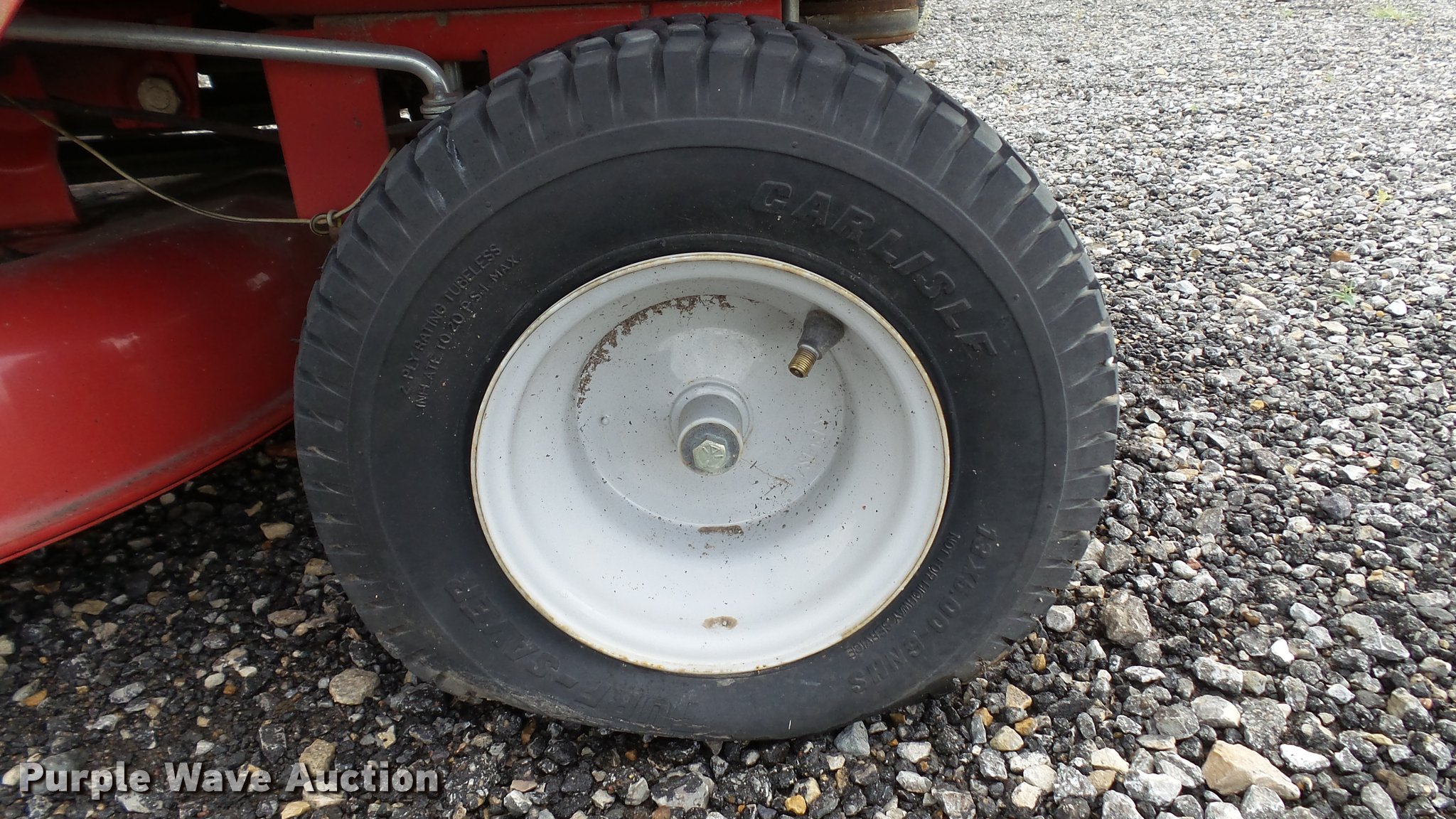 Purple Wave is selling a used Lawn Mower in Kansas. This item is a Yard Machines LUV Bug lawn mower with the following: 23.5" cut, Briggs & Stratton Intek single cylinder gas engine, 6.5 HP, Serial 275078, Hydrostatic transmission, Turf Saver 11x4.00-4 front tires, Carlisle 13x5.00-6 rear tires, Flat tire, One tire off bead, No key, Dead battery, Unknown operating condition, Serial 1B254I10074