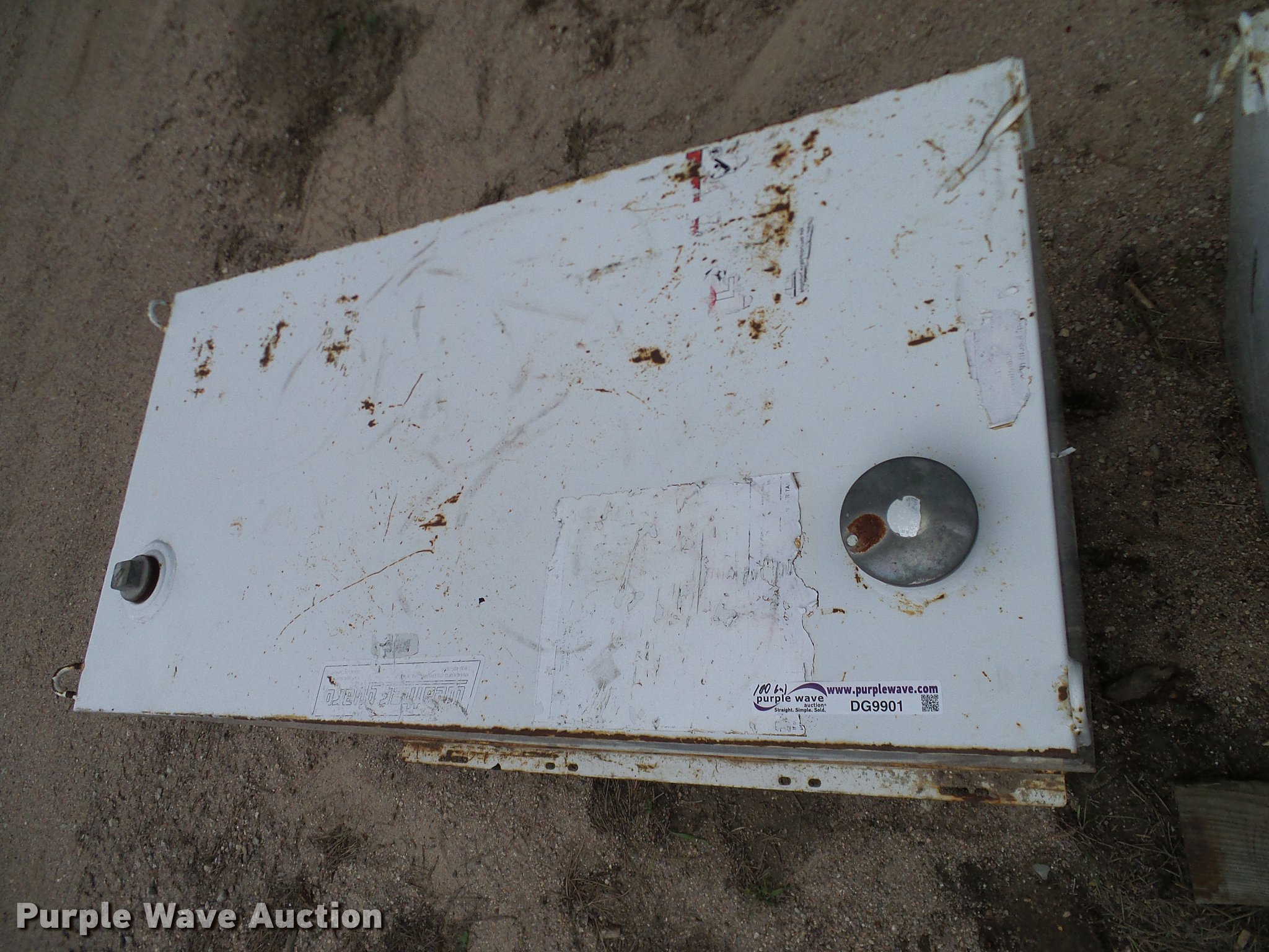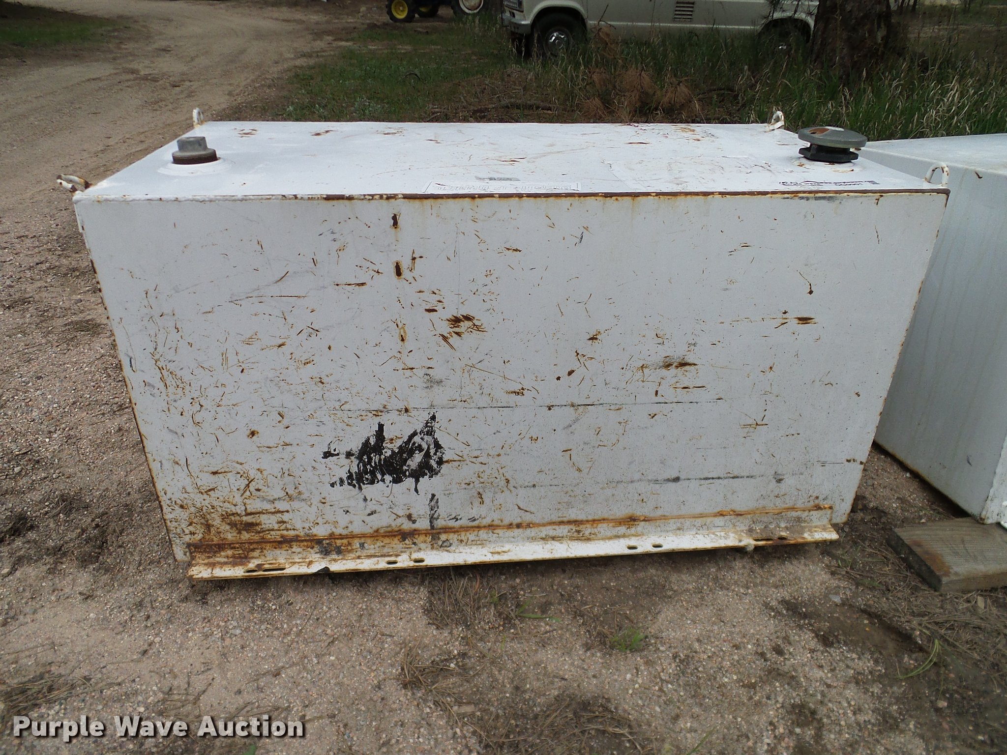 Purple Wave is selling a used Fuel and Lube in Colorado. This item is a Weatherguard fuel tank with the following: 46"L x 24"W x 24"H, 100 gallon capacity, Lifting eyes