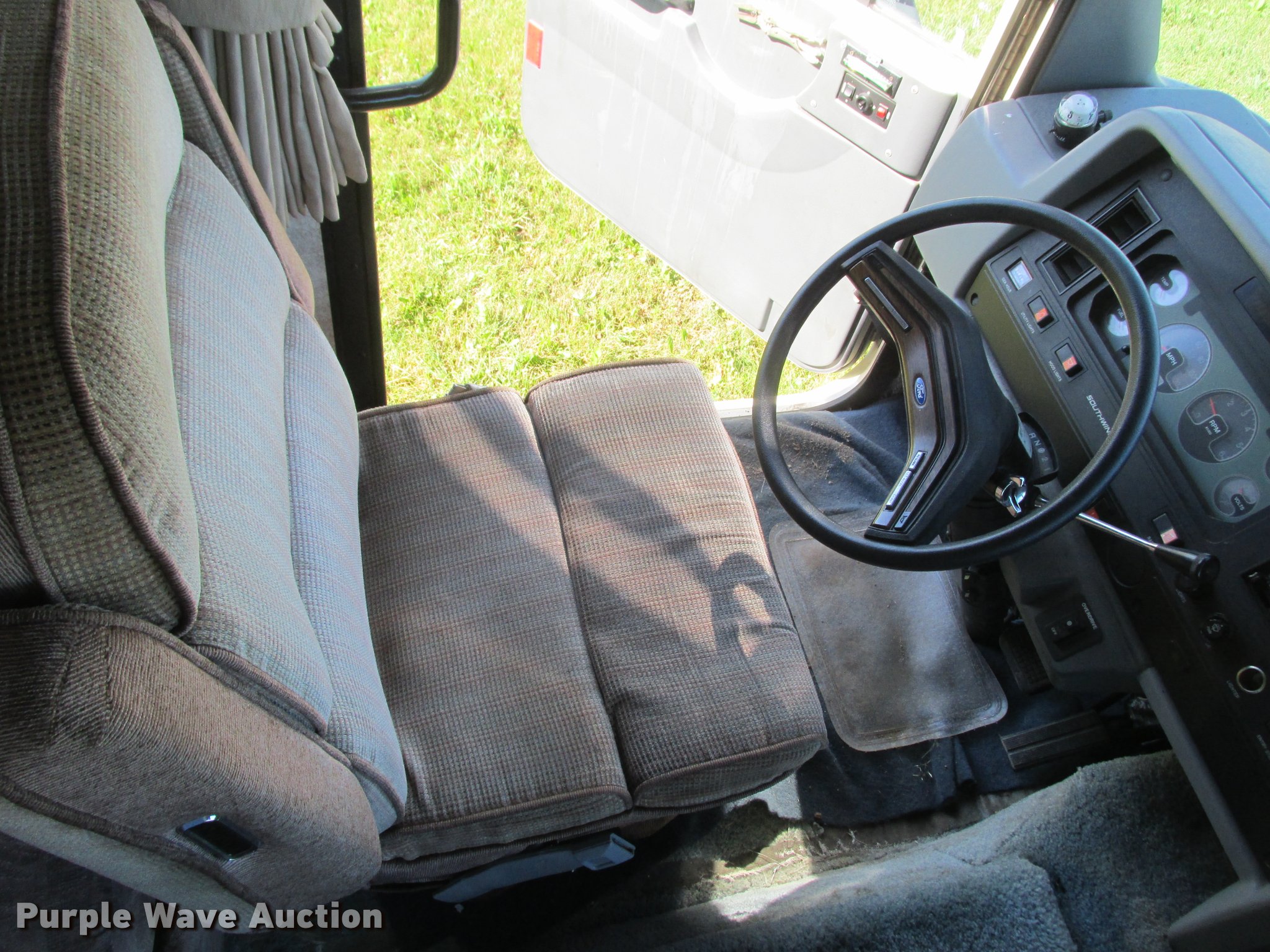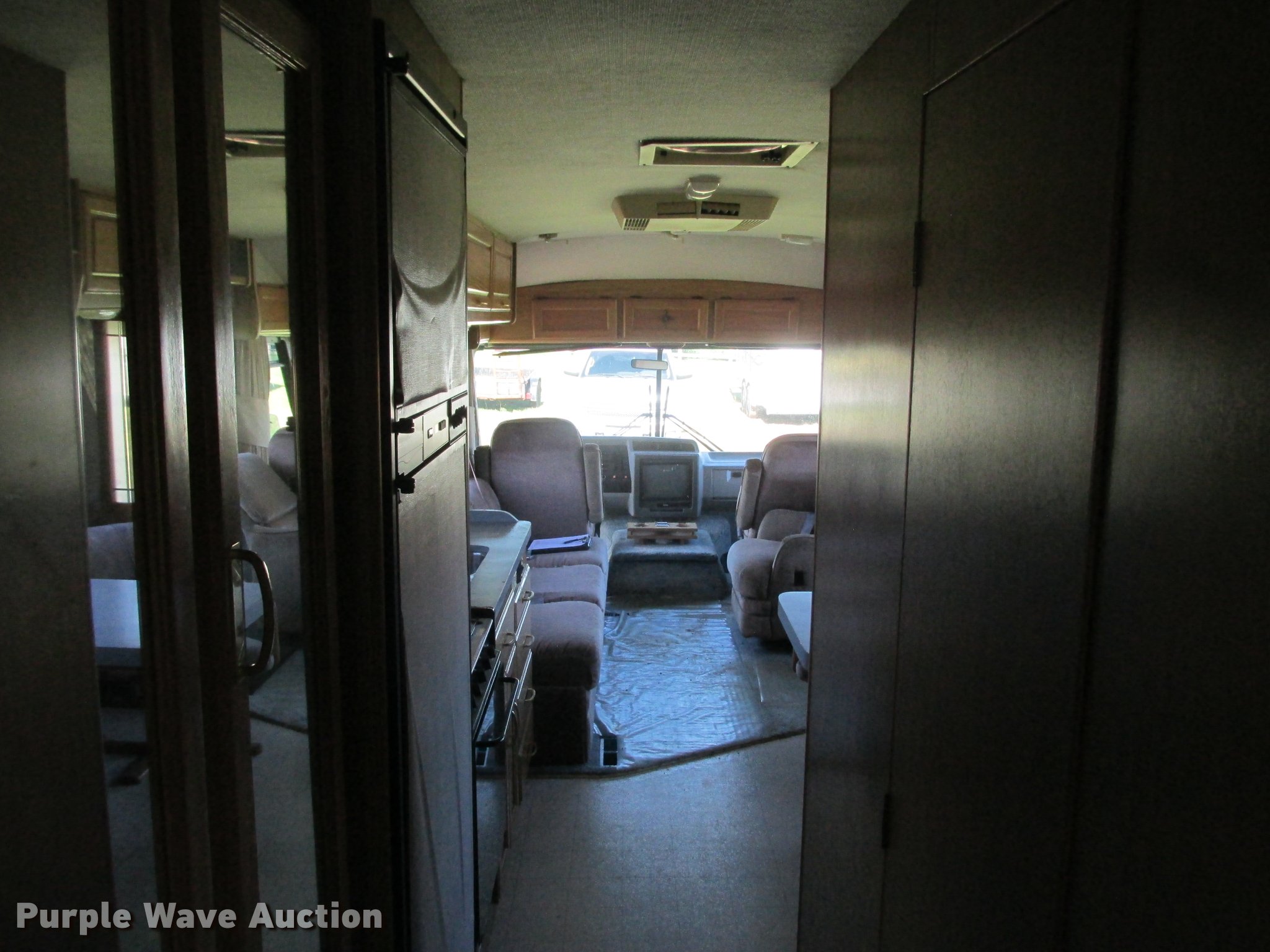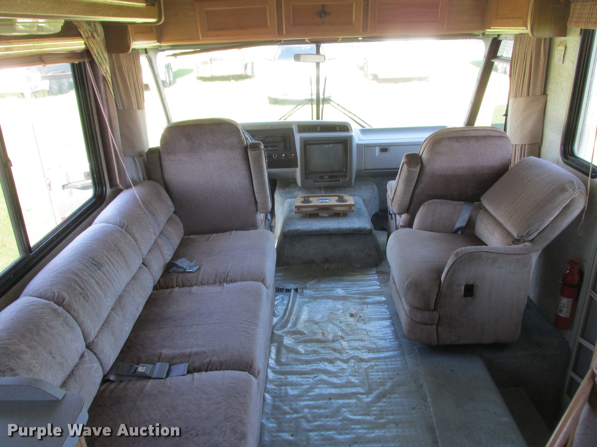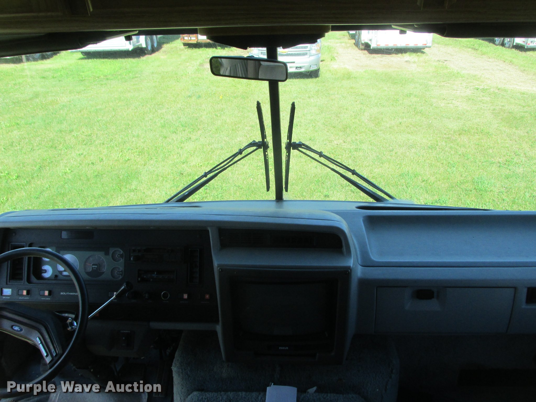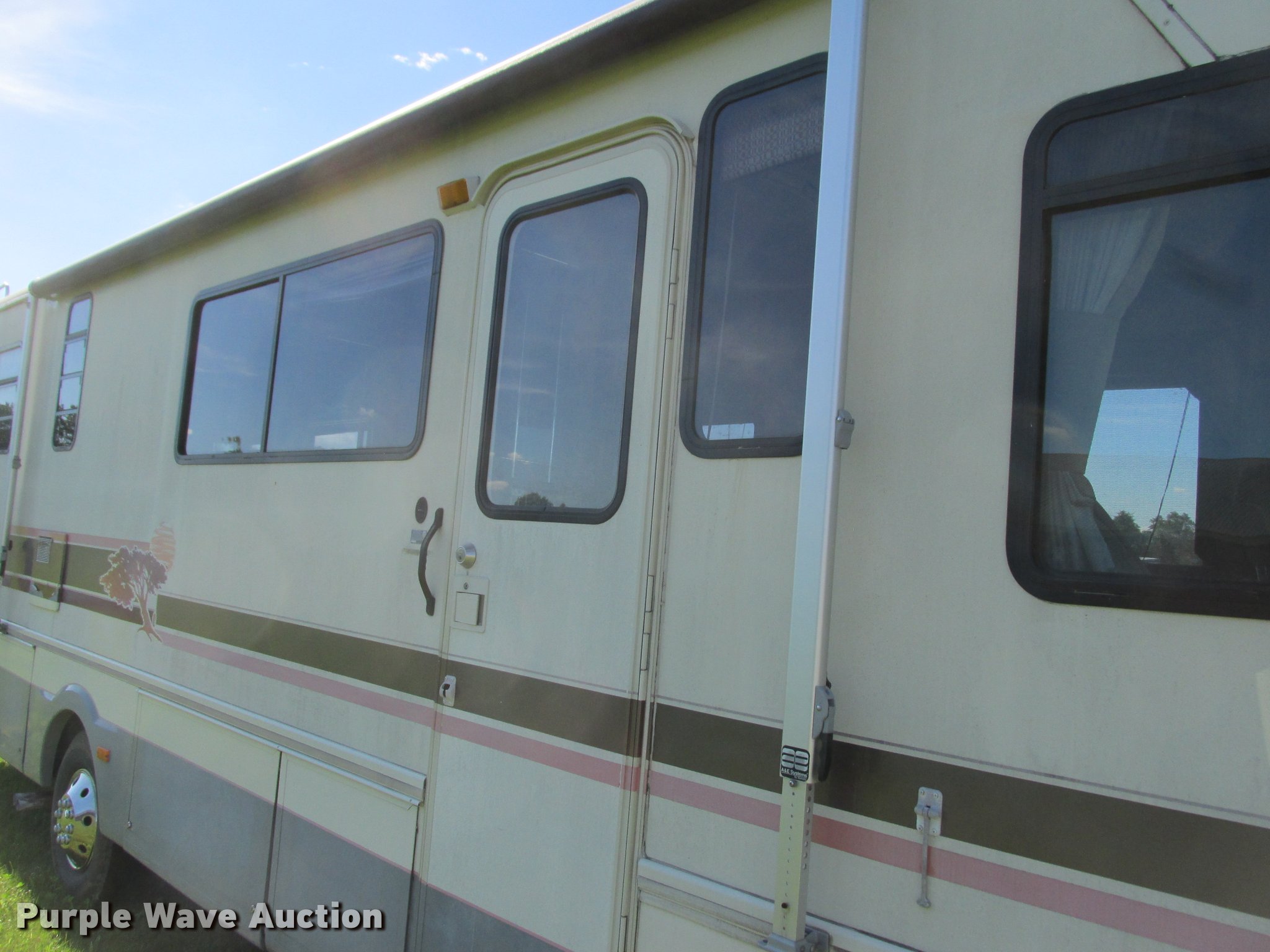 Purple Wave is selling a used RV in Minnesota. This item is a 1992 Fleetwood Southwind RV with the following: 32'L, 460 C.I.D. eight cylinder gas engine, Automatic transmission, AC and heat, AM/FM/cassette, Heated mirrors, Cloth interior, Awning, Generator, Dual rooftop AC units, Propane stove, Microwave, Sink, Storage cabinets, Refrigerator/freezer, Bathroom, Television, Master bedroom, Power entry steps, Roof access ladder, Receiver hitch, Trailer wiring, 265/75R16 front tires, 235/85R16 rear tires