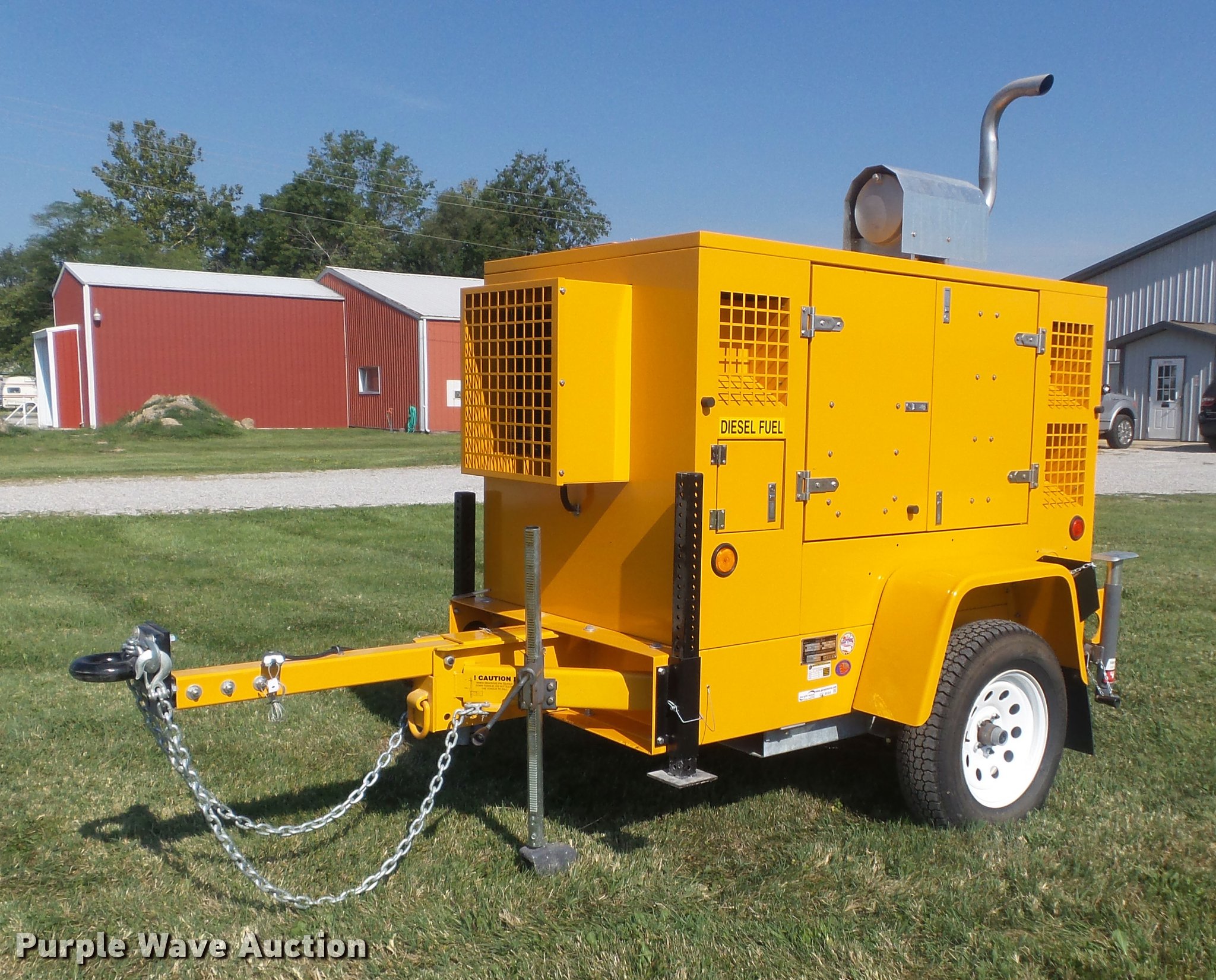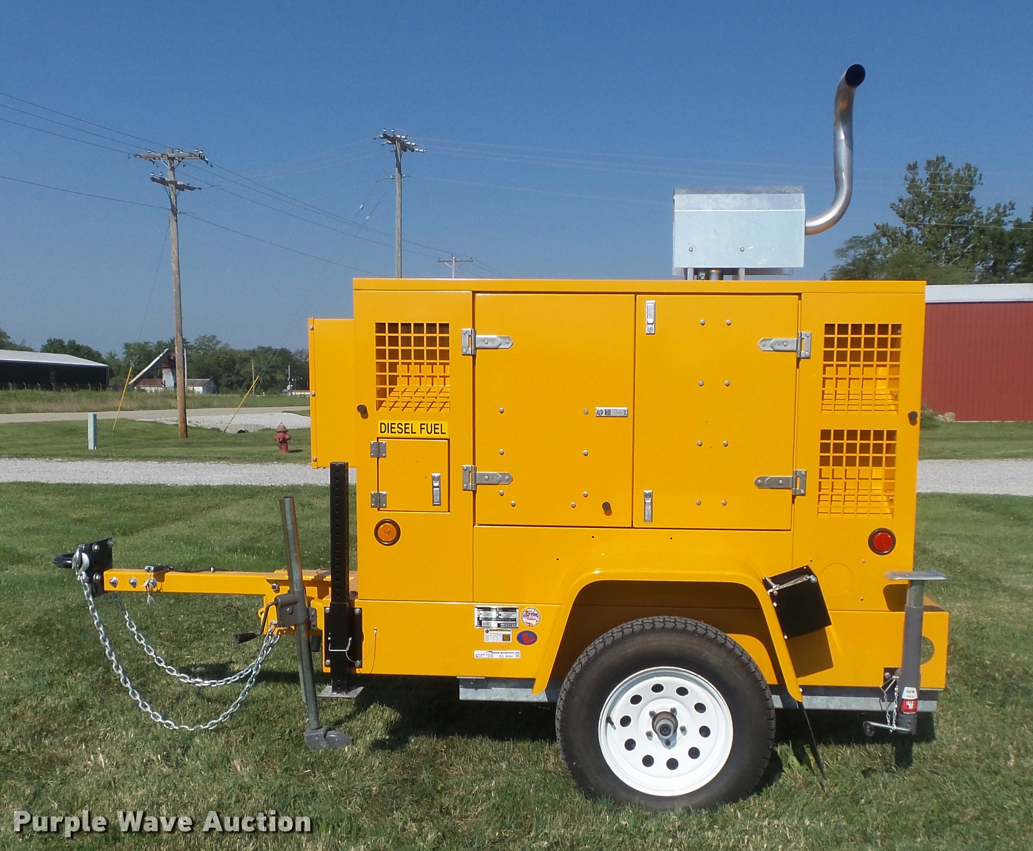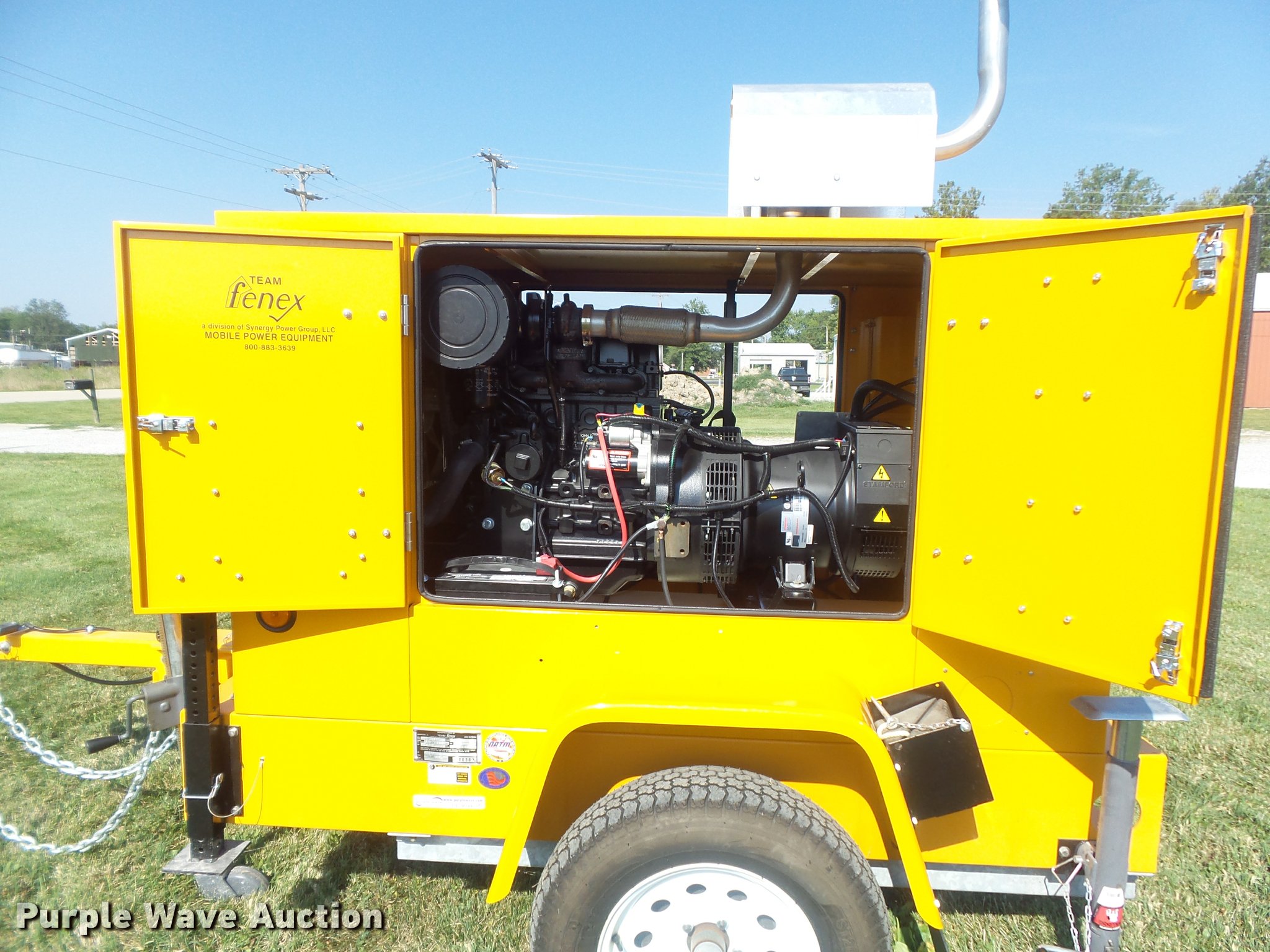 Purple Wave is selling a used Generator Set in Illinois. This item is a 2015 Team Fenex S251JD generator with the following: 2 hours on meter, John Deere T4024T four cylinder turbo diesel engine, Serial PE4024R113679, Stamford generator, Control panel, 25,000 watts, 25 kW, Single phase, 120/240V, 100 gallon fuel tank, Pintle hitch, ST205/75D15 tires, GVWR 3,500 lbs, 2,580 lbs shipping weight, Serial 1T9US0615FS054008