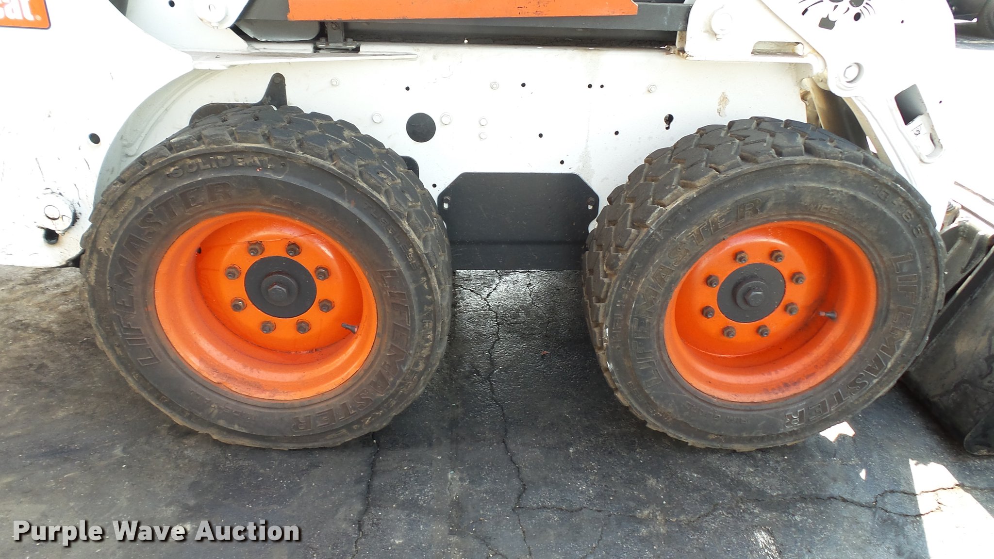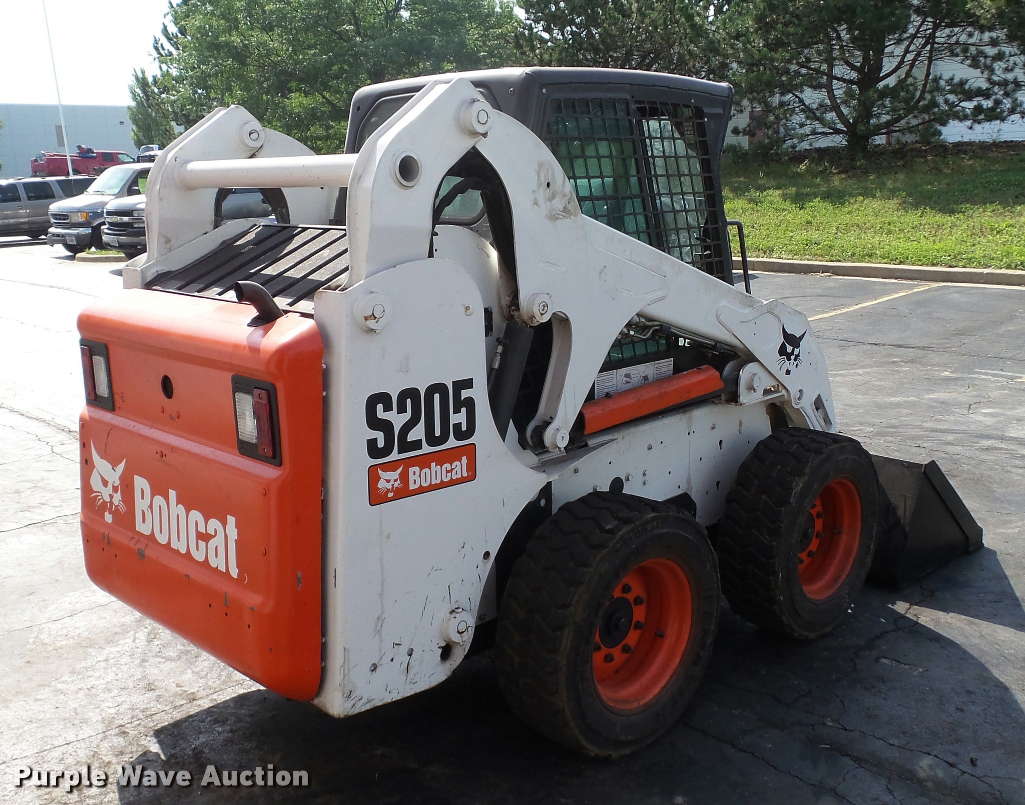 Purple Wave is selling a used Skid Steer Loader in Illinois. This item is a 2012 Bobcat S205 skid steer with the following: 635 hours on meter, Kubota V2607-D1-T-EU3 2.6L four cylinder diesel engine, Two speed hydrostatic transmission, Enclosed cab, AC and heat, Hand and foot controls, Spring suspension seat, Backup alarm, Block heater, Front work lights, 66"W bucket, Weld-on cutting edge, Hydraulic quick coupler, Auxiliary hydraulics, Lift Master 10-16.5 foam-filled tires, Serial A3LJ39728