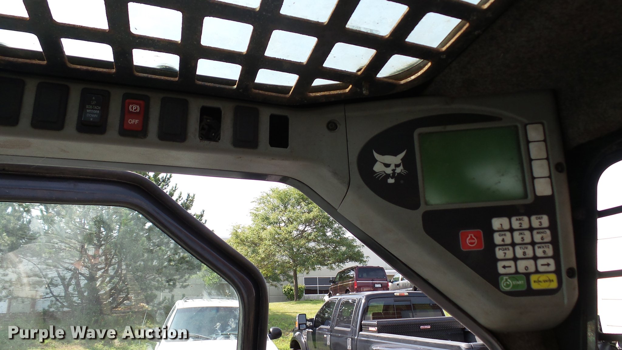 2012 Bobcat S205 skid steer. 635 hours on meter, Kubota V2607-D1-T-EU3 2.6L four cylinder diesel engine, Two speed hydrostatic transmission, Enclosed cab AC and heat, Hand and foot controls, Spring suspension seat, Backup alarm, Block heater, Front work lights, 66"W bucket Weld-on cutting edge, Hydraulic quick coupler, Auxiliary hydraulics, Lift Master 10-16.5 foam-filled tires, Serial A3LJ39728. St. Charles, IL 60175