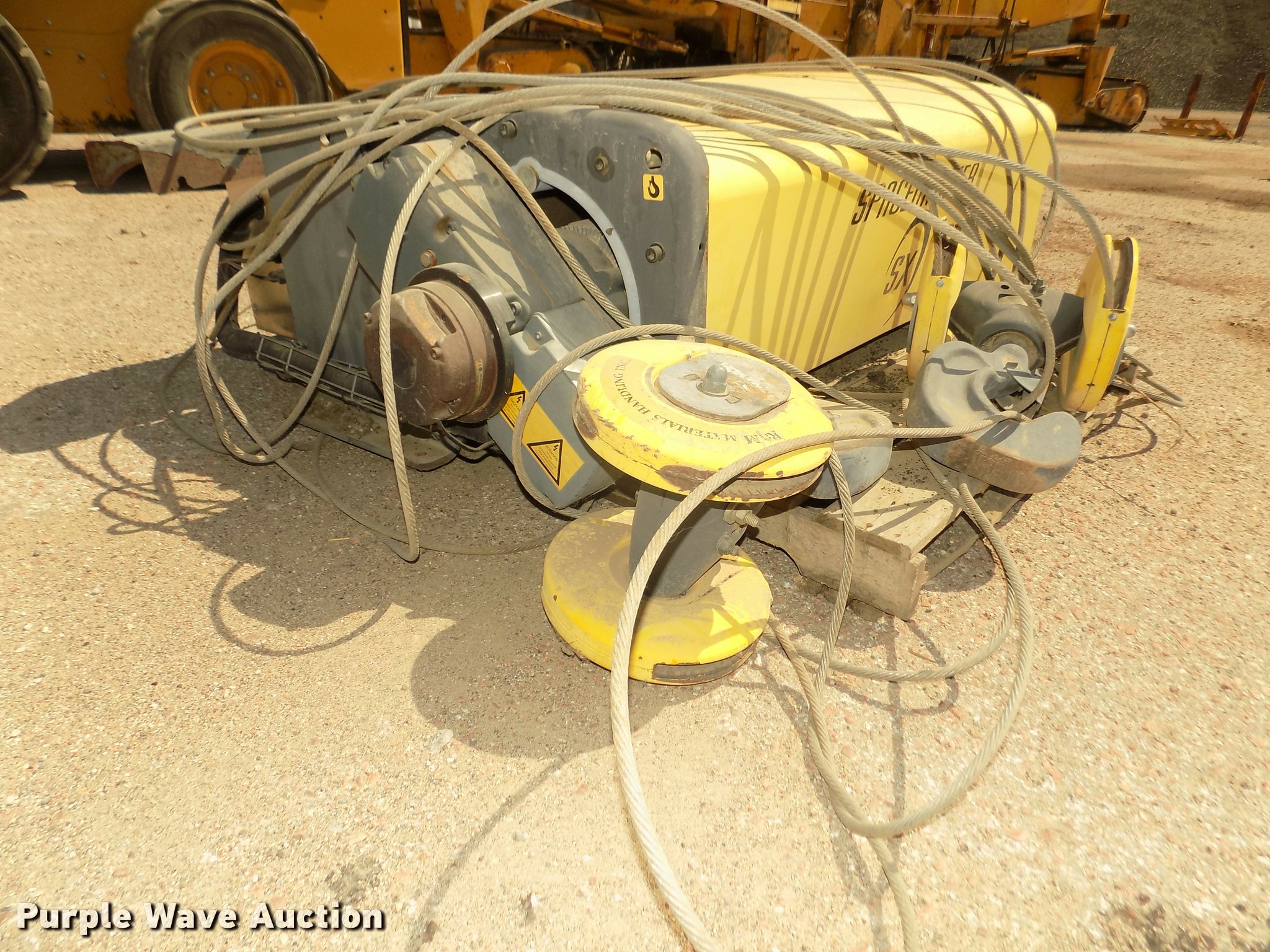 Purple Wave is selling a used Other Industrial or Business in Iowa. This item is a Railcar vibrator and hoist with the following: 139"L x 60"W x 56"H, 20 HP, Three phase, 230/460V, Lifting accessories not included, 2006 R&M Materials Space Master SX hoist assembly, 5'2"W x 4'D, Electric motor, Three phase, 440/480V, Approx. 7/16 cable, 45" diameter drum, Load: 6.6 STON, 115V controller, 20/3.2 FPM, Product No. SX5042060P56FHF0S, ID No. MT11X-106N166P85003E-IP66, Serial HGY37921, Unit# 243019, 243021