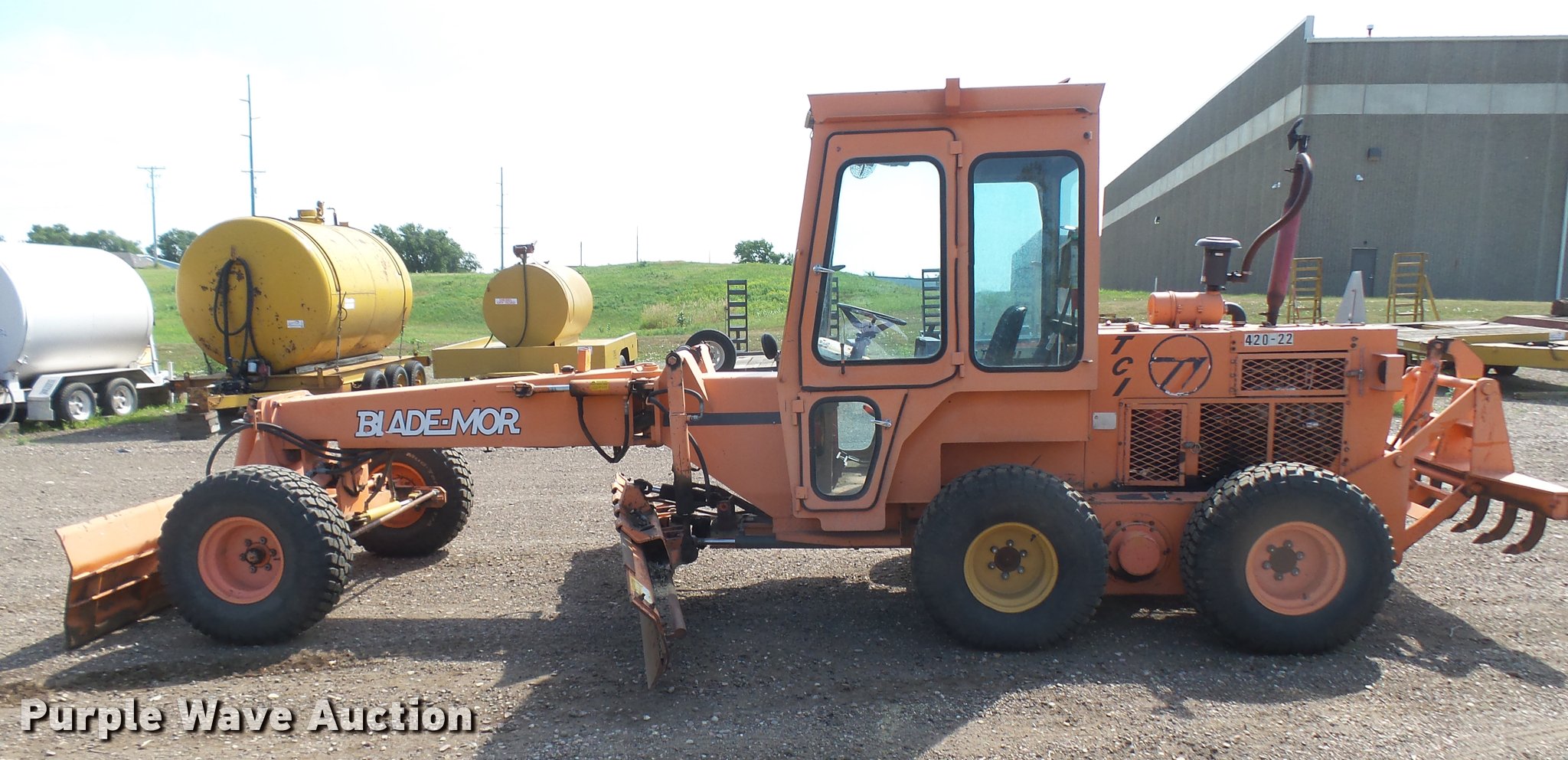 Purple Wave is selling a used Motor Grader in South Dakota. This item is a Blademor TCI-747 motor grader with the following: 668 hours on meter, Isuzu four cylinder diesel engine, 60 HP, Shuttle shift transmission, 4F gears, All wheel drive, EROPS, Serial 65991, Heat, Suspension seat, Front and rear work lights, 10'W moldboard, Tip control, Side shift, Rear mounted scarifier, (7) teeth, Front mounted blade, 84"W, 35 x 12.50R15LT tires, Serial D6850072