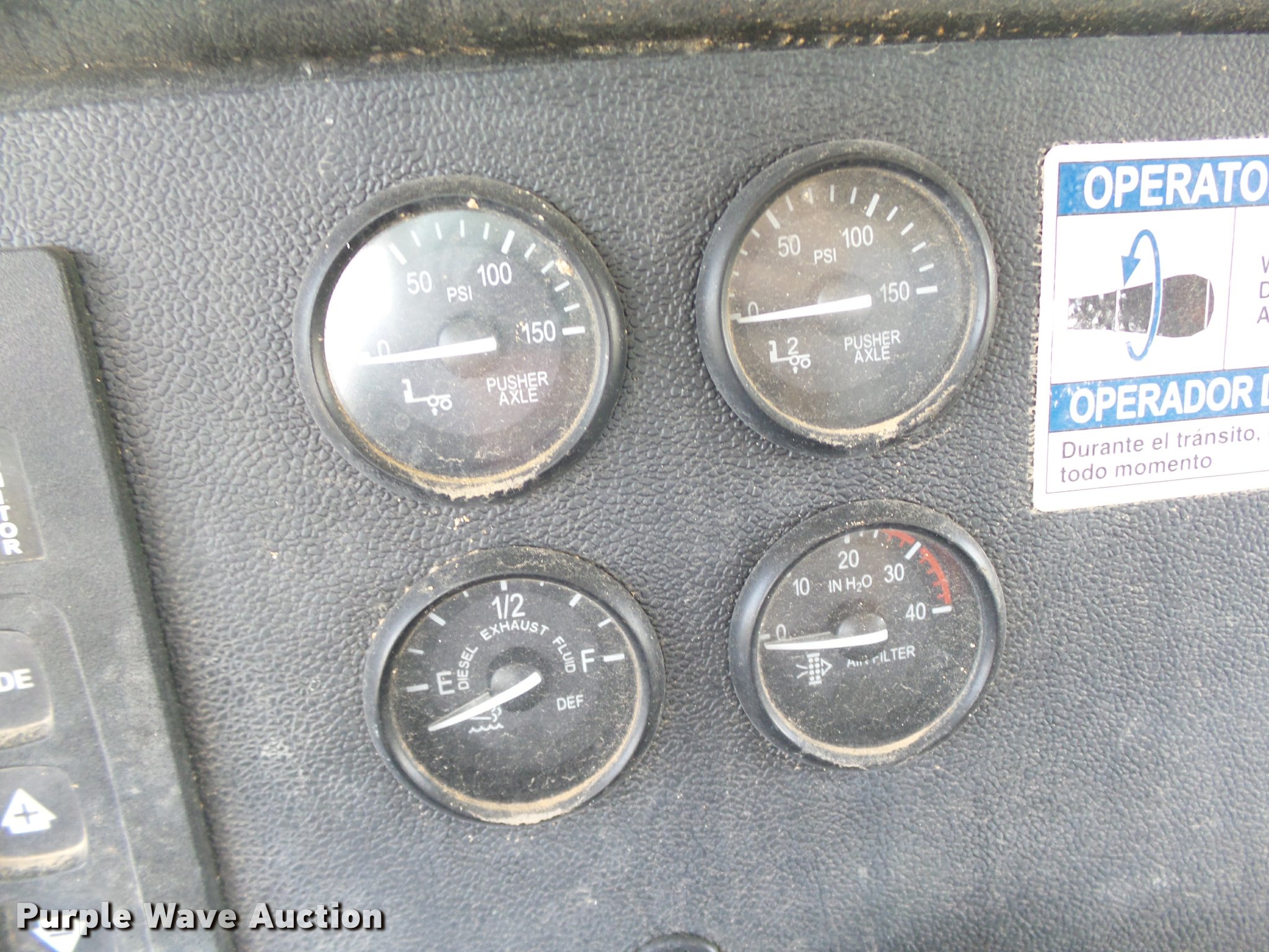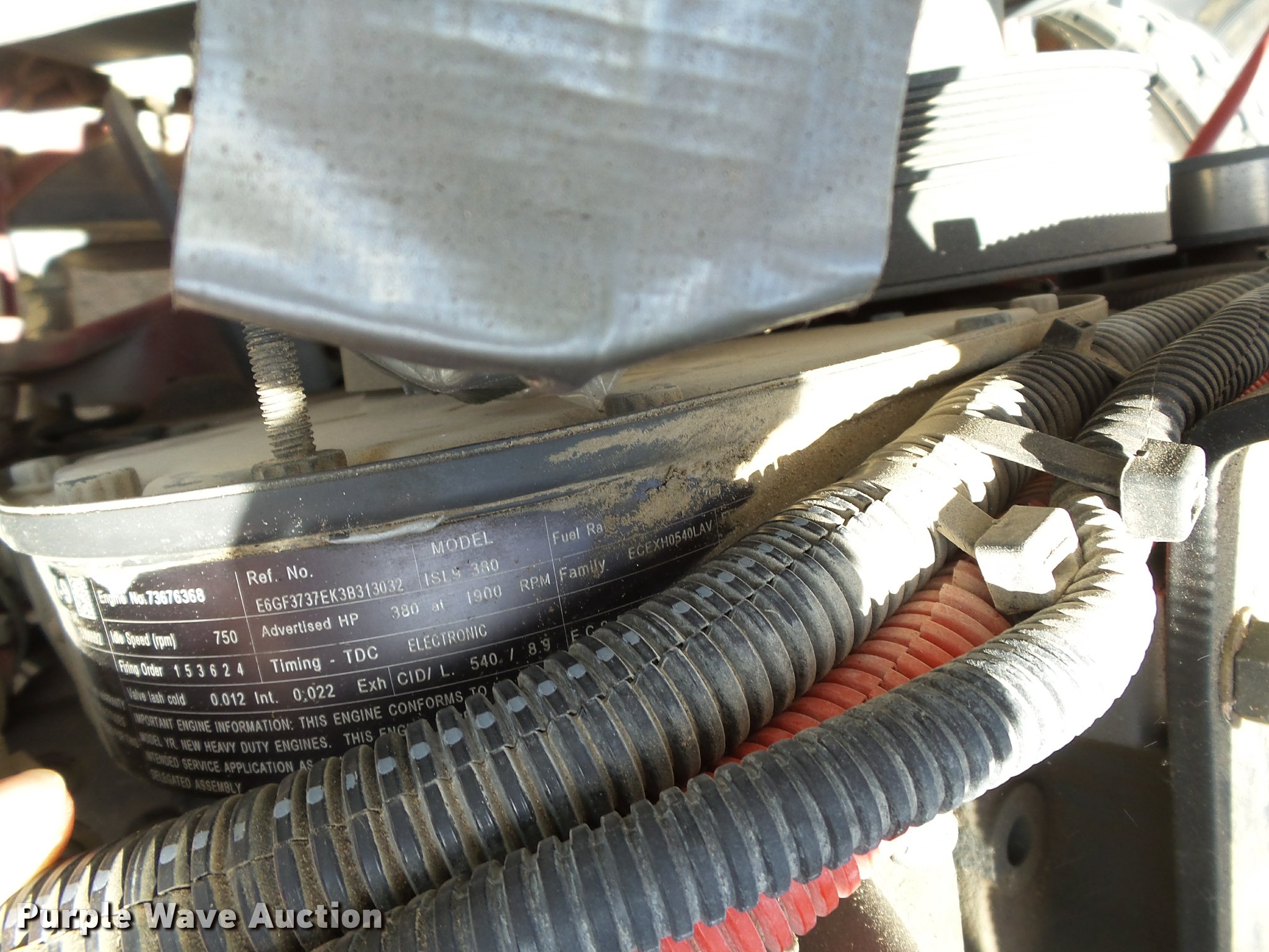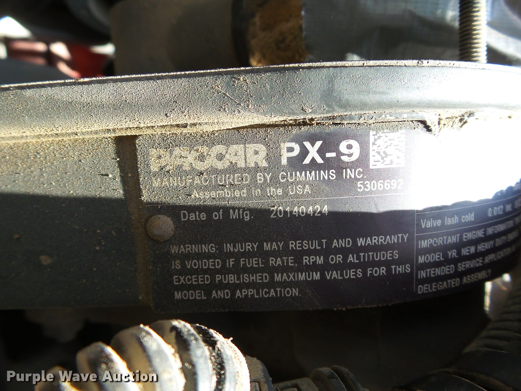 2015 Peterbilt 365 ready mix truck. Cummins ISL-G 8.9L L6 turbo diesel engine 380 HP, Serial 73676368, Automatic transmission, Tandem axle, Inter-axle differential lock, AC and heat, Cruise, Power and heated mirrors, Air suspension seat, Air ride cab, Exterior visor, 2015 Kimble K2200C ready mix bed 11 cu.yd. capacity, 494 cu.ft. drum volume, 14.75 cu.yd. agitator capacity, Rear drum controls, Single steel chute extensions, 100 gallon water tank, Ladder, Rear discharge, Drum/axle controls, Kimble 5" display monitor, Drive cam, Five cubits system, Single fuel tank, (2) pusher axles, 260" wheelbase, Rubber suspension, Air brakes, 425/65R22.5 front tires, Bridgestone 215/75R17.5 intermediate axle tires, 11R22.5 rear tires, GVWR 75,500 lbs, FAWR 20,000 lbs, IAWR 8,000 lbs, RAWR 23,000 lbs, Unit# 205082. Oklahoma title. Title distribution may be delayed up to 14 days from verification of funds. 1NPSLJEX1FD266651. Dolese Bros. Co.. 5600 W Reno Ave. Oklahoma City, OK 73127