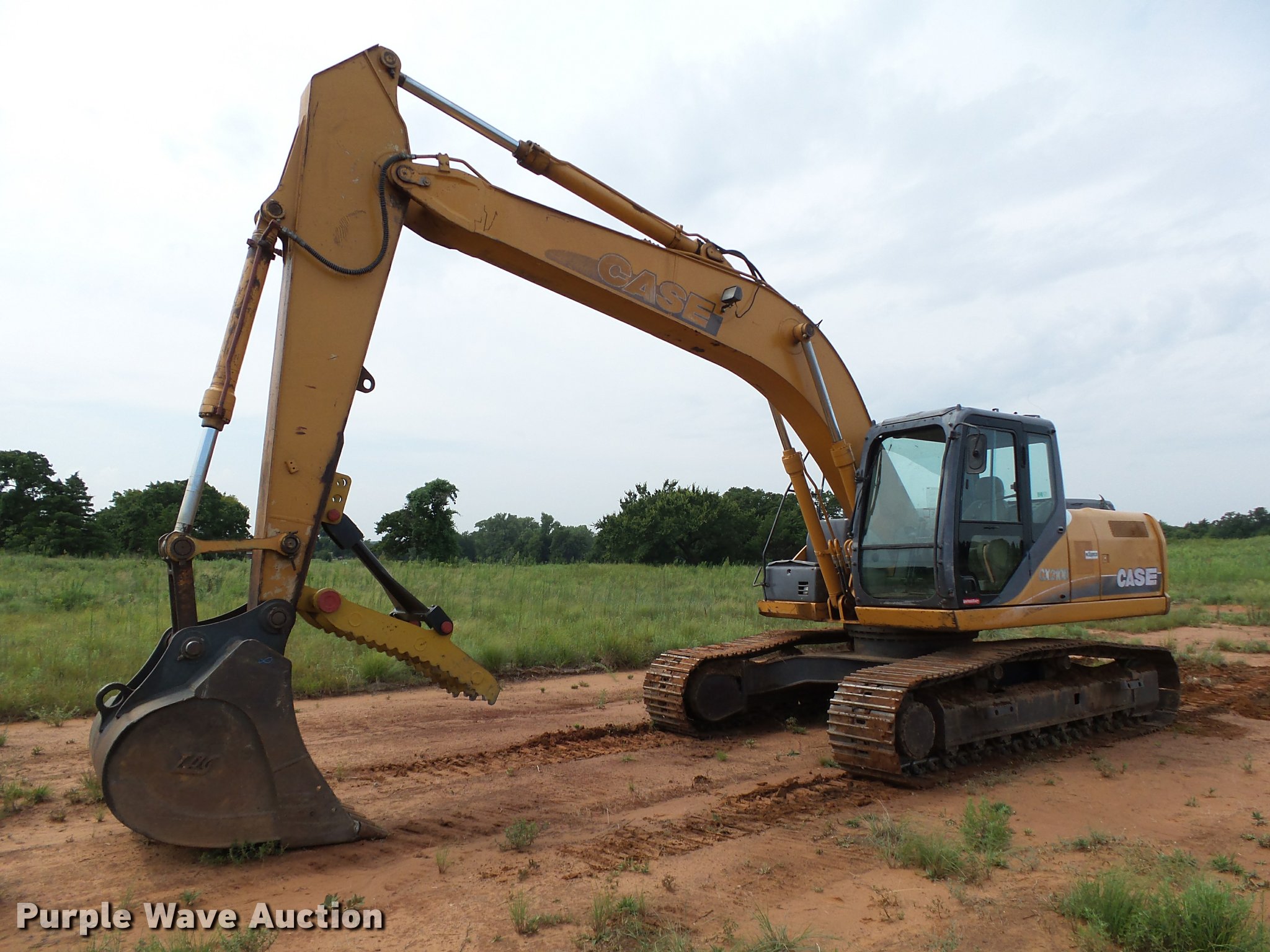 Purple Wave is selling a used Hydraulic Excavator in Oklahoma. This item is a 2008 Case CX210B excavator with the following: 7,876 hours on meter, Isuzu AI-4HK1X 5.2L four cylinder turbo diesel engine, 157 HP, Serial 4HK1-4341601, Two speed hydrostatic transmission, Enclosed cab, AC and heat, AM/FM, Wipers, Front work lights, Standard boom, 9'8" stick length, TAG 48"W bucket, (6) bolt-on teeth, 1.6 cu. yd. capacity, 24" manual thumb, Serial DAC210K5N8SAH1847