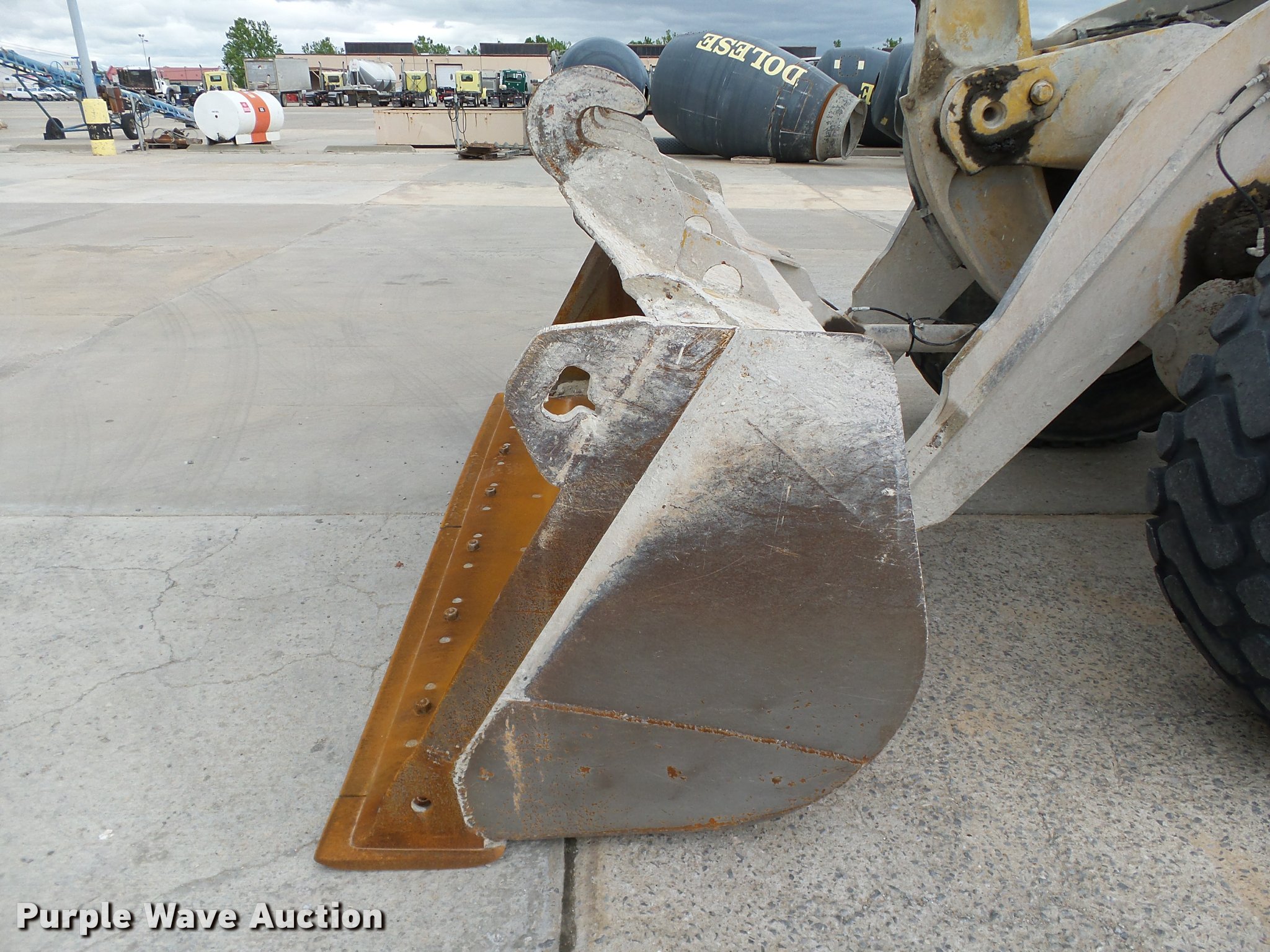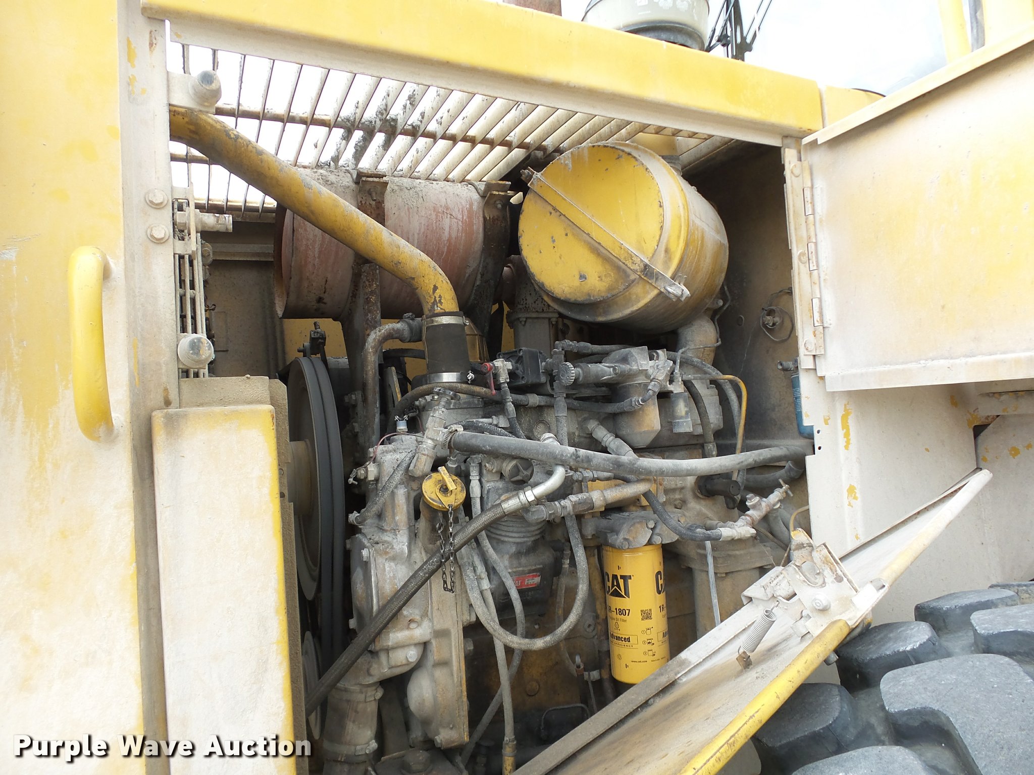 Purple Wave is selling a used Wheel Loader in Oklahoma. This item is a 1987 Caterpillar 950B wheel loader with the following: 4,228 hours on meter, Caterpillar 3304 four cylinder diesel engine, 160 HP, Powershift transmission, 4F-4R gears, EROPS, AC and heat, Tilt steering wheel, Suspension seat, Two-lever bucket controls, Wipers, Front and rear work lights, 108"W x 48"D x 52"H general purpose bucket, 4 cu. yd. capacity, Bolt-on cutting edge, Lincoln quick lube, 20.5R25 tires, Possible coolant in oil, Serial 22Z02573, Unit# 206145