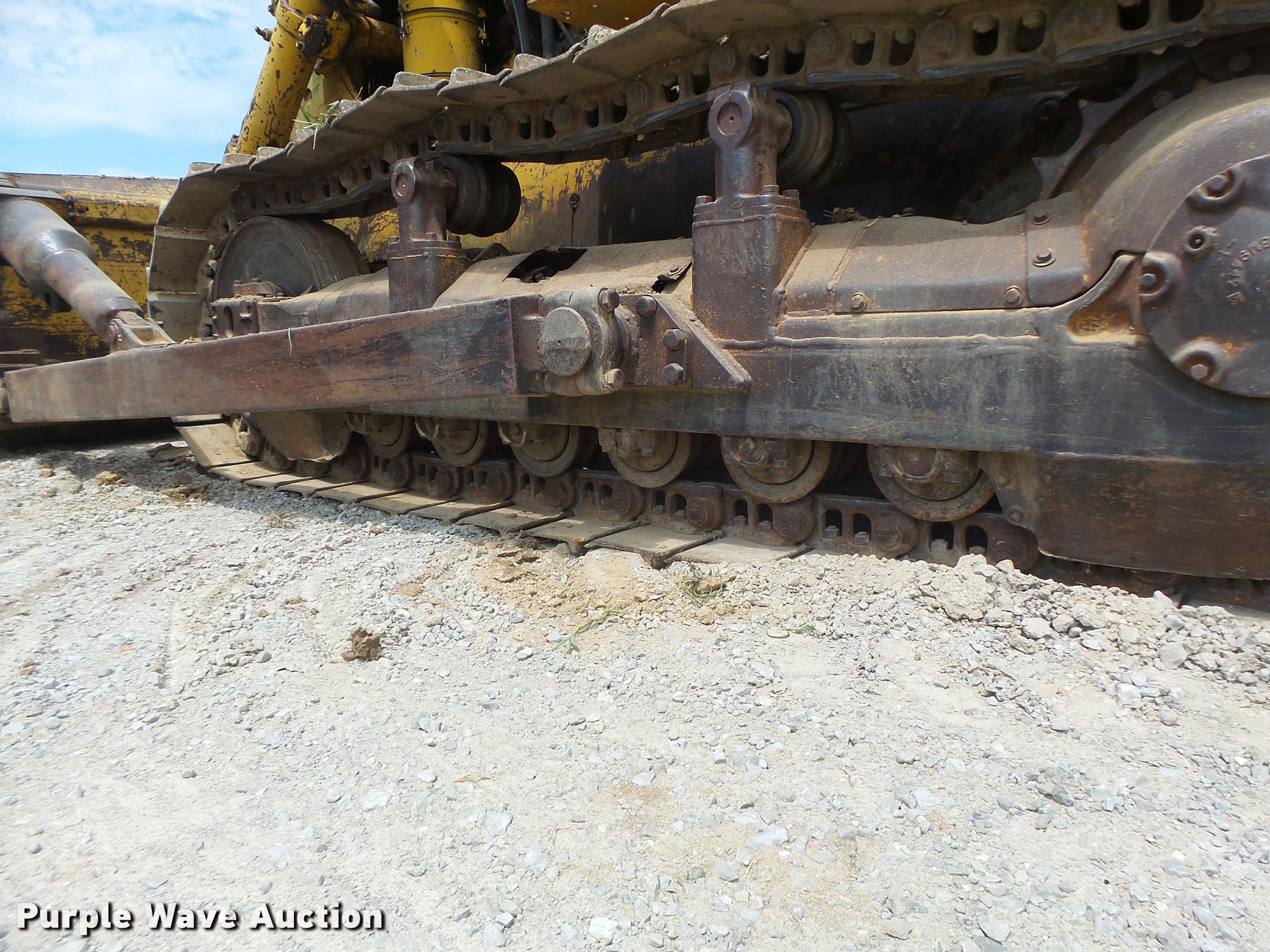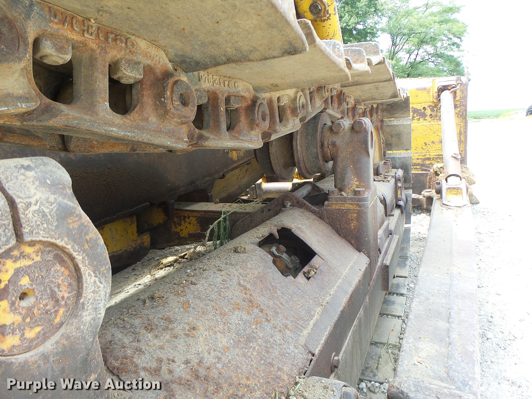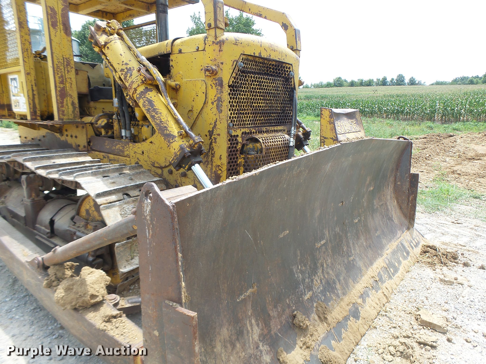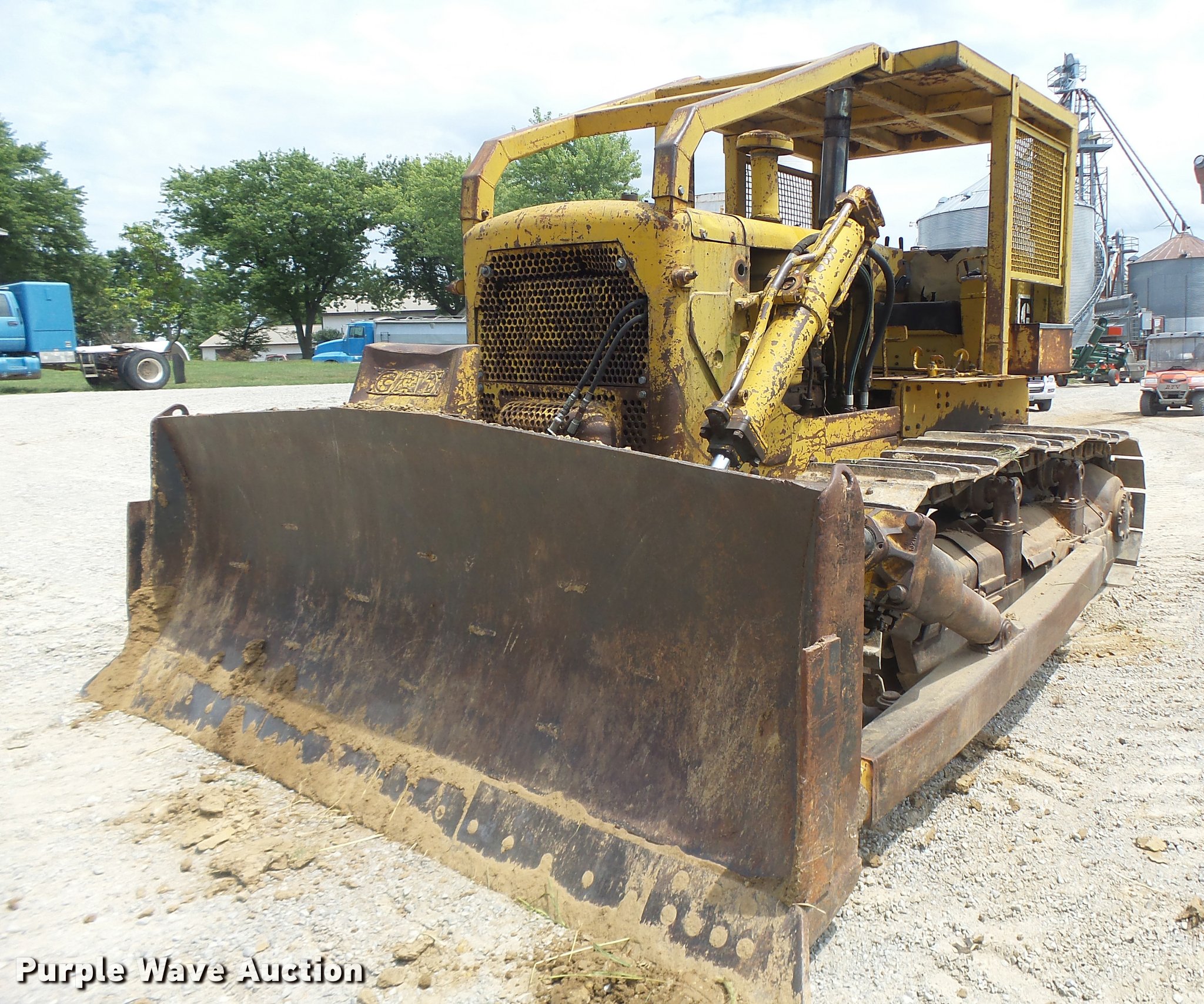 Purple Wave is selling a used Crawler Dozer in Missouri. This item is a 1963 Caterpillar D7E dozer with the following: Unknown hours on meter, Caterpillar four cylinder turbo diesel engine, Powershift transmission, 3F-3R gears, Canopy, Suspension seat, Sweeps, 141" angle dozer blade, Rear hitch, Six bottom rollers, 22" single grouser track pads, Serial 48A2384