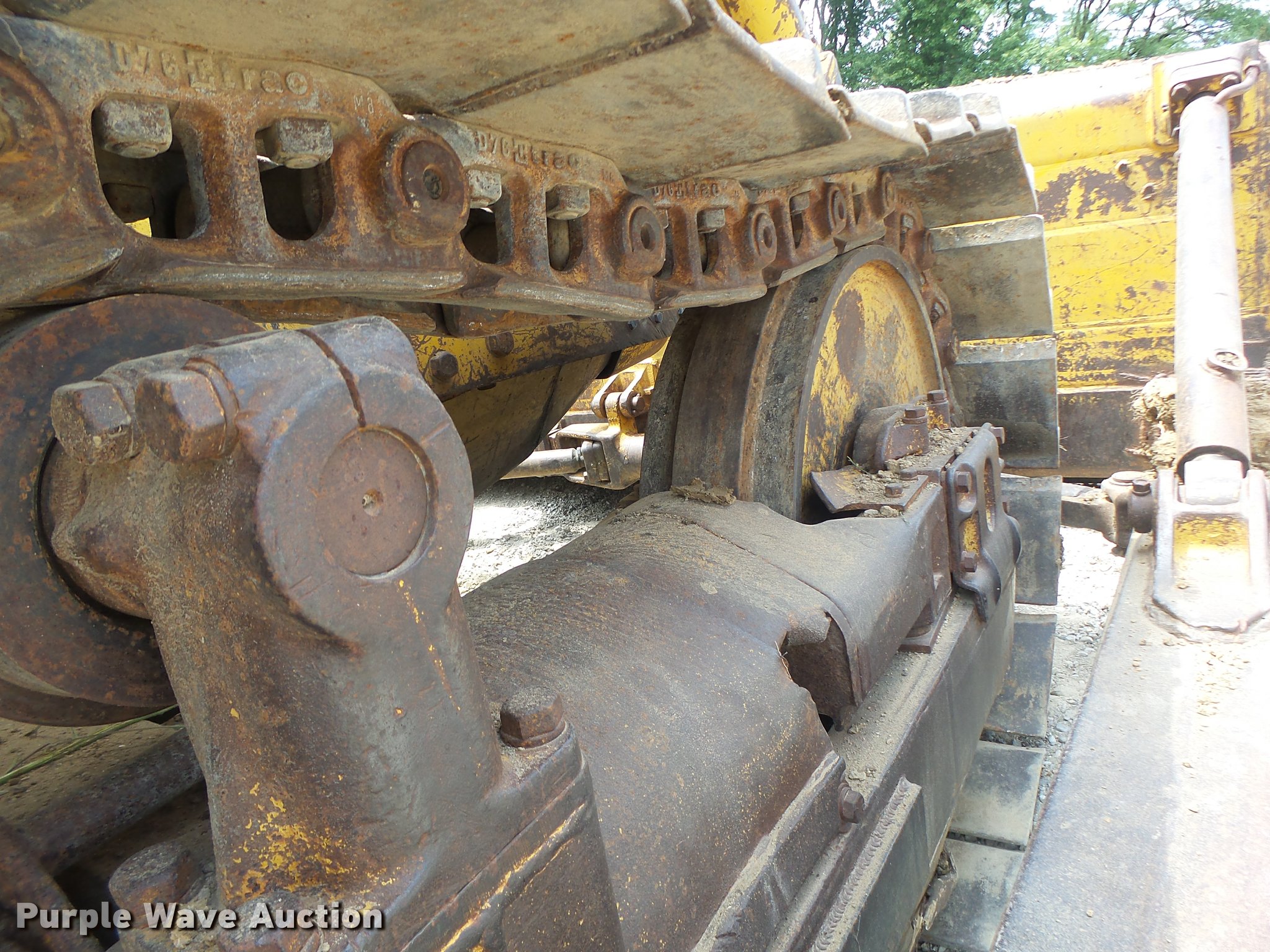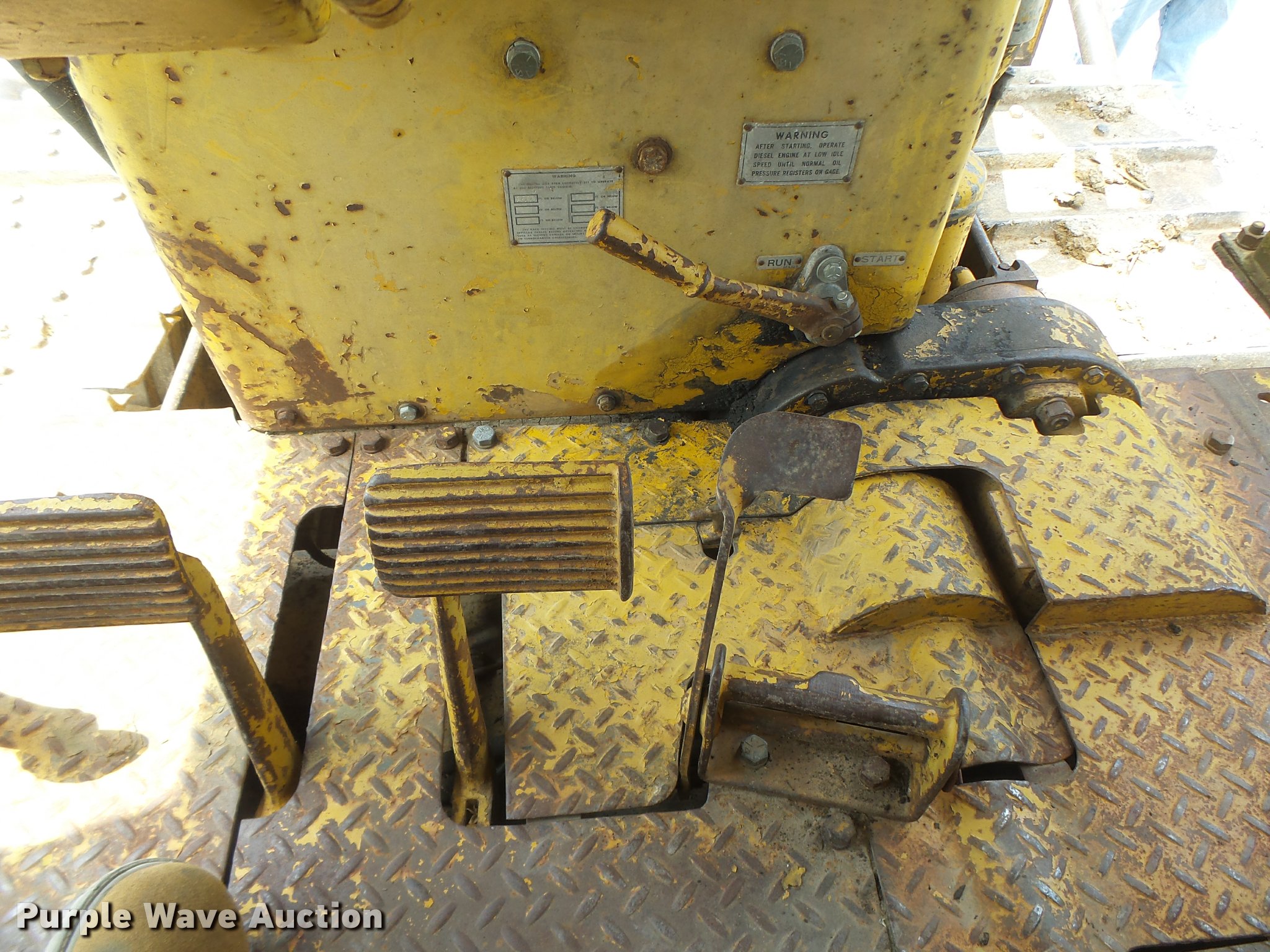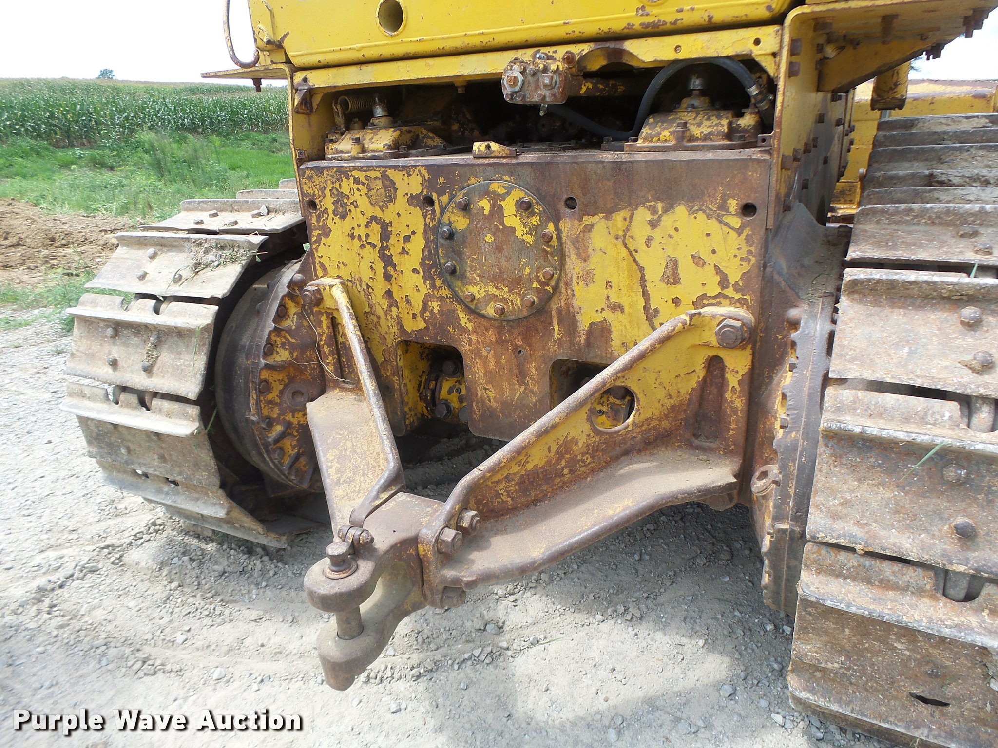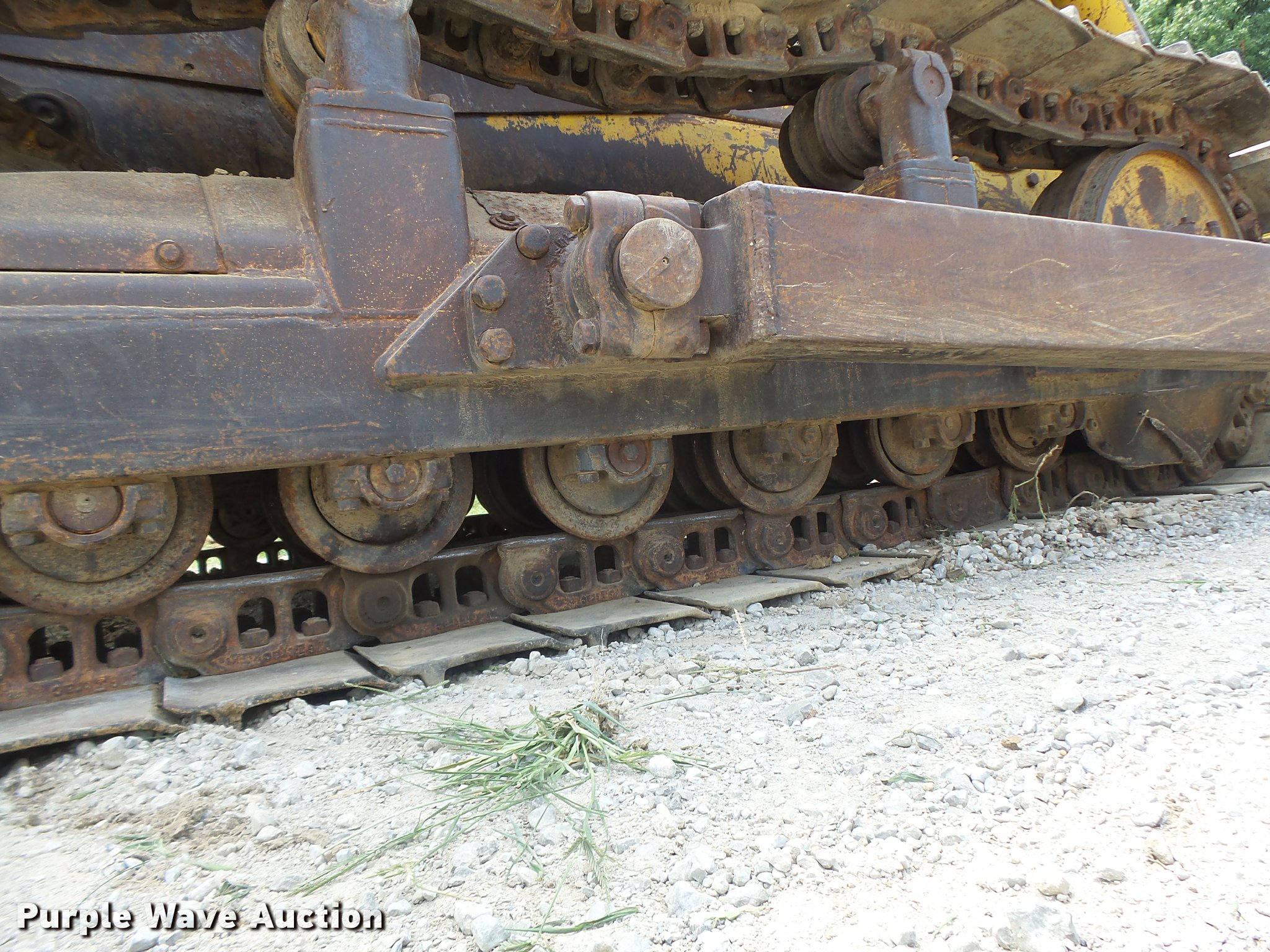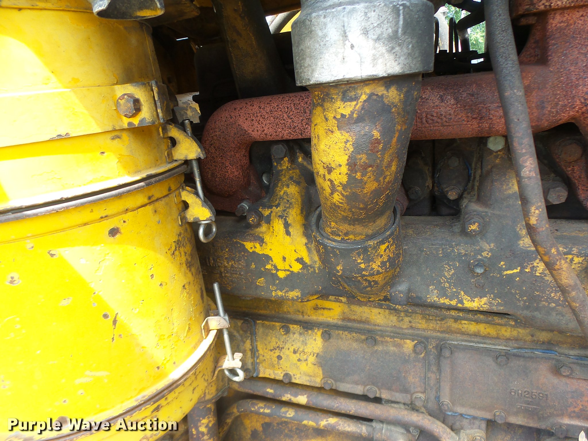 Purple Wave is selling a used Crawler Dozer in Missouri. This item is a 1963 Caterpillar D7E dozer with the following: Unknown hours on meter, Caterpillar four cylinder turbo diesel engine, Powershift transmission, 3F-3R gears, Canopy, Suspension seat, Sweeps, 141" angle dozer blade, Rear hitch, Six bottom rollers, 22" single grouser track pads, Serial 48A2384