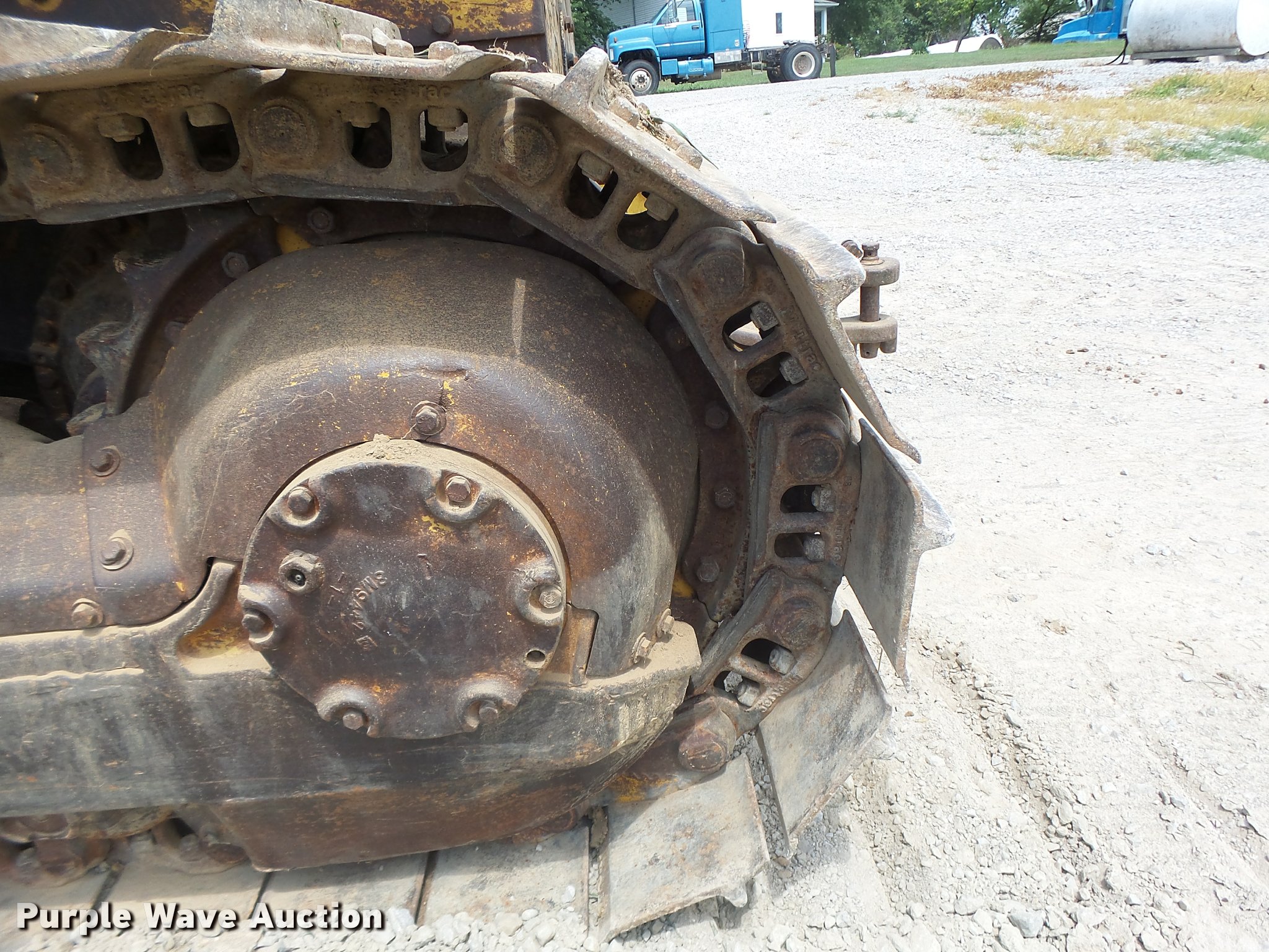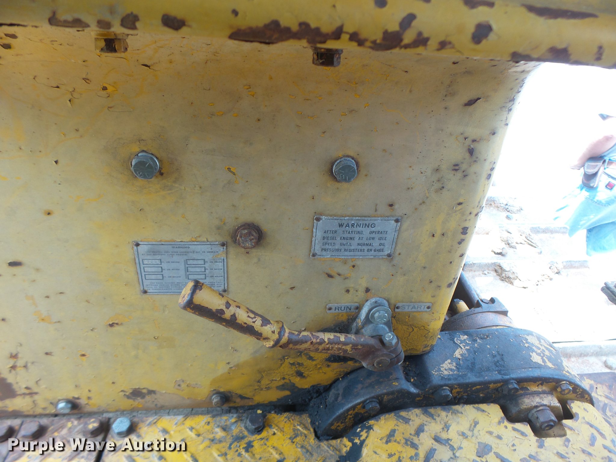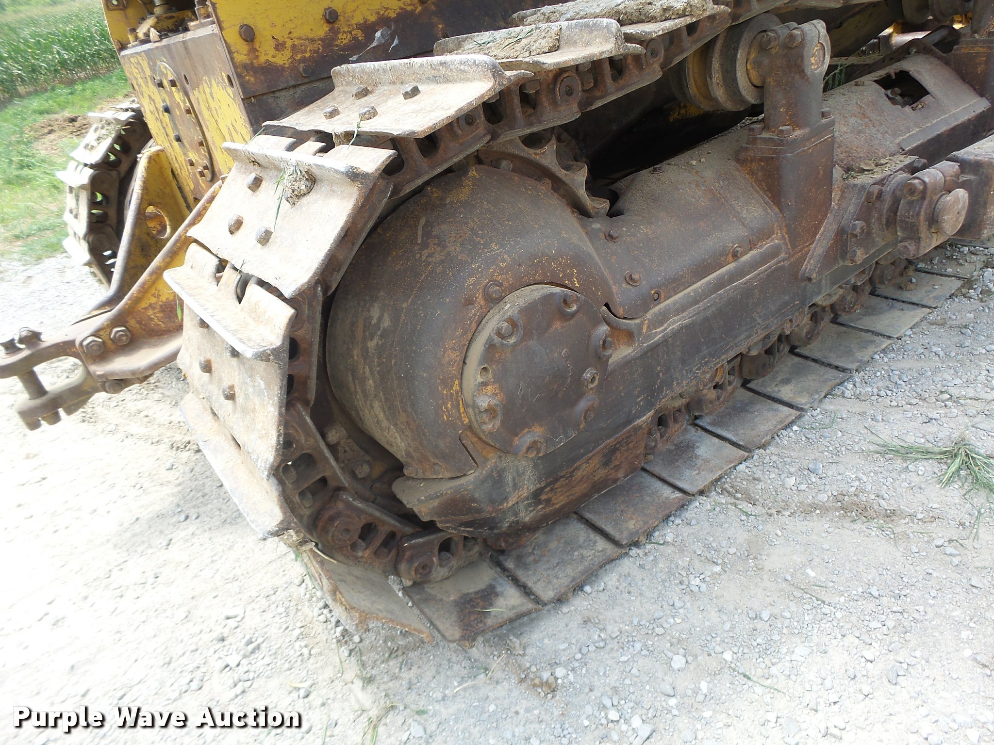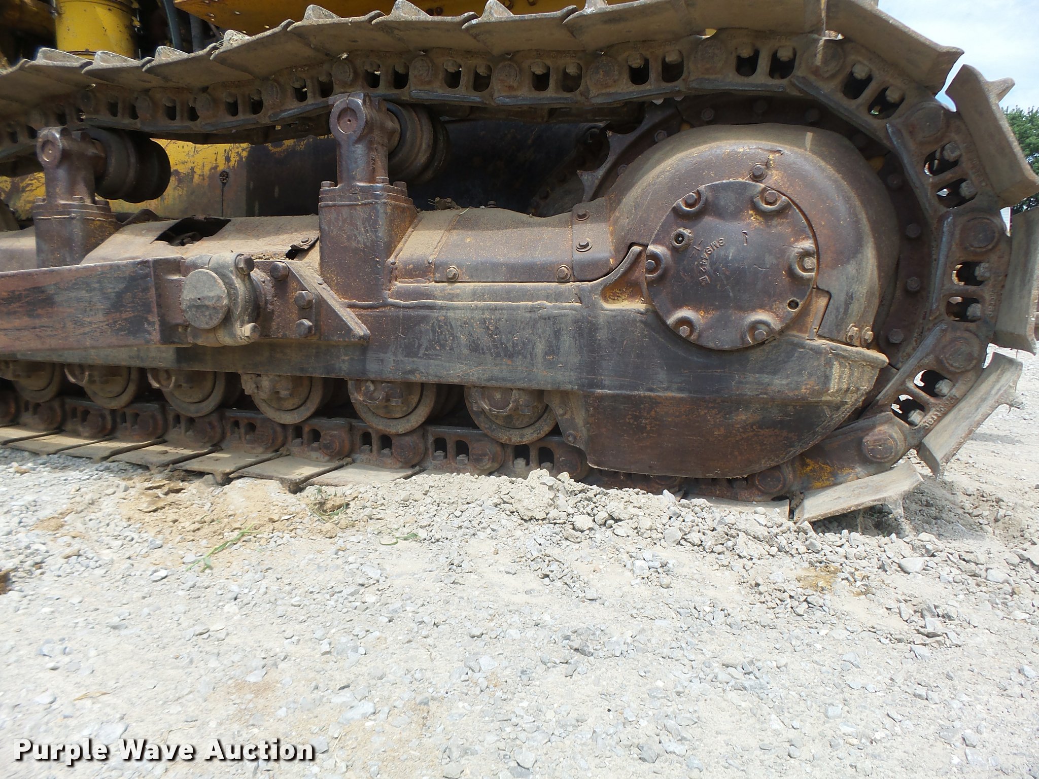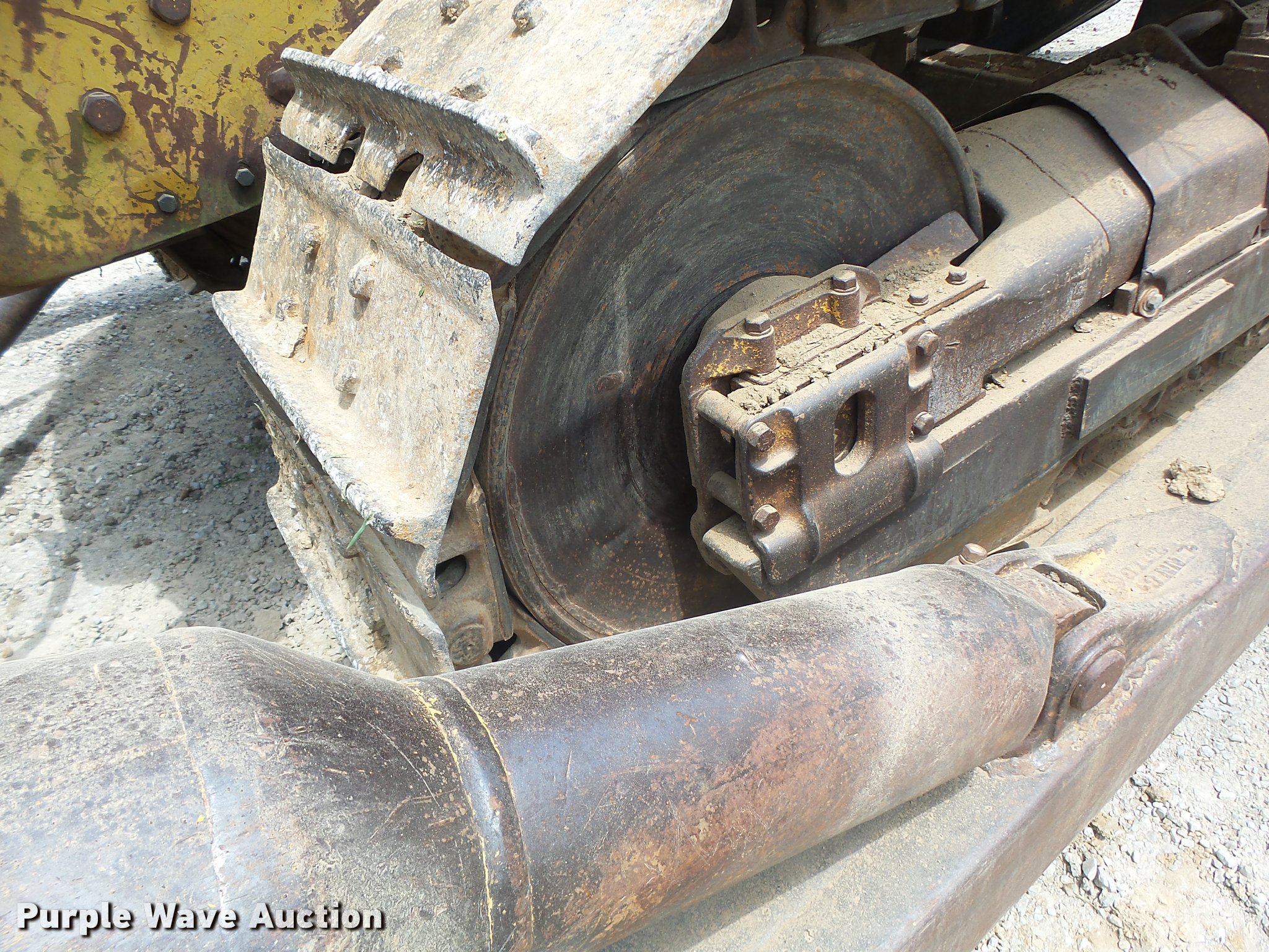 Purple Wave is selling a used Crawler Dozer in Missouri. This item is a 1963 Caterpillar D7E dozer with the following: Unknown hours on meter, Caterpillar four cylinder turbo diesel engine, Powershift transmission, 3F-3R gears, Canopy, Suspension seat, Sweeps, 141" angle dozer blade, Rear hitch, Six bottom rollers, 22" single grouser track pads, Serial 48A2384