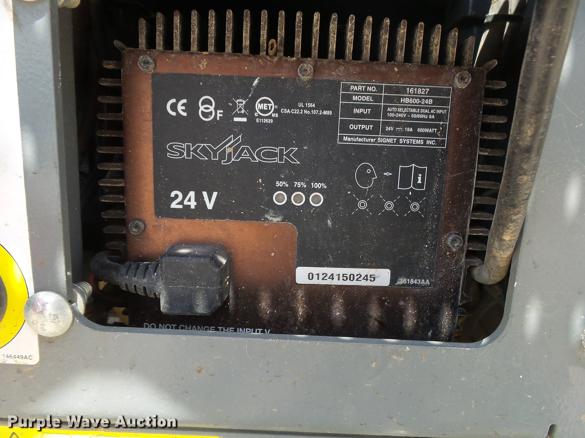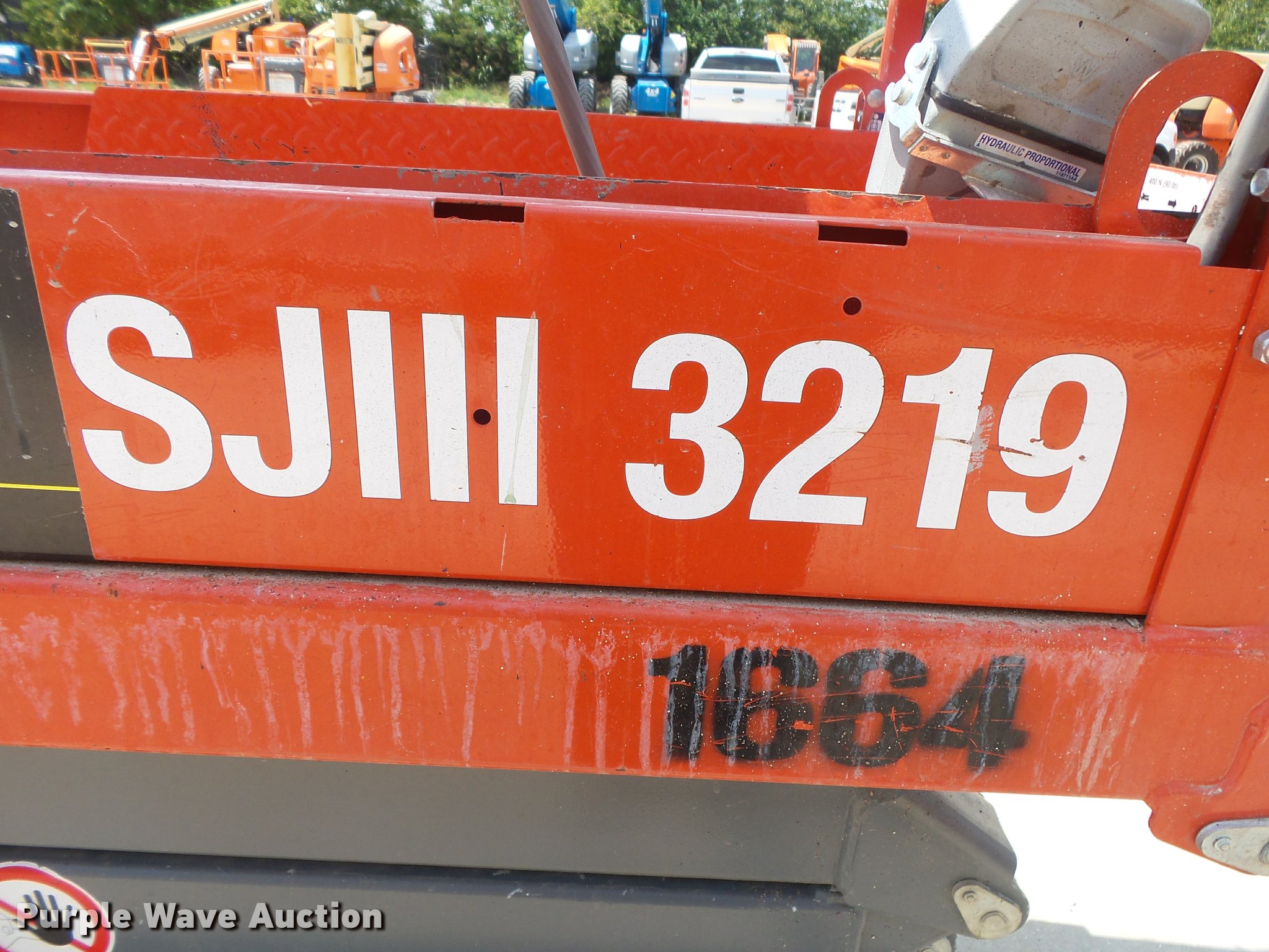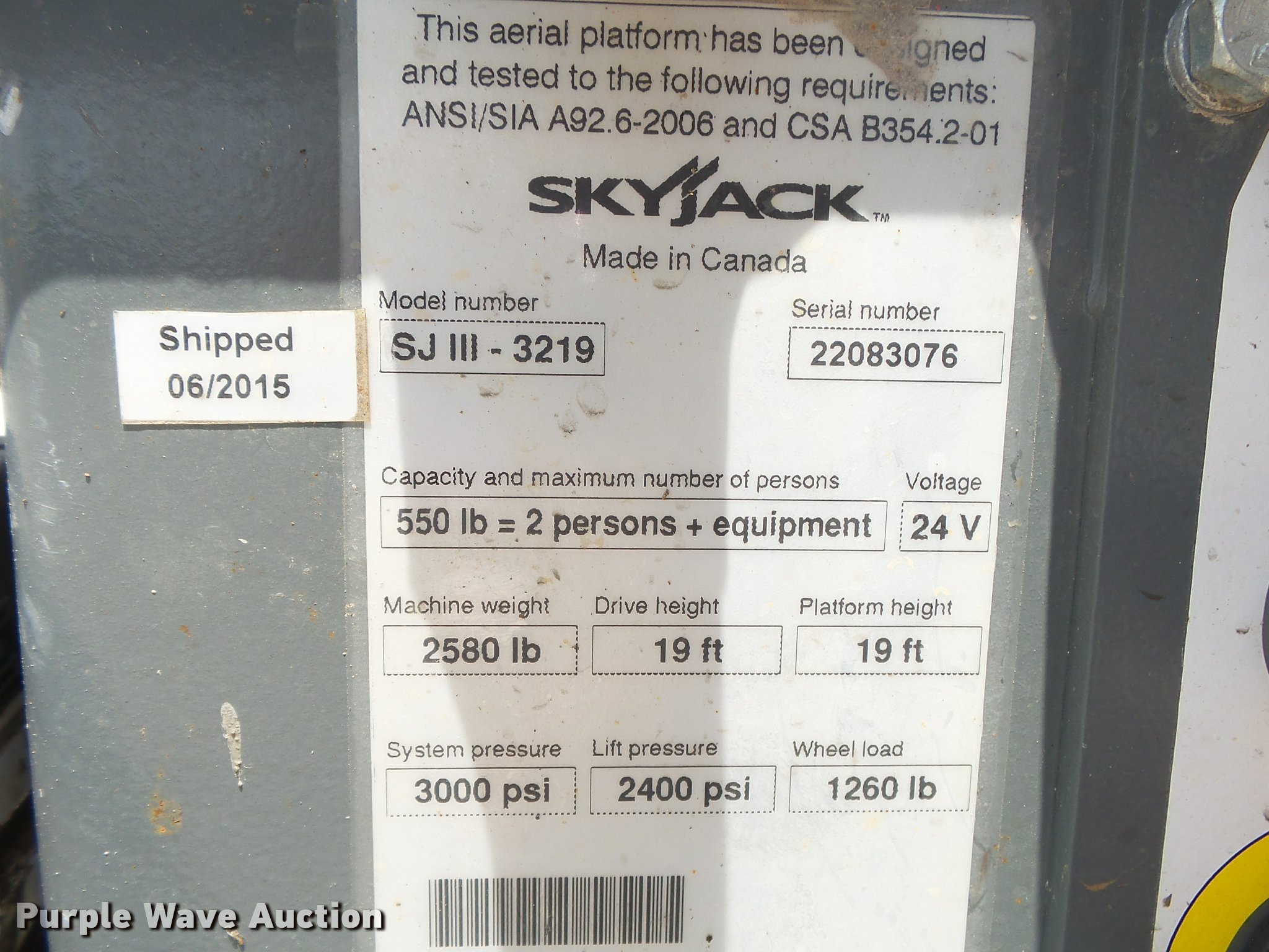 Purple Wave is selling a used Scissor or Vertical Lift in Missouri. This item is a 2015 Sky Jack SJIII 3219 scissor lift with the following: 27 hours on meter, 24V electric operation, 550 lbs maximum lift capacity, 19' maximum lift height, 63"L x 28"W platform, AC power outlet, Manual platform extensions, Ground and platform controls, 12 x 4 solid non-marking tires, Serial 22083076