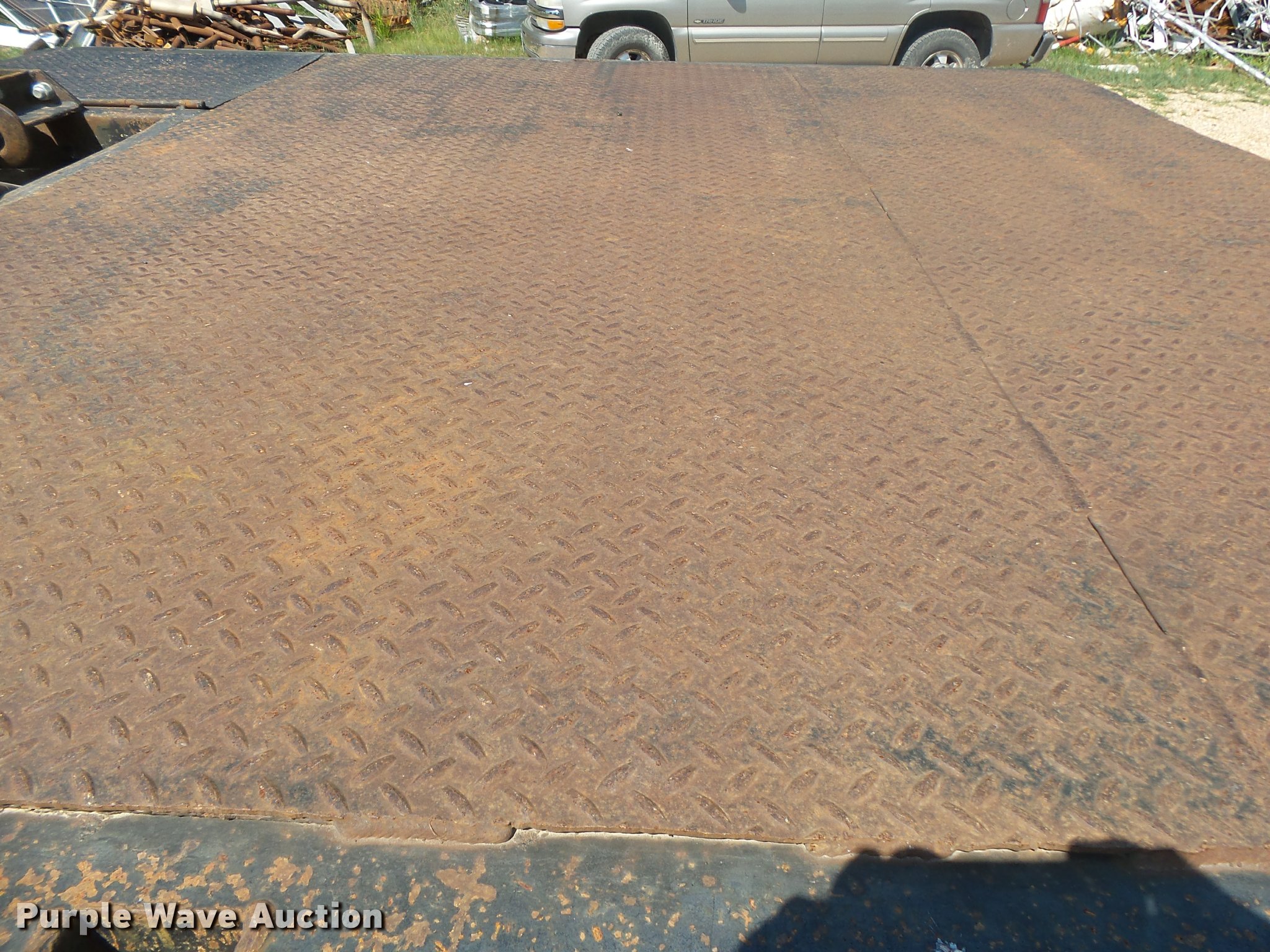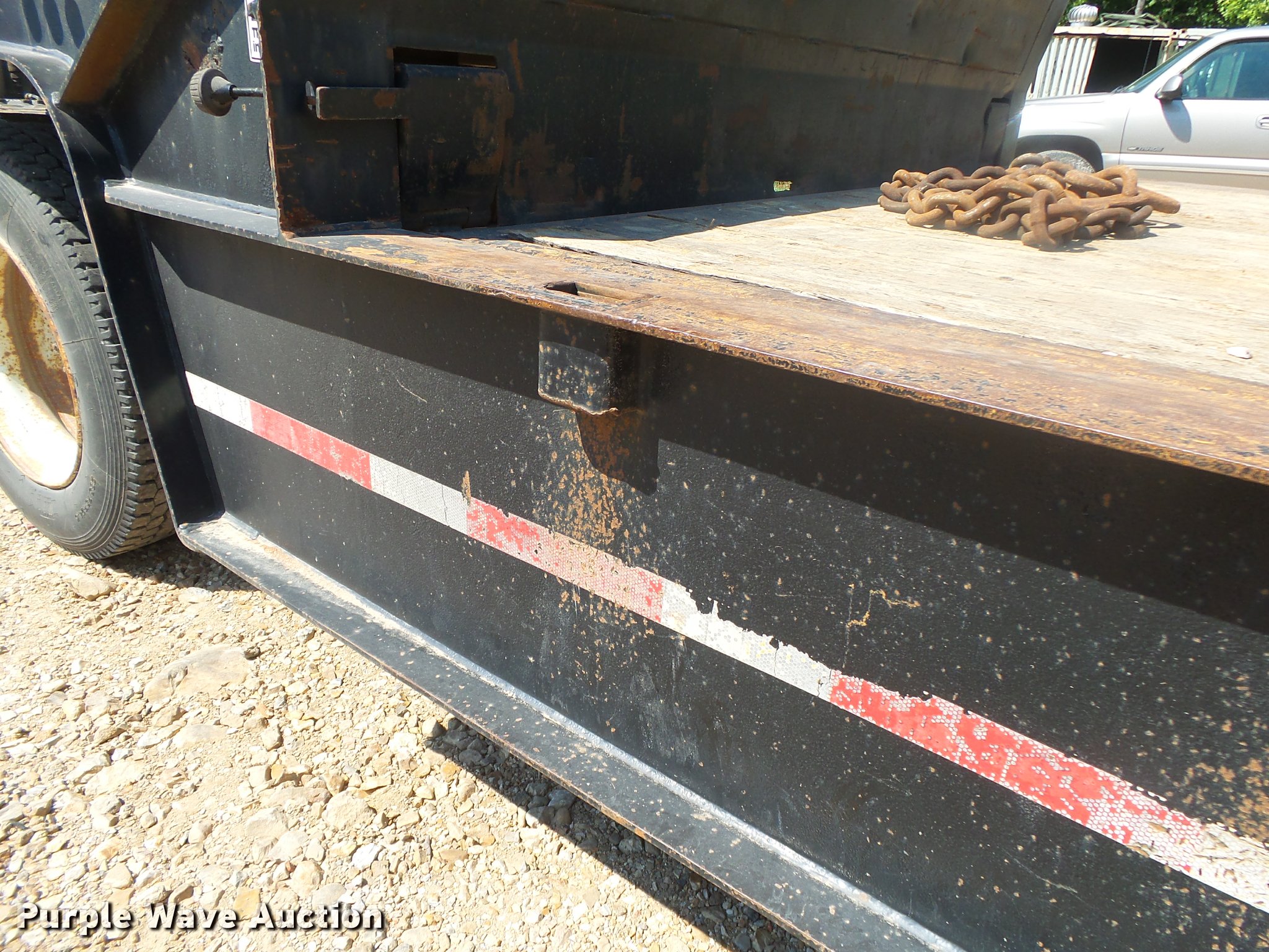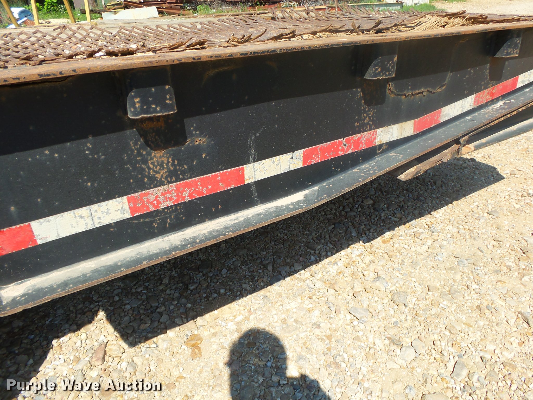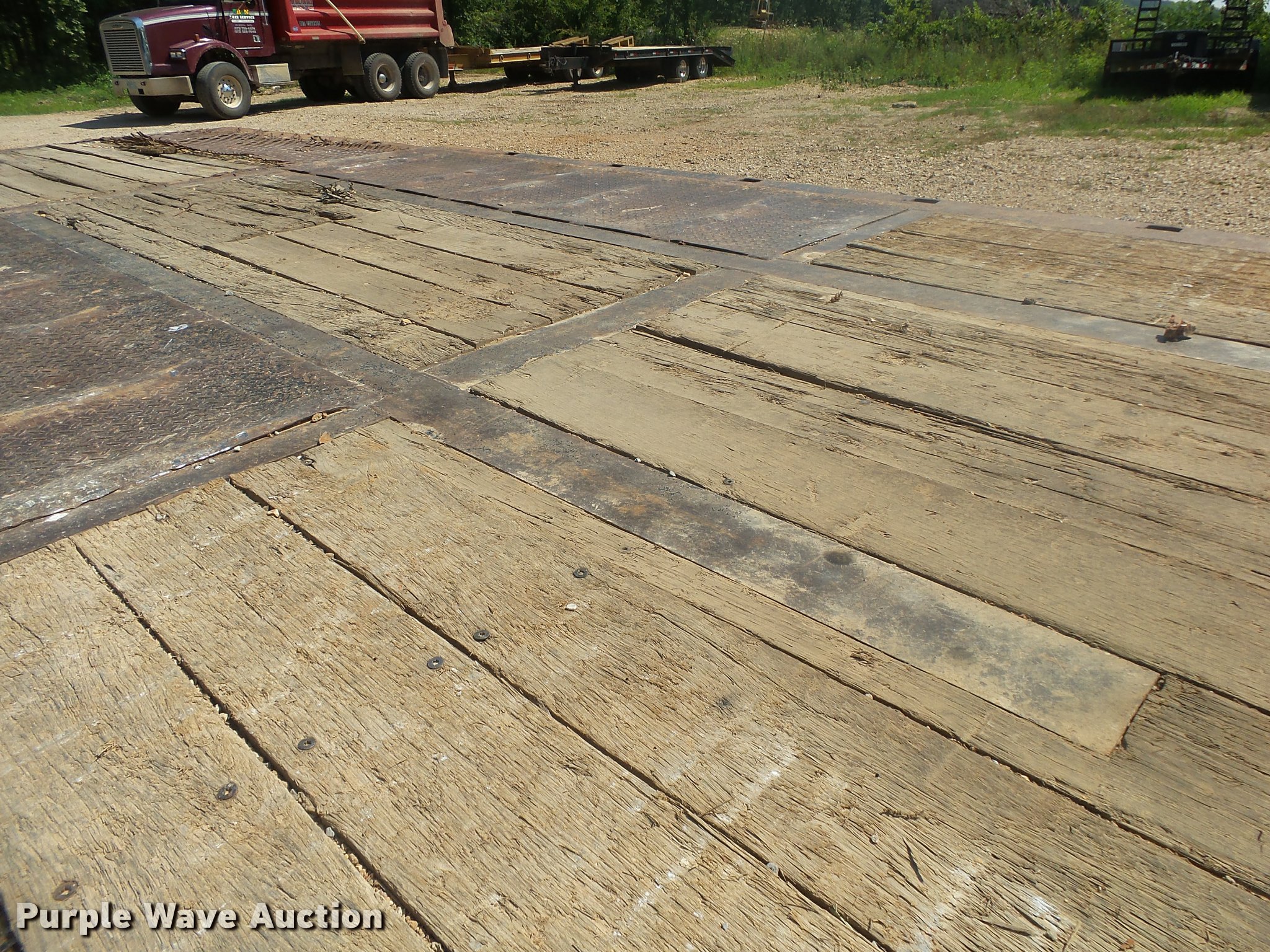 Purple Wave is selling a used Equip. Trailer in Missouri. This item is a 1997 Trail King TK70HT-482 hydratail equipment trailer with the following: 47' overall length, 30'L x 102"W wood deck, 111"L x 102"W top deck, 19" deck drop, 9'L hydratail, 4'L hydraulic ramps, 38" floor height, Braden winch, Remote hydraulic control, Recessed toolbox, Fifth wheel plate, Air suspension, Air brakes, Steel wheels, 255/70R22.5 tires, GVWR 85,260 lbs, Landing gear damaged, Parts missing