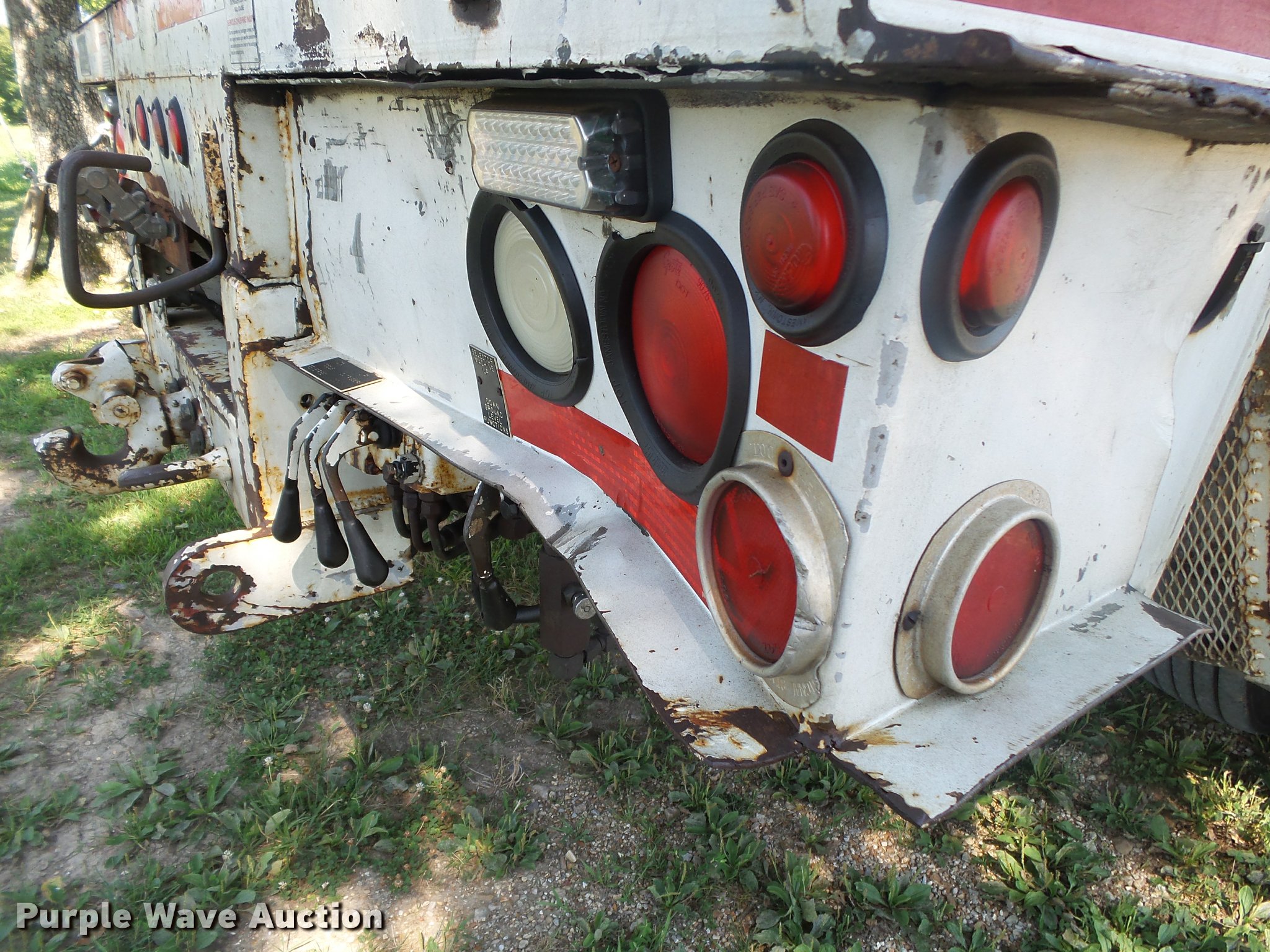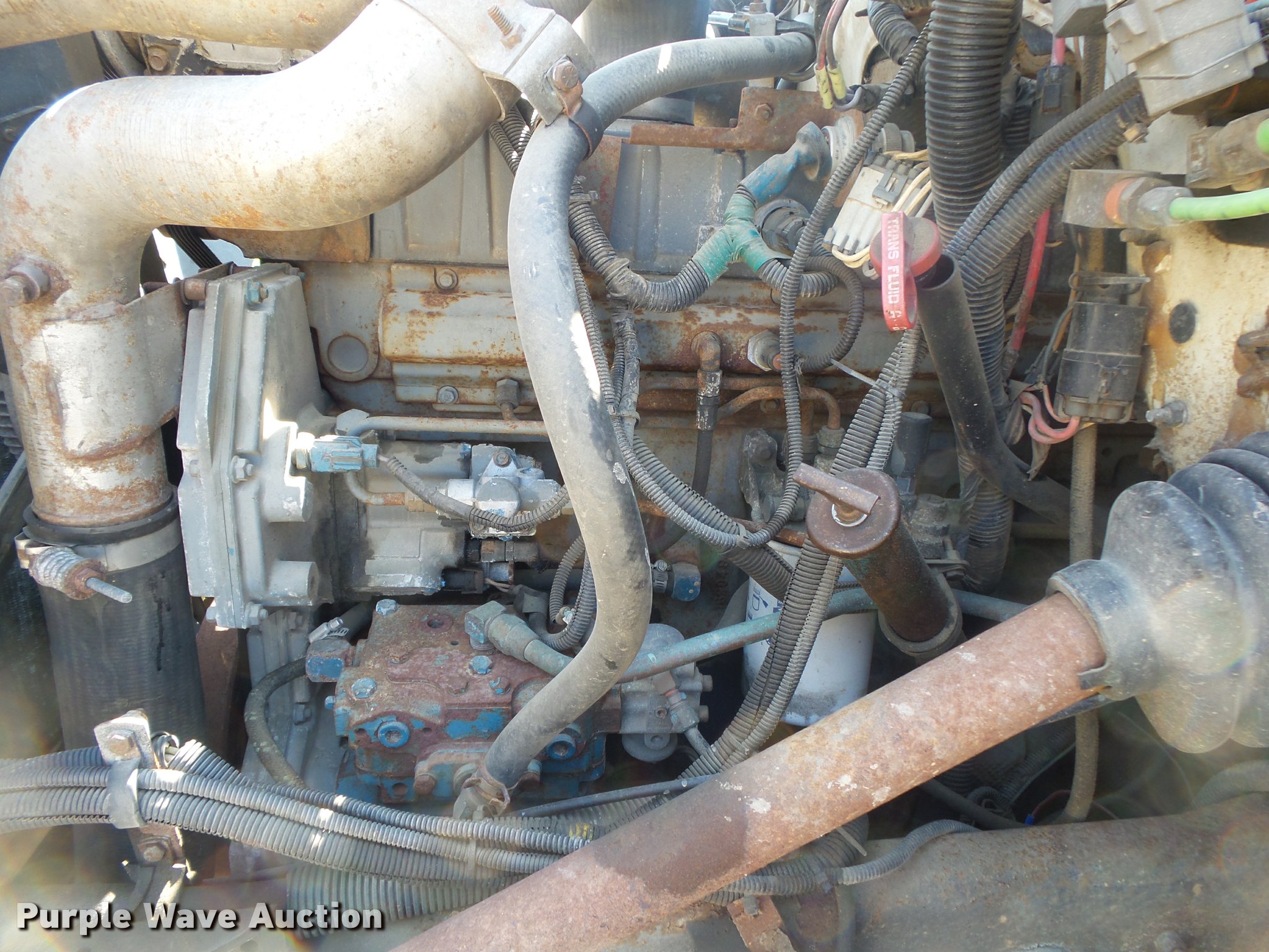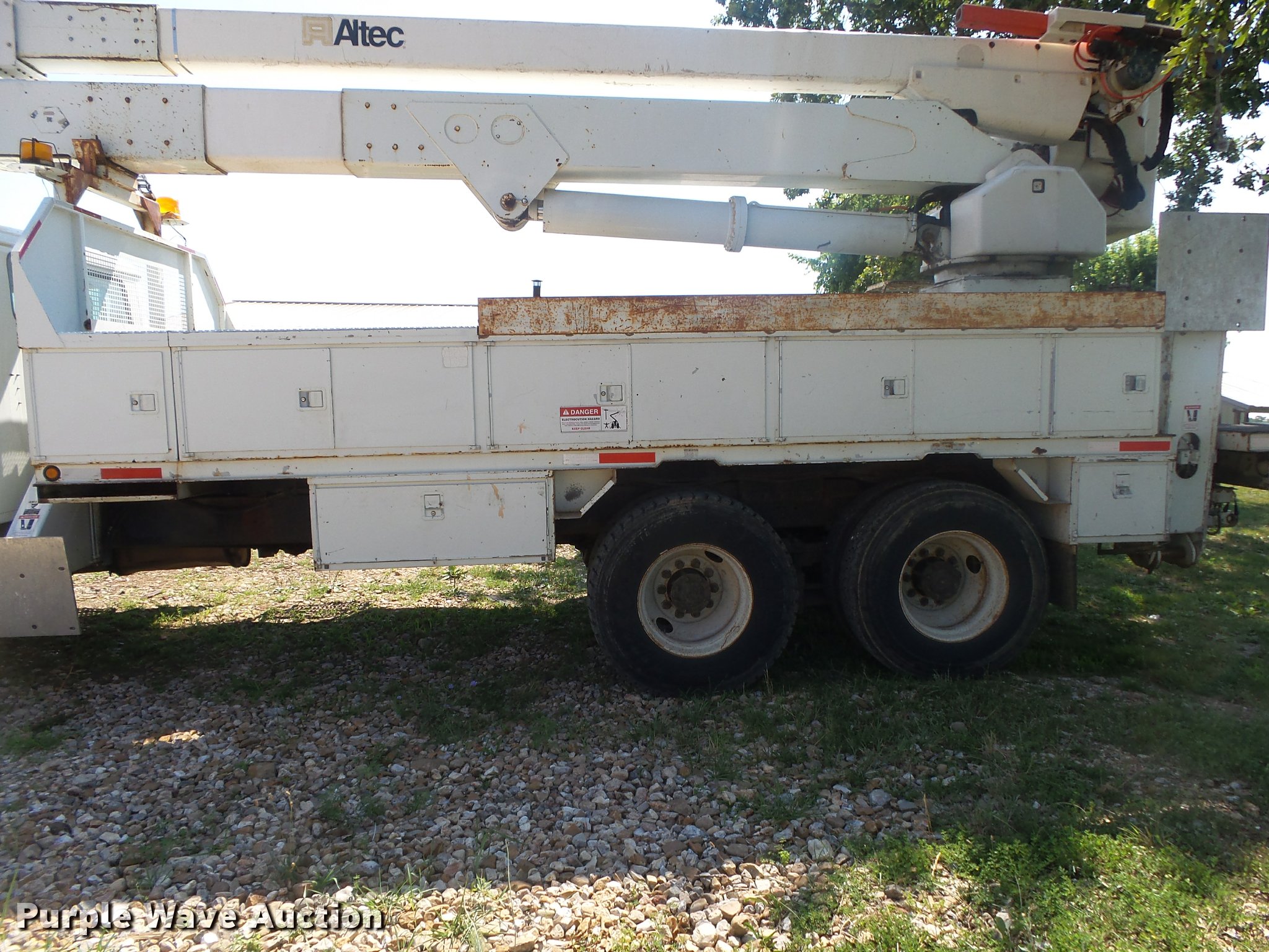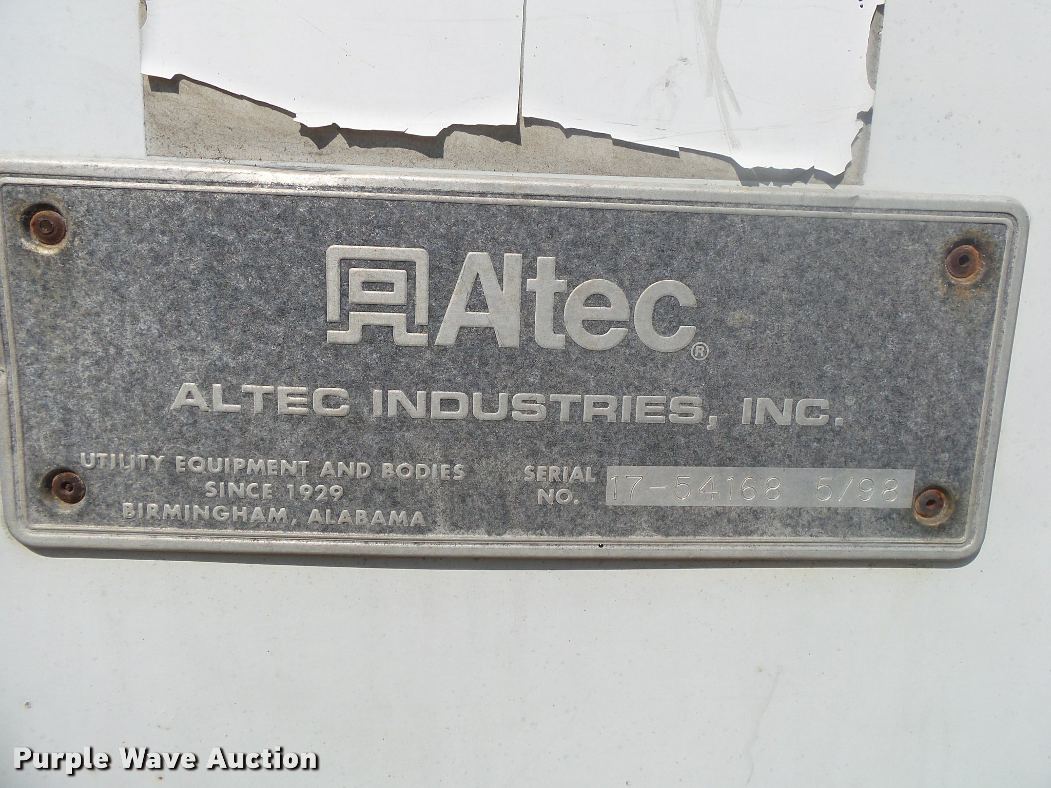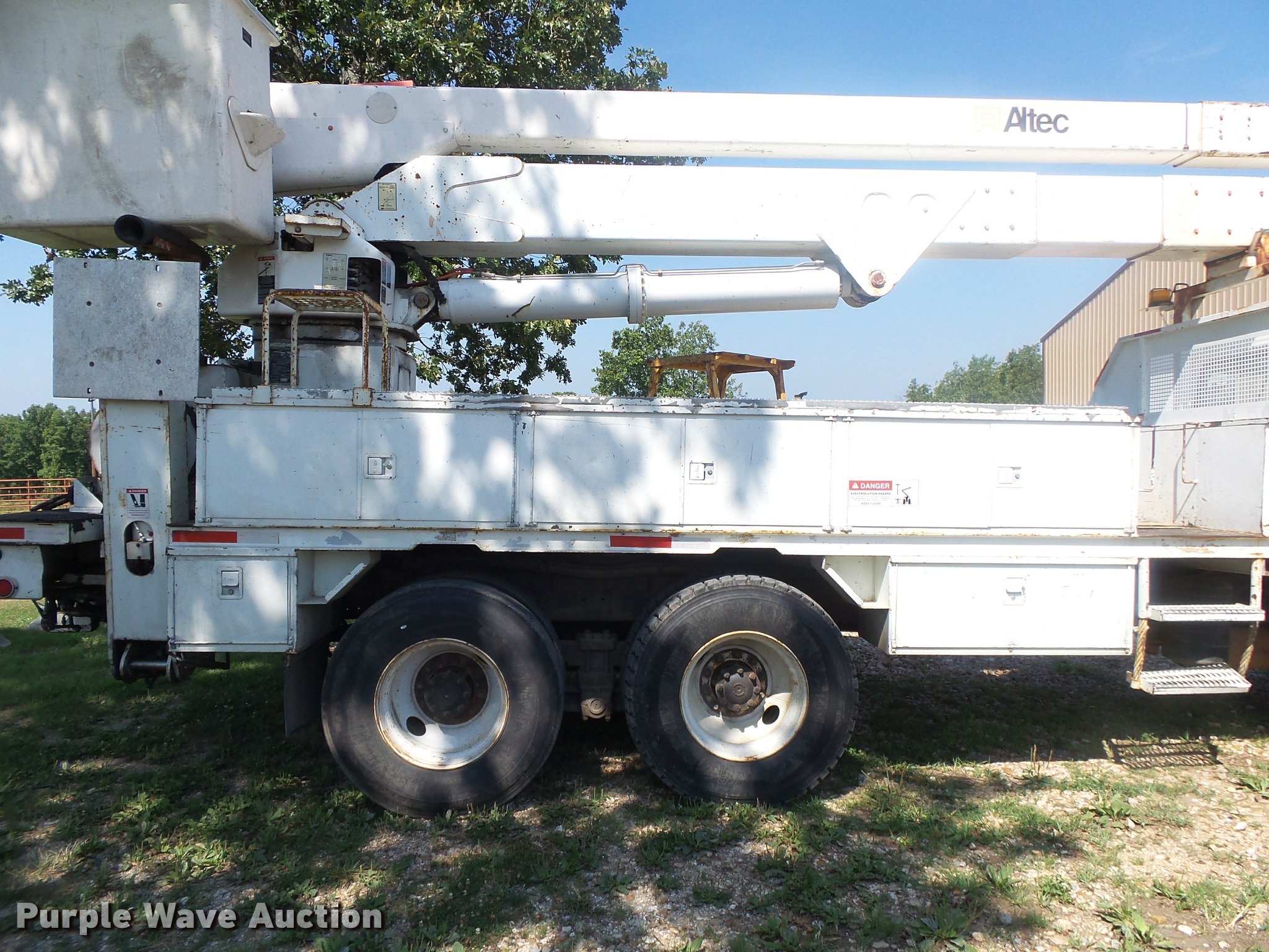 Purple Wave is selling a used Bucket Truck in Missouri. This item is a 1998 International 4900 bucket truck with the following: 26,240 miles on odometer, International DT466 7.6L L6 turbo diesel engine, Automatic transmission, Tandem axle, Inter-axle differential lock, AC and heat, Cruise, AM/FM, Suspension seat, PTO, Beacon light, Front tow hooks, Altec service bed, 22'L, Compartment lights, Rear air, Serial 17-54168, Braden front mounted winch, Altec A77 boom, 800 lbs maximum lift capacity, 76.5' maximum lift height, Man basket, Ground and platform controls, Jib winch, Articulating, insulated, telescopic boom, (4) outriggers, 12.5' folded height, Dual fuel tanks, Single exhaust stack, Pintle hitch, Trailer wiring, 254" wheelbase, Spring suspension, Air brakes, 385/65R22.5 tires, 12R22.5 tires, Operator manual