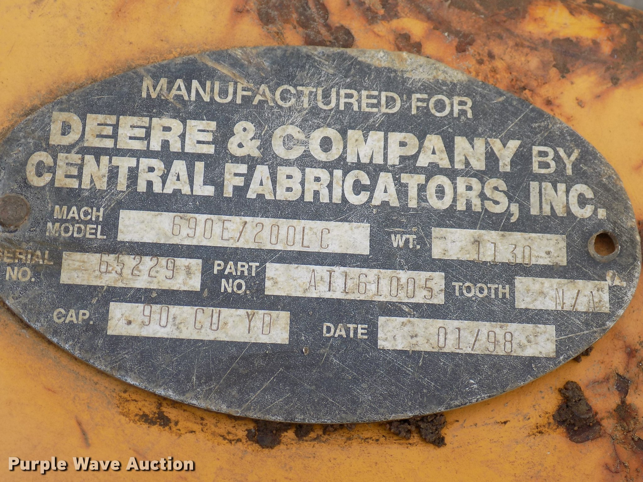 Purple Wave is selling a used Excavator Attach. in Iowa. This item is a Excavator bucket with the following: Model 690E/200LC, .90 cu.yd. capacity, Part No. AT161005, 1,130 lbs