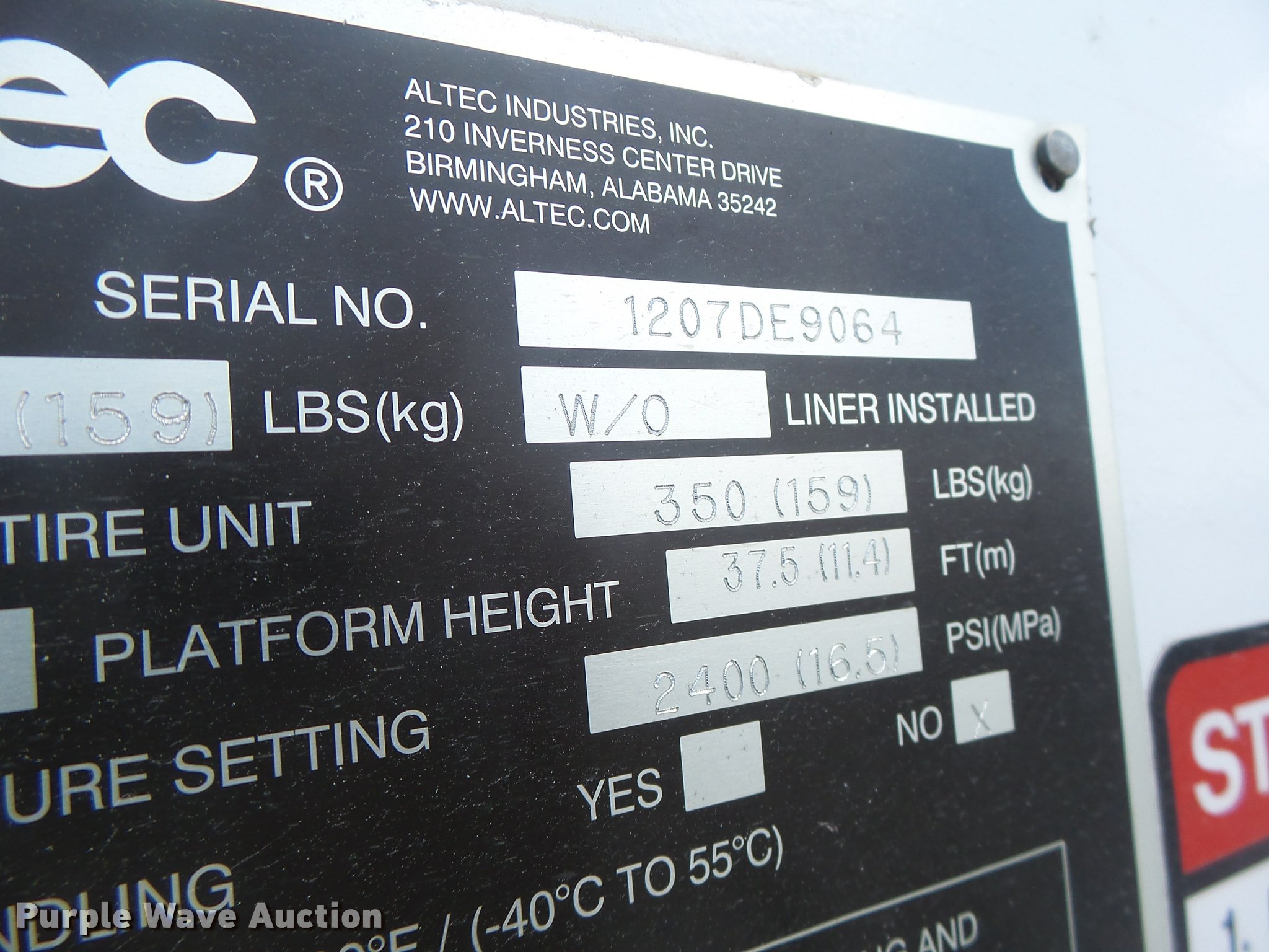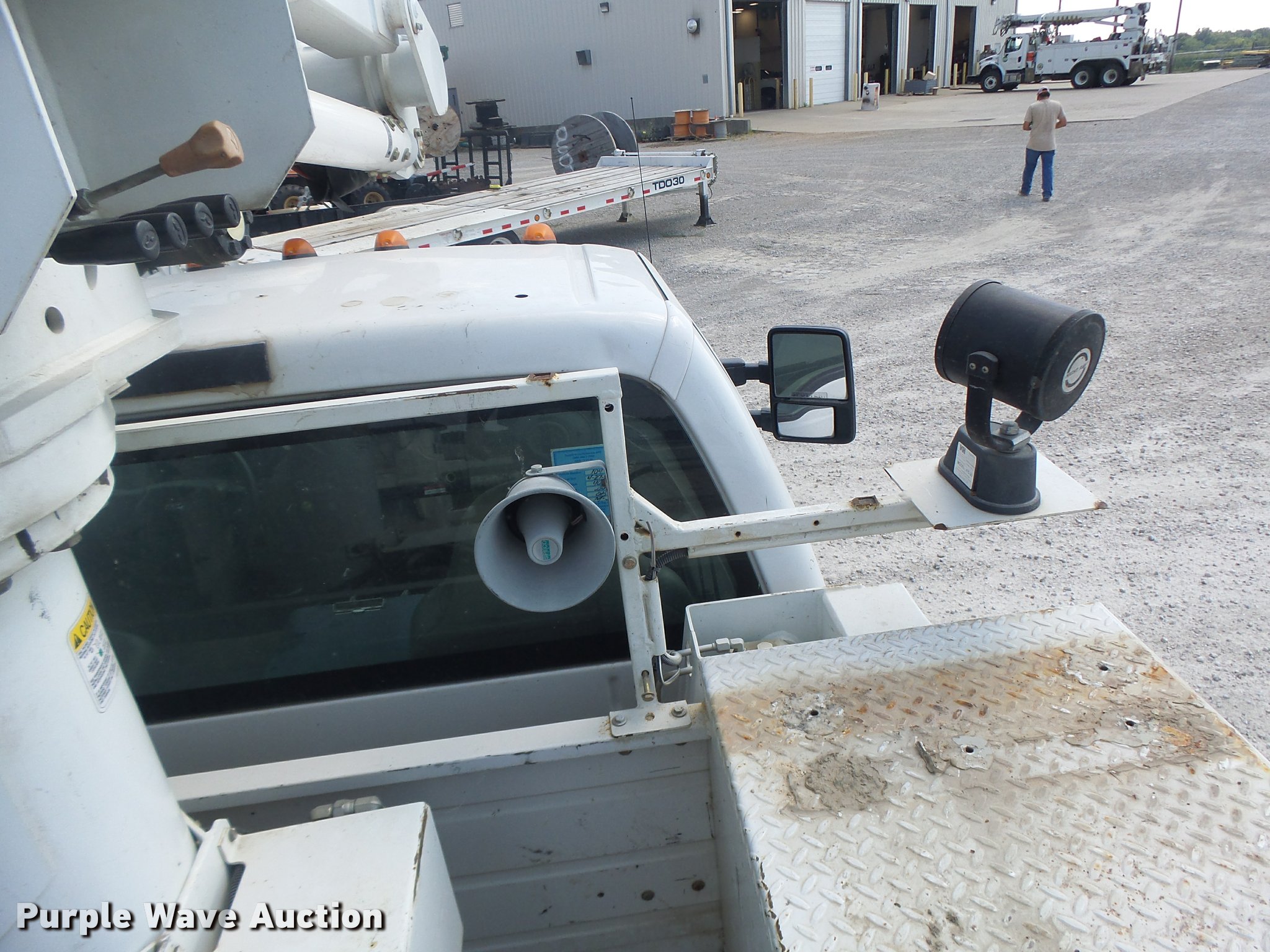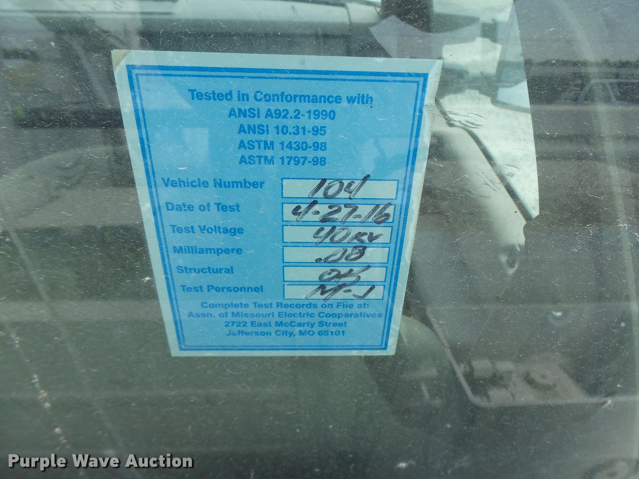 Purple Wave is selling a used Bucket Truck in Missouri. This item is a 2008 Ford F550 Super Duty bucket truck with the following: 230,975 miles on odometer, 2,613 hours on meter, 6.4L V8 turbo diesel engine, Automatic transmission, Four wheel drive, Single axle, AC, AM/FM, Suspension seat, PTO, Knapheide 6101D54J service bed, 11'L, Shelving, Altec AT37G boom, 350 lbs maximum lift capacity, 37' maximum lift height, Man basket, Platform and ground controls, Articulating, insulated, telescopic boom, Outriggers, Serial 1207DE9064, Winch, 12,000 lbs capacity, Single fuel tank, Receiver htich, Trailer wiring, Spring suspension, Hydraulic brakes, 225/70R19.5 tires, Boom certification valid through April 2017, Engine issue, Unit# 104