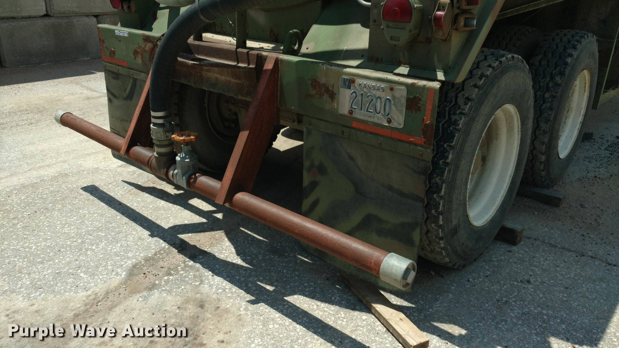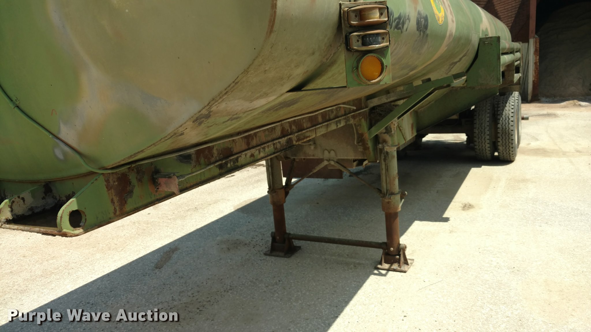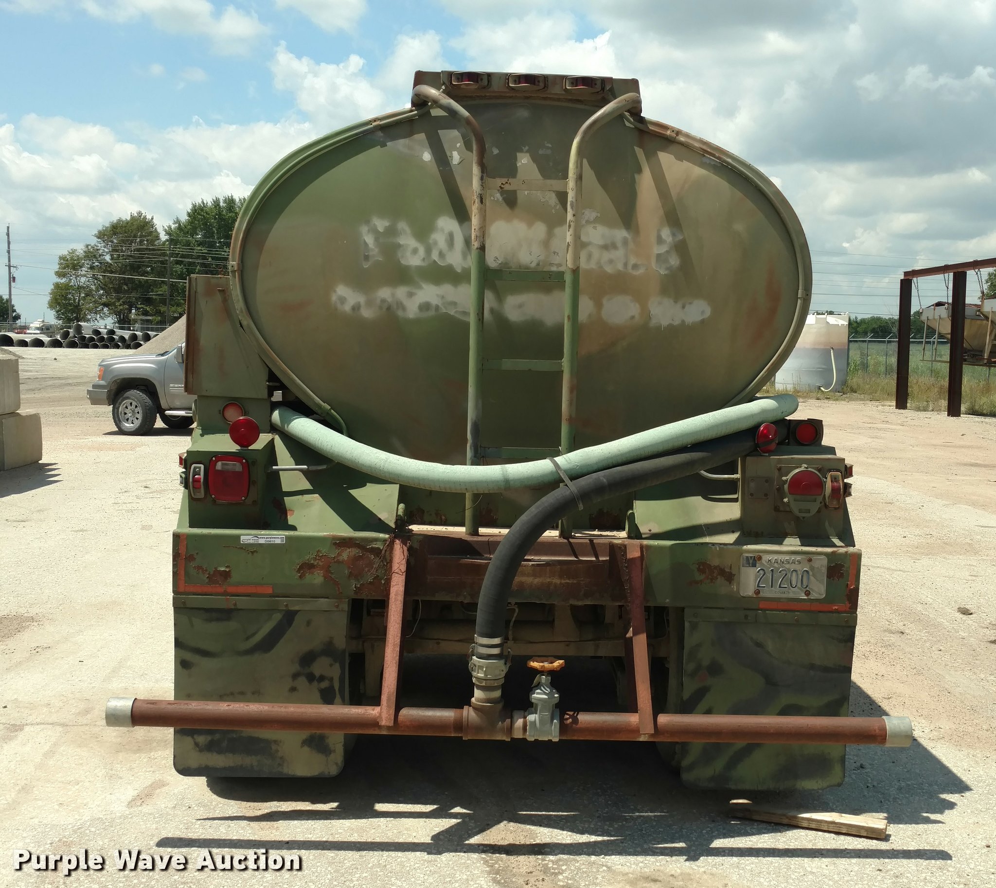 Purple Wave is selling a used Tank Trailer in Kansas. This item is a 1967 Fruehauf tank trailer with the following: 31'L, Approximately 5,000 gallon capacity, Center divider, (2) 2,500 gallon compartments, Gas power pump, Rear spray bar, Spring suspension, Air brakes, 11.00-20 tires
