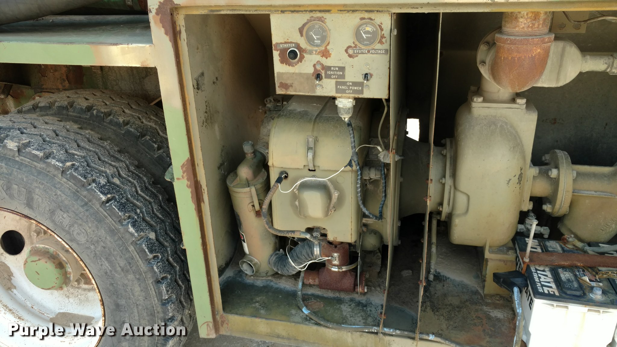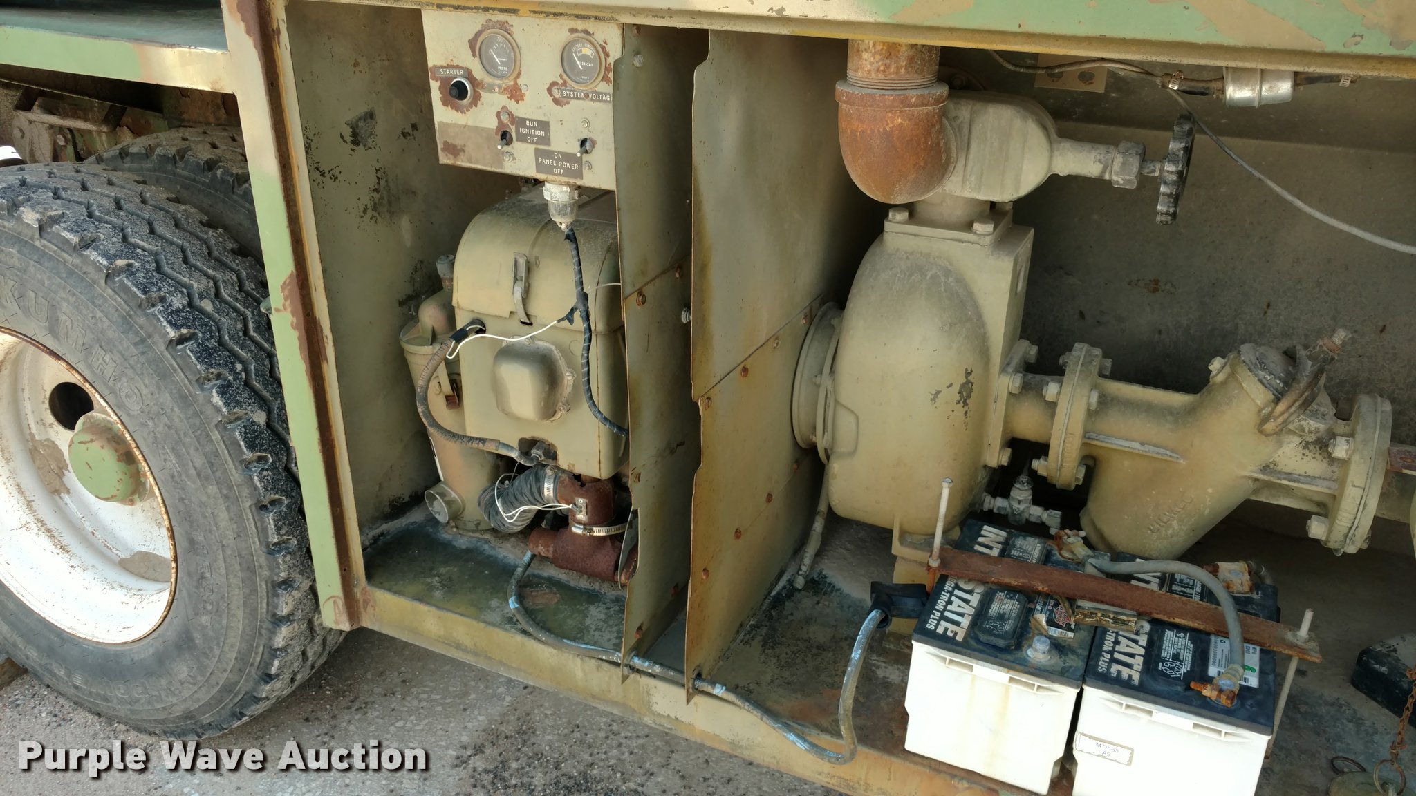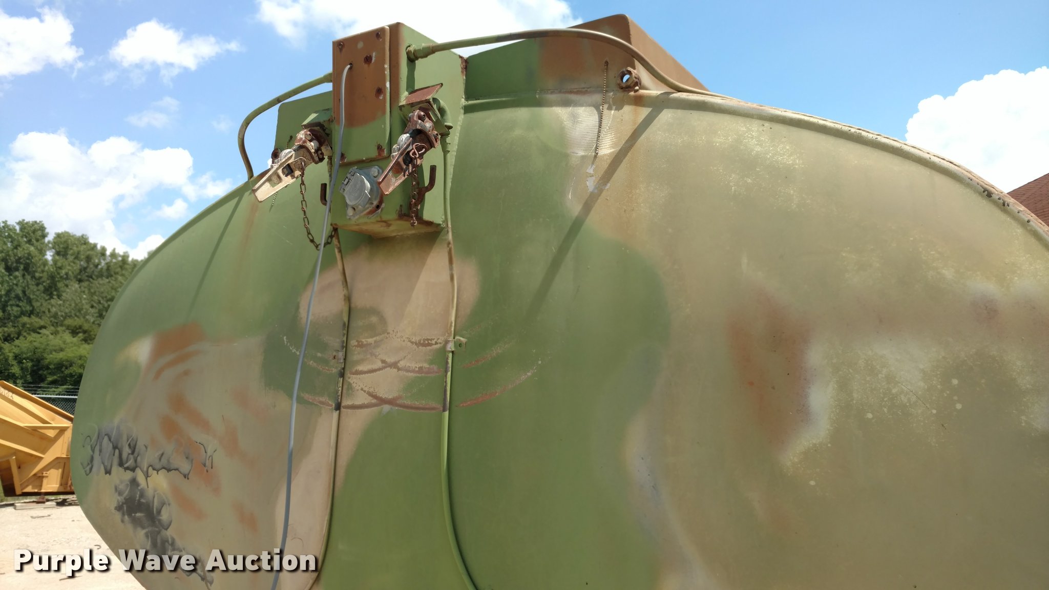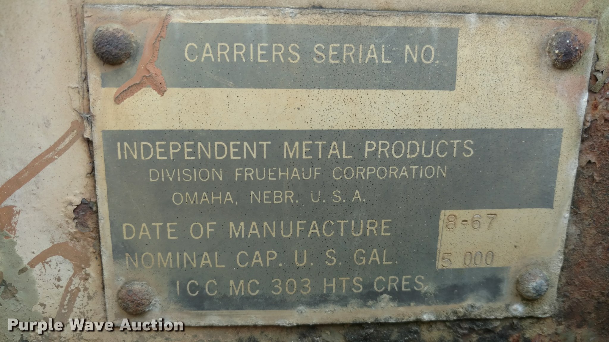 Purple Wave is selling a used Tank Trailer in Kansas. This item is a 1967 Fruehauf tank trailer with the following: 31'L, Approximately 5,000 gallon capacity, Center divider, (2) 2,500 gallon compartments, Gas power pump, Rear spray bar, Spring suspension, Air brakes, 11.00-20 tires