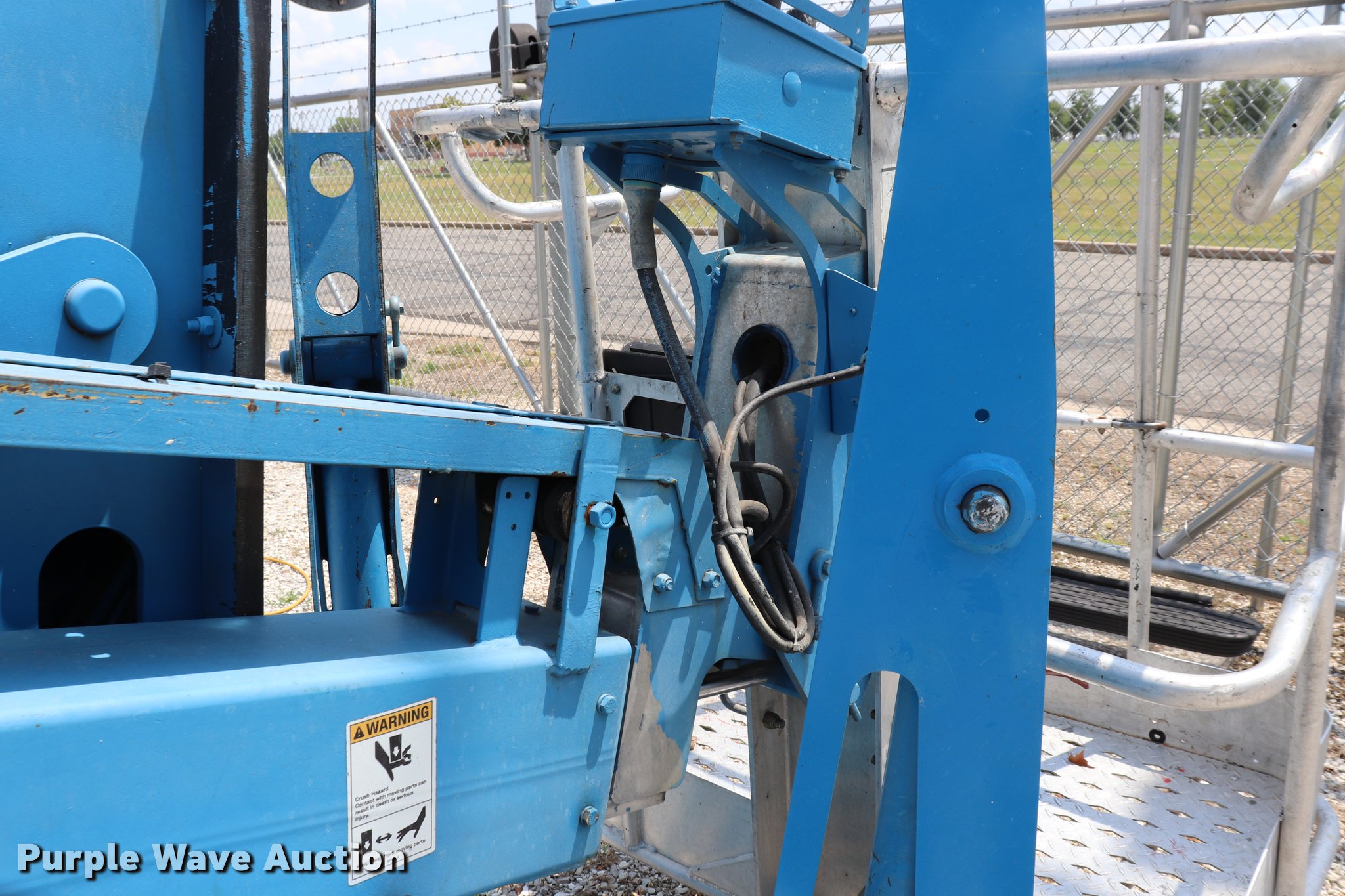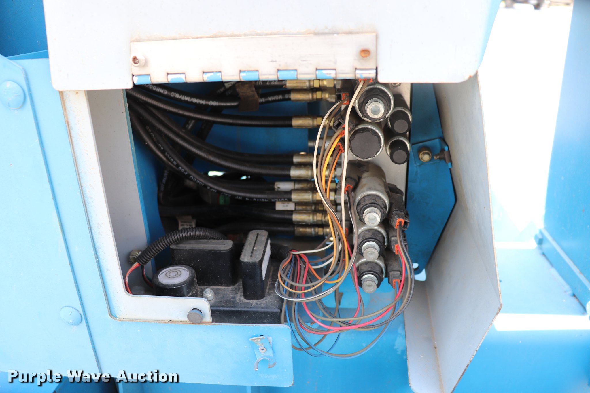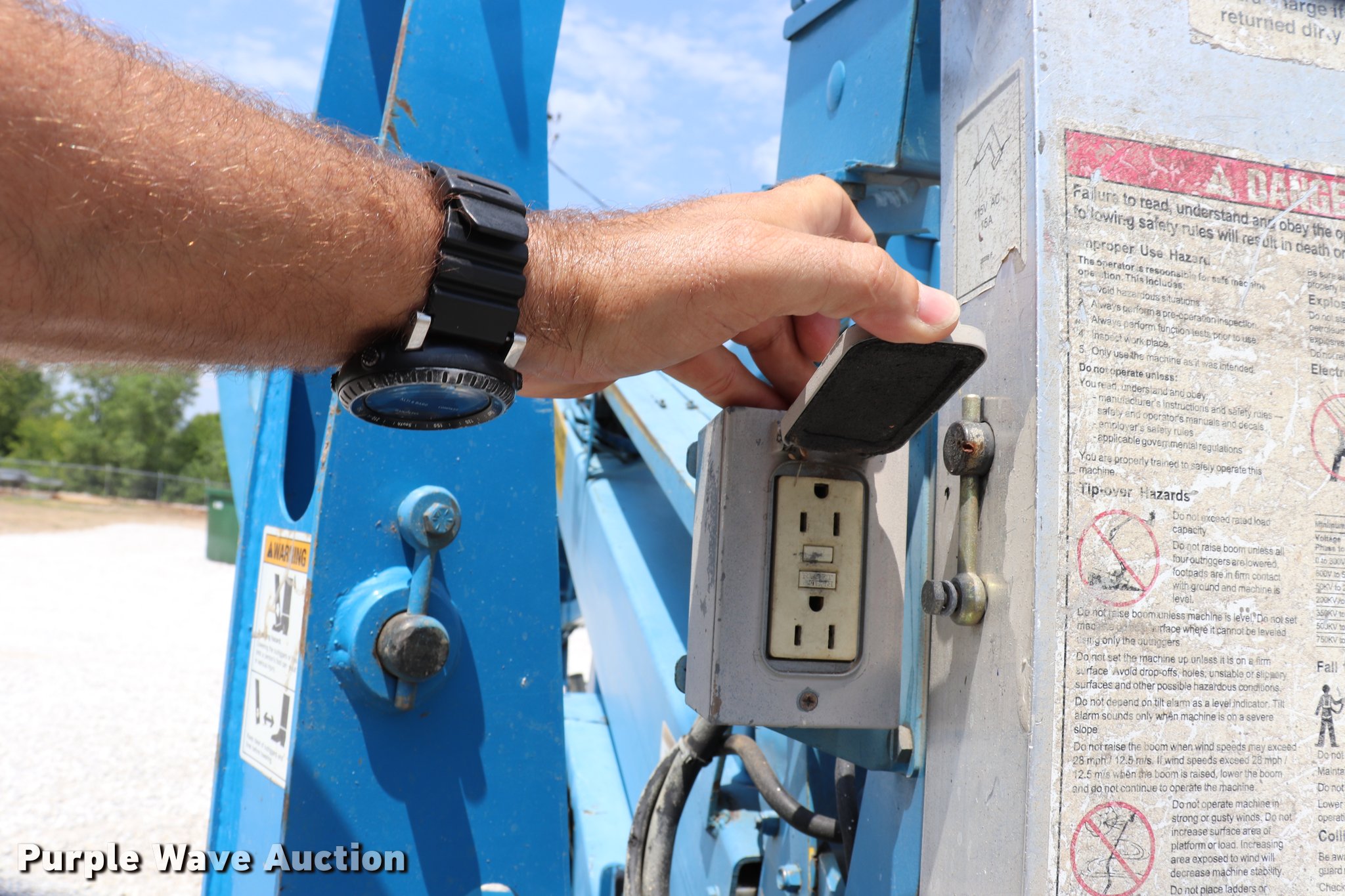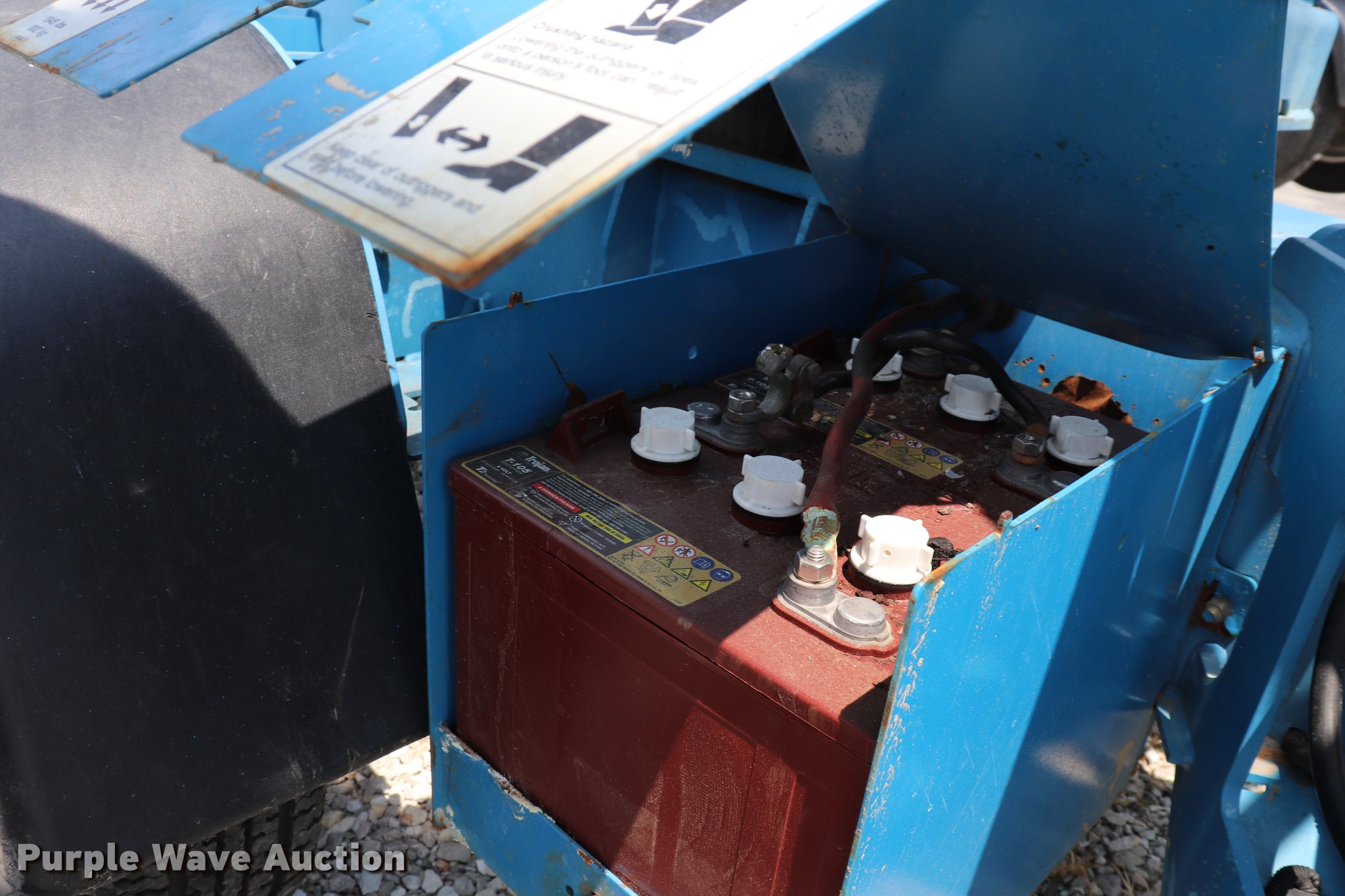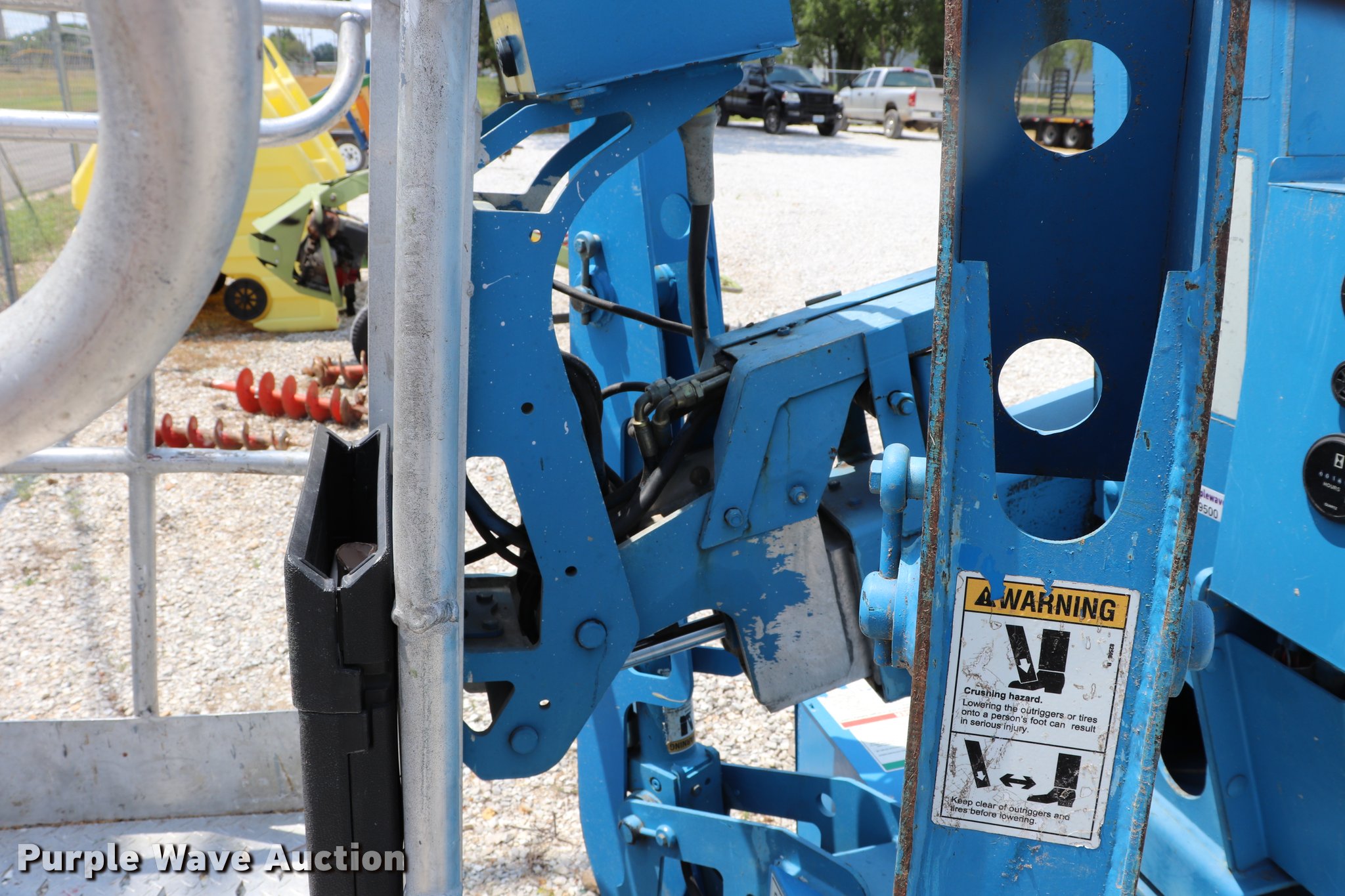 Purple Wave is selling a used Boom Lift in Missouri. This item is a 2005 Genie T234 boom lift with the following: 181 hours on meter, Electric operation, 3,120 lbs maximum lift capacity, 34' maximum lift height, 46"L x 27"W platform, AC power outlet, Platform and ground controls, Hydraulic outriggers, Jack stand, 2" ball hitch, 195/75R14 pneumatic tires, Serial T23405-583