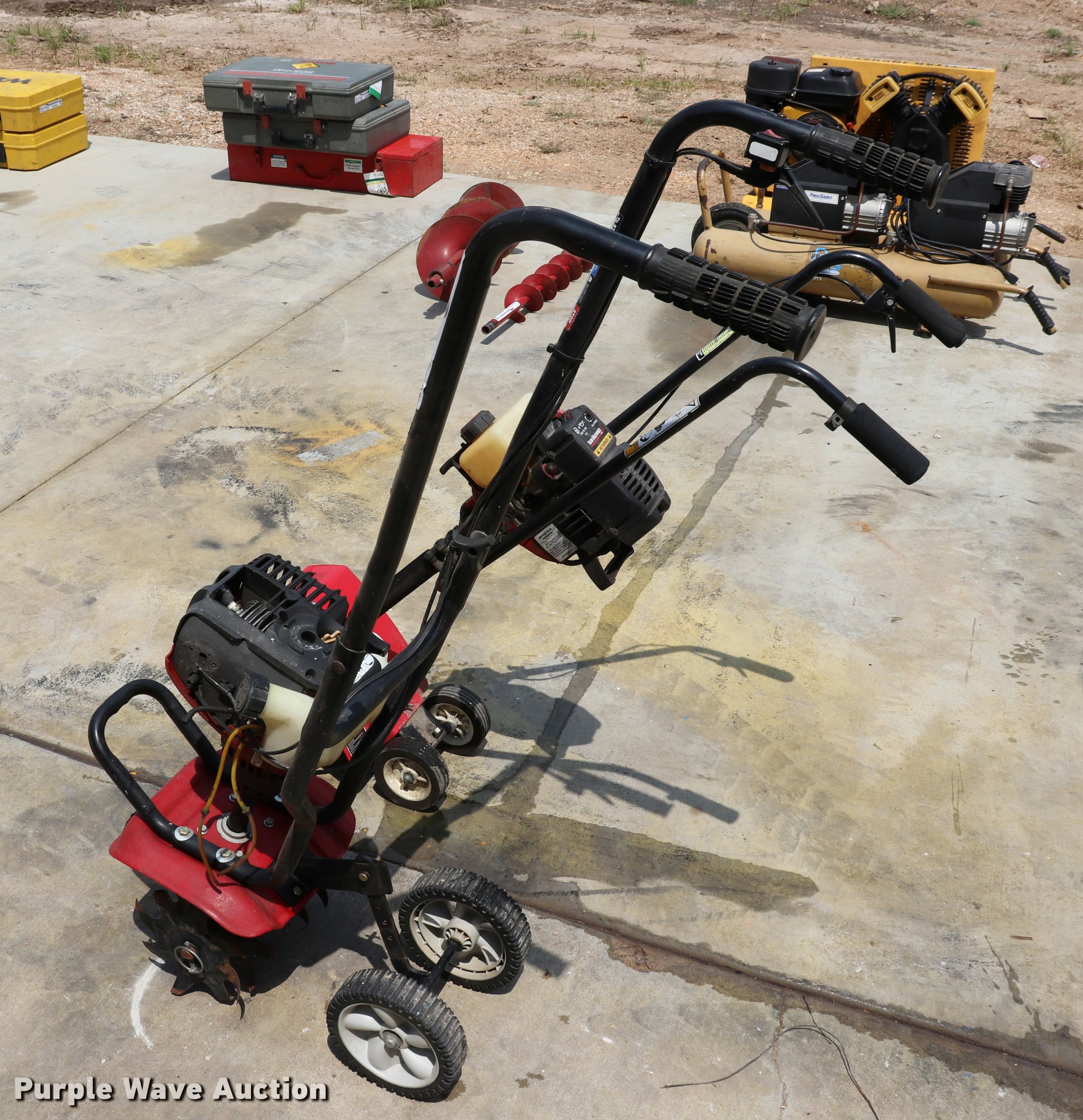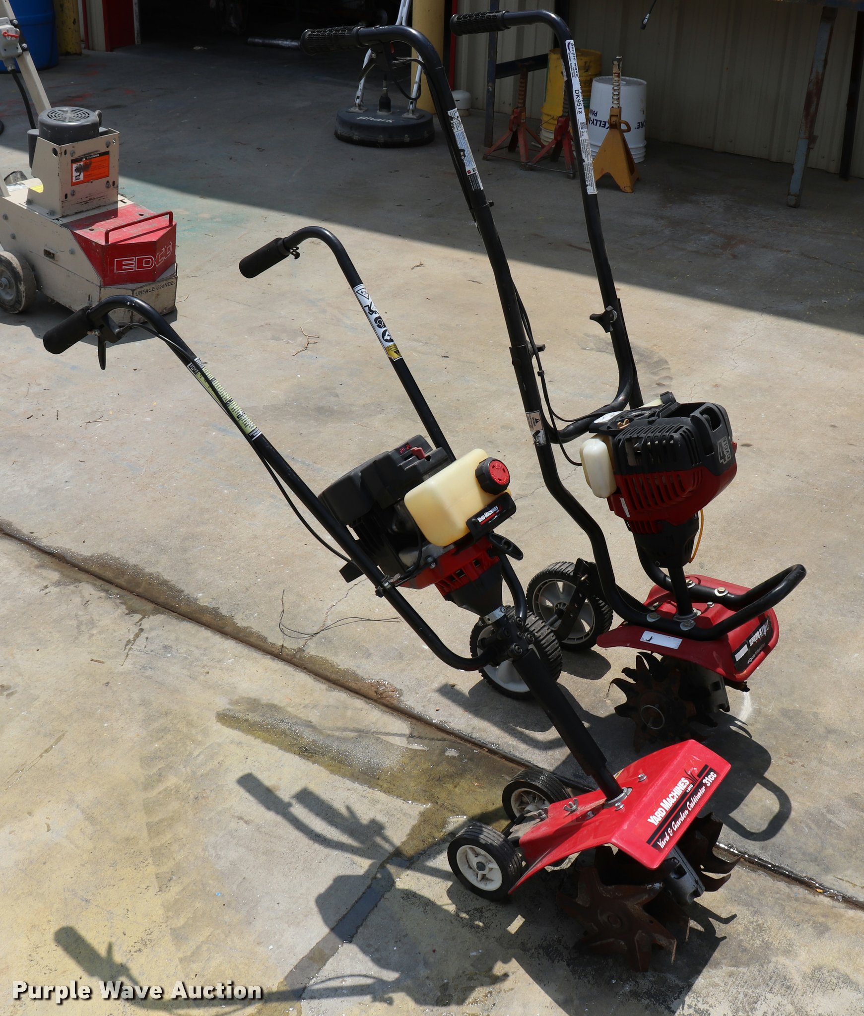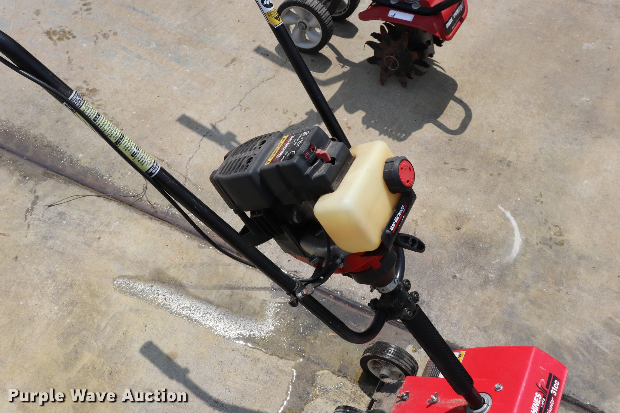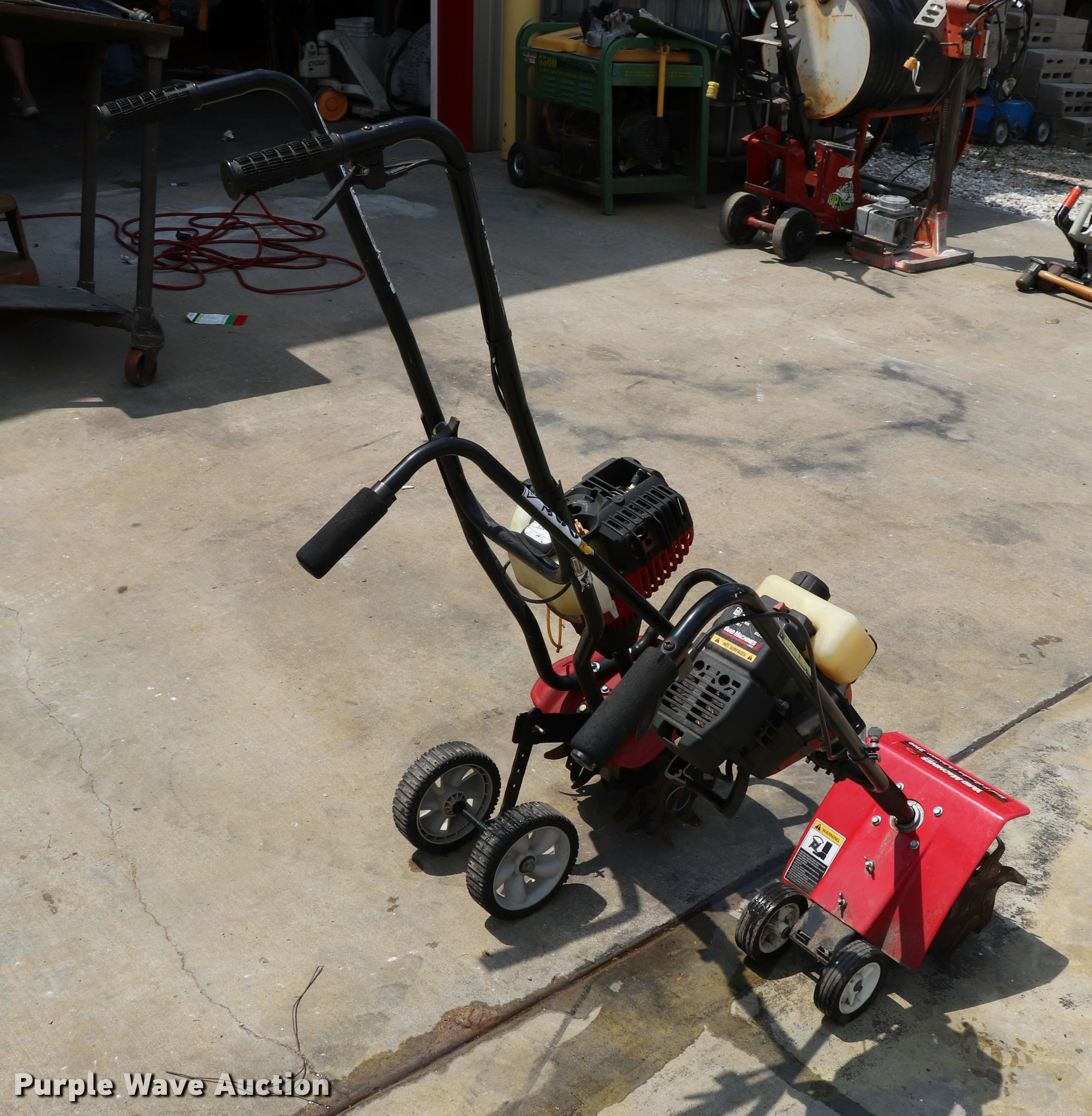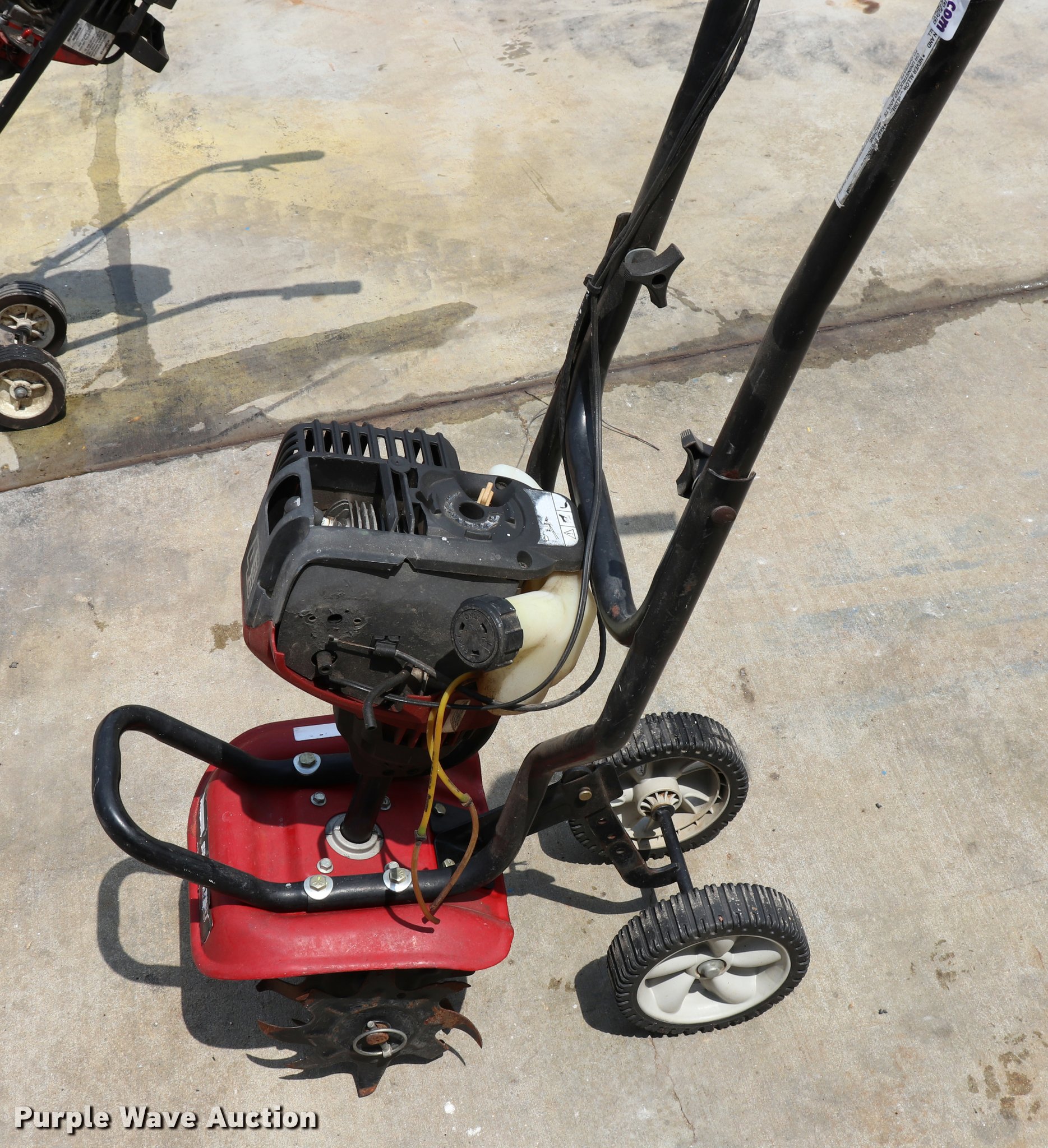 Purple Wave is selling a used Rotary Tillage in Missouri. This item is a (2) tillers with the following: Yard Machine, 31cc gas engine, 10"W, 4 1/4" wheels, Four cycle gas engine, 9"W, 6 3/4" wheels, Units inoperable