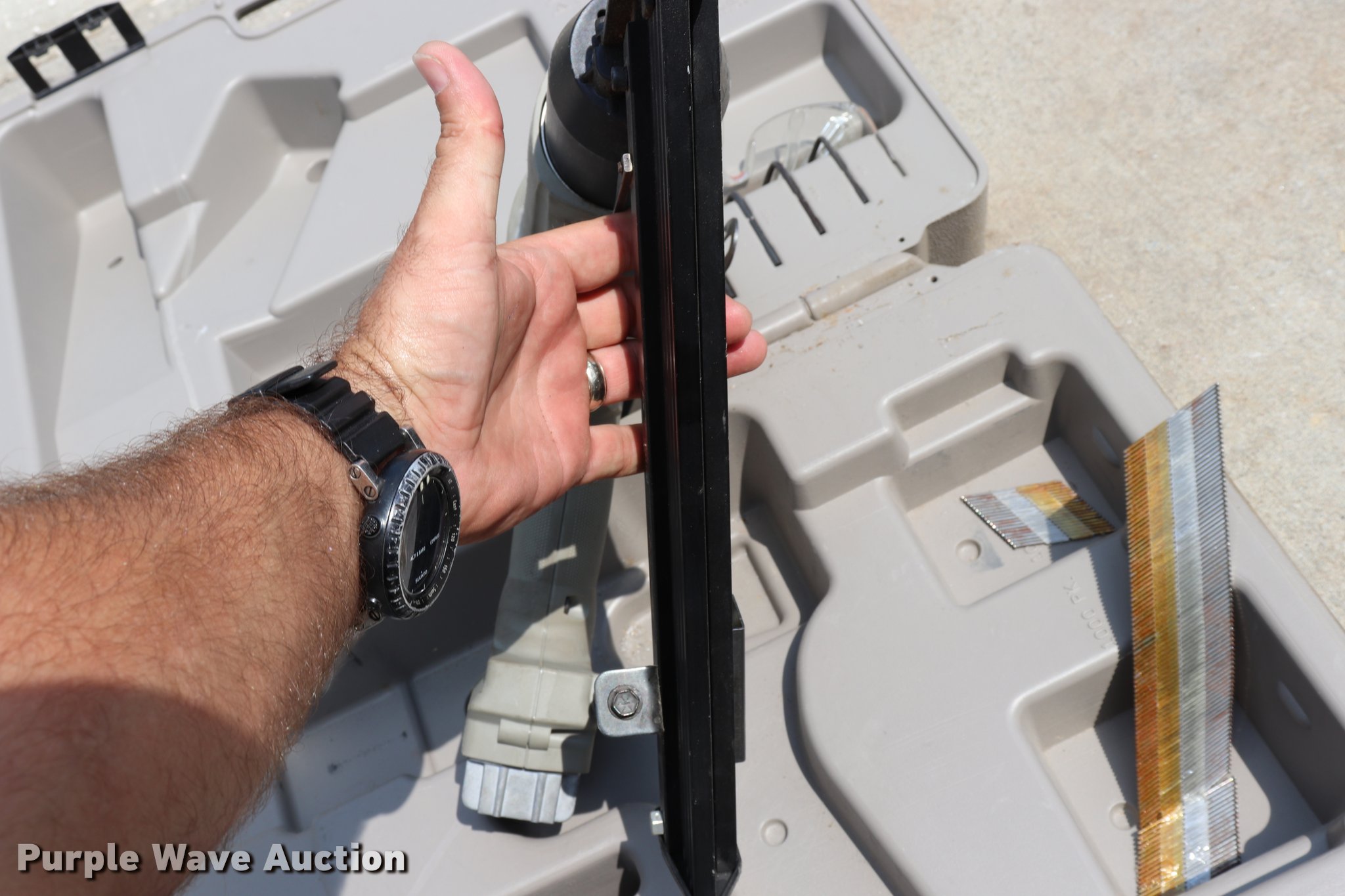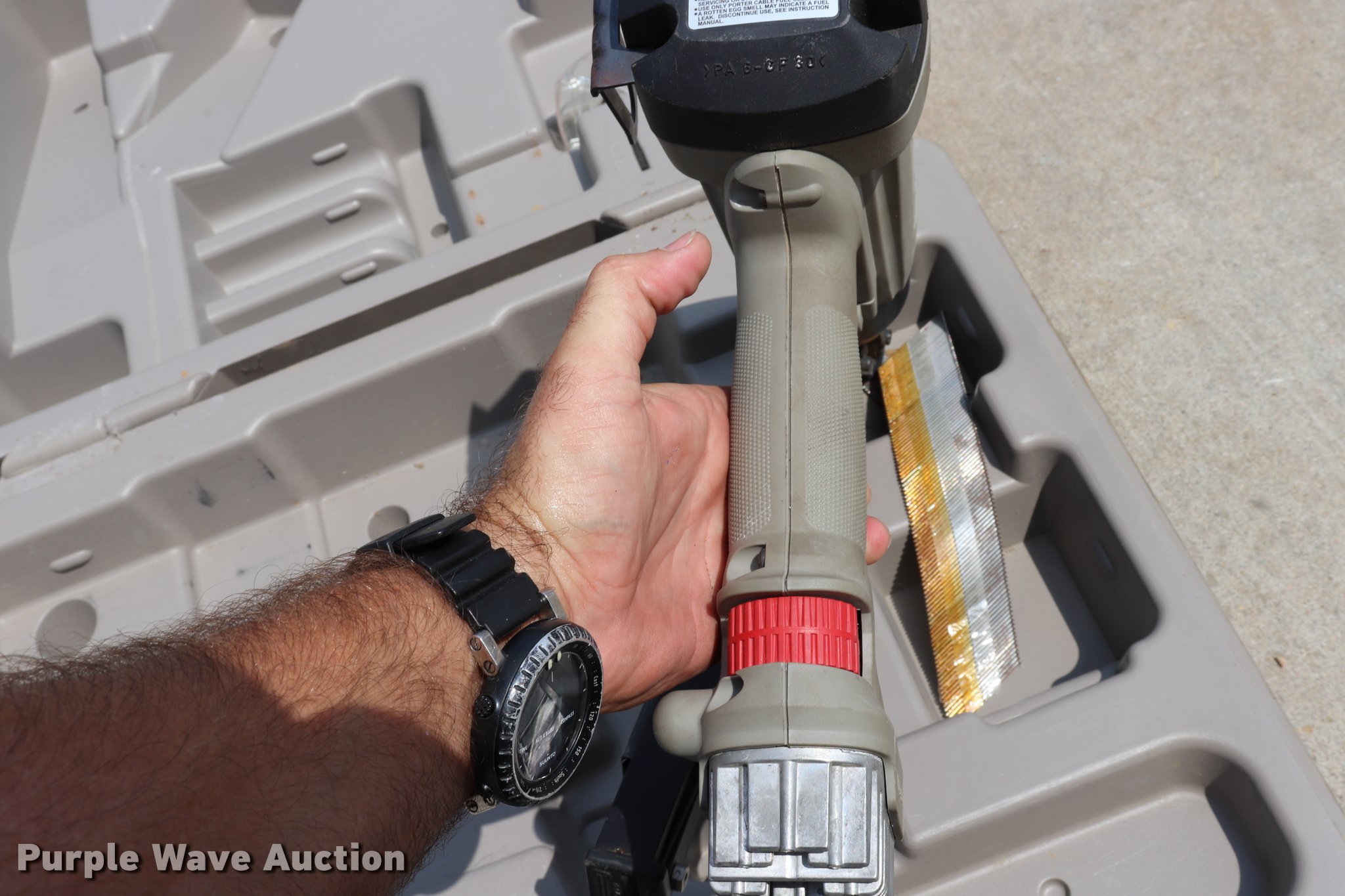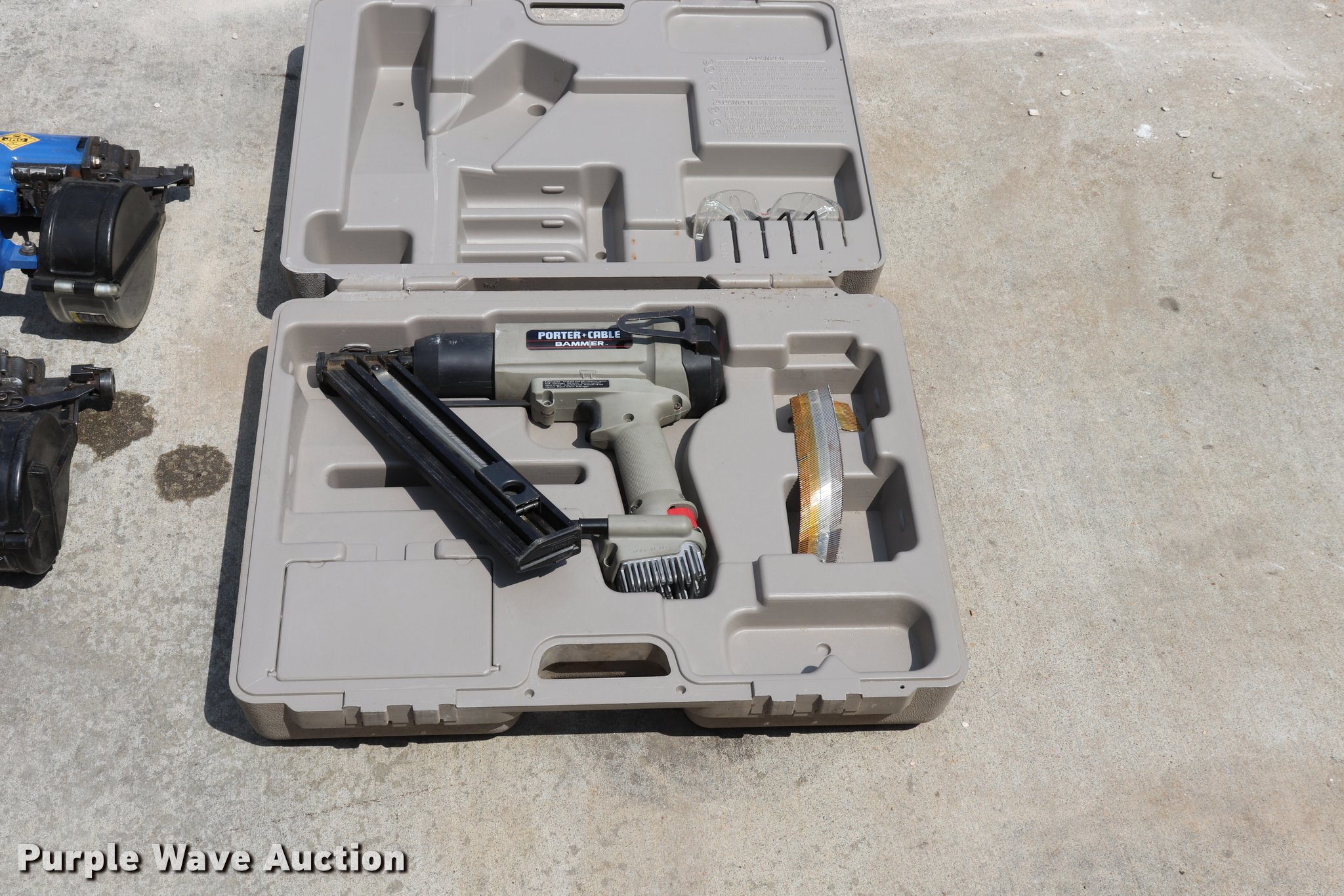 Purple Wave is selling a used Tools in Missouri. This item is a Porter Cable nail gun with the following: Gas cartridge drive, 1 1/4" to 2.5" capacity, Safety glasses, Serial DA6-GF80