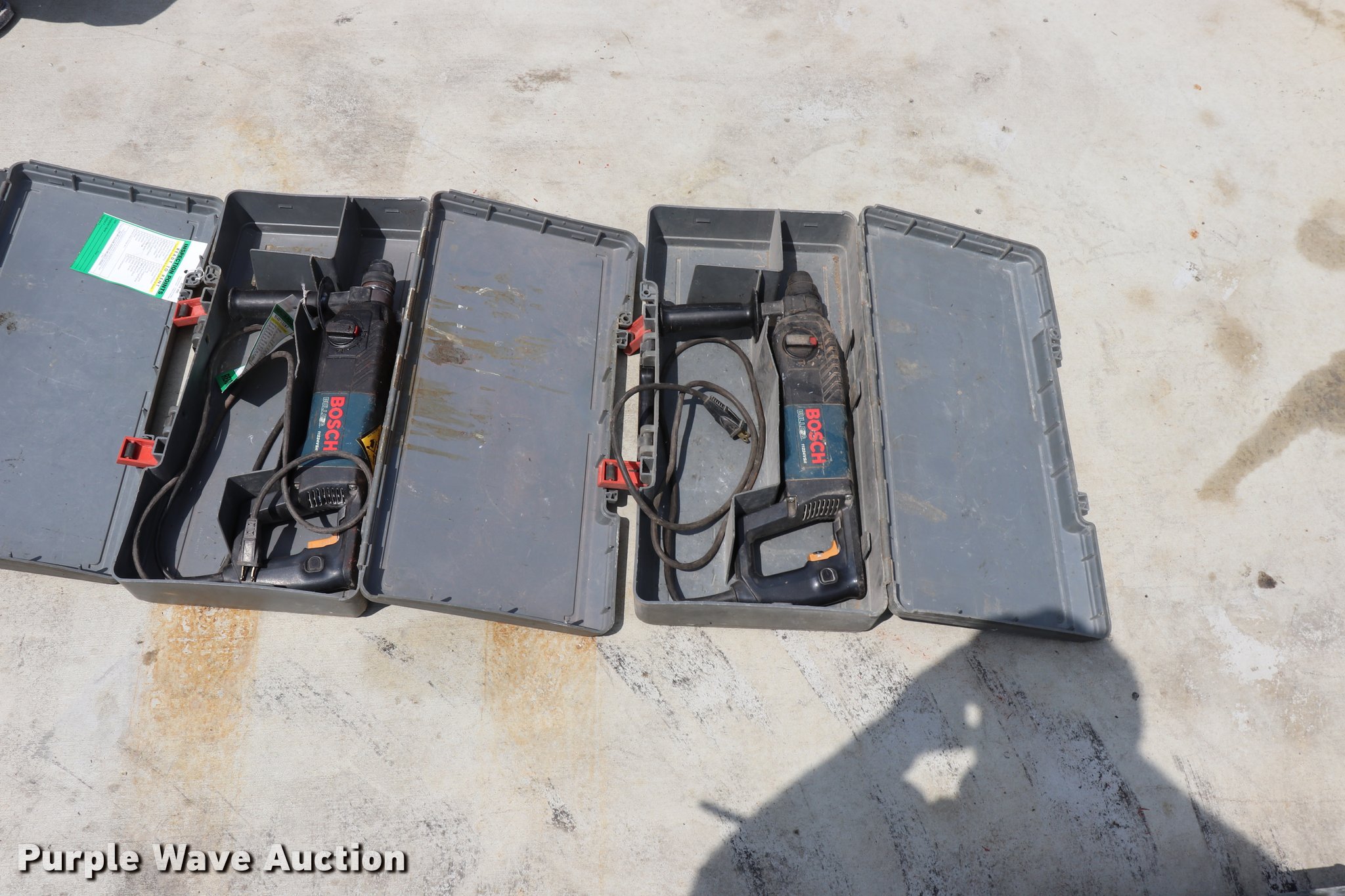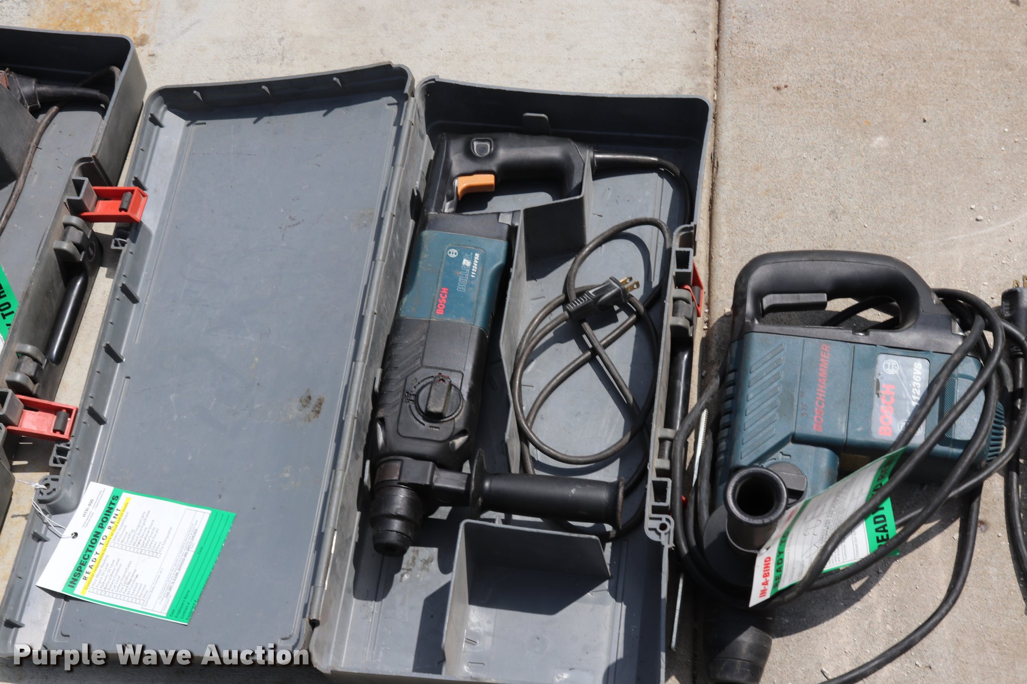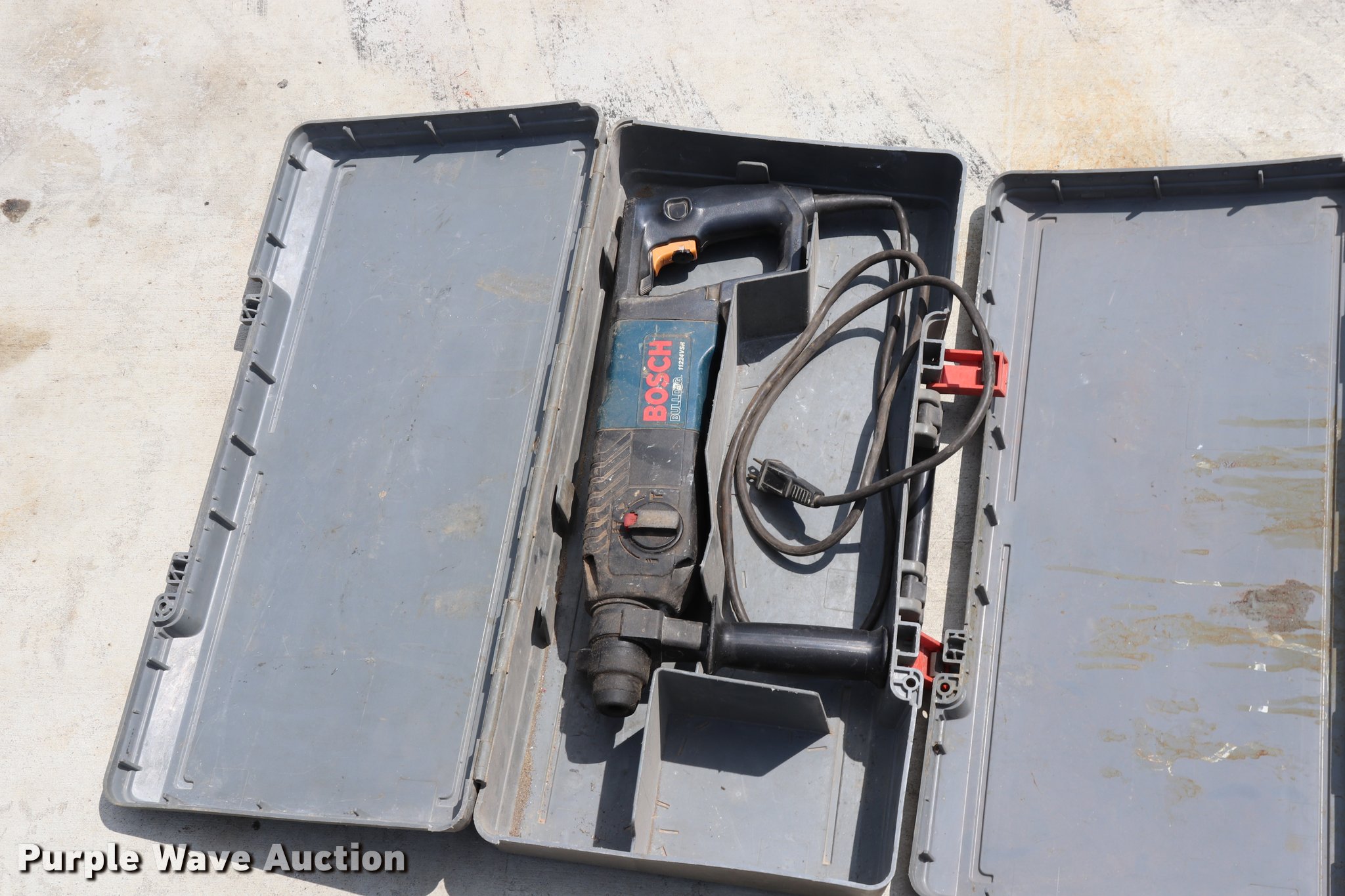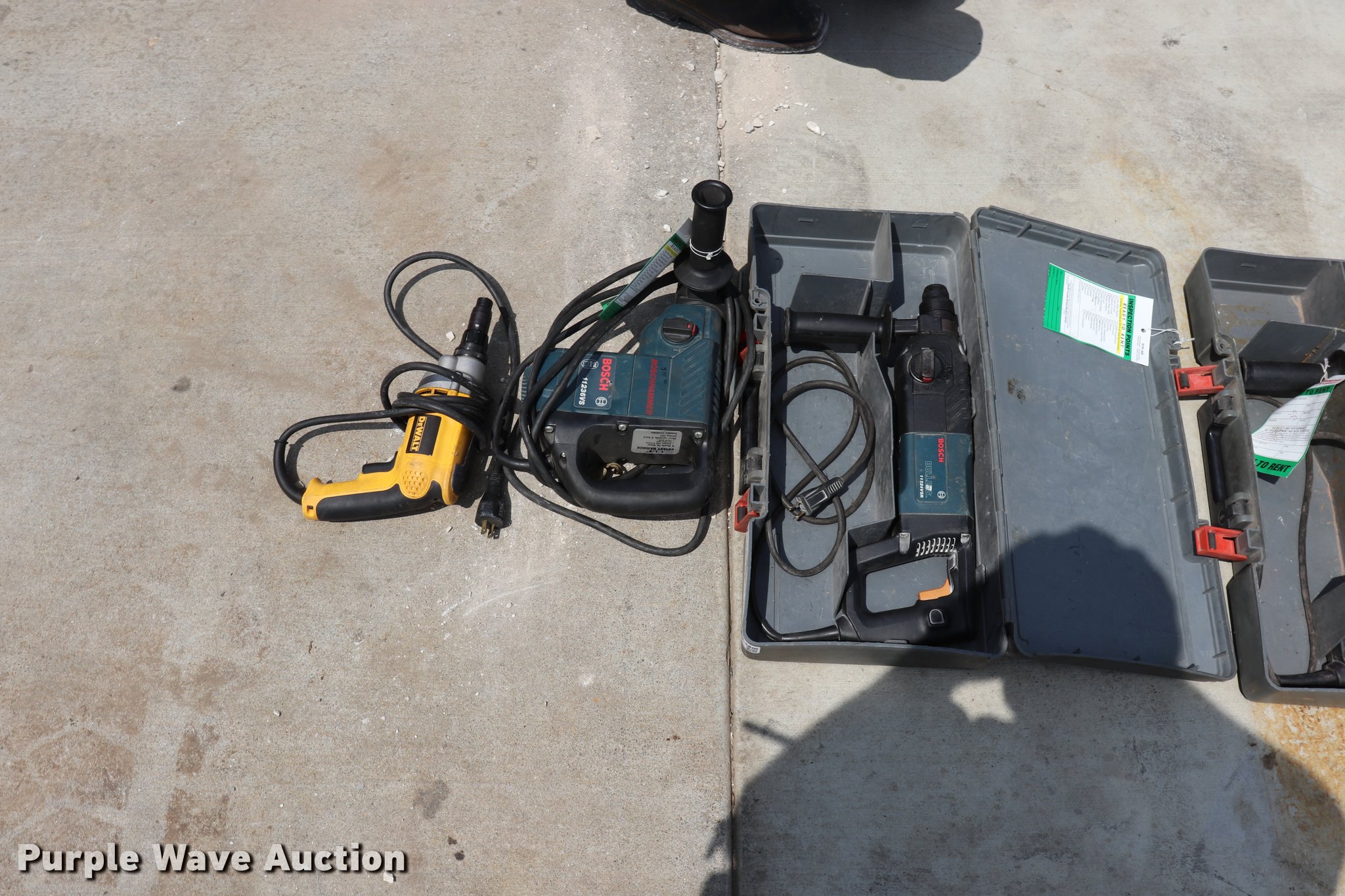 Purple Wave is selling a used Tools in Missouri. This item is a (5) drills with the following: (3) Bosch 11224VSR drills, Bosch 21111236VS drill, DeWalt drill, 120V