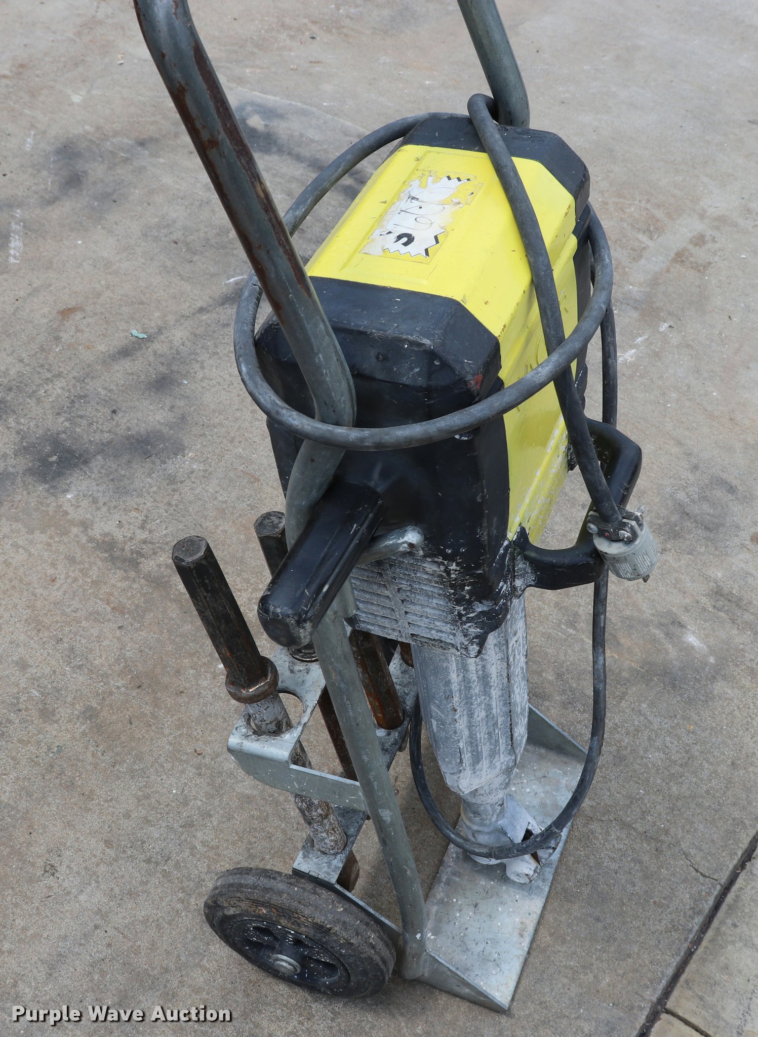 Purple Wave is selling a used Tools in Missouri. This item is a Wacker electric jack hammer with the following: (4) bits, Cart