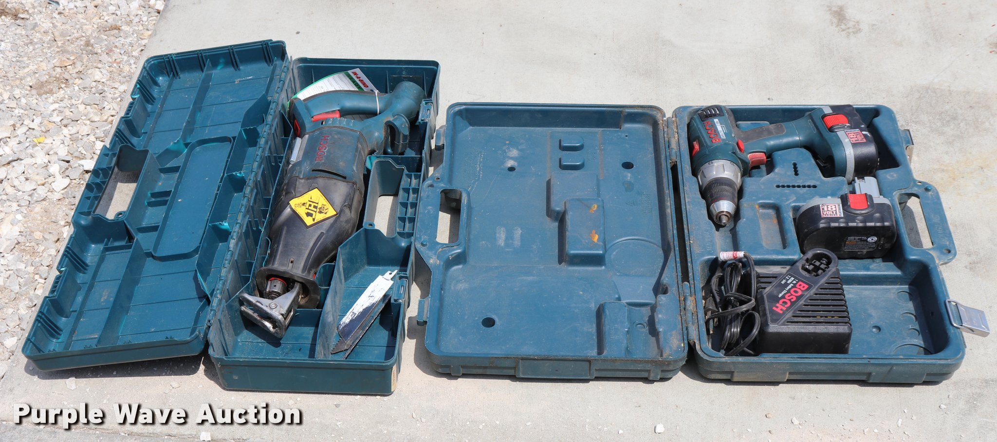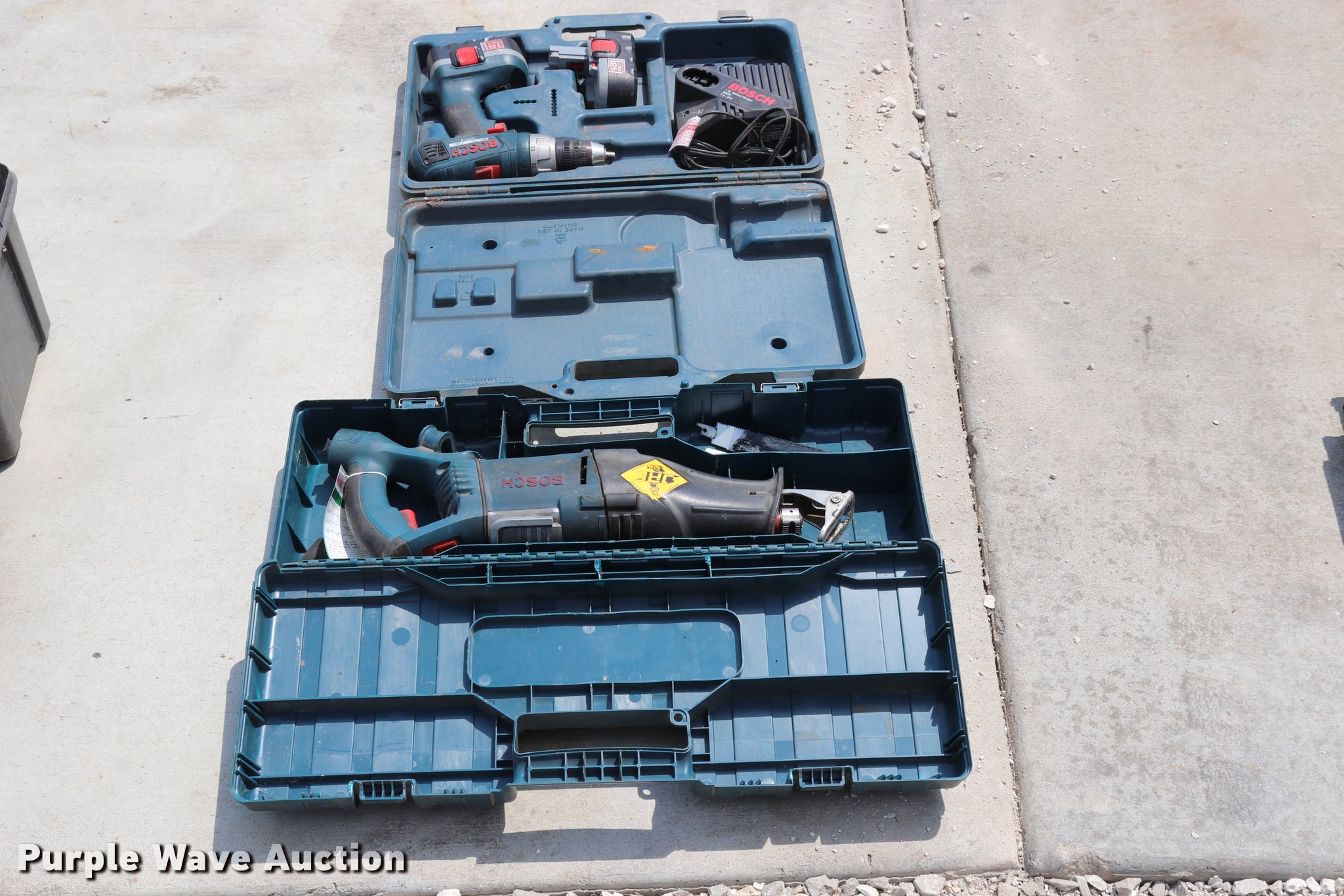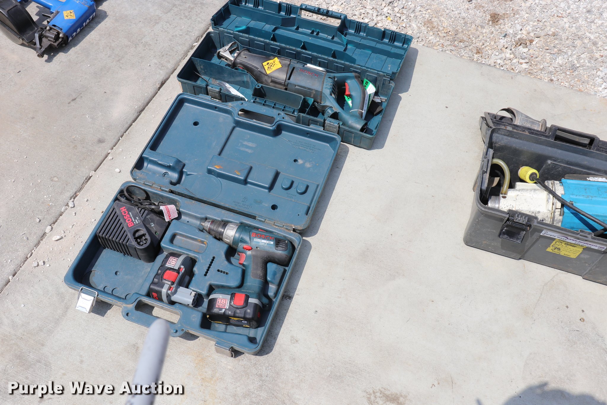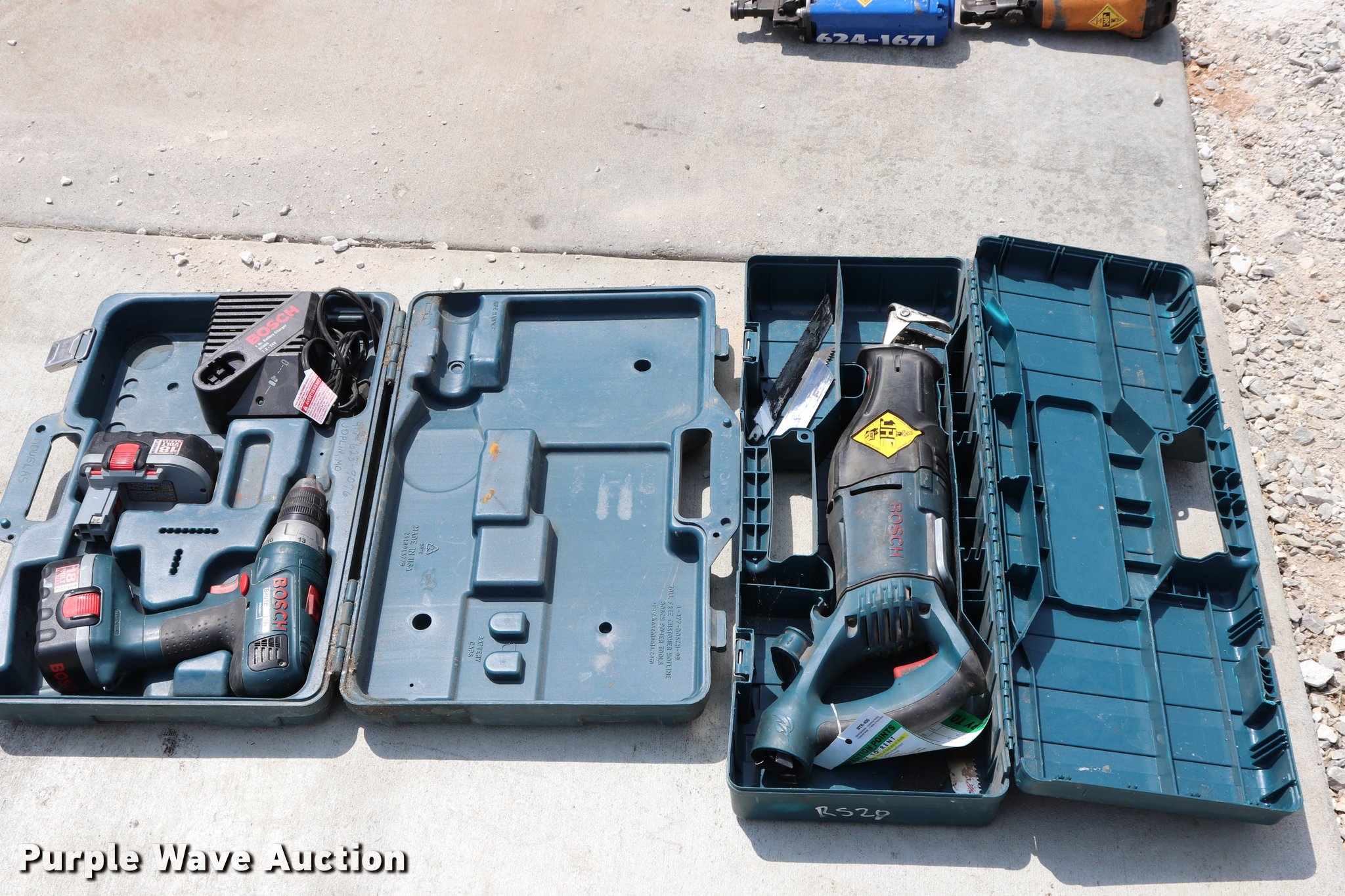 Purple Wave is selling a used Tools in Missouri. This item is a Tools with the following: Bosch reciprocating saw, Bosch Drill, (2) 18V batteries, Charger