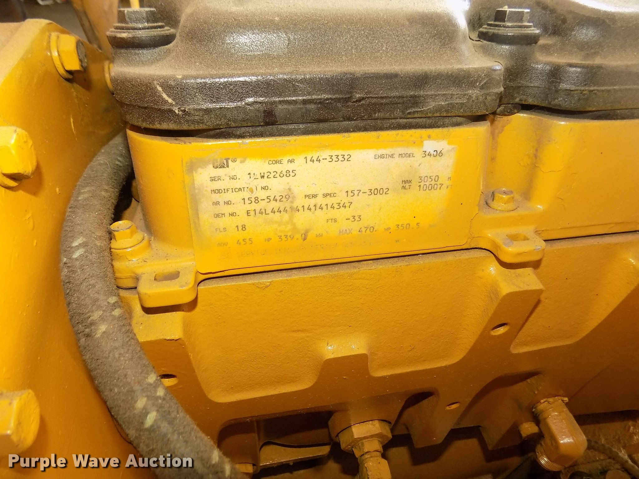 Purple Wave is selling a used Engine in Iowa. This item is a Caterpillar 3406E 2WS six cylinder turbo diesel engine with the following: Stand, Serial 1LW22685