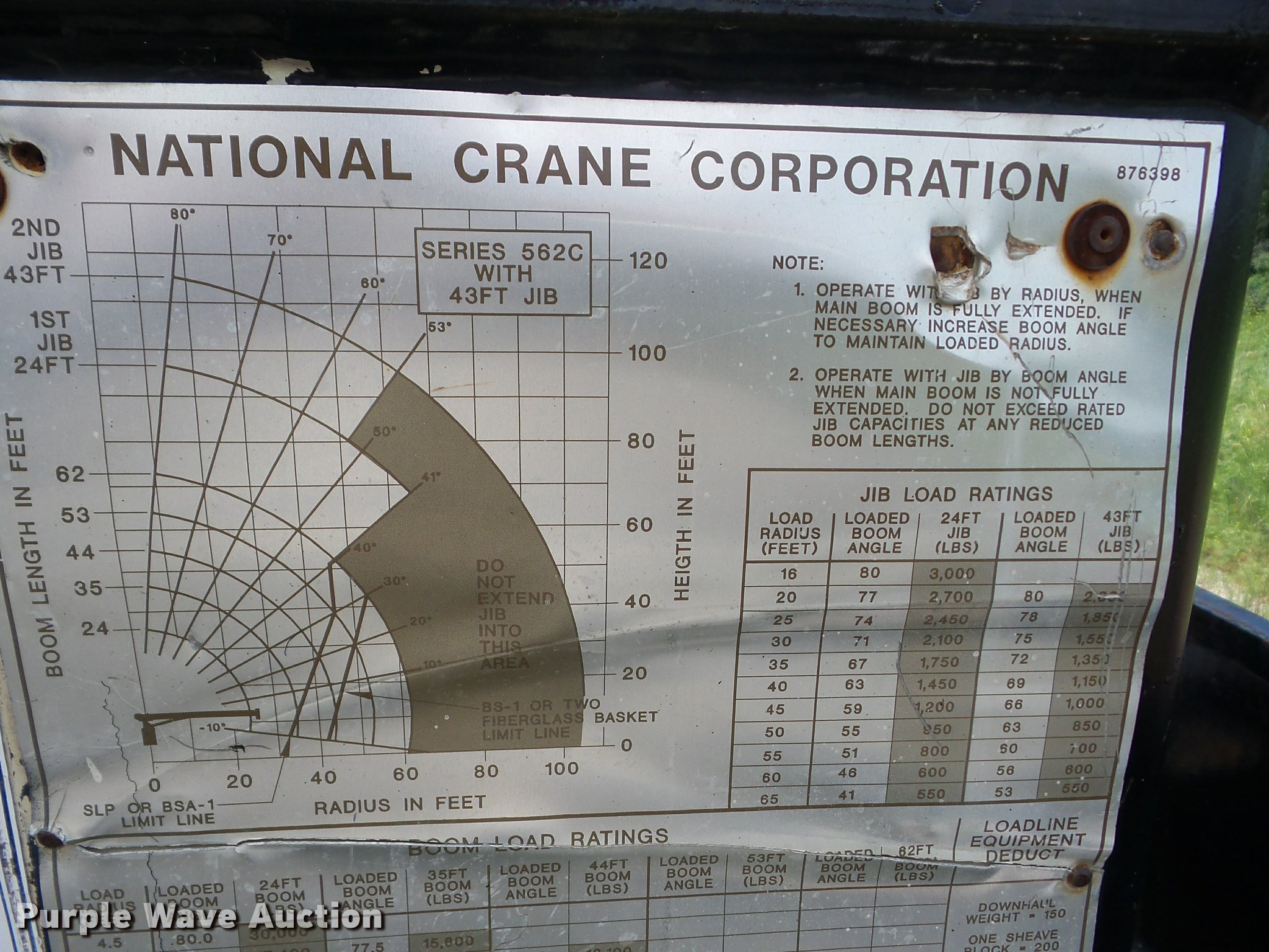 Purple Wave is selling a used Crane Truck in Kansas. This item is a 1993 Ford FT900 crane truck with the following: 102,907 miles on odometer, Cummins ISC 8.3L L6 turbo diesel engine, Eaton Fuller nine speed manual transmission, Heat, AM/FM, Air suspension seat, Telescopic boom, 62' boom length, 43'jib, 30,000 lbs maximum lift capacity, Stabilizers, Spring over walking beam suspension, Air brakes, 10.00R20 tires, GVWR 46,000 lbs, Non-operational unit, Possible boom wire issue